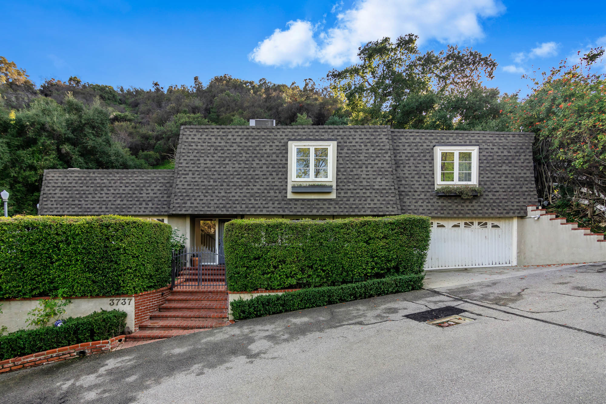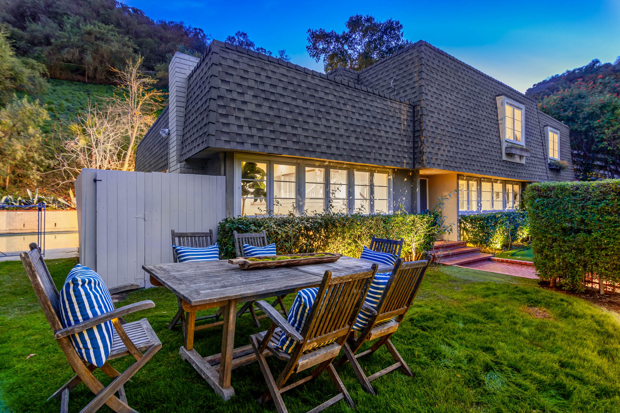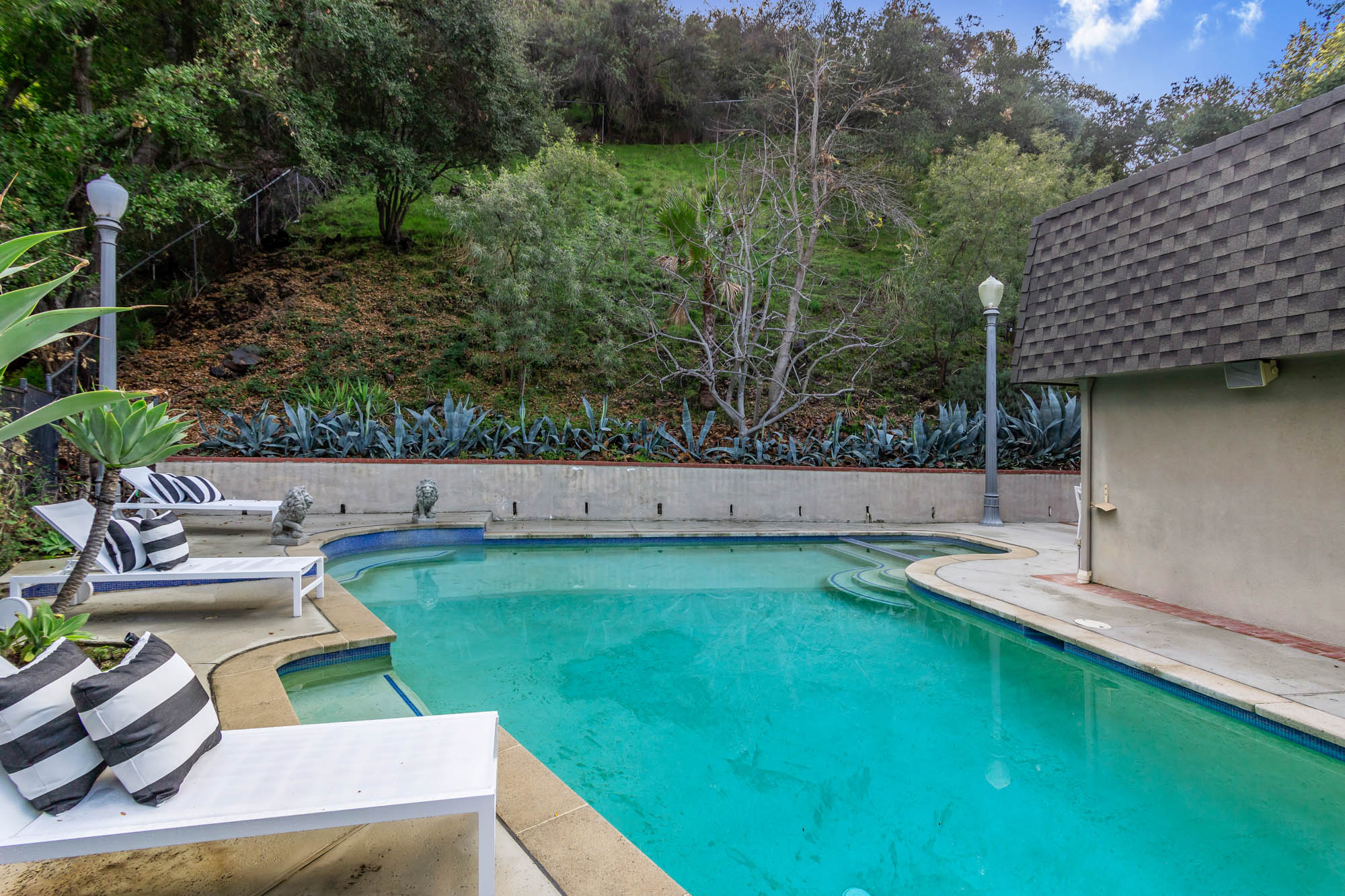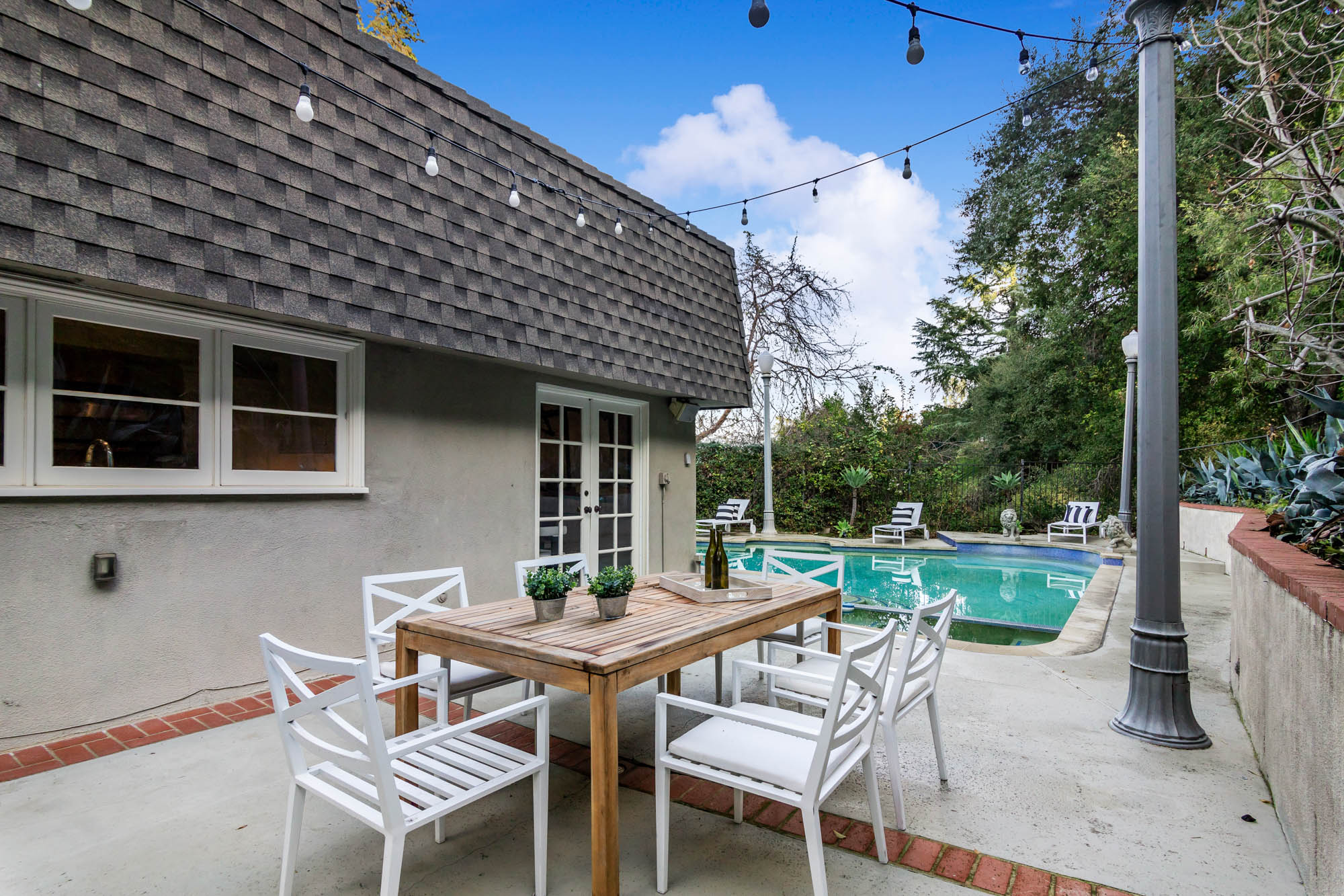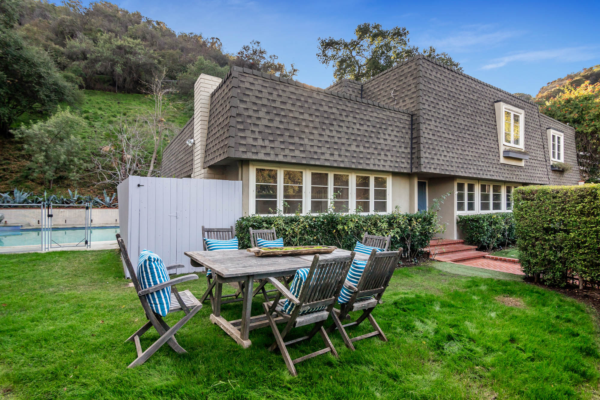 Welcome home to this charmingly updated 3 bedroom 3 bathroom home in the hills of Encino in Lanai School District. Located on a cul de sac, this home encompasses privacy and peek-a-boo views all in one. Through the gated courtyard and front door, you’re greeted by a family living room with plenty of natural light. Continuing past the family room, a chef’s kitchen awaits. Featuring double ovens, a six burner stove, marble countertops, and a breakfast nook, this kitchen has everything you could want and need. Plenty of counter space and storage continue along all sides of the kitchen. French doors bring in an abundance of natural light and welcome you to the backyard. Conveniently located off of the kitchen is the formal dining room. Open to the dining room, is the living room with fireplace, high ceilings, and french doors to the backyard that makes this a great additional room for entertaining. Upstairs you’ll find your Master Suite with Two walk in closets and master bathroom. Within the bathroom is a spa tub, dual sinks, and a walk in shower with dual shower heads. Down the hall from the Master Suite are two spacious bedrooms and a bathroom. Outside you’ll find a pool & spa, grassy area and plenty of patio space, complete with beautiful lighting, to entertain guests. Additional features include a putting green, built in storage, laundry room, Electrical Vehicle Charger, and built-in speakers.