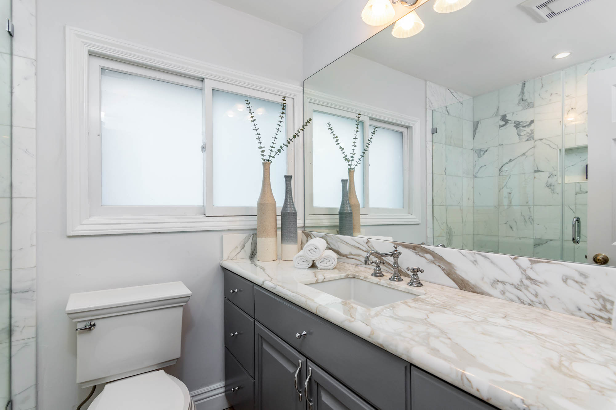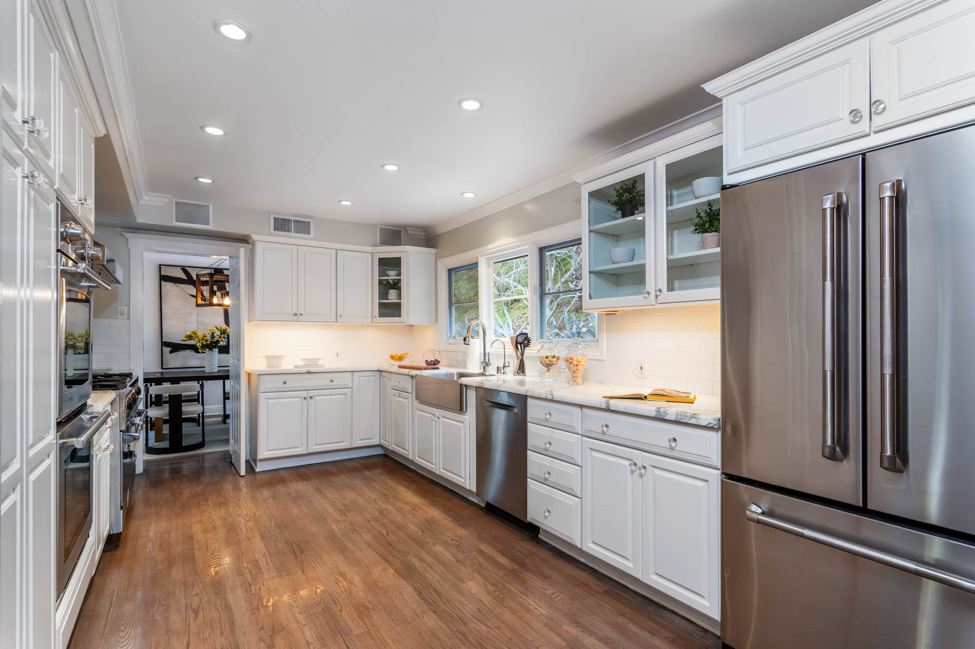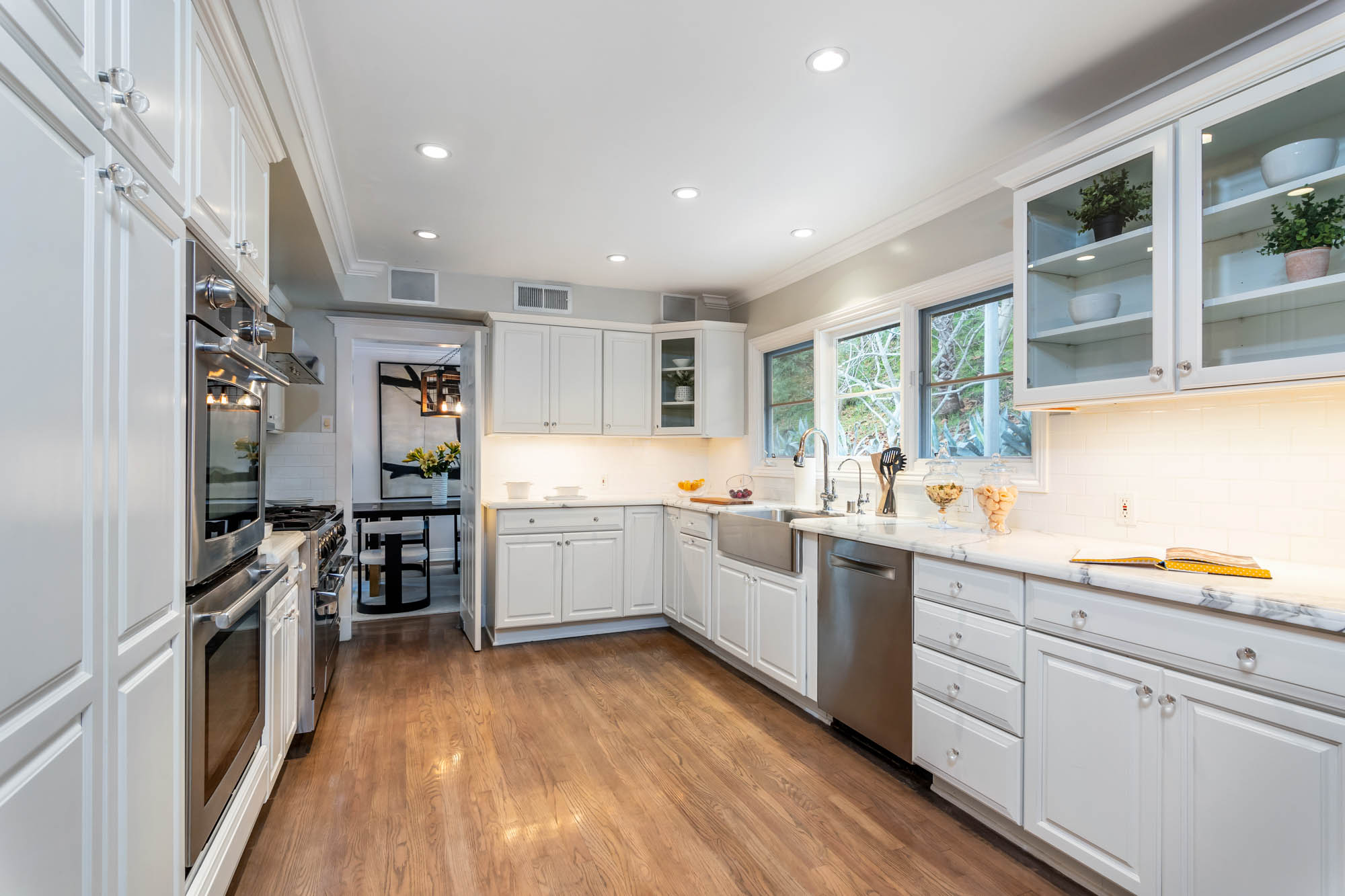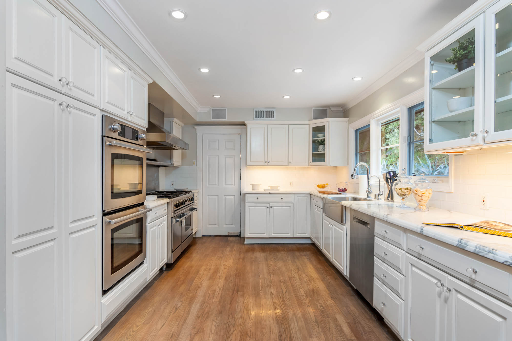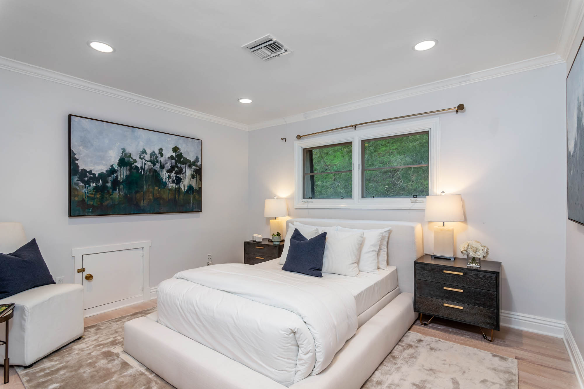 Welcome home to this charmingly updated 3 bedroom 3 bathroom home in the hills of Encino in Lanai School District. Located on a cul de sac, this home encompasses privacy and peek-a-boo views all in one. Through the gated courtyard and front door, you’re greeted by a family living room with plenty of natural light. Continuing past the family room, a chef’s kitchen awaits. Featuring double ovens, a six burner stove, marble countertops, and a breakfast nook, this kitchen has everything you could want and need. Plenty of counter space and storage continue along all sides of the kitchen. French doors bring in an abundance of natural light and welcome you to the backyard. Conveniently located off of the kitchen is the formal dining room. Open to the dining room, is the living room with fireplace, high ceilings, and french doors to the backyard that makes this a great additional room for entertaining. Upstairs you’ll find your Master Suite with Two walk in closets and master bathroom. Within the bathroom is a spa tub, dual sinks, and a walk in shower with dual shower heads. Down the hall from the Master Suite are two spacious bedrooms and a bathroom. Outside you’ll find a pool & spa, grassy area and plenty of patio space, complete with beautiful lighting, to entertain guests. Additional features include a putting green, built in storage, laundry room, Electrical Vehicle Charger, and built-in speakers.