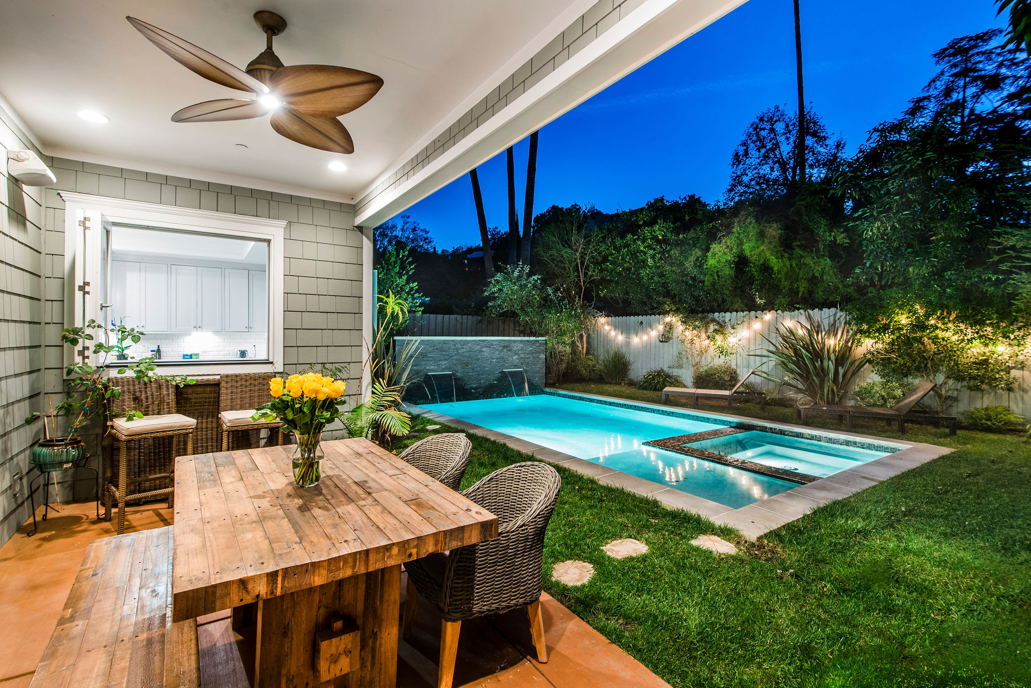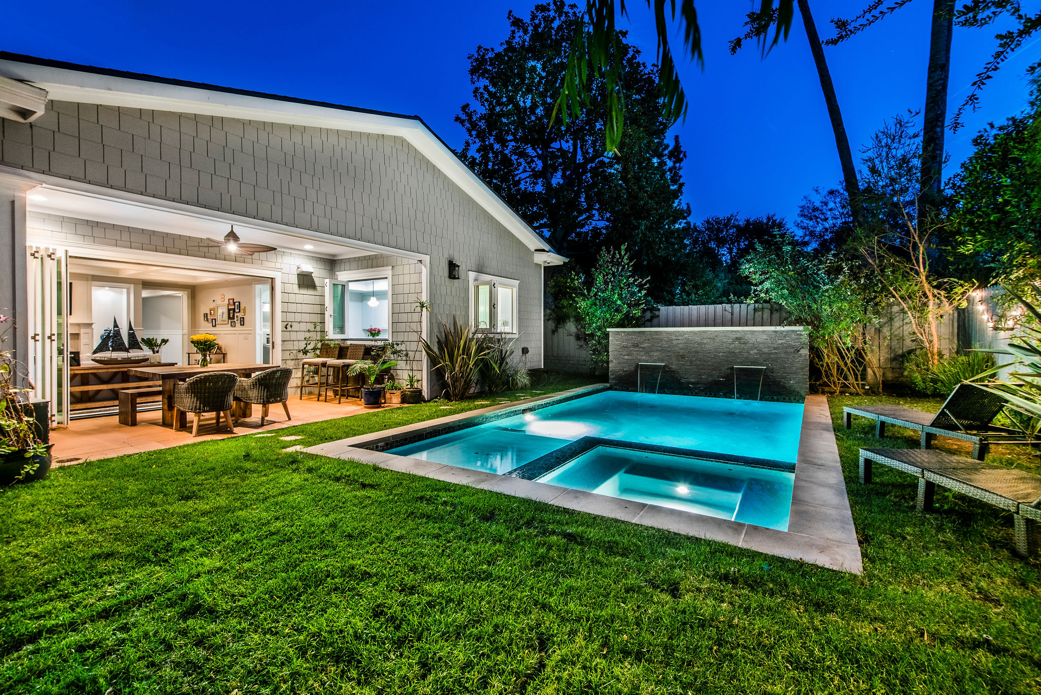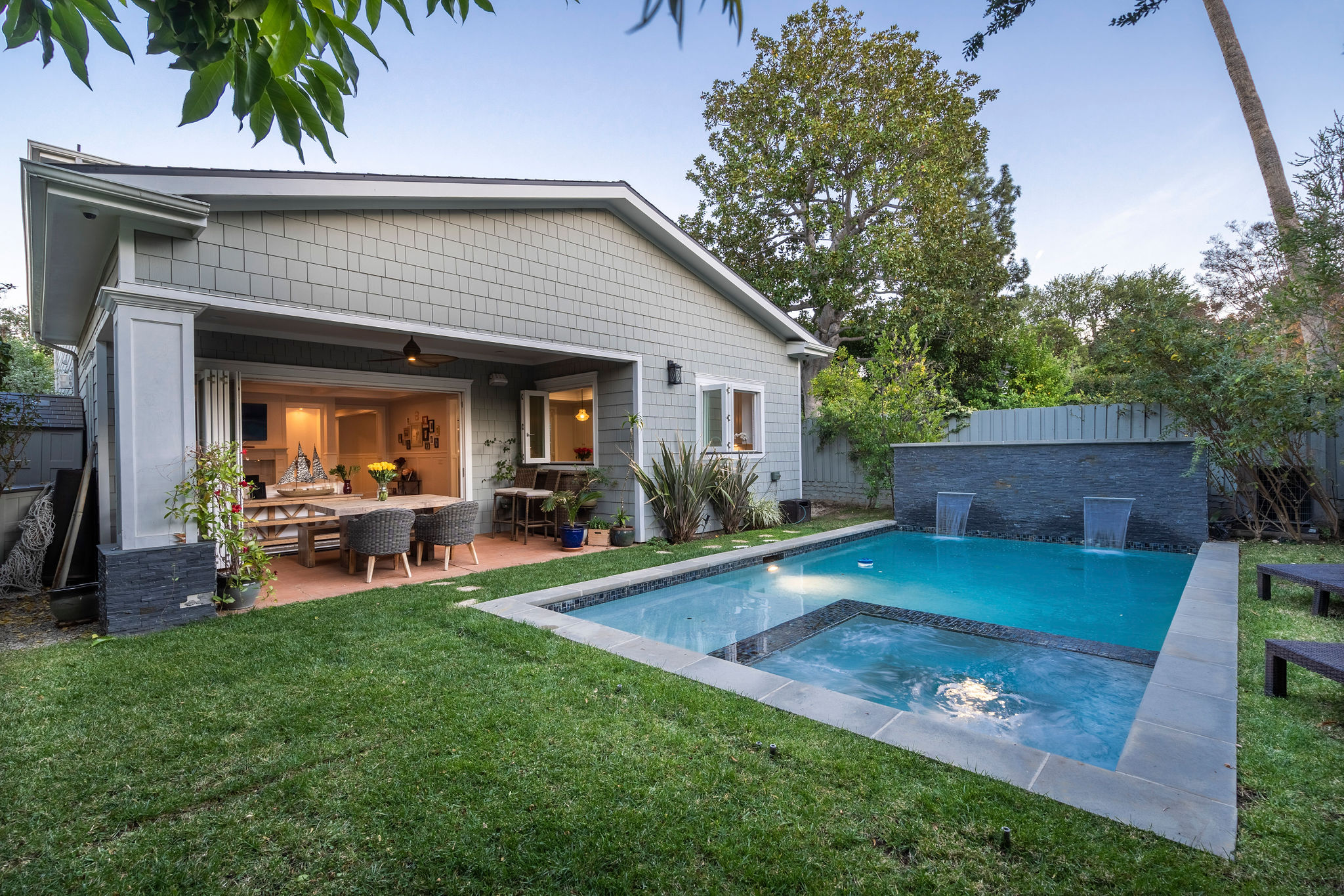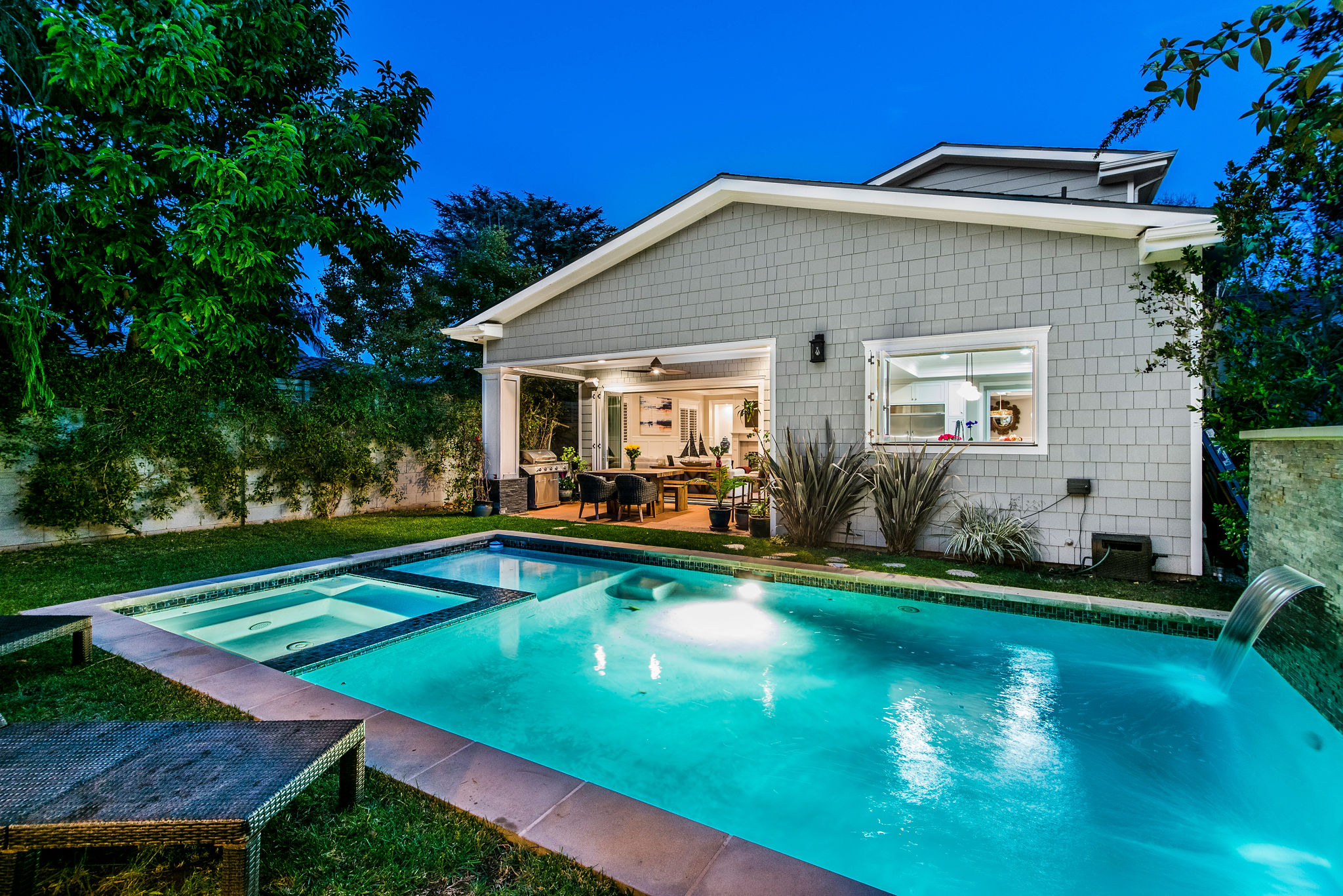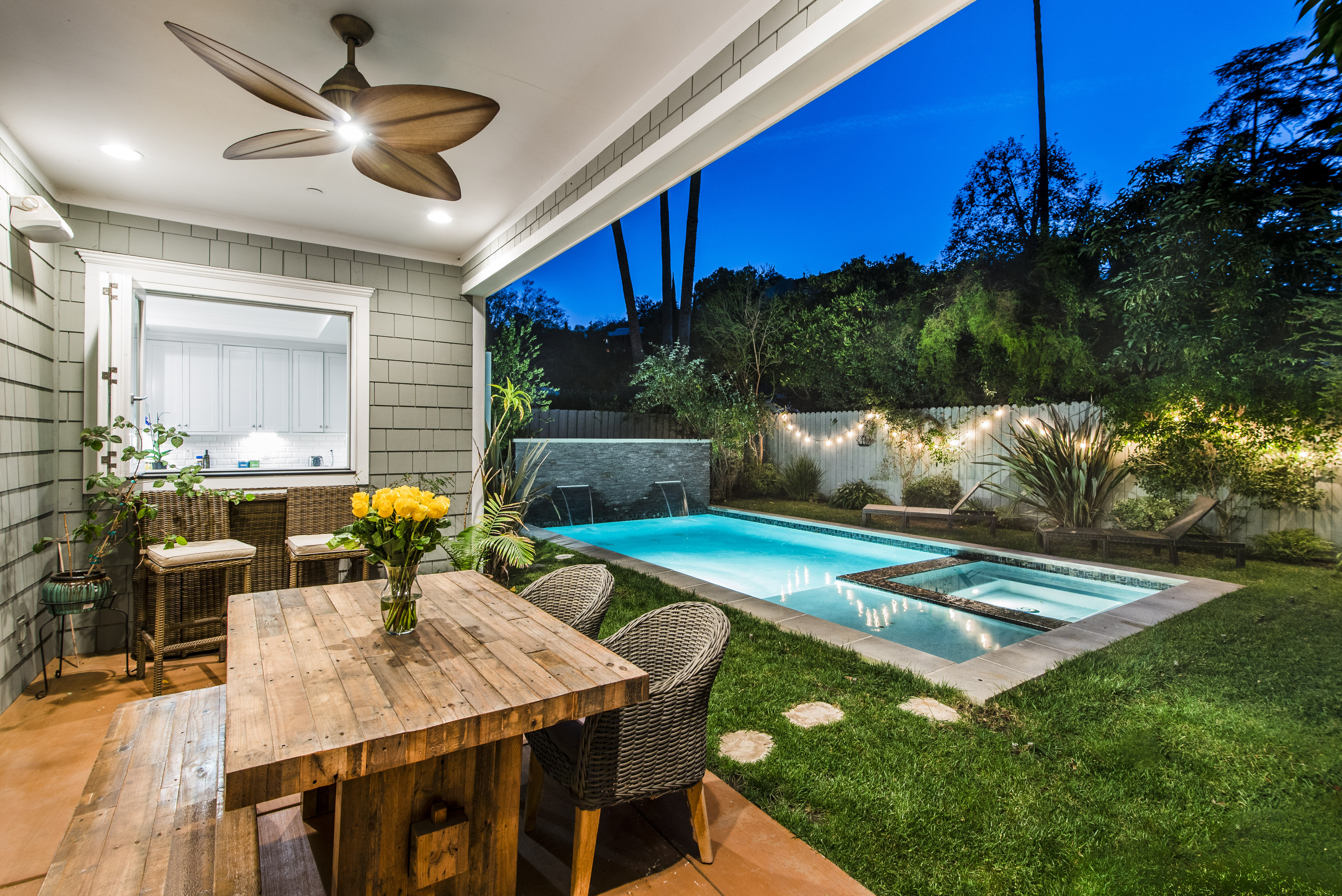 Active Off Market! Situated south of Ventura Blvd in the “Silver Triangle”, this home is in the hottest area of Studio City. Located only a couple of blocks away from the award-winning Carpenter Charter School, Fryman Park, trendy restaurants and much more, this luxury home is perfect for any family. Not to mention, this home offers an easy commute to both the Westside and Hollywood. Open the doors to this opulent home and pass the downstairs suite, sitting area and formal dining room into the butler’s pantry with a built-in wine rack, beverage cooling center and large pantry. Passing through to the kitchen stainless steel appliances and a large porcelain Carrara finished island will fulfill all your cooking needs. Large bi-fold windows connect to the backyard making it easy to entertain a variety of guests. Kitchen opens to a large family room with bi-fold doors leading out to the heated Baja pool and spa with a modern waterfall. As you re-enter and walk up to the master bedroom into the adjoining bathroom you will find a separate shower, jetted soak-in tub, dual sinks and a large walk-in closet. The southeast bedroom incorporates a built-in seating area under the large window.