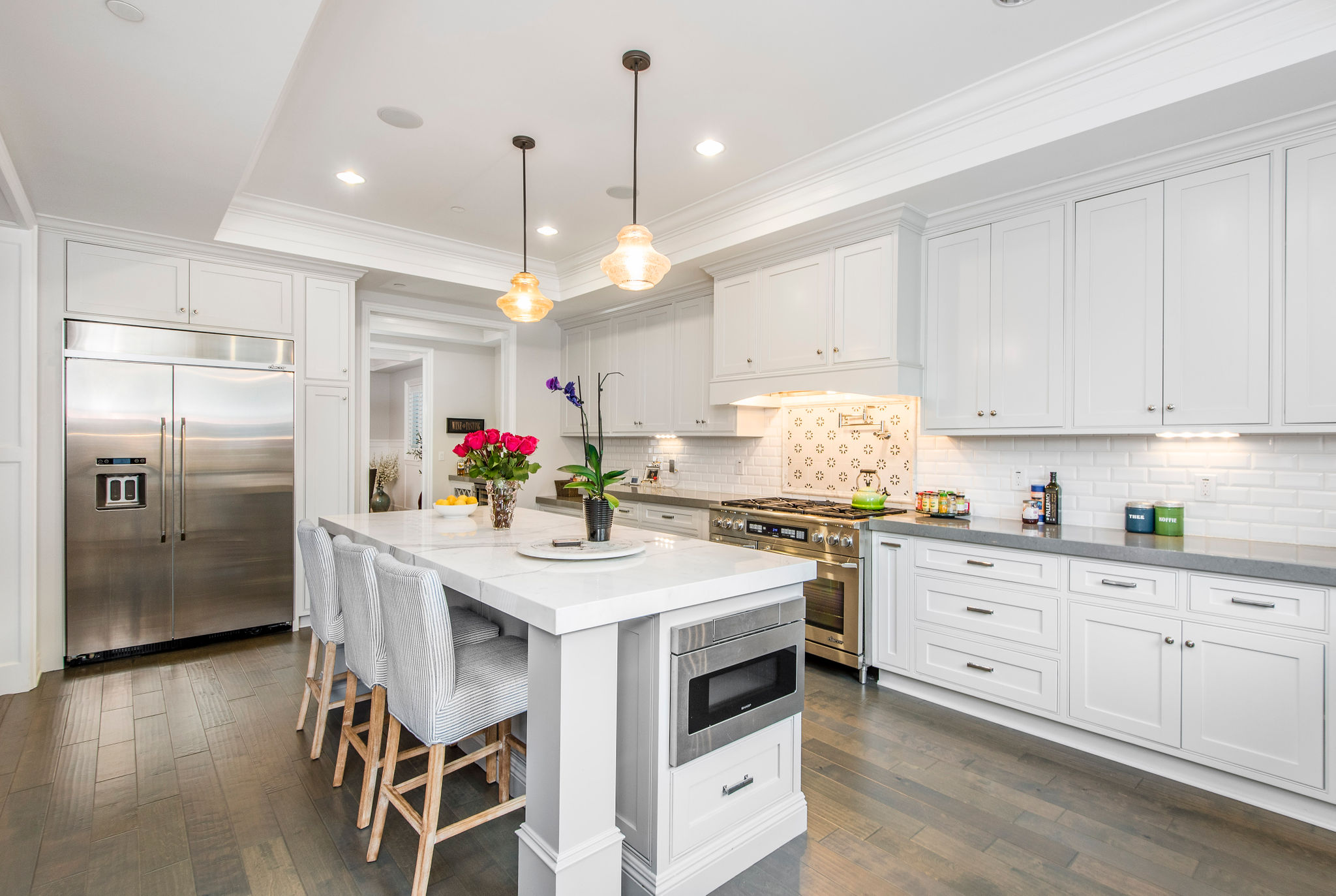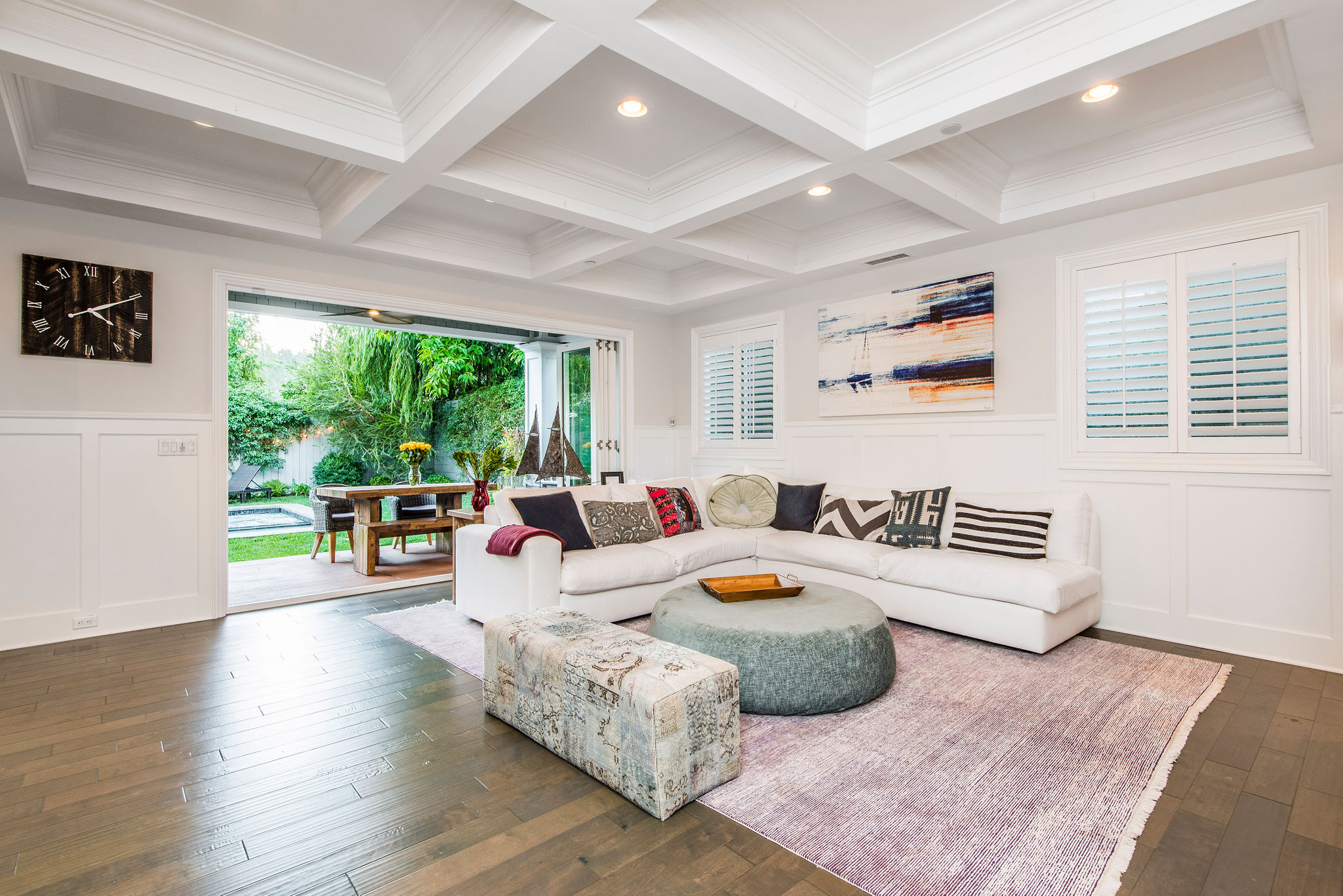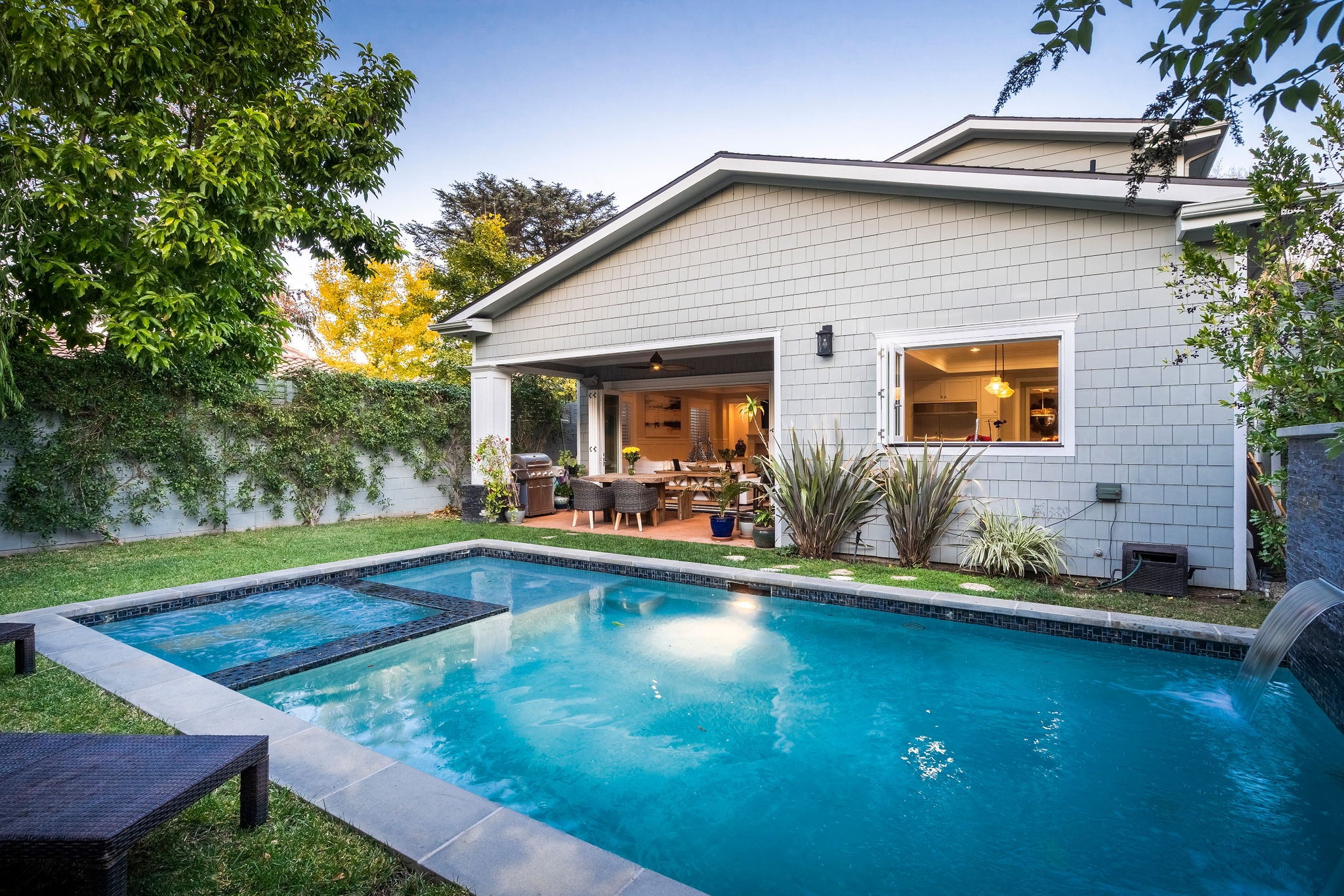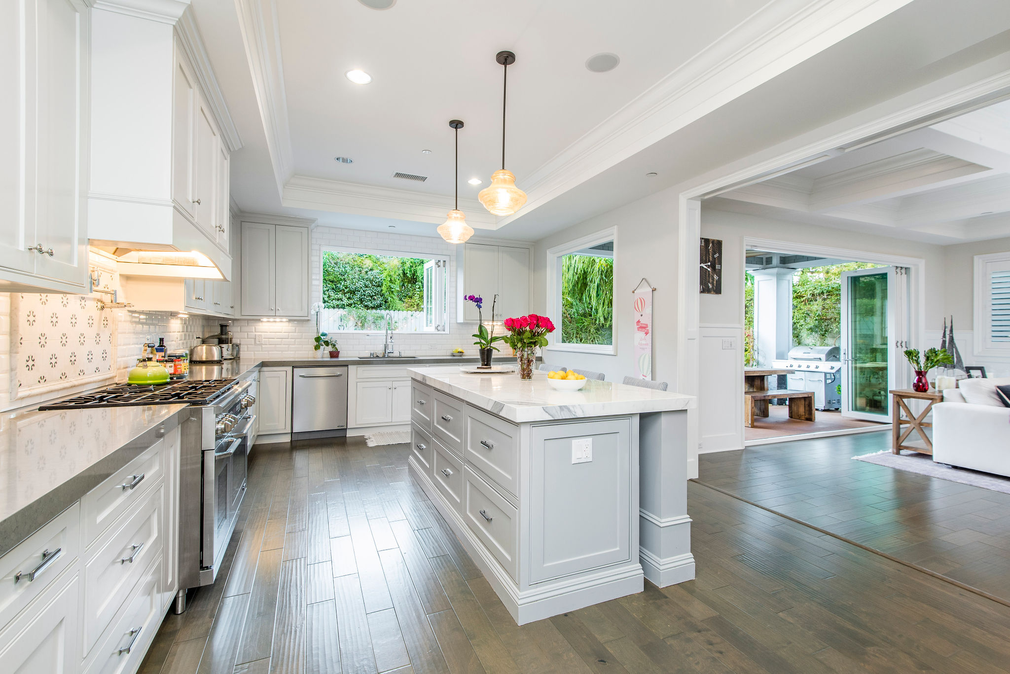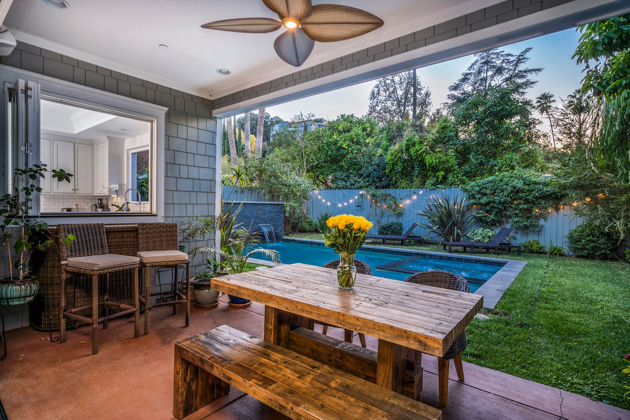 Active Off Market! Situated south of Ventura Blvd in the “Silver Triangle”, this home is in the hottest area of Studio City. Located only a couple of blocks away from the award-winning Carpenter Charter School, Fryman Park, trendy restaurants and much more, this luxury home is perfect for any family. Not to mention, this home offers an easy commute to both the Westside and Hollywood. Open the doors to this opulent home and pass the downstairs suite, sitting area and formal dining room into the butler’s pantry with a built-in wine rack, beverage cooling center and large pantry. Passing through to the kitchen stainless steel appliances and a large porcelain Carrara finished island will fulfill all your cooking needs. Large bi-fold windows connect to the backyard making it easy to entertain a variety of guests. Kitchen opens to a large family room with bi-fold doors leading out to the heated Baja pool and spa with a modern waterfall. As you re-enter and walk up to the master bedroom into the adjoining bathroom you will find a separate shower, jetted soak-in tub, dual sinks and a large walk-in closet. The southeast bedroom incorporates a built-in seating area under the large window.