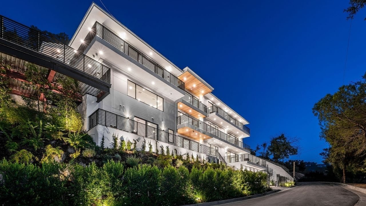 Also offered for lease! $25k/mo. Massive 6,309 sqft new construction estate welcomes you to luxurious living with breathtaking views. Privately elevated on a sweeping lot, this home’s expansive layout was designed with the ultimate entertainers dream in mind. Each living space presents an extensive flow with radiating natural light, soaring ceilings, designer finishes and large balconies. The grand main floor greets you to an elegant living room and ensuite bedroom that can be used as an office or guest quarters. Upstairs, the awe inspiring entertainment level features a cozy family room, gleaming chef’s kitchen, dining room, and breakfast area. Glass sliding doors lead out to the backyard haven featuring a stunning zero edge infinity pool & spa, overlooking incredible valley views. Also, immense lounge space makes hosting friends and family a breeze in addition to the vast lush grass area. Upstairs, three spacious and tastefully crafted bedrooms- including the master present ensuite bathrooms and private balconies. The sophisticated master retreat showcases a boasting walk-in closet and a spa-like bathroom with a soaking tub, walk in shower, and dual sinks. Additional amenities include a 10 car garage, elevators, laundry room, security system, and more. Live your exclusively private and lavish lifestyle perched in the hills of Sherman Oaks!