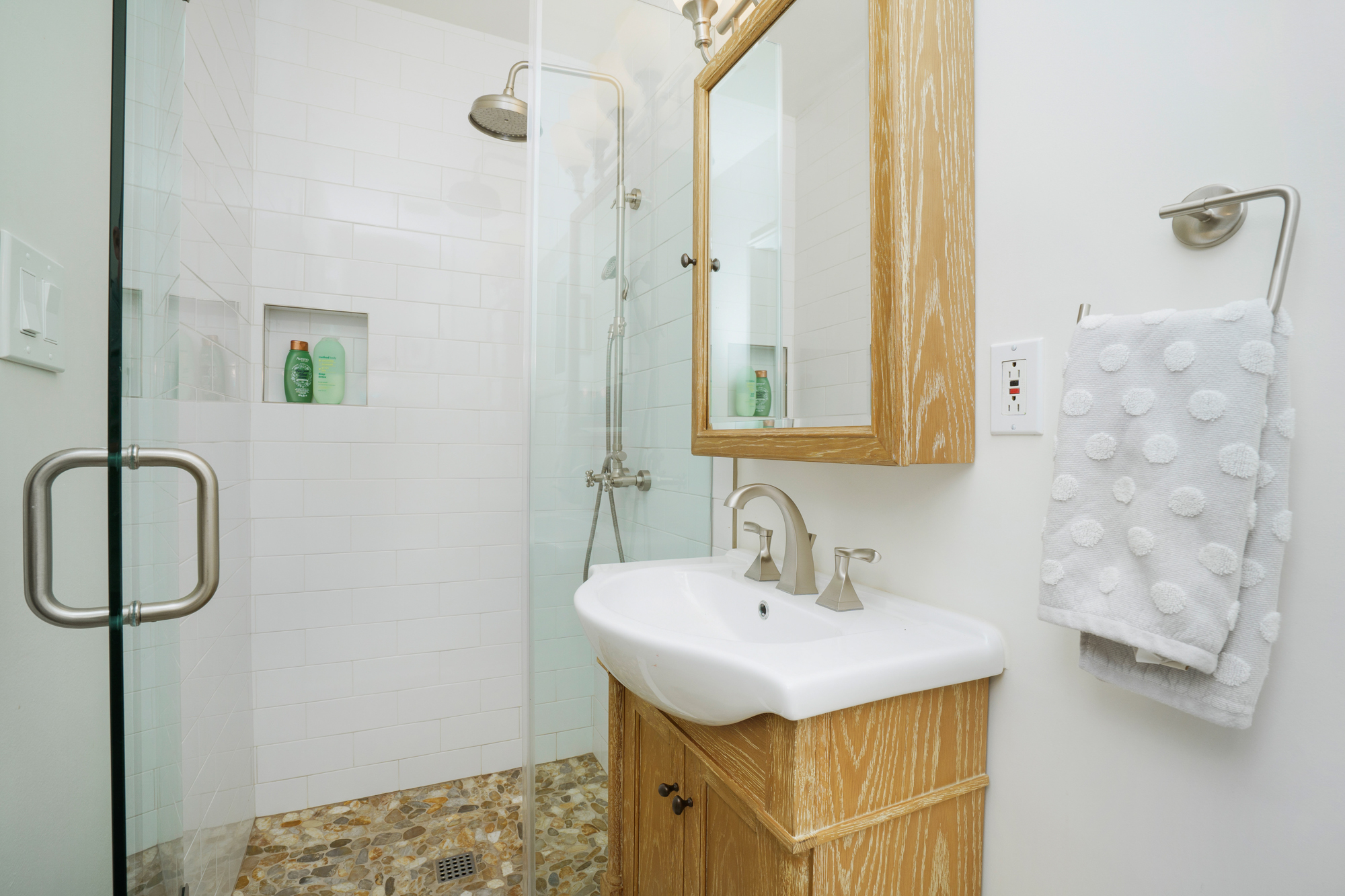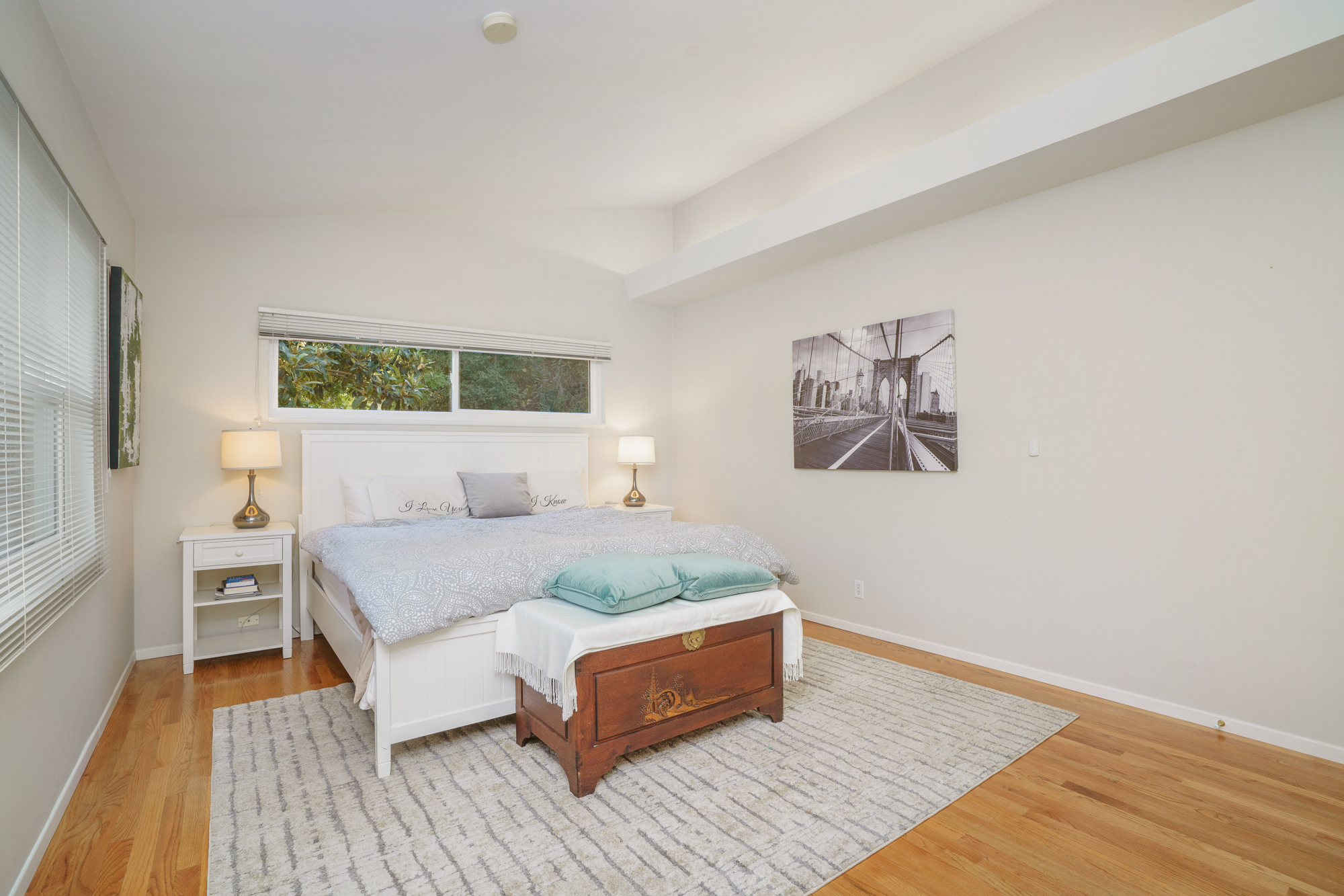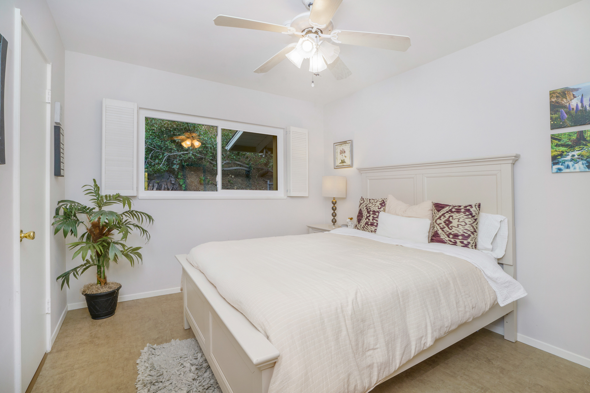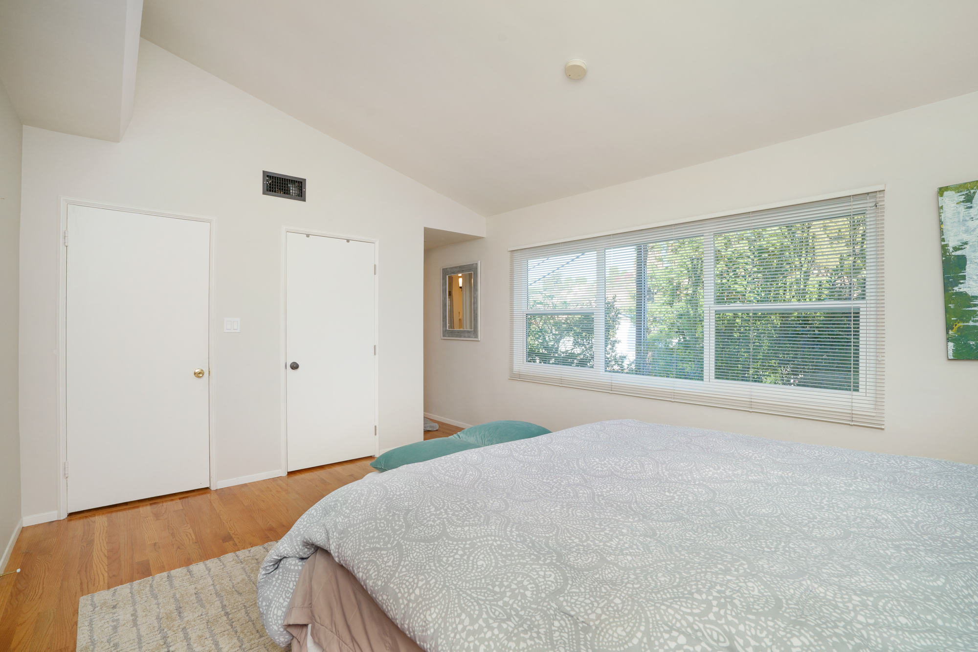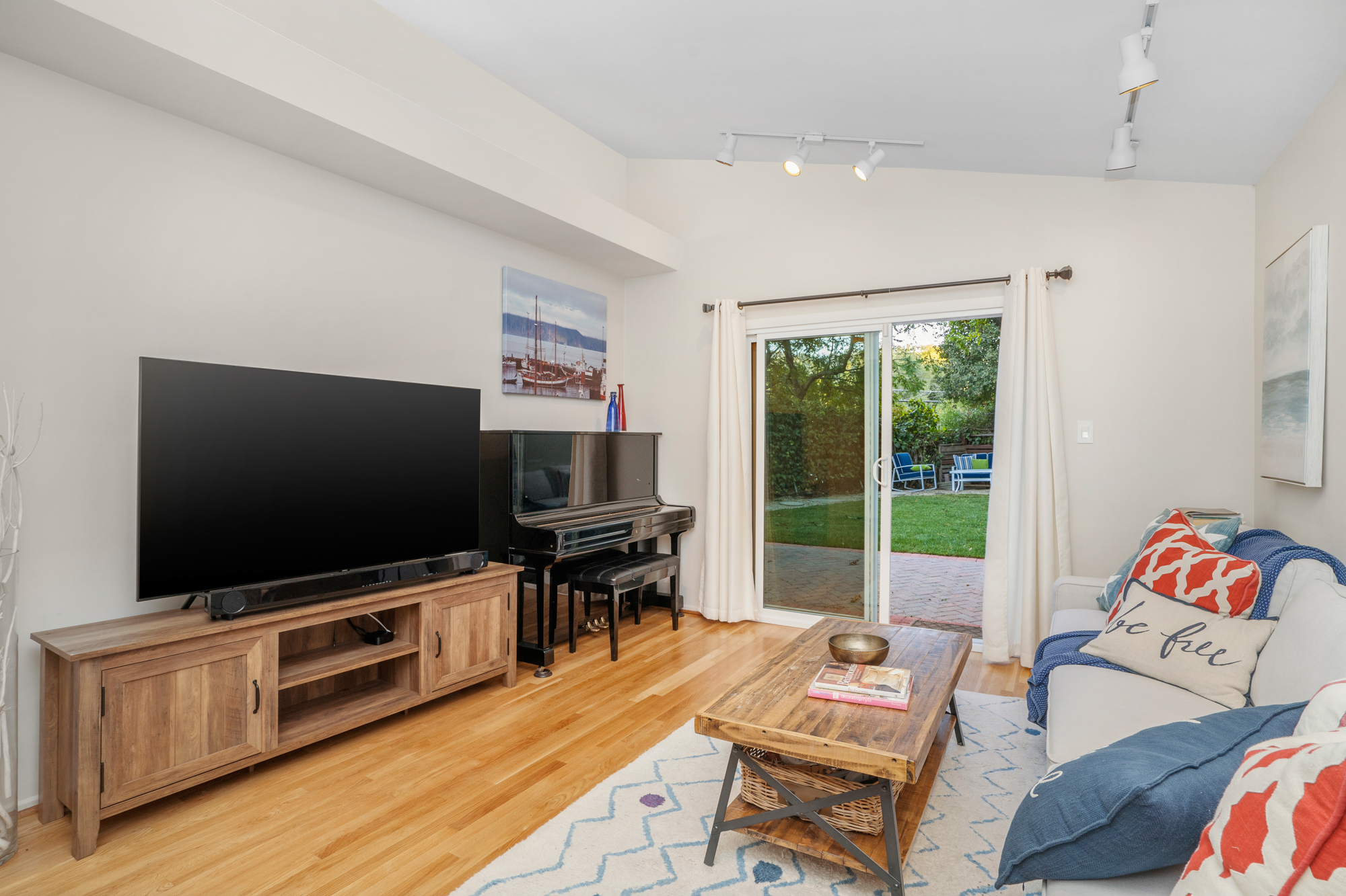 This brilliant Mid-Century contemporary home is located in the desirable South-of-the-Boulevard Sherman Oaks hills. Tucked away well above the street, this home offers privacy and a sense of tranquility, with its towering pine trees on the hillside above. This 4 bed 3.5 bath home with numerous windows and glass doors features uplifting mountain views, encouraging indoor-outdoor living. You’ll love coming home to this country kitchen featuring a pantry area, built-in wood-paneled Sub-Zero fridge, stainless steel Thermador Professional range & hood, custom cabinetry, recessed lighting, and spacious adjoining laundry area. An open living and dining room layout with hardwood floors and a modern brick wall fireplace creates an inviting and cozy spot for family gatherings or social events. Recent upgrades include brand new bathrooms, new front door, new double paned windows, and hardwood flooring in two of the bedrooms. With an en-suite bathroom, the fourth bedroom makes a fantastic guest room, office, or at-home gym. With an attached garage that includes built-in storage cabinets, this home is move-in ready. Enjoy the updated landscaped backyard, with brick paved patio, surrounded by lush greenery and plenty of room for outdoor dining. Ideally situated, only minutes to Ventura Blvd, the Galleria, Arclight Cinemas and great restaurants, as well as quick freeway access to all Valley and Westside destinations.