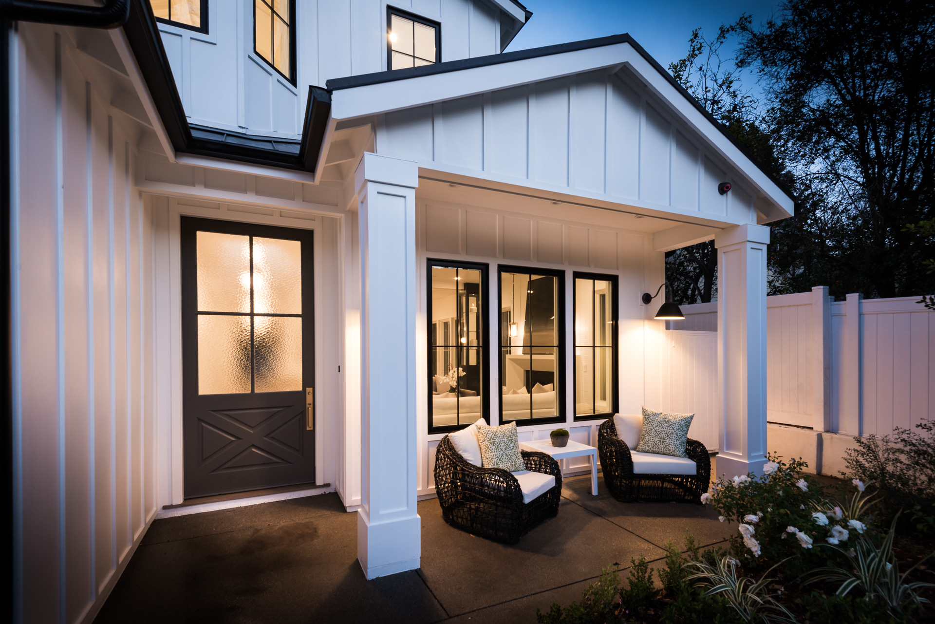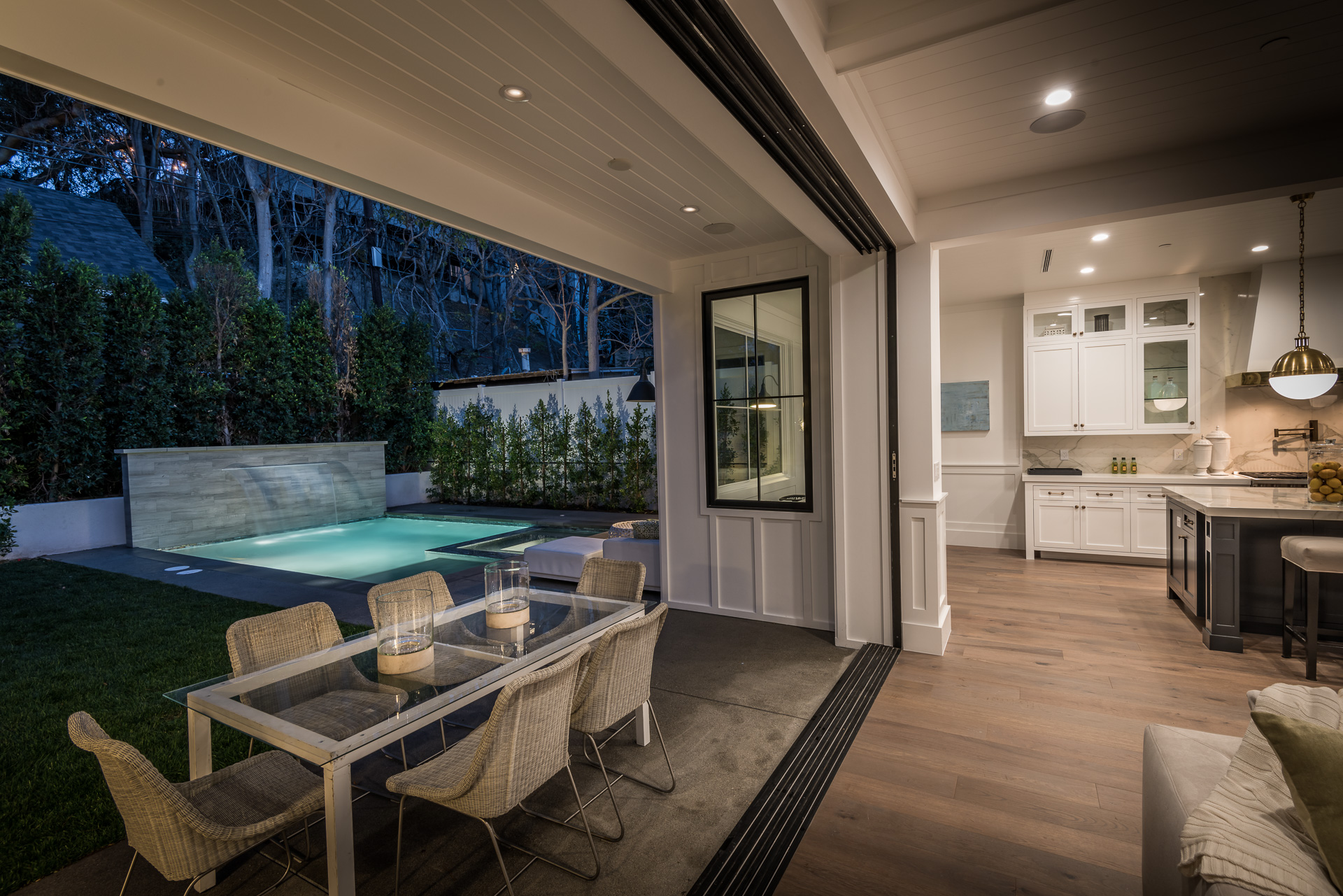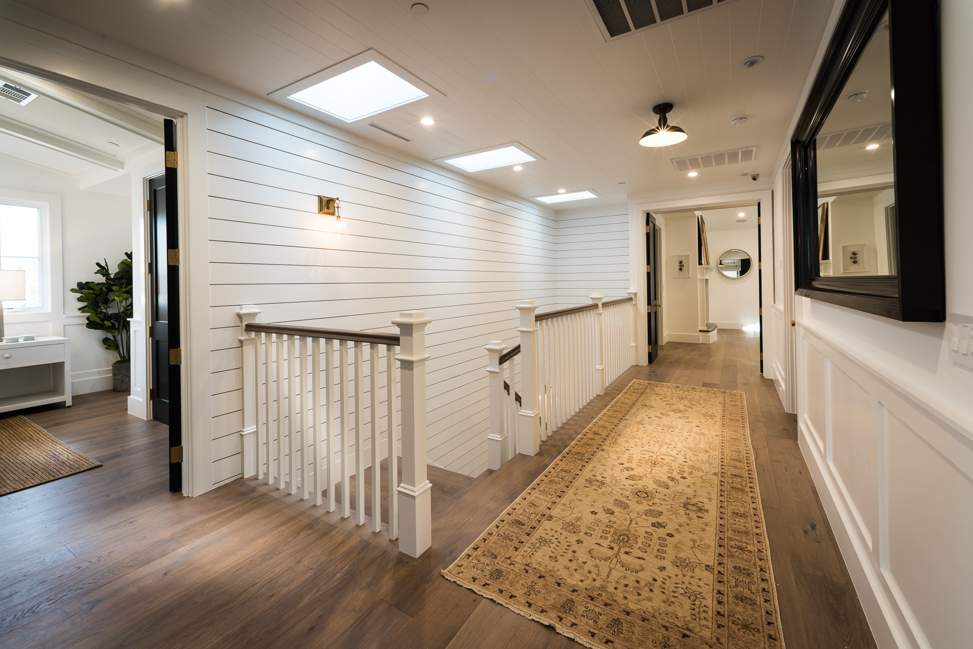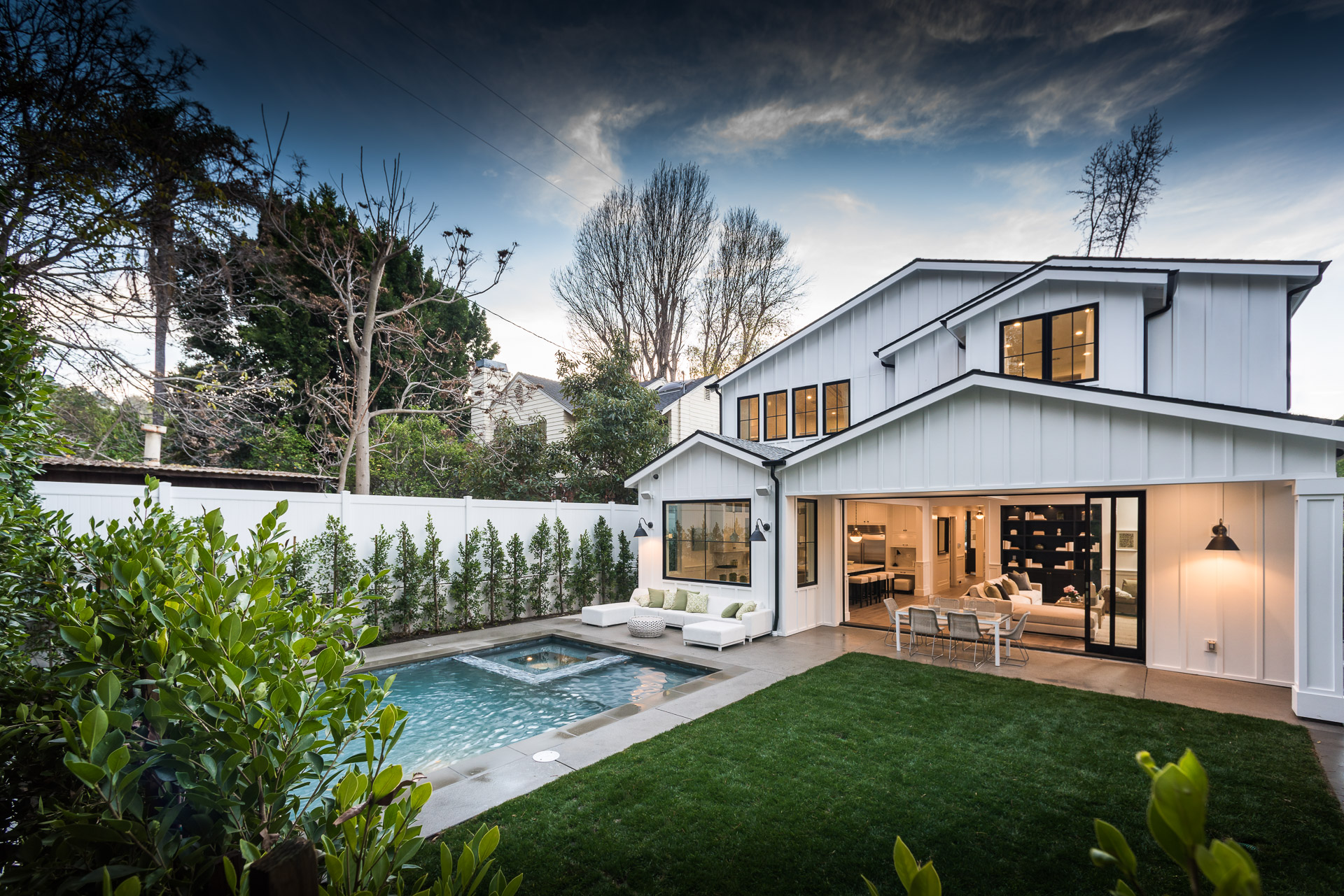 This exquisite new construction two story modern farm house with 5 bedrooms, den, and 6 baths is focused on aesthetic simplicity and impeccable quality. Celebrate family life with a deluxe kitchen including top of the line appliances, stylish pendant lights, and an over-sized island. Hardwood flooring and use of rich materials make a timeless and natural appearance. Gabled bedroom ceilings create a sense of grandeur. Board and batten wainscoting enrich the interior and exterior walls with elegant detail. Coffered ceilings throughout introduce texture and audio comfort to the home. The bedrooms offer generous light, private baths, large closets, and unique light fixtures. The formal Dining room with great room make a bold appearance with floor to ceiling curio cabinets, a modern art chandelier, and fireplace. The stunning waterfall pool in the large backyard can be easily accessed from the living room floor to ceiling glass sliding doors. Clean lines and high end luxury finishes throughout, for the real estate aficionado, every detail is in place.