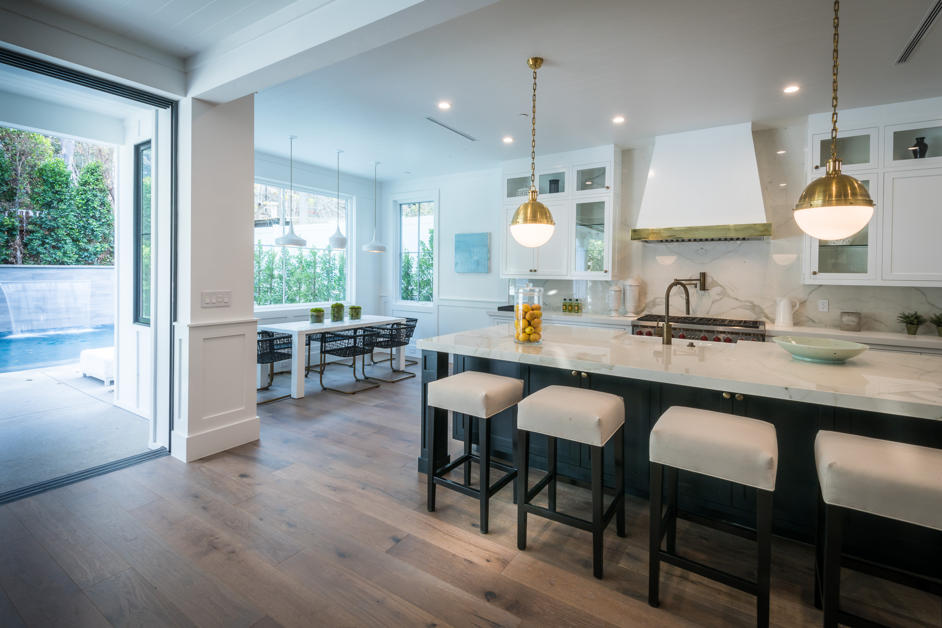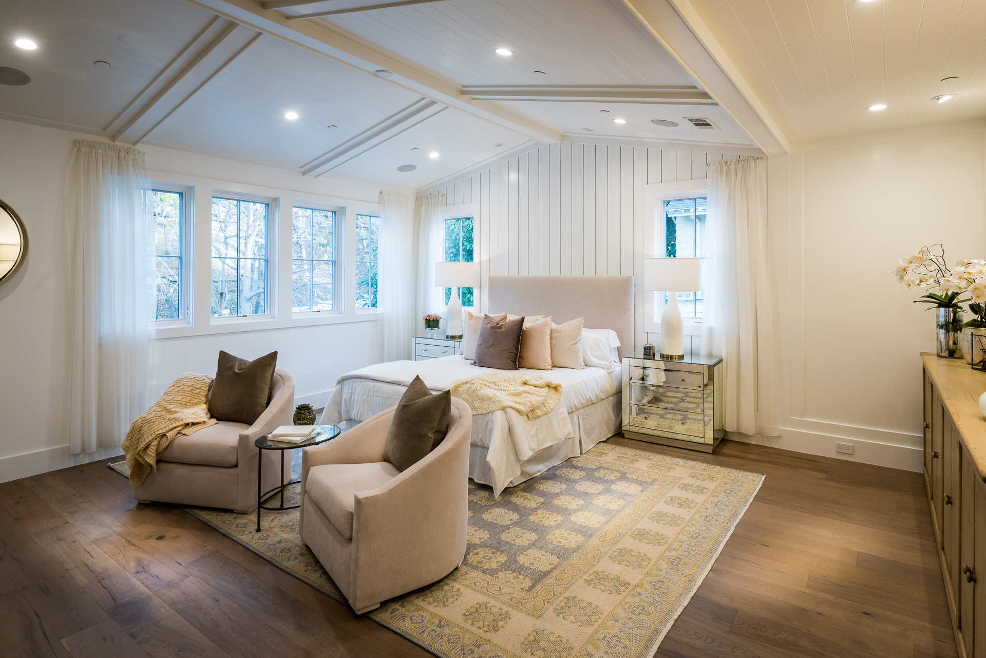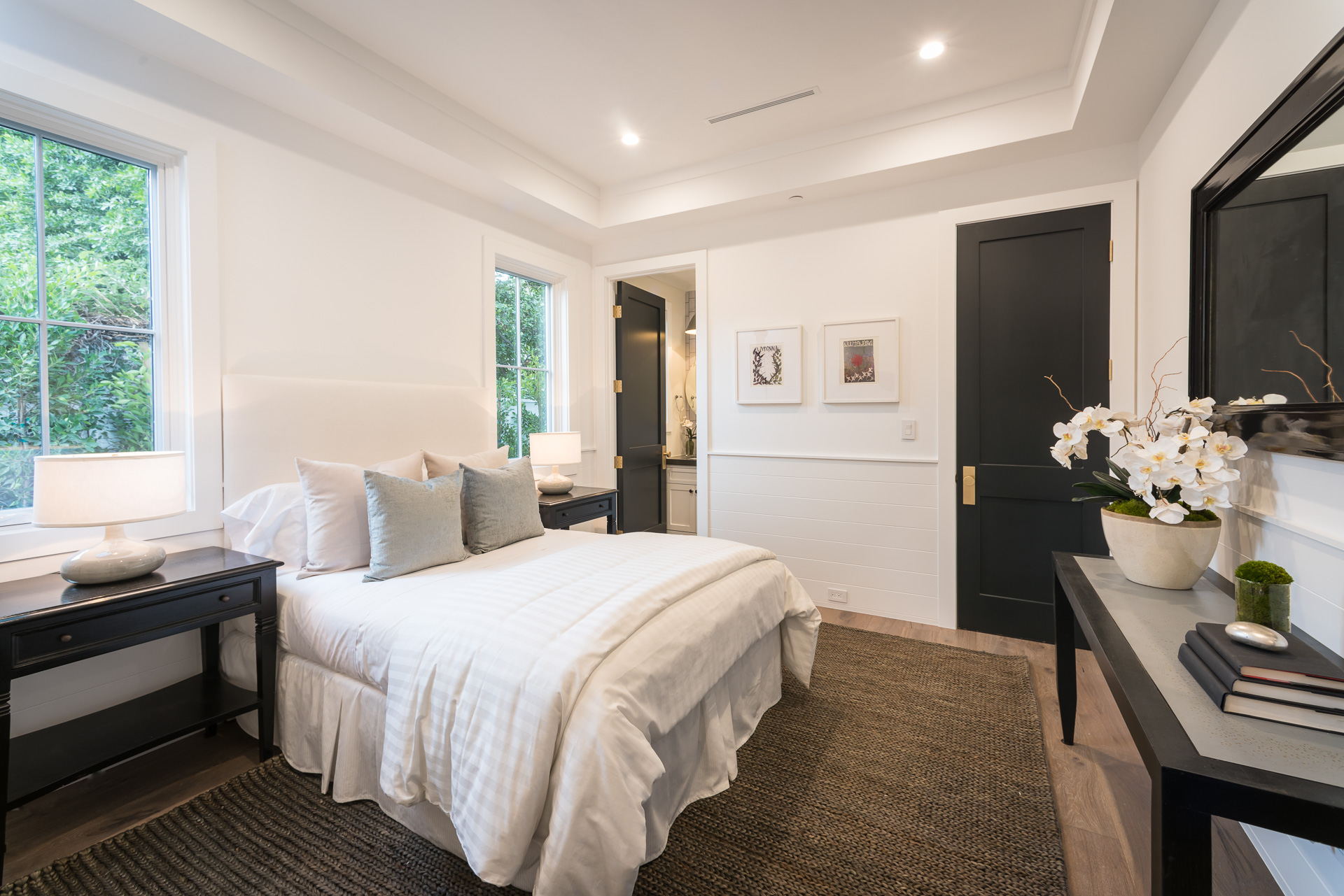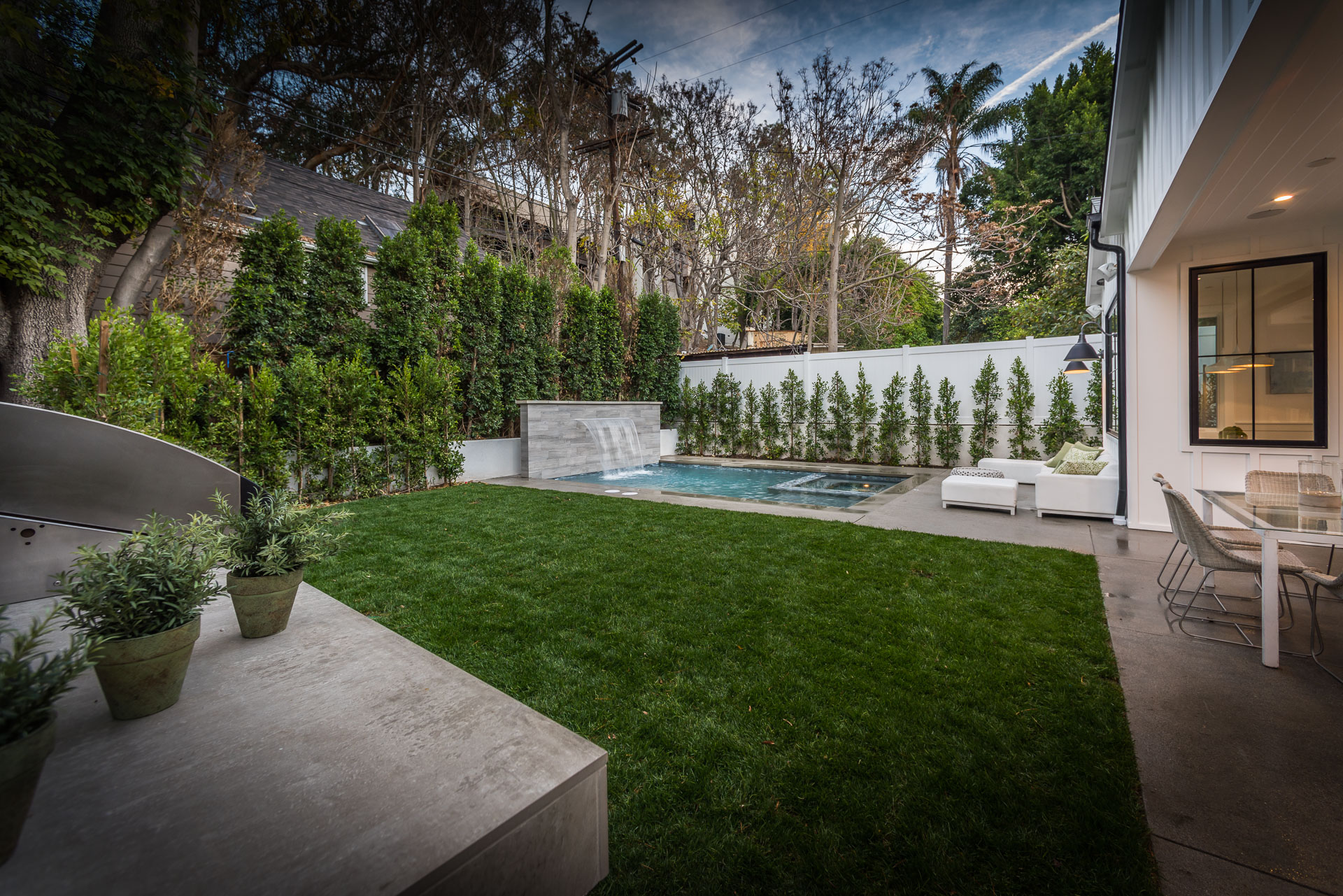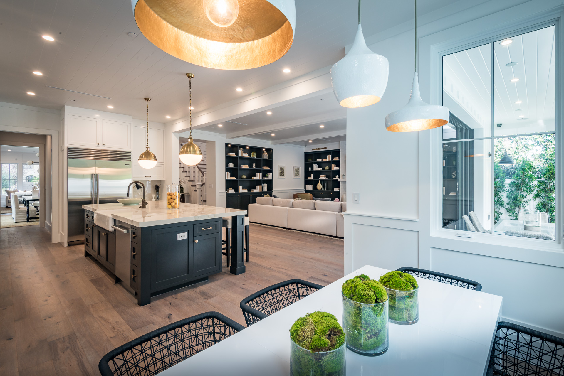 This exquisite new construction two story modern farm house with 5 bedrooms, den, and 6 baths is focused on aesthetic simplicity and impeccable quality. Celebrate family life with a deluxe kitchen including top of the line appliances, stylish pendant lights, and an over-sized island. Hardwood flooring and use of rich materials make a timeless and natural appearance. Gabled bedroom ceilings create a sense of grandeur. Board and batten wainscoting enrich the interior and exterior walls with elegant detail. Coffered ceilings throughout introduce texture and audio comfort to the home. The bedrooms offer generous light, private baths, large closets, and unique light fixtures. The formal Dining room with great room make a bold appearance with floor to ceiling curio cabinets, a modern art chandelier, and fireplace. The stunning waterfall pool in the large backyard can be easily accessed from the living room floor to ceiling glass sliding doors. Clean lines and high end luxury finishes throughout, for the real estate aficionado, every detail is in place.