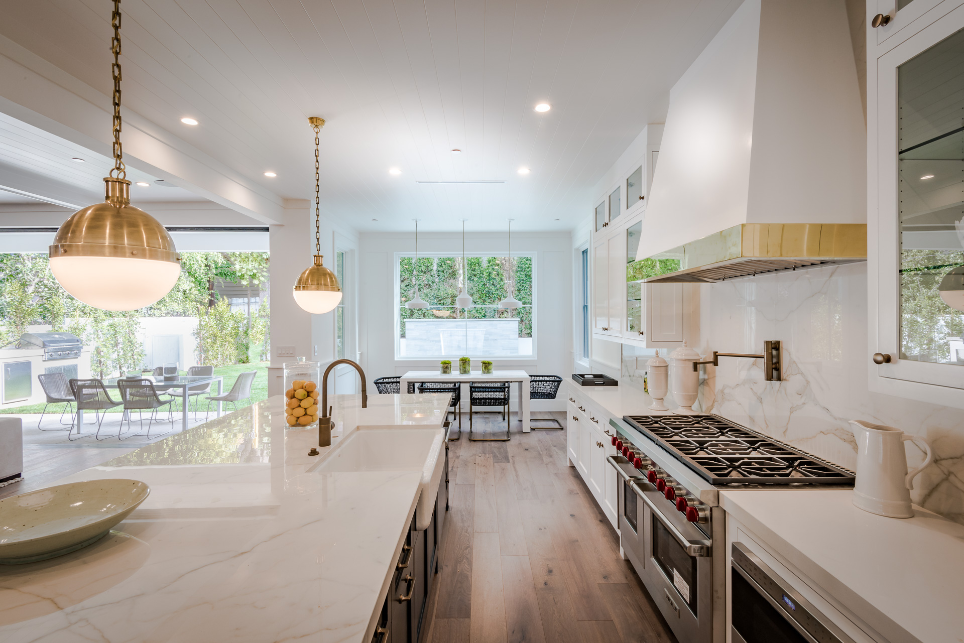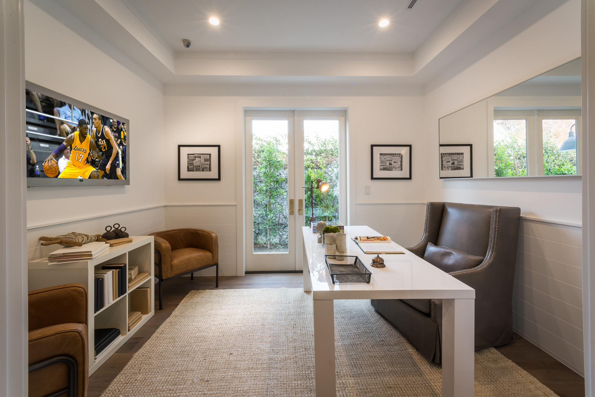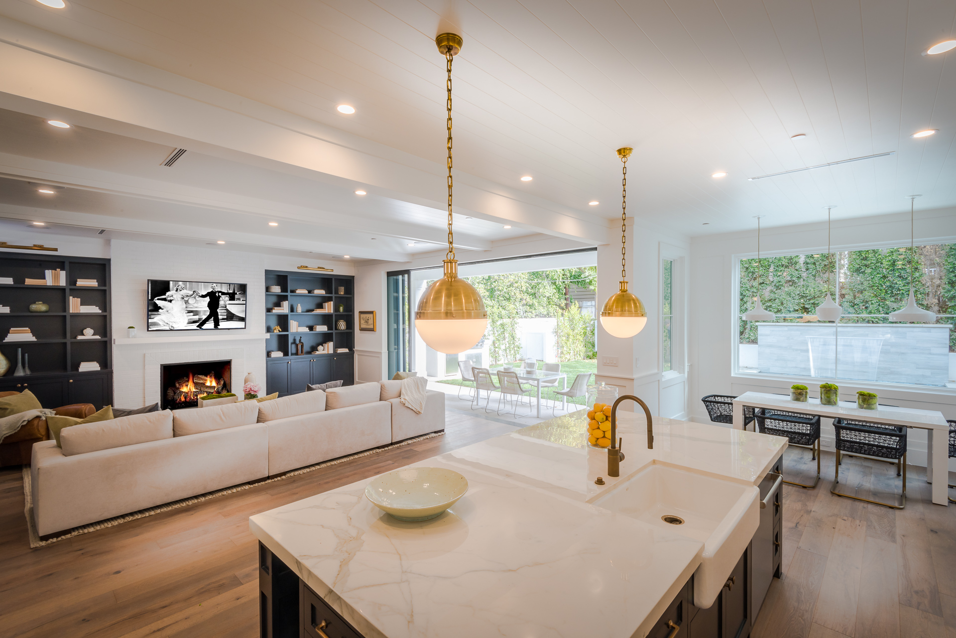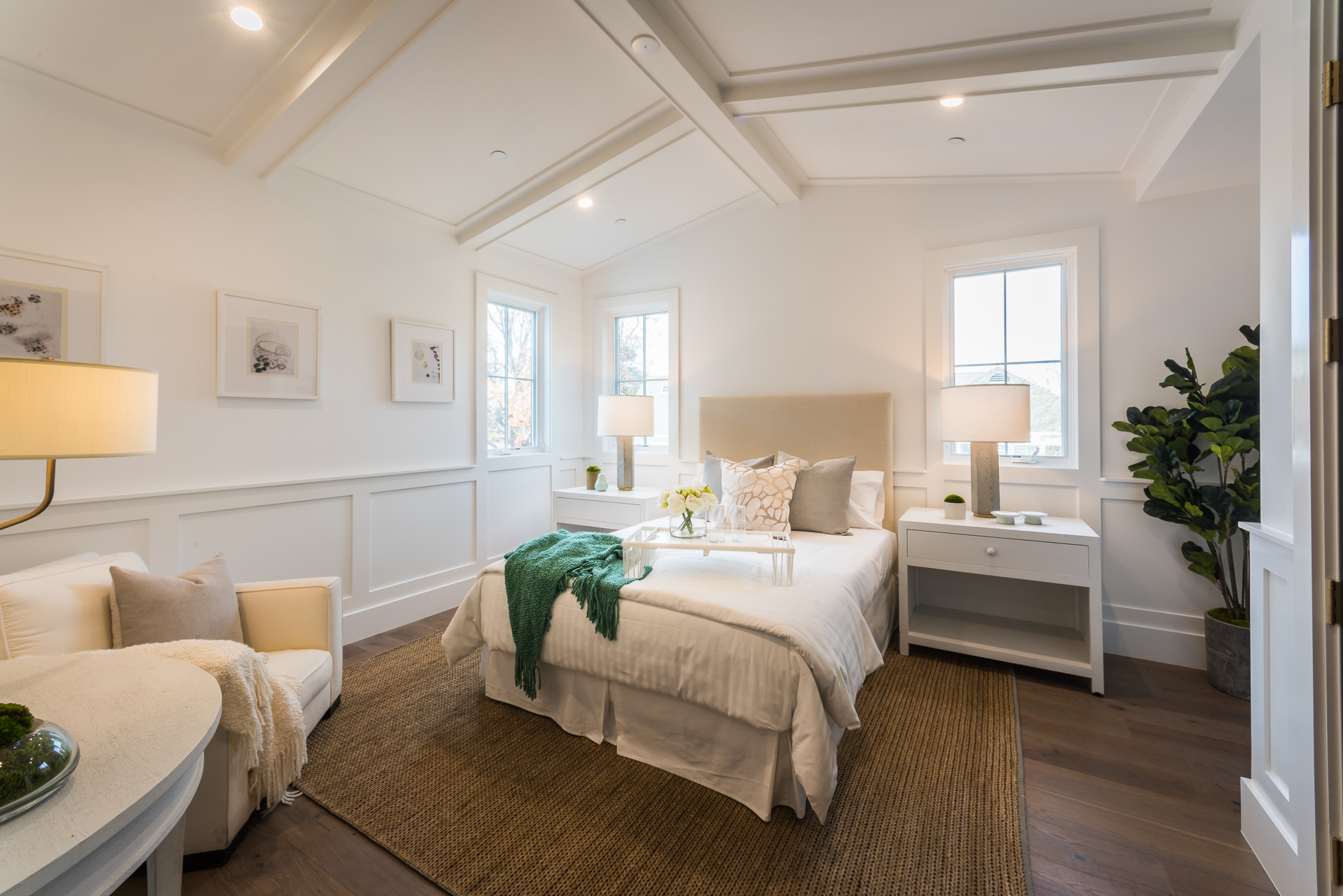 This exquisite new construction two story modern farm house with 5 bedrooms, den, and 6 baths is focused on aesthetic simplicity and impeccable quality. Celebrate family life with a deluxe kitchen including top of the line appliances, stylish pendant lights, and an over-sized island. Hardwood flooring and use of rich materials make a timeless and natural appearance. Gabled bedroom ceilings create a sense of grandeur. Board and batten wainscoting enrich the interior and exterior walls with elegant detail. Coffered ceilings throughout introduce texture and audio comfort to the home. The bedrooms offer generous light, private baths, large closets, and unique light fixtures. The formal Dining room with great room make a bold appearance with floor to ceiling curio cabinets, a modern art chandelier, and fireplace. The stunning waterfall pool in the large backyard can be easily accessed from the living room floor to ceiling glass sliding doors. Clean lines and high end luxury finishes throughout, for the real estate aficionado, every detail is in place.