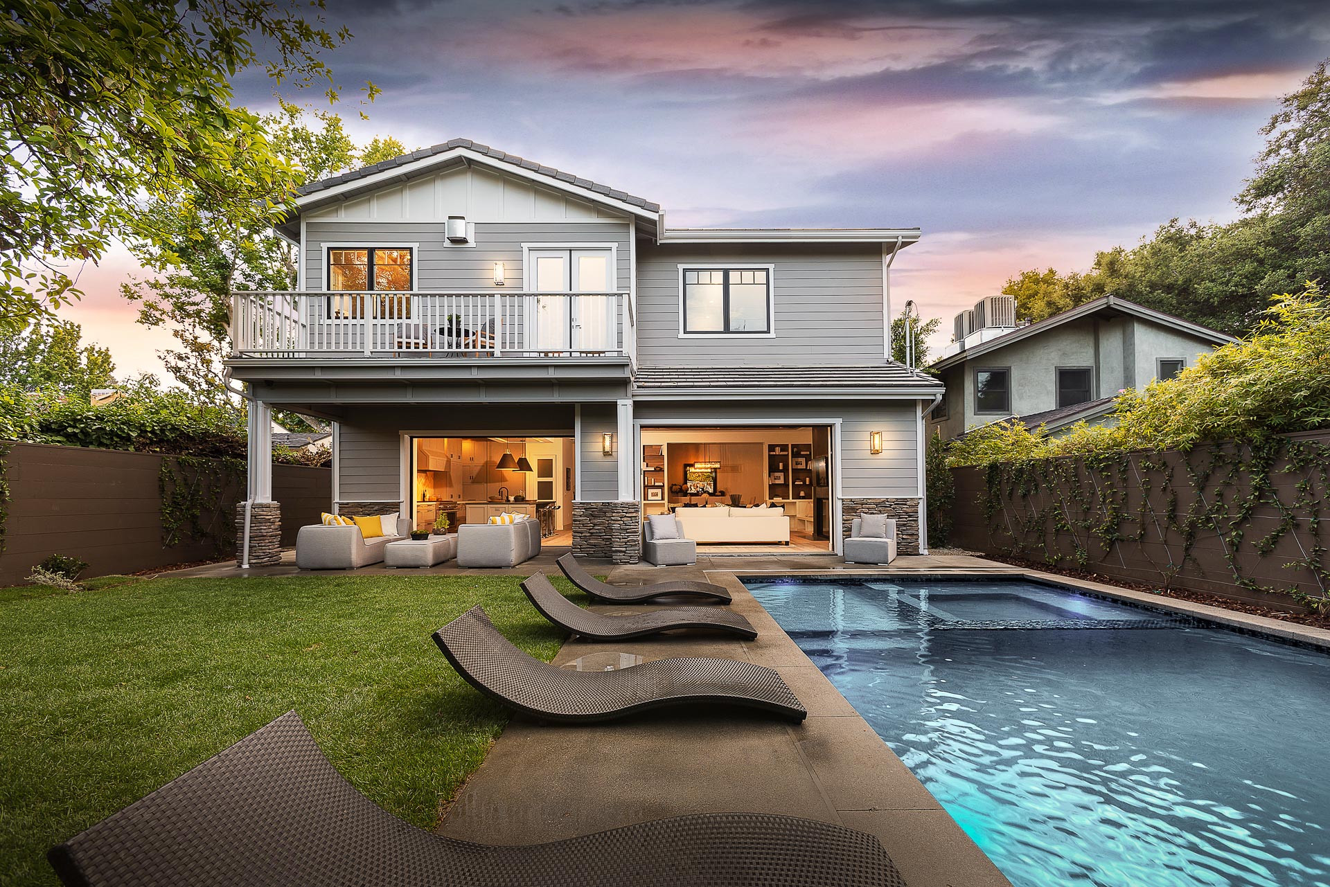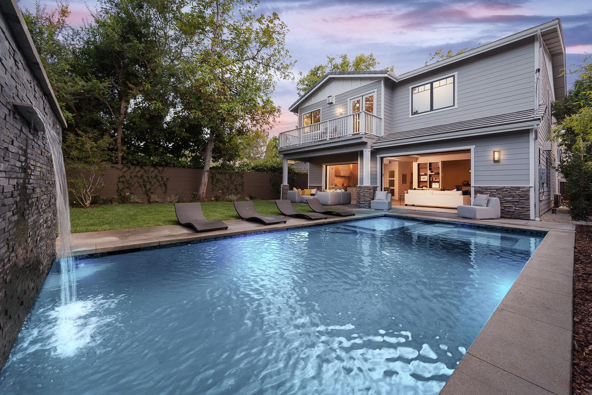 Tucked within the highly coveted Colfax Meadows, this masterfully designed and carefully crafted Studio City home is unlike any other! Boasting 5 bedrooms, 4 1/2 bathrooms, a custom kitchen styled w/ a “Herringbone” patterned White Oak backsplash, custom cabinetry, a “Basaltina” limestone center island, walk in pantry, & Thermador branded appliances. Step into the family room, look up and admire the custom White Oak designer ceiling, a stunning piece of craftsmanship that will surely be a conversation piece at your gatherings! Wide pocket doors, open up to the large backyard featuring a patio, waterfall style pool & spa.The master suite is large and fit for a king & queen, with a large walk in closet, grand spa-like shower, “Newport Brass” faucets in flat black, standalone tub, & private balcony. Unique highlights of the home include: Sonos Music surround sound, touchpad alarm, Lutron Lighting System, MyQ garage door, & video camera surveillance. For the green and eco-conscious family, this home was specially built by a Certified Green builder using the best in energy efficiency, water conservation and sustainable business practices.
