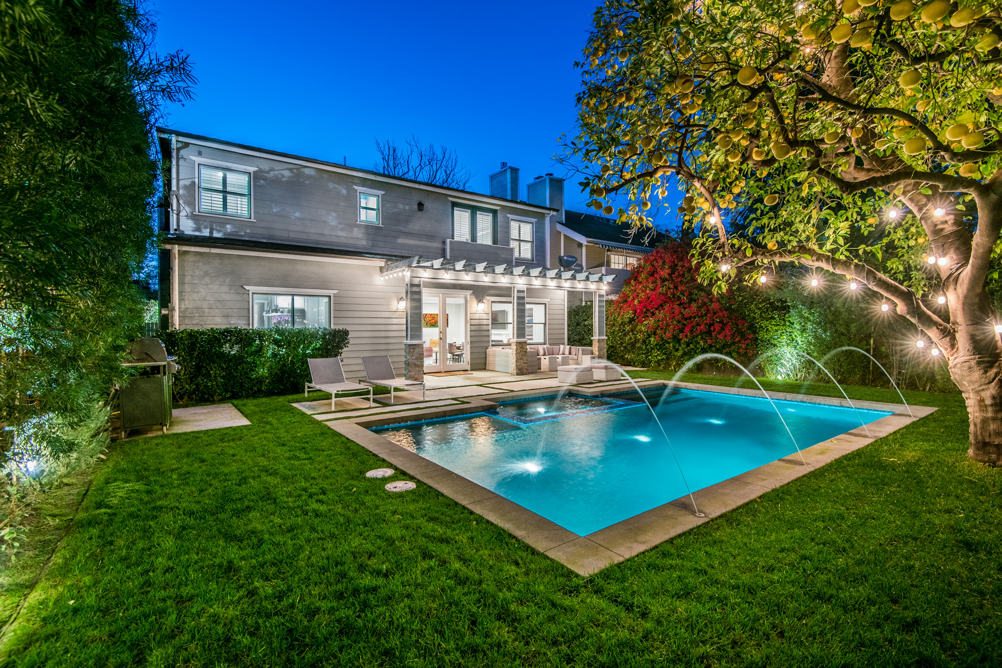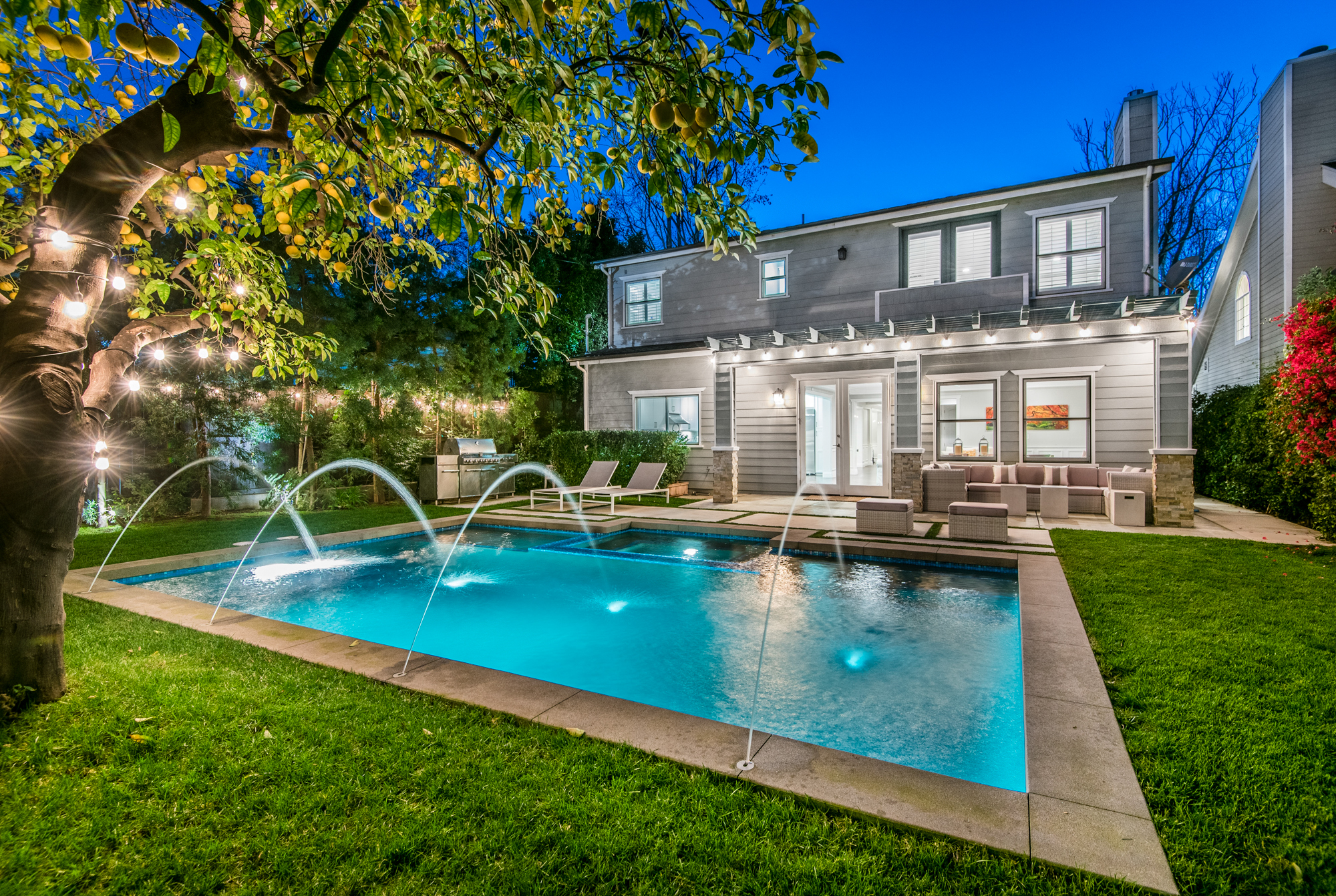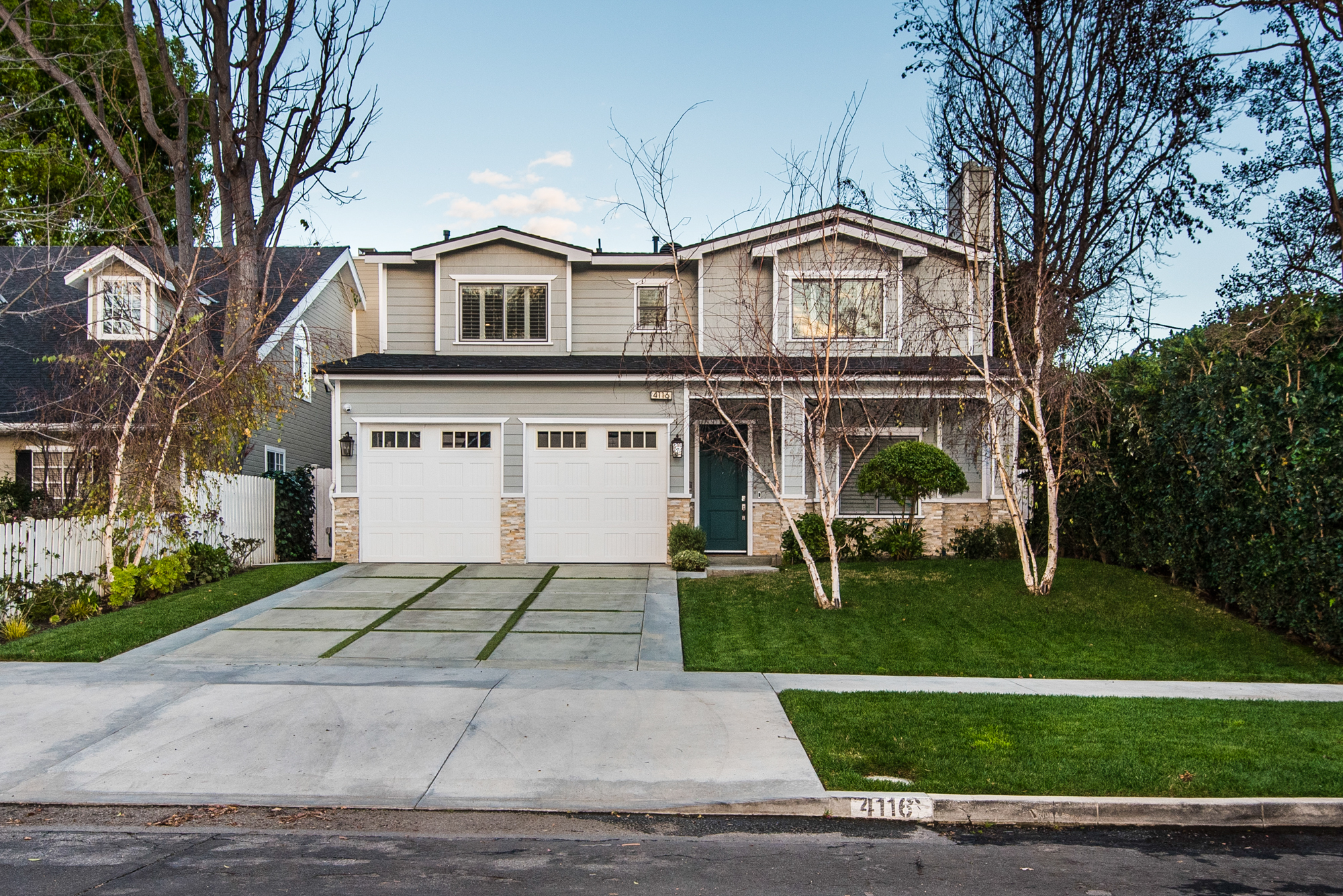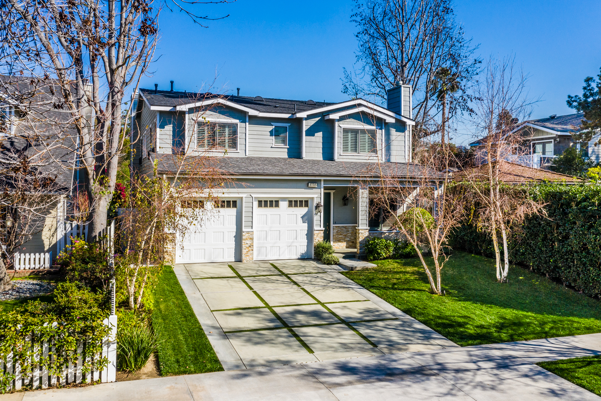 Immaculate newer construction 2 story Cape Cod family home located in the highly sought after "Footbridge Square" neighborhood and the award winning Carpenter School District. Walking distance to Ventura Blvd and the best shopping and restaurants Studio City has to offer. This custom home feels new from the moment you enter the front door. The many custom features include coffered and tray ceiling, wainscot paneling, custom moldings, hardwood floors and plantation shutters throughout. Formal living room and Dining room, dramatic open staircase with 2 story ceilings and windows that provide an abundance of natural light. The extra large gourmet kitchen features Dacor appliances, marble & quartz surfaces, a butlers pantry, and conveniently opens to the spacious entertainers family room. The master suite features a fireplace, dual walk-in closets, opulent bathroom with double sinks, spa tub and over-sized shower. The Oasis back yard features an open trellis patio area, pool & spa, BBQ area, and lushly landscaped grounds with lighting and grassy areas, ideal for outdoor living and entertaining.