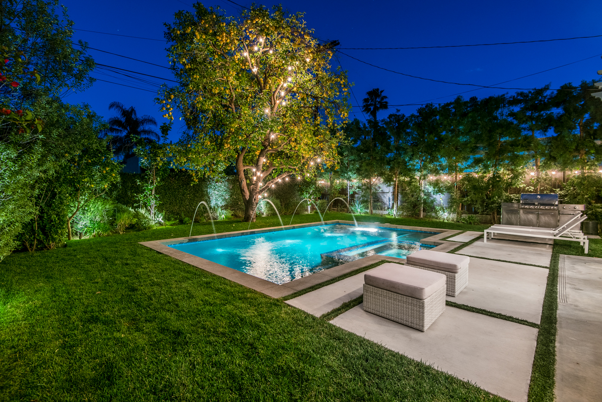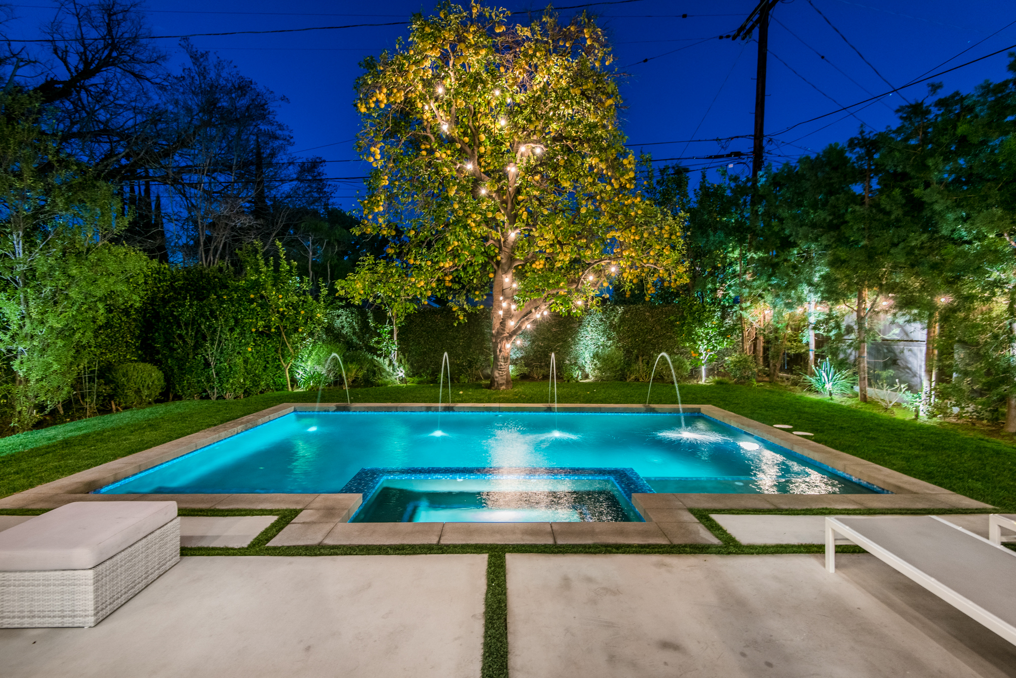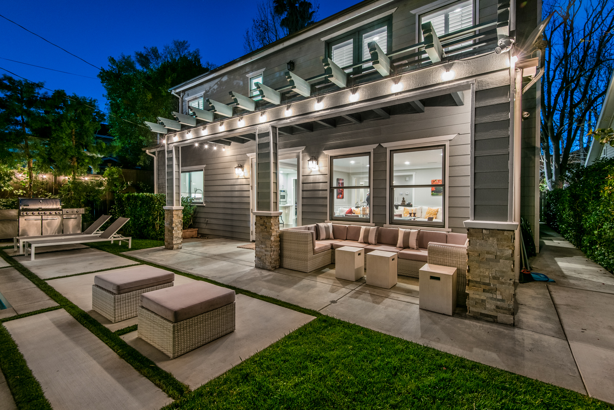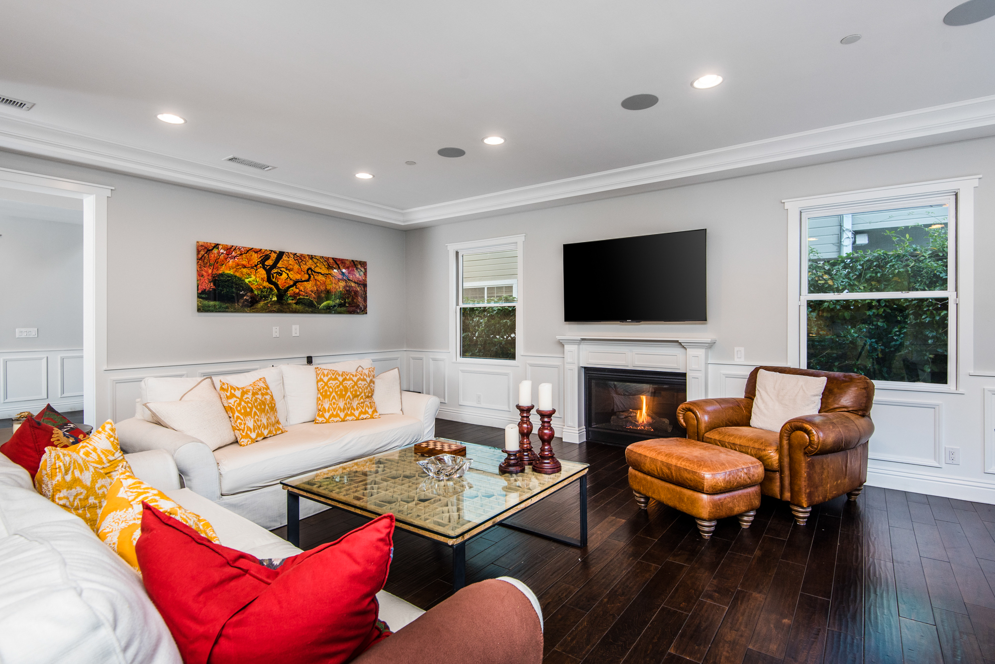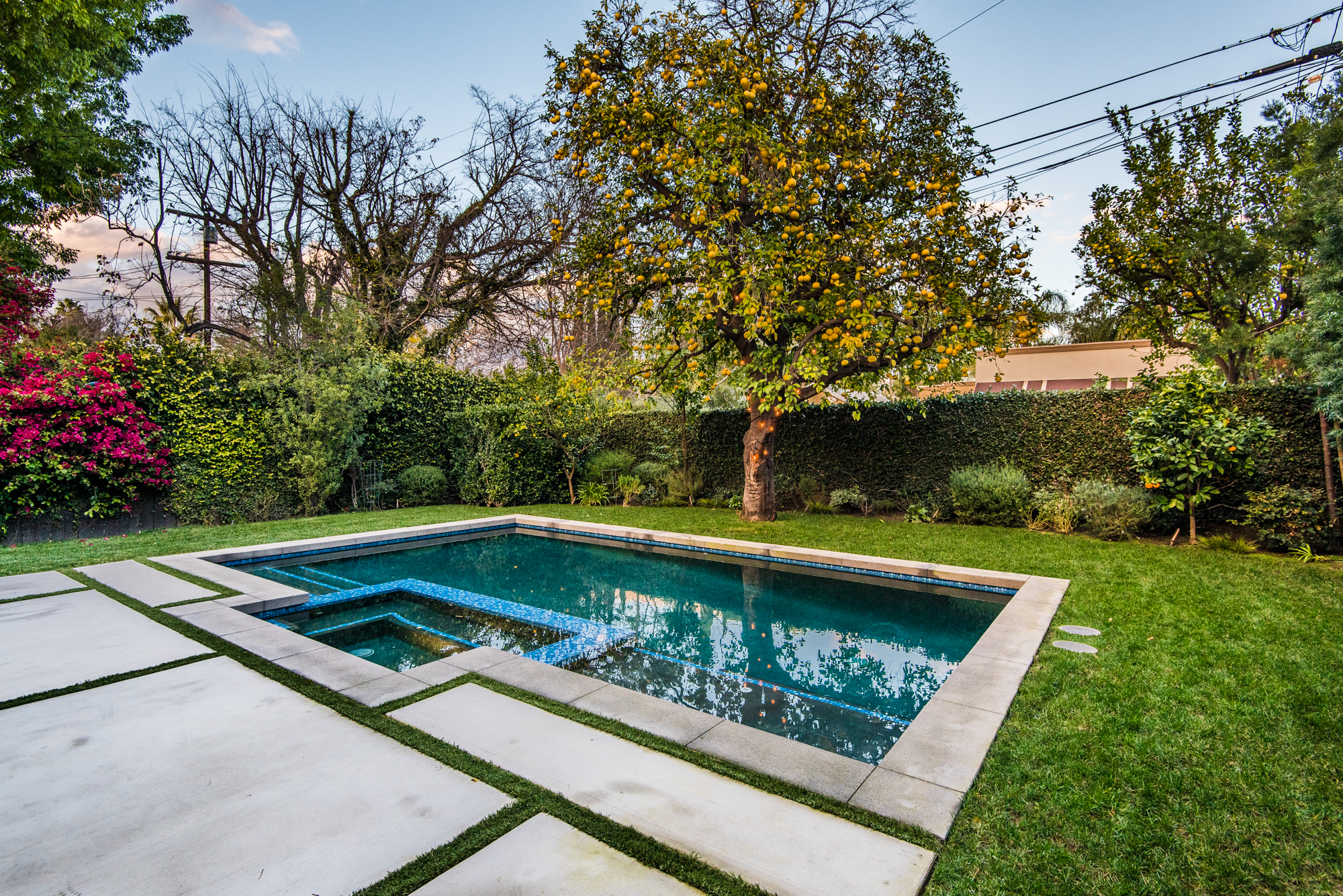 Immaculate newer construction 2 story Cape Cod family home located in the highly sought after "Footbridge Square" neighborhood and the award winning Carpenter School District. Walking distance to Ventura Blvd and the best shopping and restaurants Studio City has to offer. This custom home feels new from the moment you enter the front door. The many custom features include coffered and tray ceiling, wainscot paneling, custom moldings, hardwood floors and plantation shutters throughout. Formal living room and Dining room, dramatic open staircase with 2 story ceilings and windows that provide an abundance of natural light. The extra large gourmet kitchen features Dacor appliances, marble & quartz surfaces, a butlers pantry, and conveniently opens to the spacious entertainers family room. The master suite features a fireplace, dual walk-in closets, opulent bathroom with double sinks, spa tub and over-sized shower. The Oasis back yard features an open trellis patio area, pool & spa, BBQ area, and lushly landscaped grounds with lighting and grassy areas, ideal for outdoor living and entertaining.