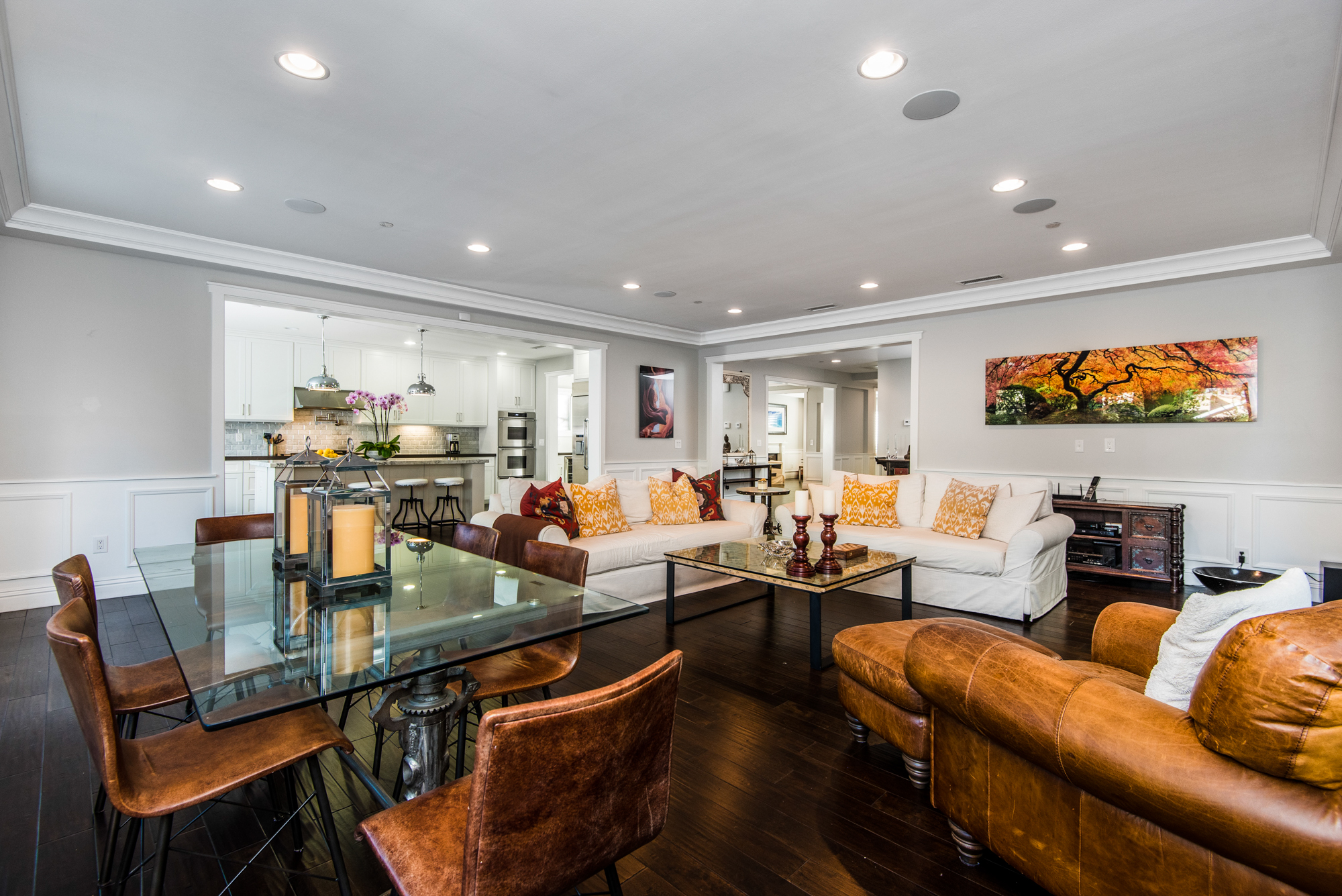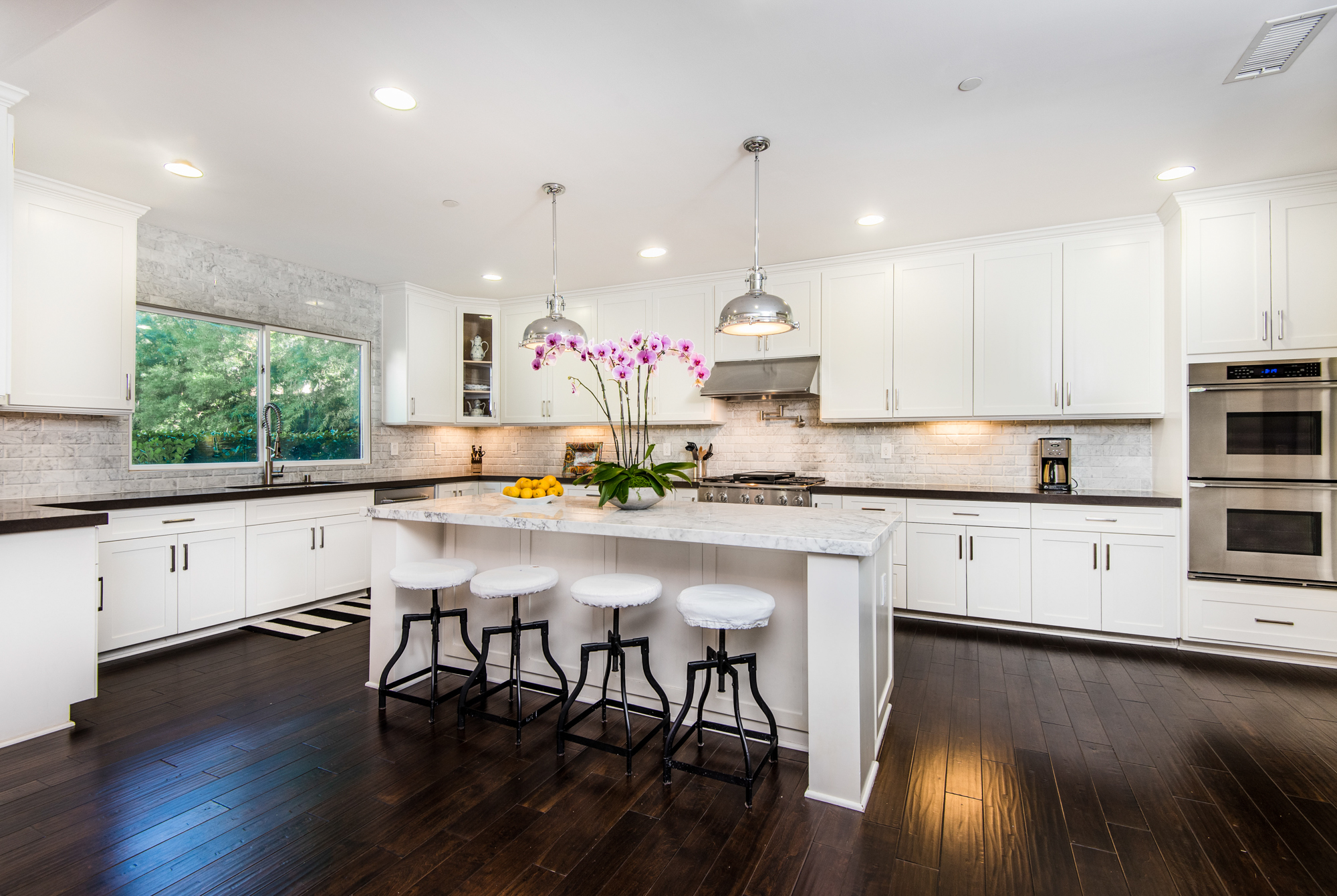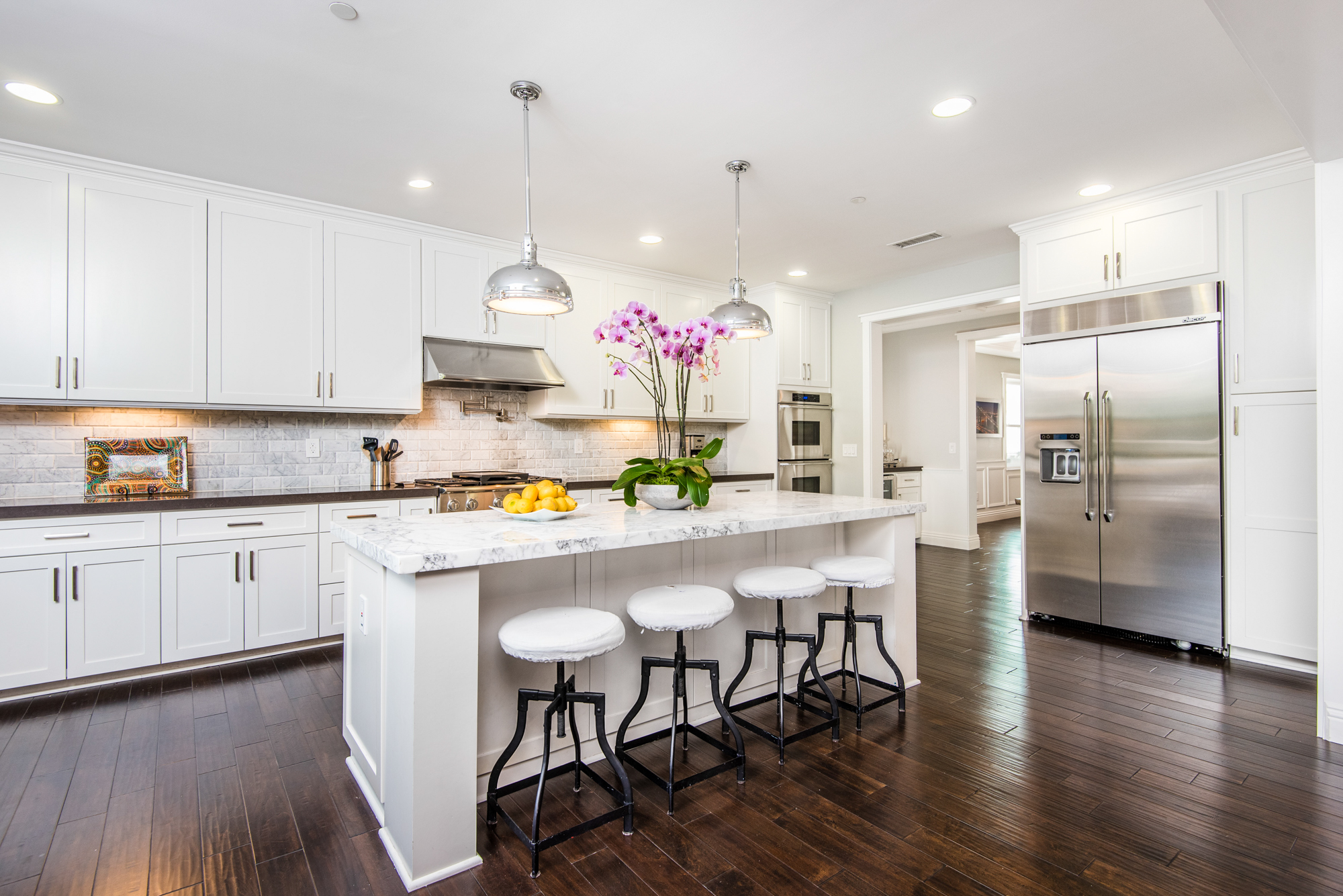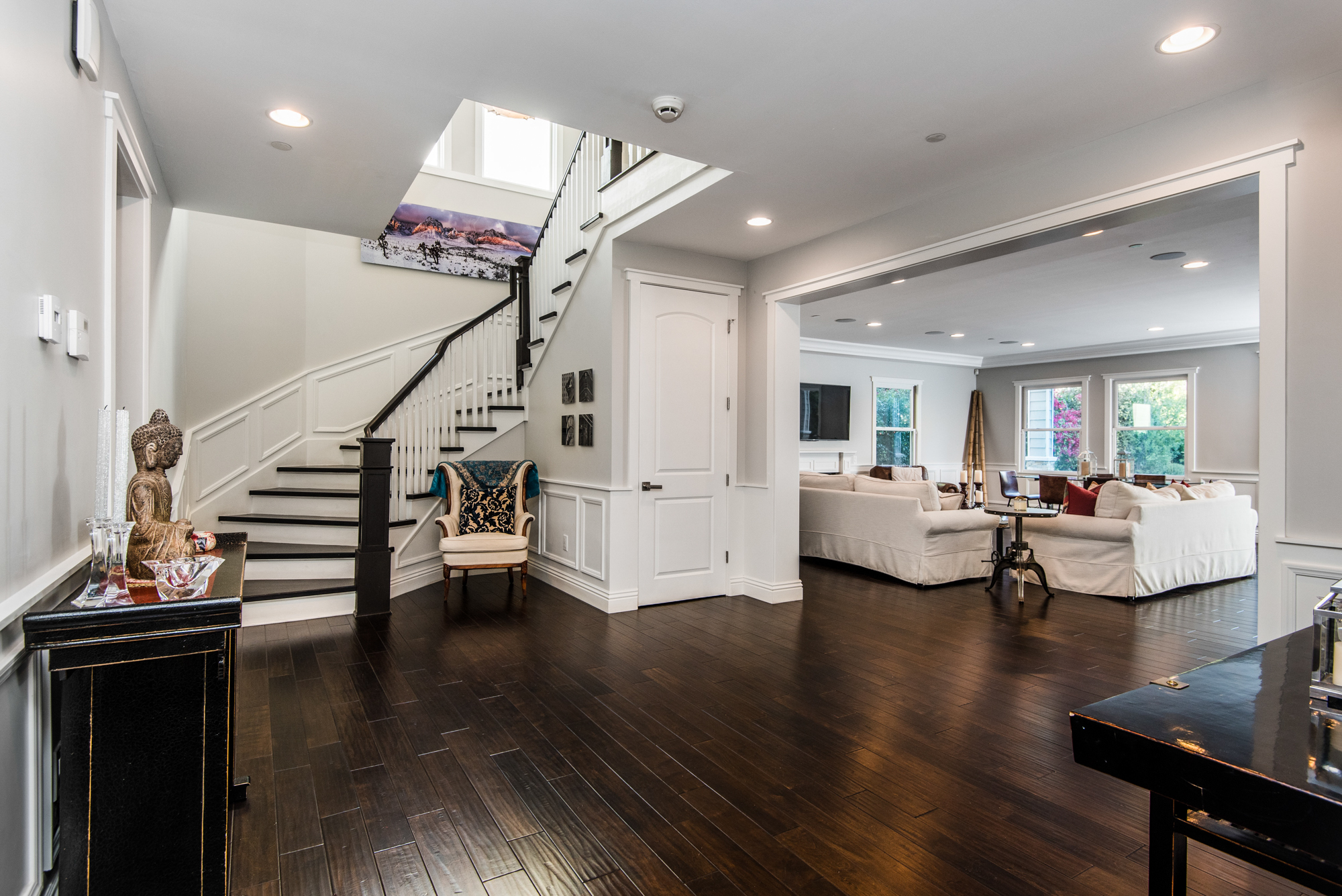 Immaculate newer construction 2 story Cape Cod family home located in the highly sought after "Footbridge Square" neighborhood and the award winning Carpenter School District. Walking distance to Ventura Blvd and the best shopping and restaurants Studio City has to offer. This custom home feels new from the moment you enter the front door. The many custom features include coffered and tray ceiling, wainscot paneling, custom moldings, hardwood floors and plantation shutters throughout. Formal living room and Dining room, dramatic open staircase with 2 story ceilings and windows that provide an abundance of natural light. The extra large gourmet kitchen features Dacor appliances, marble & quartz surfaces, a butlers pantry, and conveniently opens to the spacious entertainers family room. The master suite features a fireplace, dual walk-in closets, opulent bathroom with double sinks, spa tub and over-sized shower. The Oasis back yard features an open trellis patio area, pool & spa, BBQ area, and lushly landscaped grounds with lighting and grassy areas, ideal for outdoor living and entertaining.
