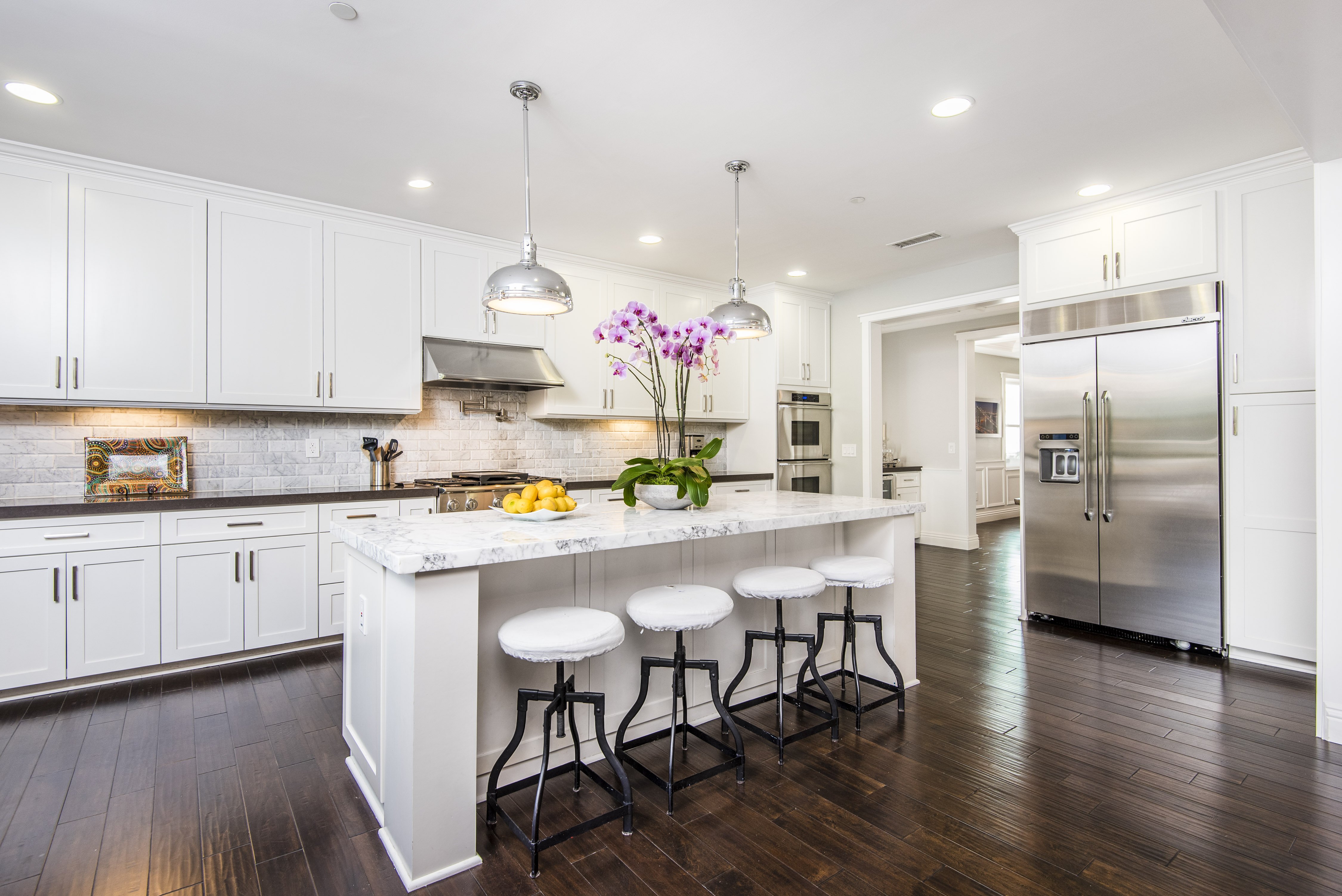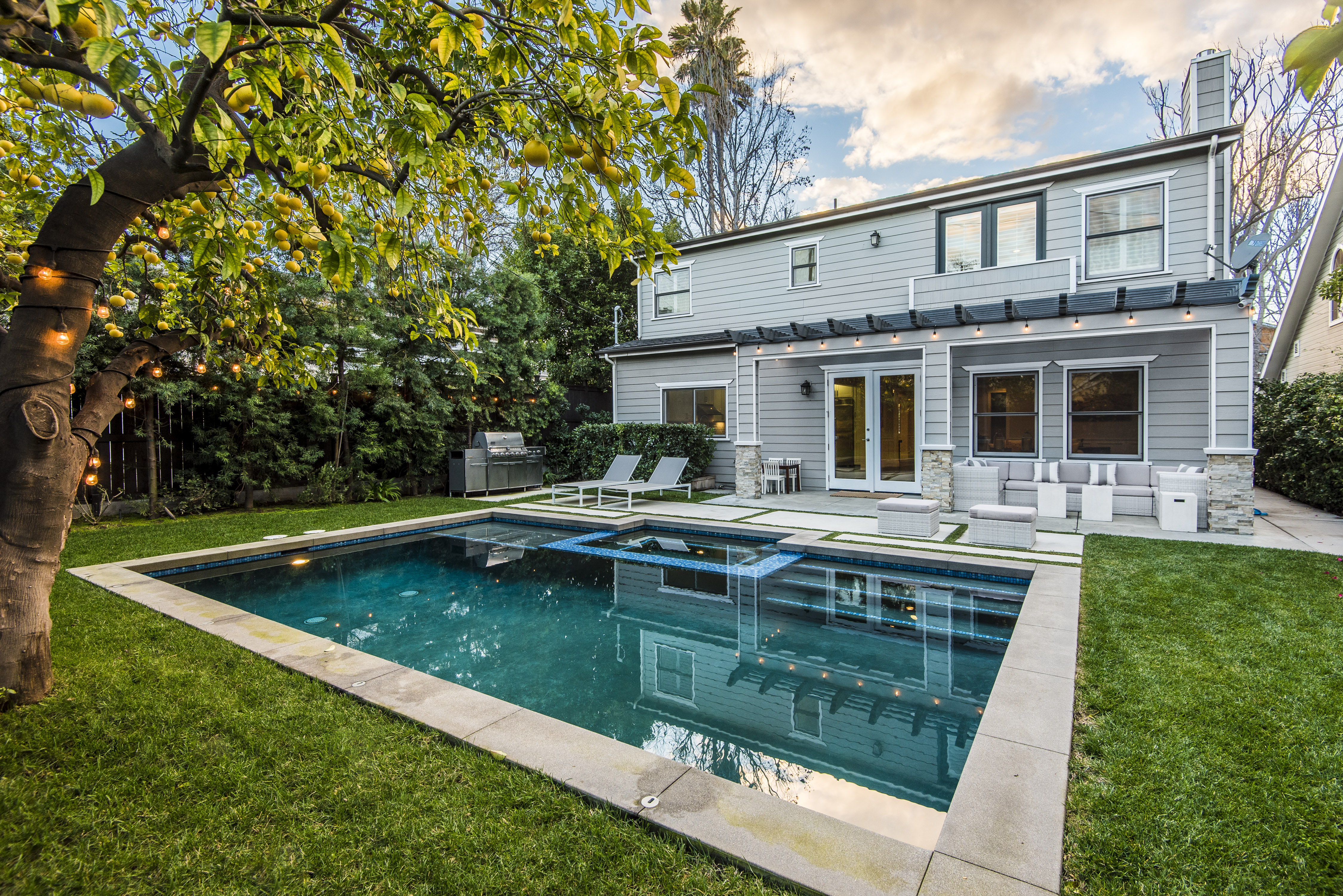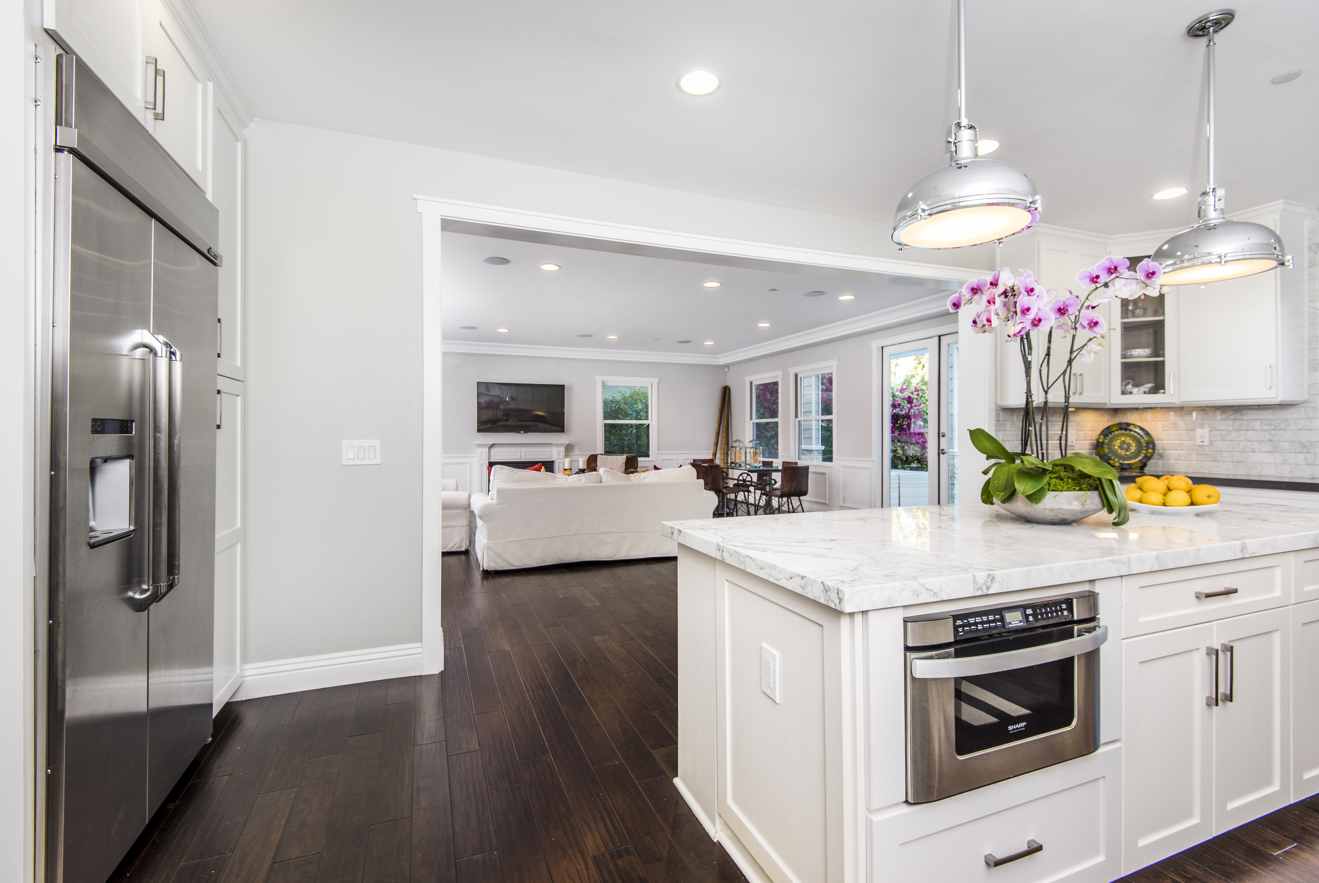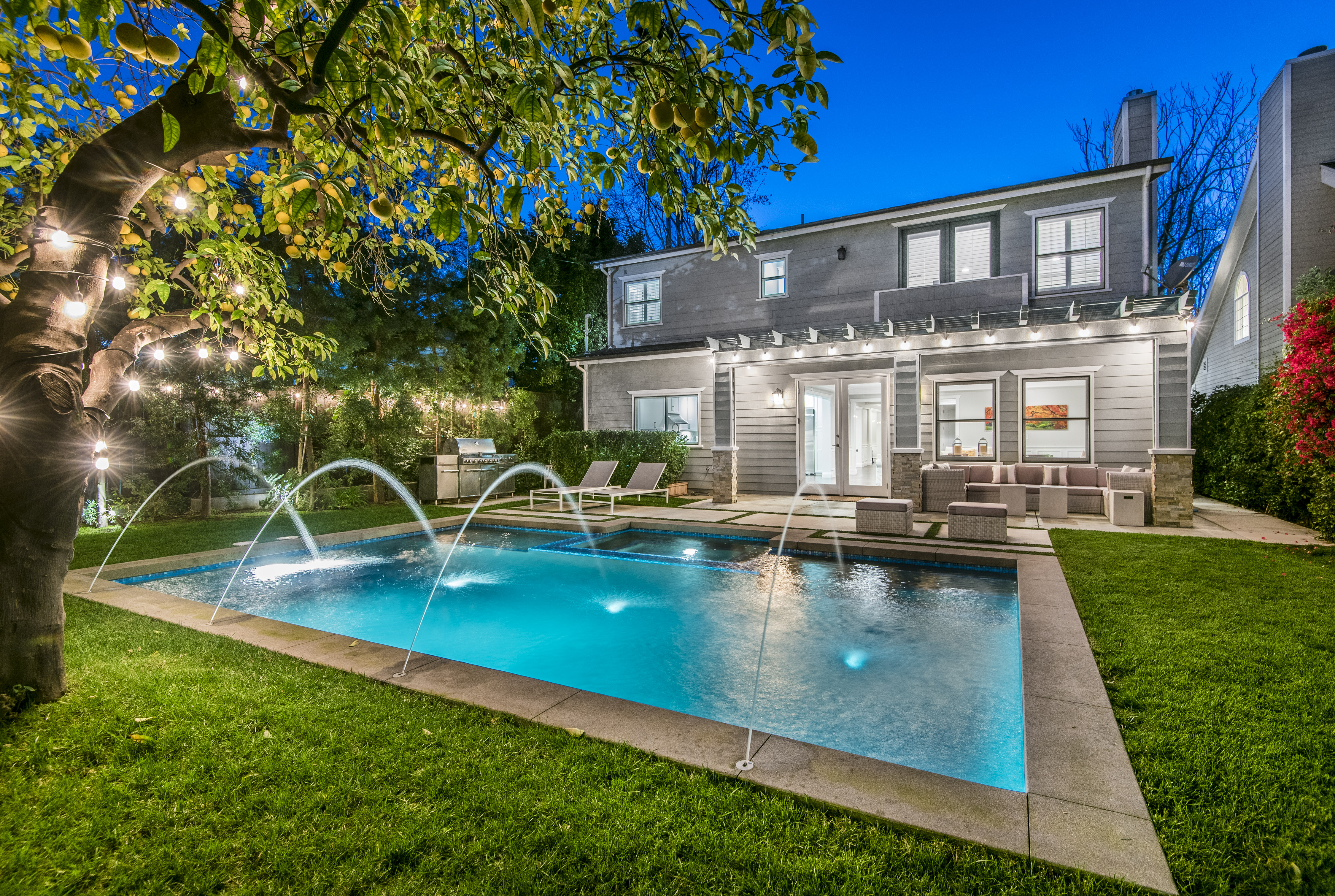 Newer home offers the perfect blend of upscale and casual living, mingling elegance, ease and custom design. Chef's kitchen with Carrera marble single slab kitchen island and Carrera marble beveled subway tile backsplash, maple cabinetry, Dacor professional stainless steel appliances with hooded 6 burner range and grill. A gracious stairway leads to 2nd floor resplendent master suite, Jack and Jill bedrooms with full bath, and a separate bedroom with it's own full bath. Other amenities include USB connections, conduit for solar power and electric car, CAT 5 wiring, satellite and cable ready. Most rooms set up with tech package. Dual paned windows throughout, Hans Grohe faucets, built-in speaker connections, storm water system, dual zone central air and heat. Weber outdoor grill station, all in stainless steel. This home reflects what you come to expect in a newly constructed Studio City home. Located in Carpenter School District! Easy commute to westside.