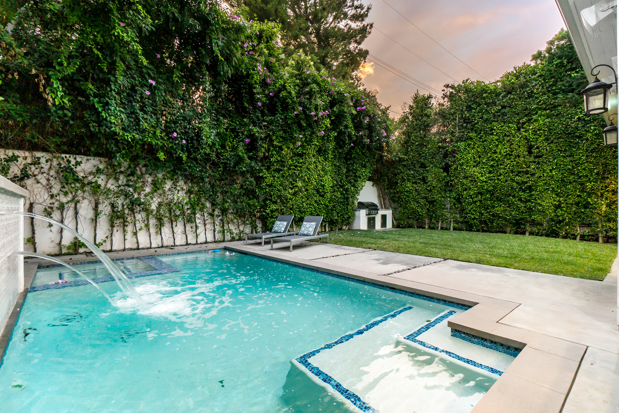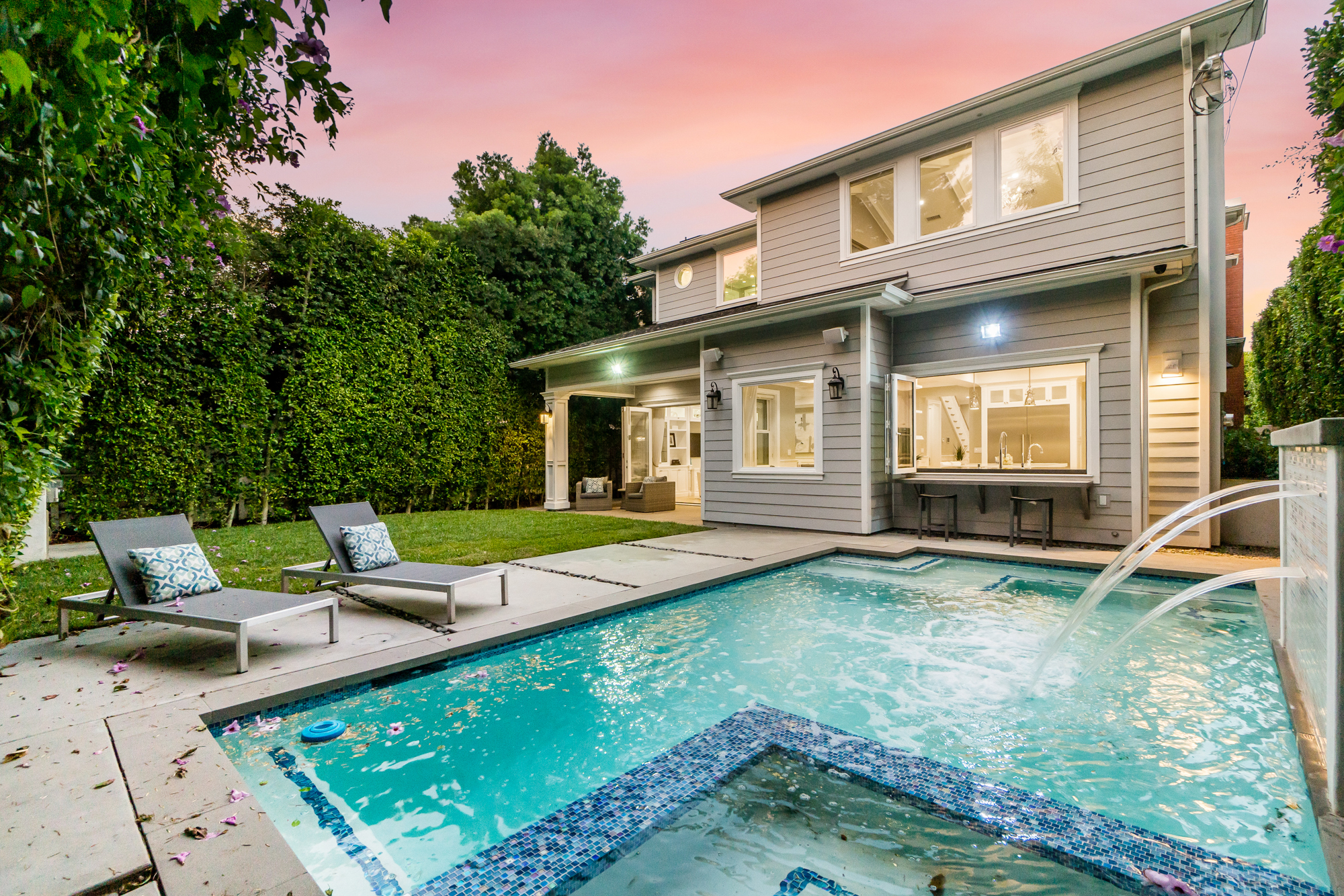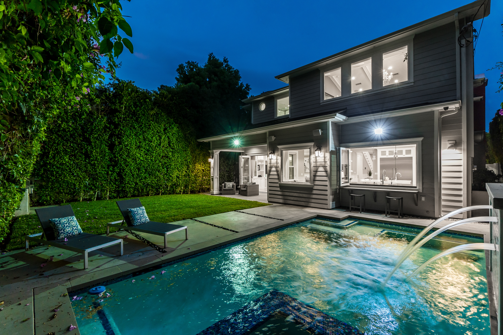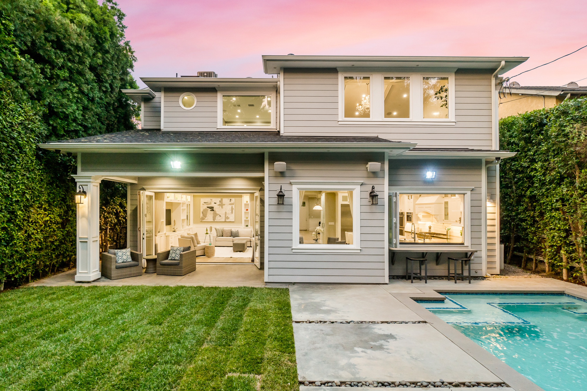 Incredible newer construction stunner located in the highly acclaimed Carpenter School District! Lovely curb appeal showcases a well manicured lawn leading to this beautifully constructed cape cod home. Upon entry you are greeted with an incredibly open floor plan featuring oak wood floors, soaring ceilings, gleaming natural light, & custom high end finishes. Sun filled living room features a cozy fireplace and wainscotted walls that extend to the tasteful dining room with a coffered ceiling. Gourmet kitchen is equipped with a butlers pantry, top of the line appliances, center island, and bi-fold window above the kitchen sink- making for seamless entertaining to the outdoors. Large bi-fold doors open the family room to the entertainers dream backyard with a BBQ, pool/spa with waterfall, covered patio space, and immense grass area, all privately surrounded by lush greenery. Upstairs, the romantic master retreat boasts a vaulted and beamed ceiling with a glamorous chandelier, fireplace, walk-in closet, and spa-like master bath with soaking tub, walk-in shower, vanity area, and dual sinks. Four additional bedrooms have ensuite bathrooms and spacious closets, one of the four- conveniently located on the main level. Additional amenities include a smart home system, built in speakers, alarm system, a wine cellar, 2 car garage, and laundry room. Unbeatable location, just moments to Ventura Blvds hottest shops and dining and the famous Studio City farmers market!