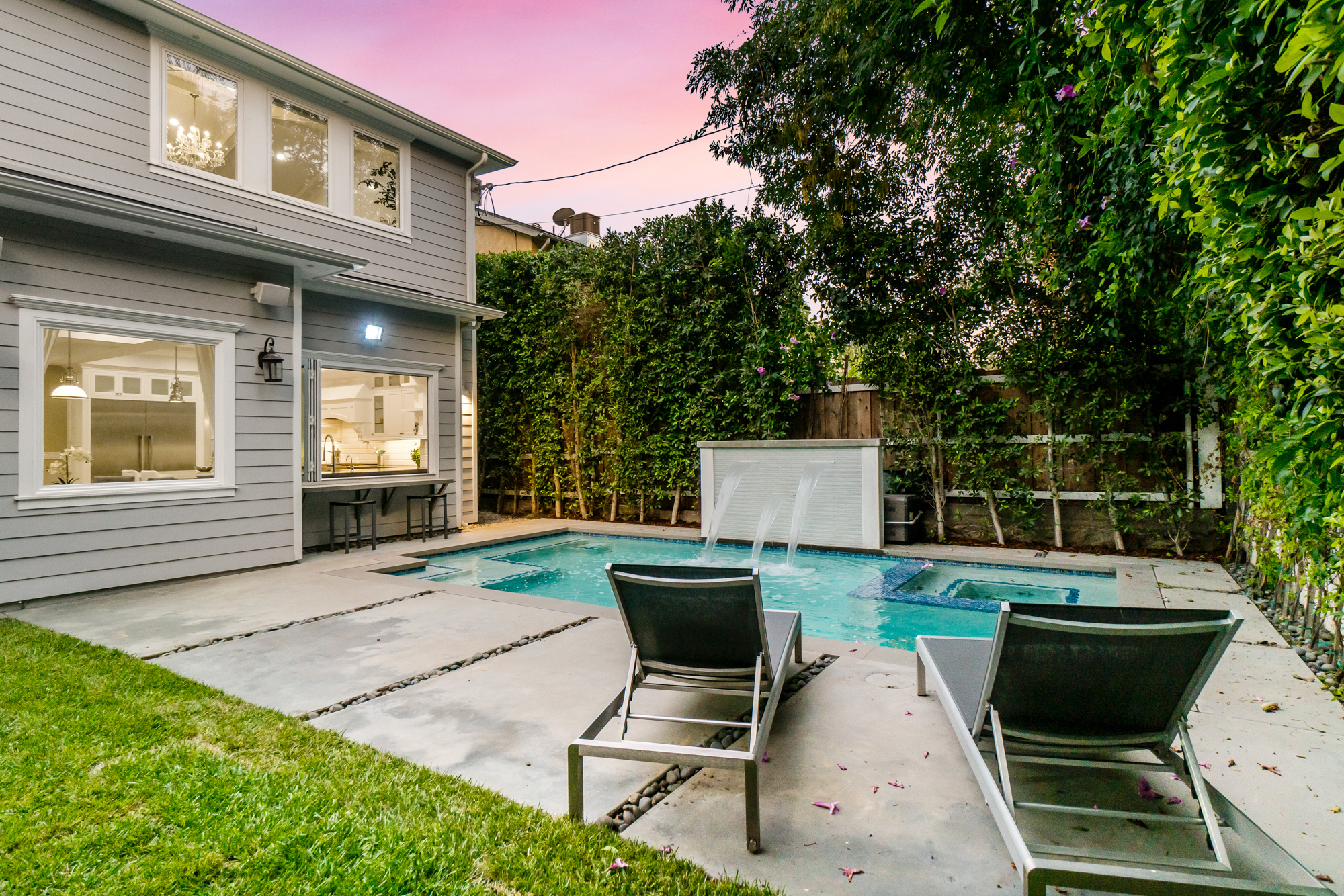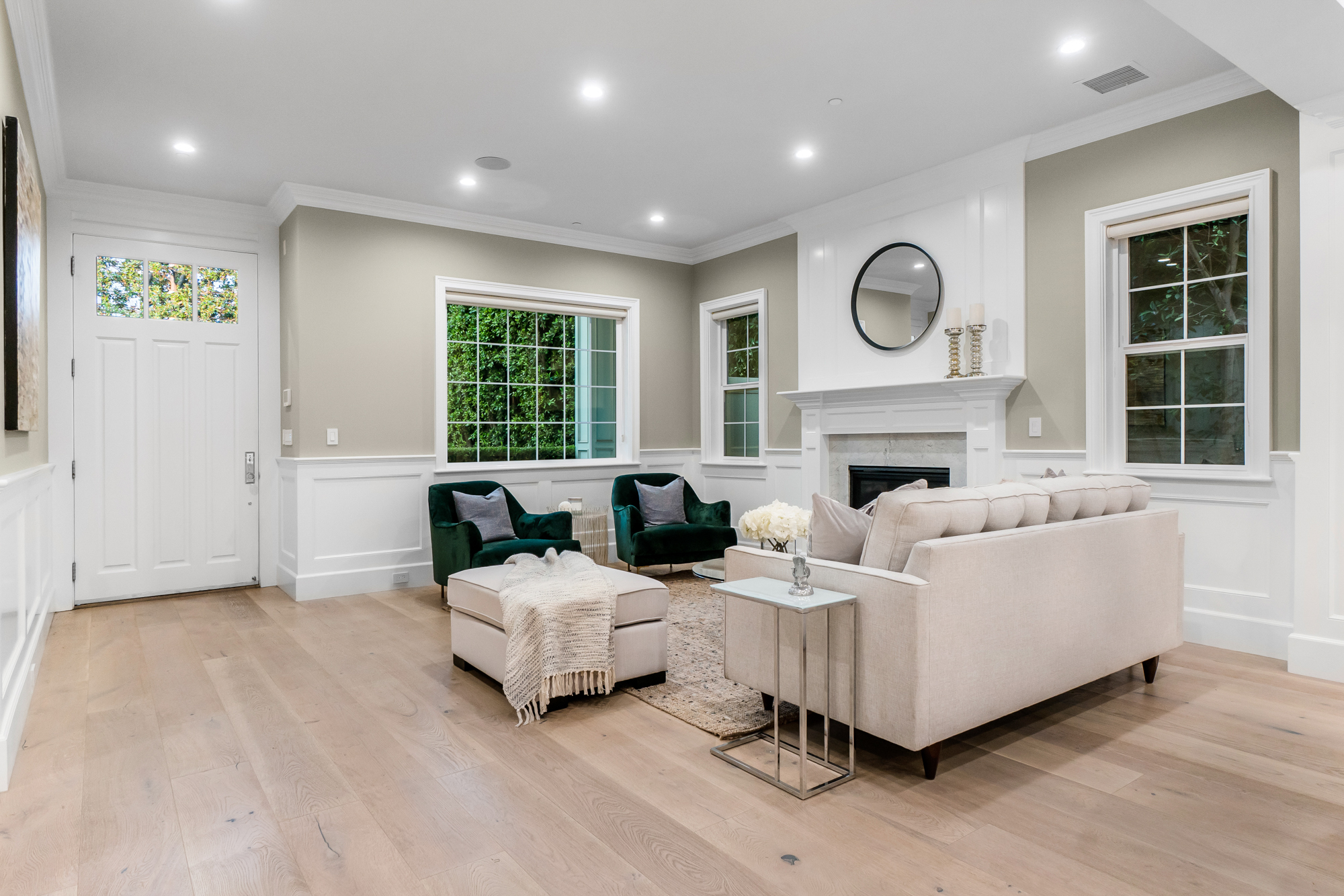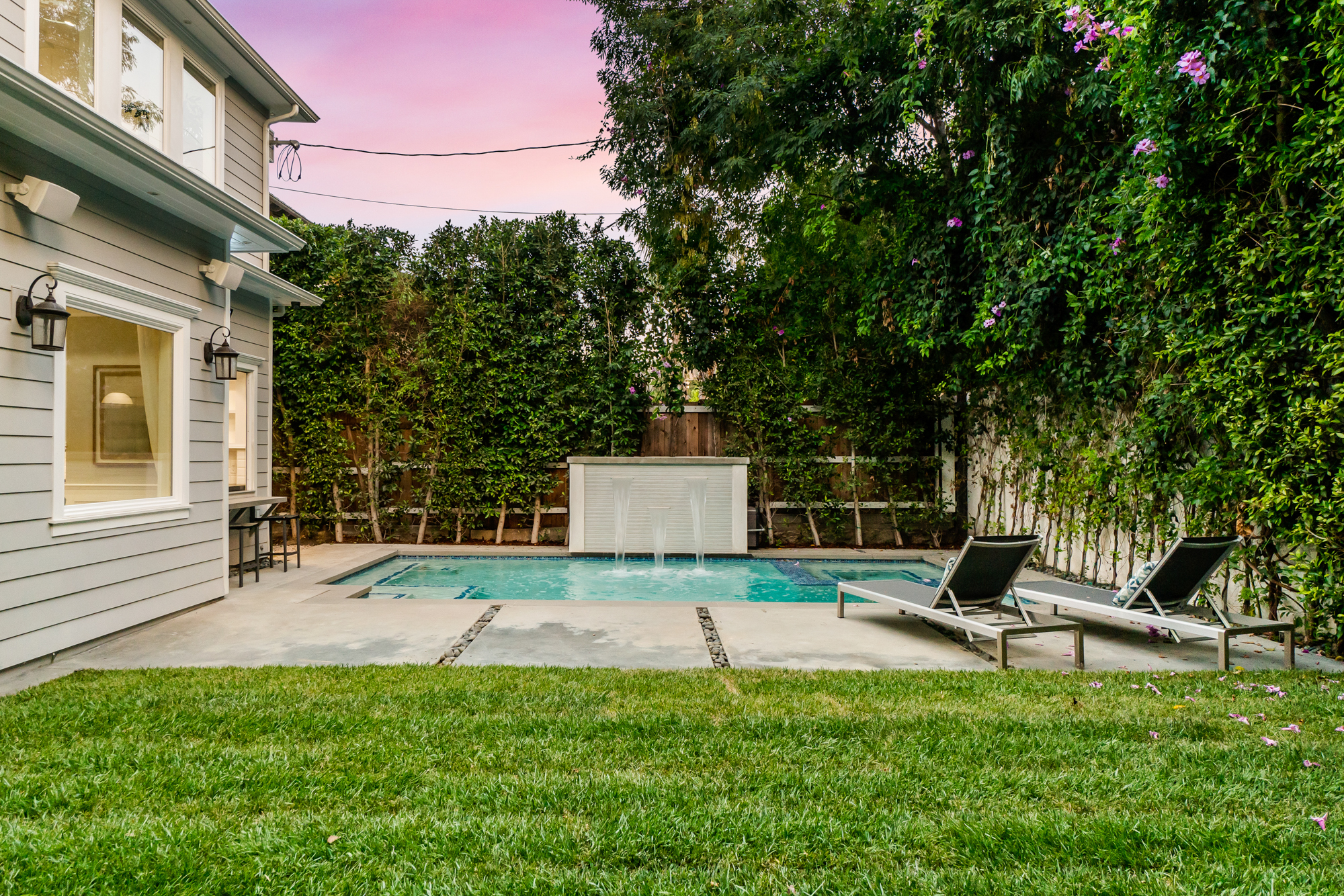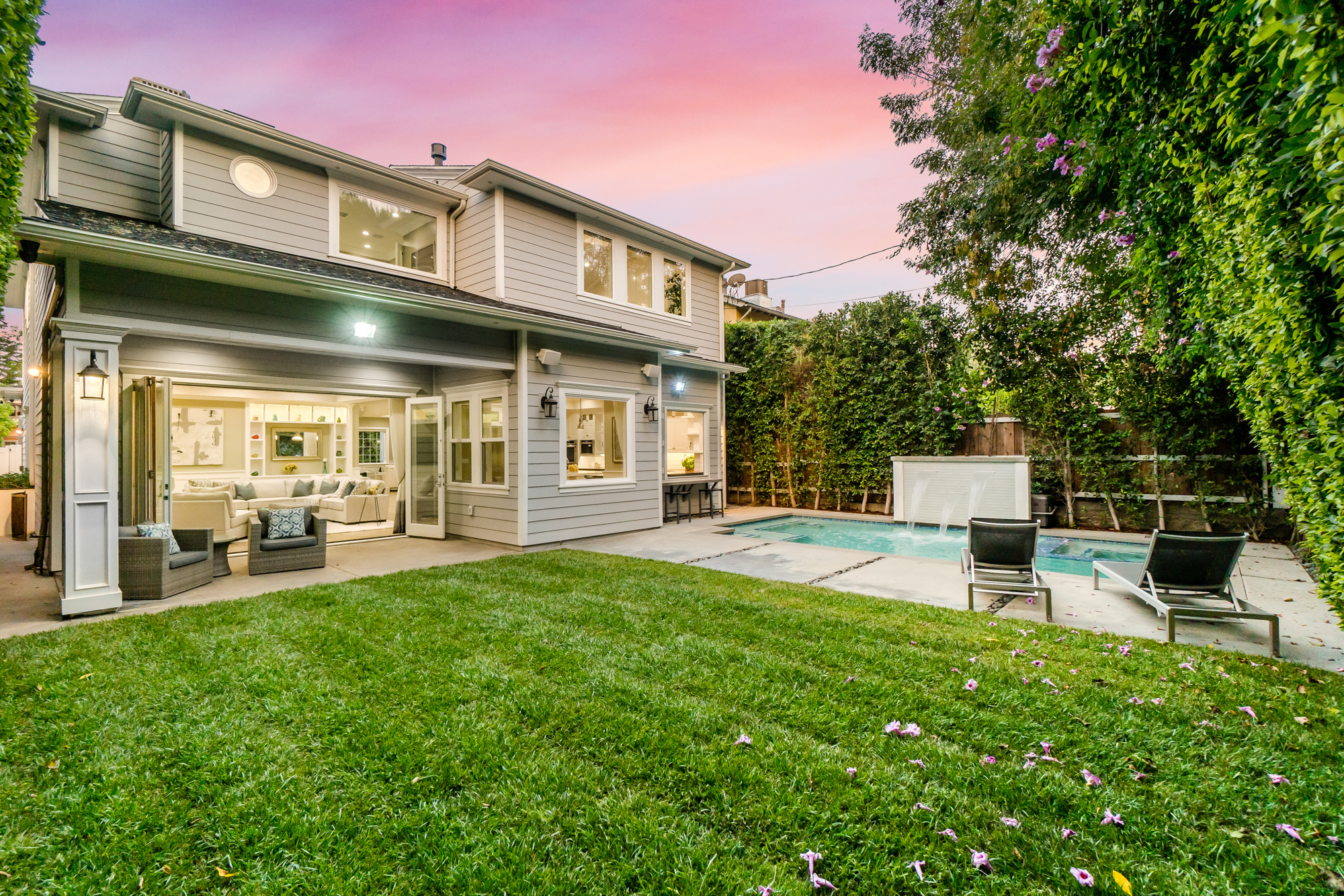 Incredible newer construction stunner located in the highly acclaimed Carpenter School District! Lovely curb appeal showcases a well manicured lawn leading to this beautifully constructed cape cod home. Upon entry you are greeted with an incredibly open floor plan featuring oak wood floors, soaring ceilings, gleaming natural light, & custom high end finishes. Sun filled living room features a cozy fireplace and wainscotted walls that extend to the tasteful dining room with a coffered ceiling. Gourmet kitchen is equipped with a butlers pantry, top of the line appliances, center island, and bi-fold window above the kitchen sink- making for seamless entertaining to the outdoors. Large bi-fold doors open the family room to the entertainers dream backyard with a BBQ, pool/spa with waterfall, covered patio space, and immense grass area, all privately surrounded by lush greenery. Upstairs, the romantic master retreat boasts a vaulted and beamed ceiling with a glamorous chandelier, fireplace, walk-in closet, and spa-like master bath with soaking tub, walk-in shower, vanity area, and dual sinks. Four additional bedrooms have ensuite bathrooms and spacious closets, one of the four- conveniently located on the main level. Additional amenities include a smart home system, built in speakers, alarm system, a wine cellar, 2 car garage, and laundry room. Unbeatable location, just moments to Ventura Blvds hottest shops and dining and the famous Studio City farmers market!