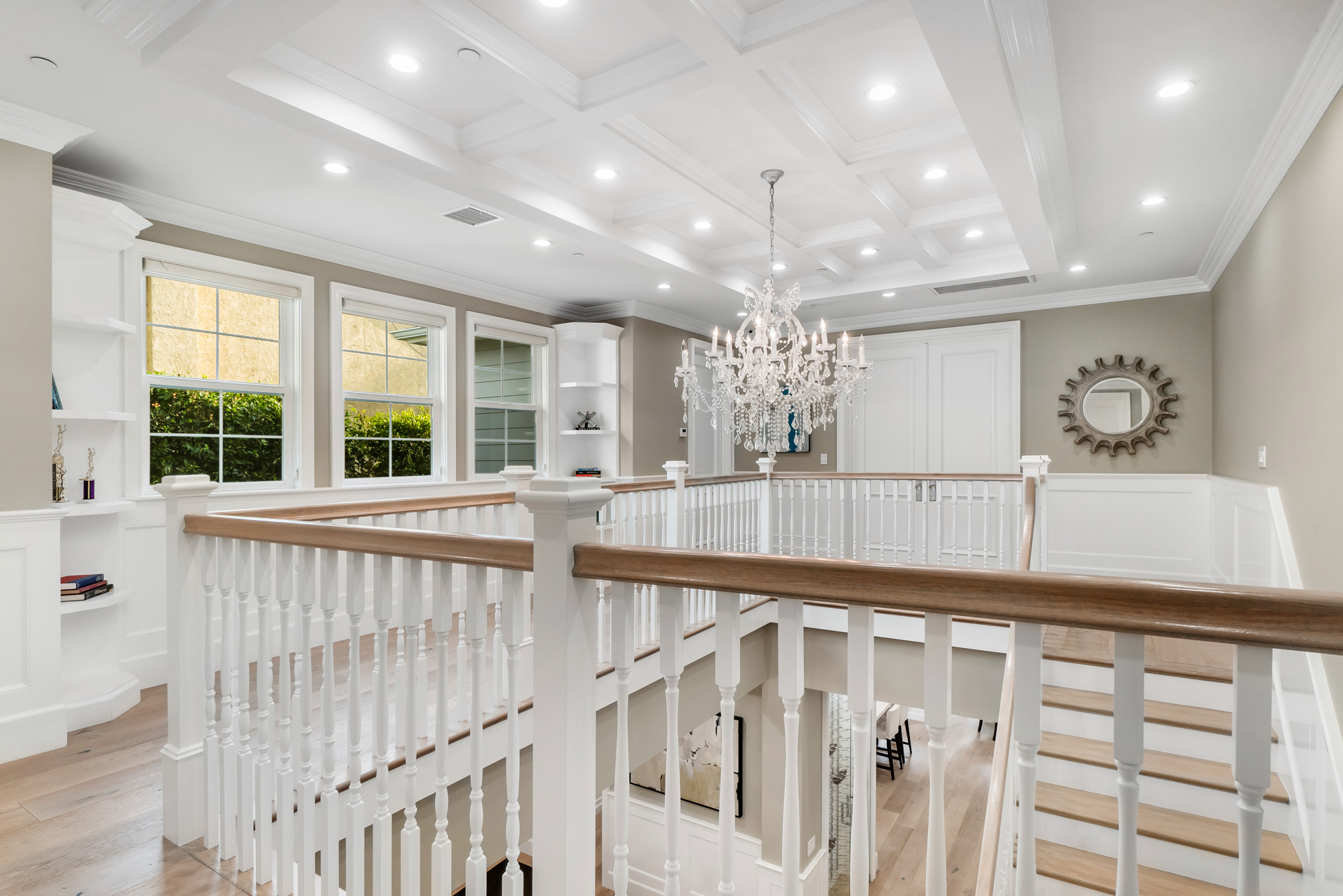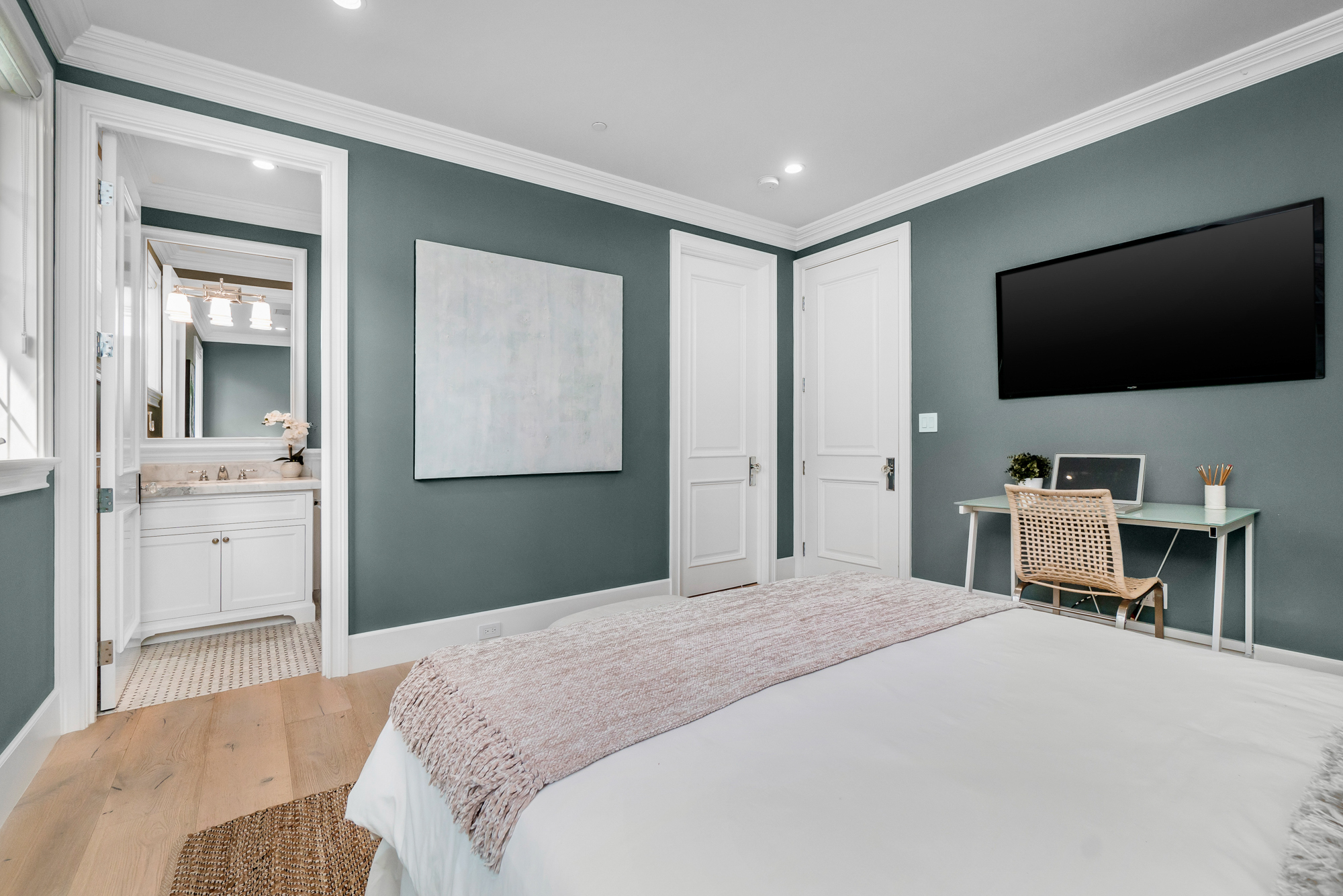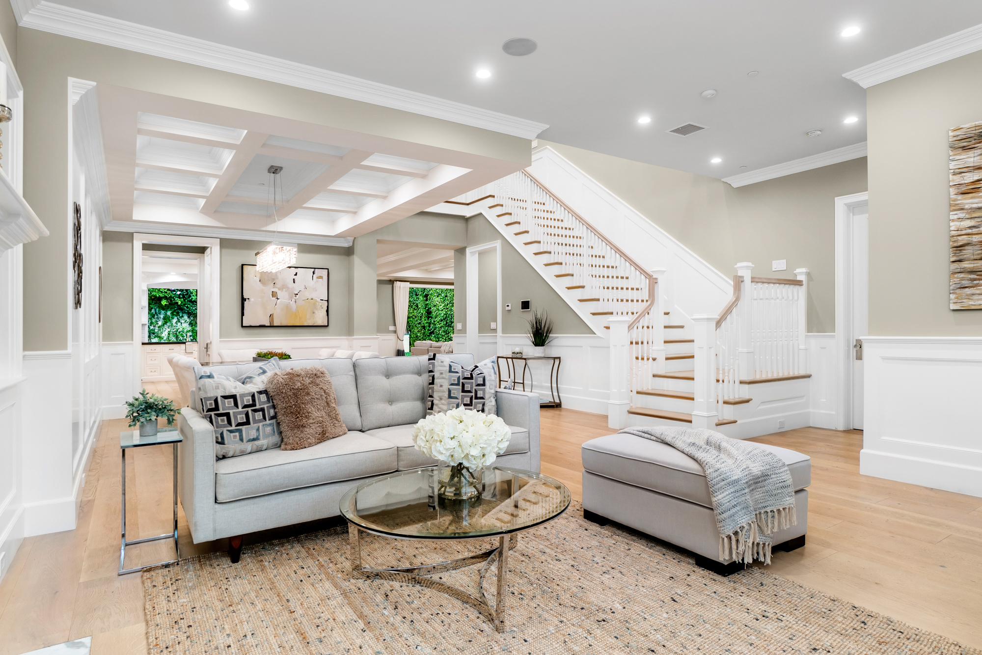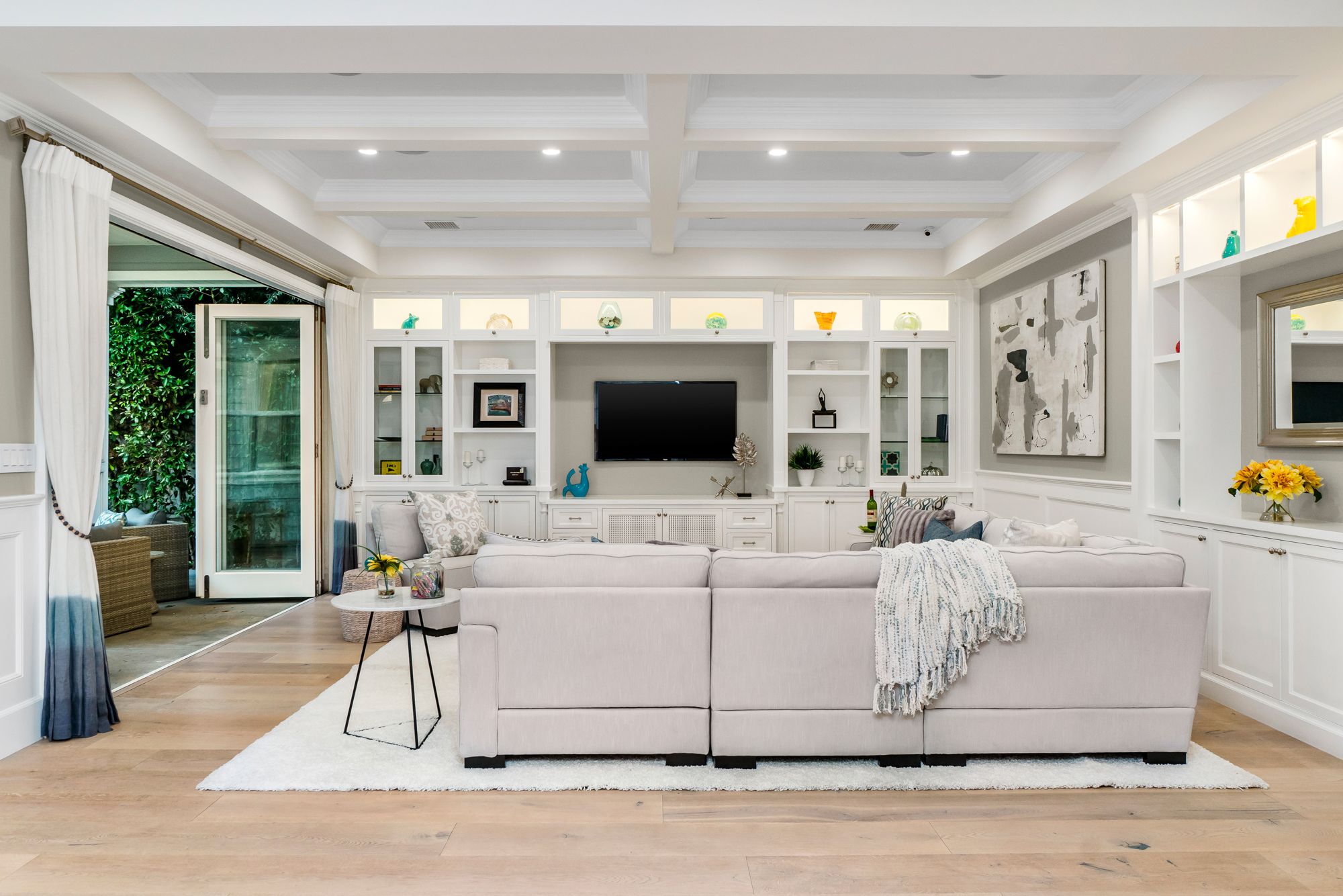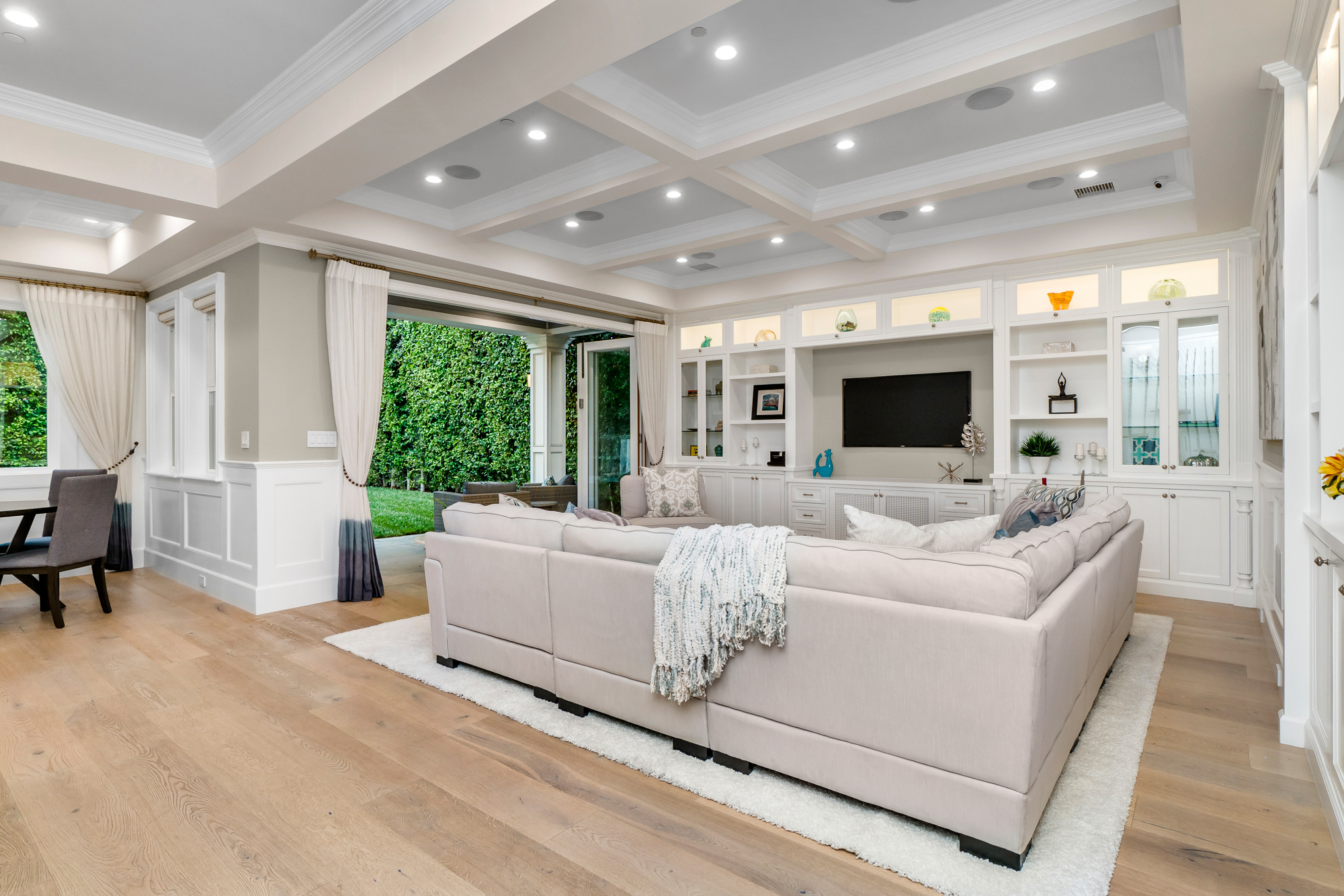 Incredible newer construction stunner located in the highly acclaimed Carpenter School District! Lovely curb appeal showcases a well manicured lawn leading to this beautifully constructed cape cod home. Upon entry you are greeted with an incredibly open floor plan featuring oak wood floors, soaring ceilings, gleaming natural light, & custom high end finishes. Sun filled living room features a cozy fireplace and wainscotted walls that extend to the tasteful dining room with a coffered ceiling. Gourmet kitchen is equipped with a butlers pantry, top of the line appliances, center island, and bi-fold window above the kitchen sink- making for seamless entertaining to the outdoors. Large bi-fold doors open the family room to the entertainers dream backyard with a BBQ, pool/spa with waterfall, covered patio space, and immense grass area, all privately surrounded by lush greenery. Upstairs, the romantic master retreat boasts a vaulted and beamed ceiling with a glamorous chandelier, fireplace, walk-in closet, and spa-like master bath with soaking tub, walk-in shower, vanity area, and dual sinks. Four additional bedrooms have ensuite bathrooms and spacious closets, one of the four- conveniently located on the main level. Additional amenities include a smart home system, built in speakers, alarm system, a wine cellar, 2 car garage, and laundry room. Unbeatable location, just moments to Ventura Blvds hottest shops and dining and the famous Studio City farmers market!