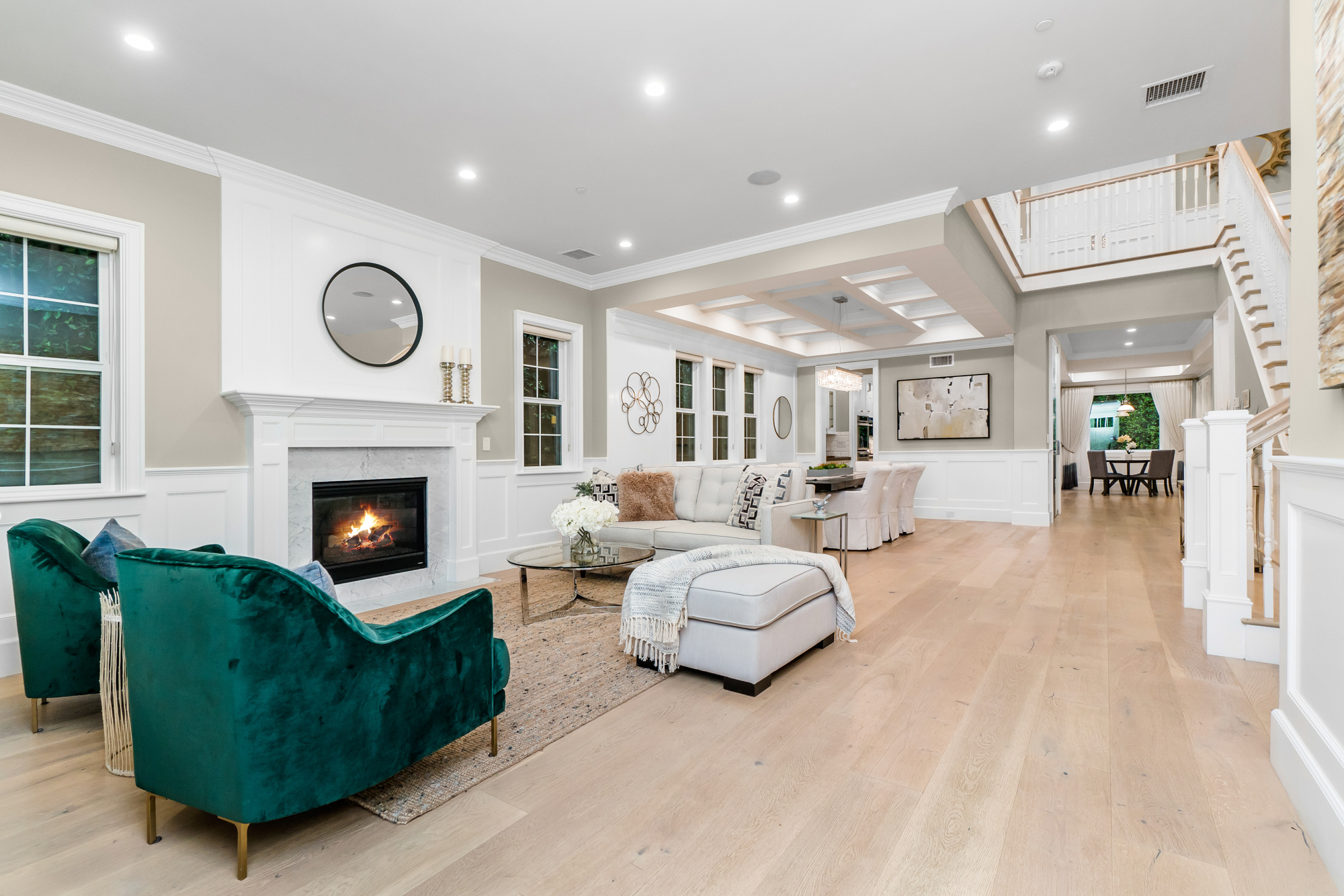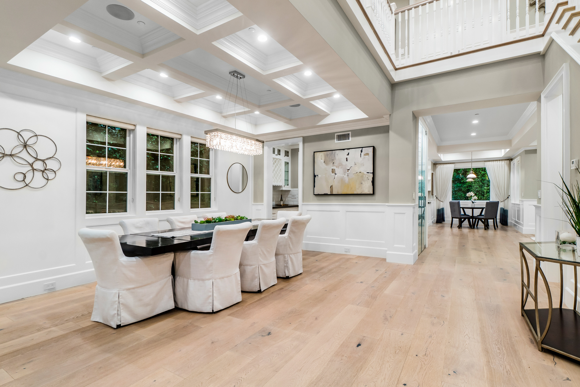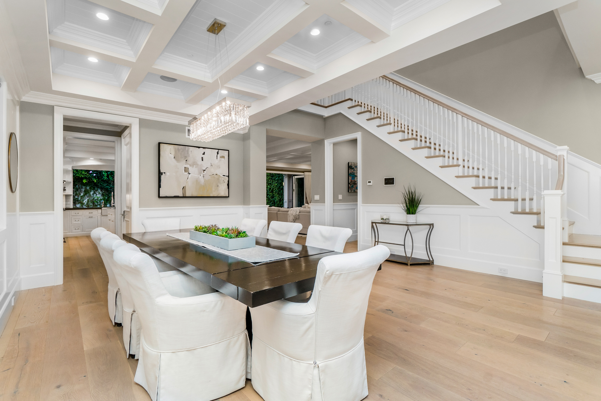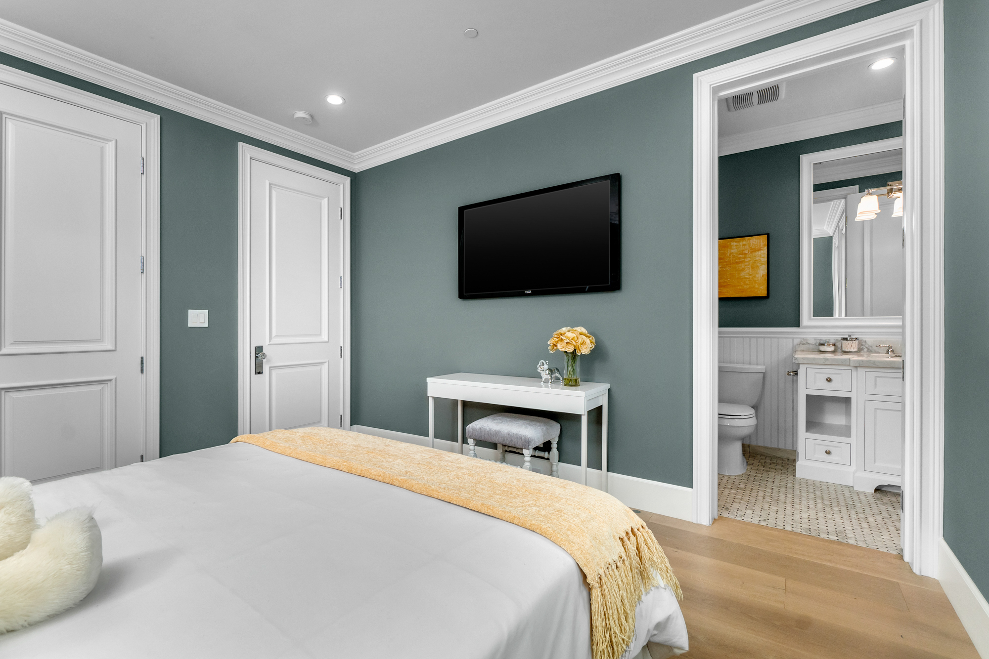 Incredible newer construction stunner located in the highly acclaimed Carpenter School District! Lovely curb appeal showcases a well manicured lawn leading to this beautifully constructed cape cod home. Upon entry you are greeted with an incredibly open floor plan featuring oak wood floors, soaring ceilings, gleaming natural light, & custom high end finishes. Sun filled living room features a cozy fireplace and wainscotted walls that extend to the tasteful dining room with a coffered ceiling. Gourmet kitchen is equipped with a butlers pantry, top of the line appliances, center island, and bi-fold window above the kitchen sink- making for seamless entertaining to the outdoors. Large bi-fold doors open the family room to the entertainers dream backyard with a BBQ, pool/spa with waterfall, covered patio space, and immense grass area, all privately surrounded by lush greenery. Upstairs, the romantic master retreat boasts a vaulted and beamed ceiling with a glamorous chandelier, fireplace, walk-in closet, and spa-like master bath with soaking tub, walk-in shower, vanity area, and dual sinks. Four additional bedrooms have ensuite bathrooms and spacious closets, one of the four- conveniently located on the main level. Additional amenities include a smart home system, built in speakers, alarm system, a wine cellar, 2 car garage, and laundry room. Unbeatable location, just moments to Ventura Blvds hottest shops and dining and the famous Studio City farmers market!