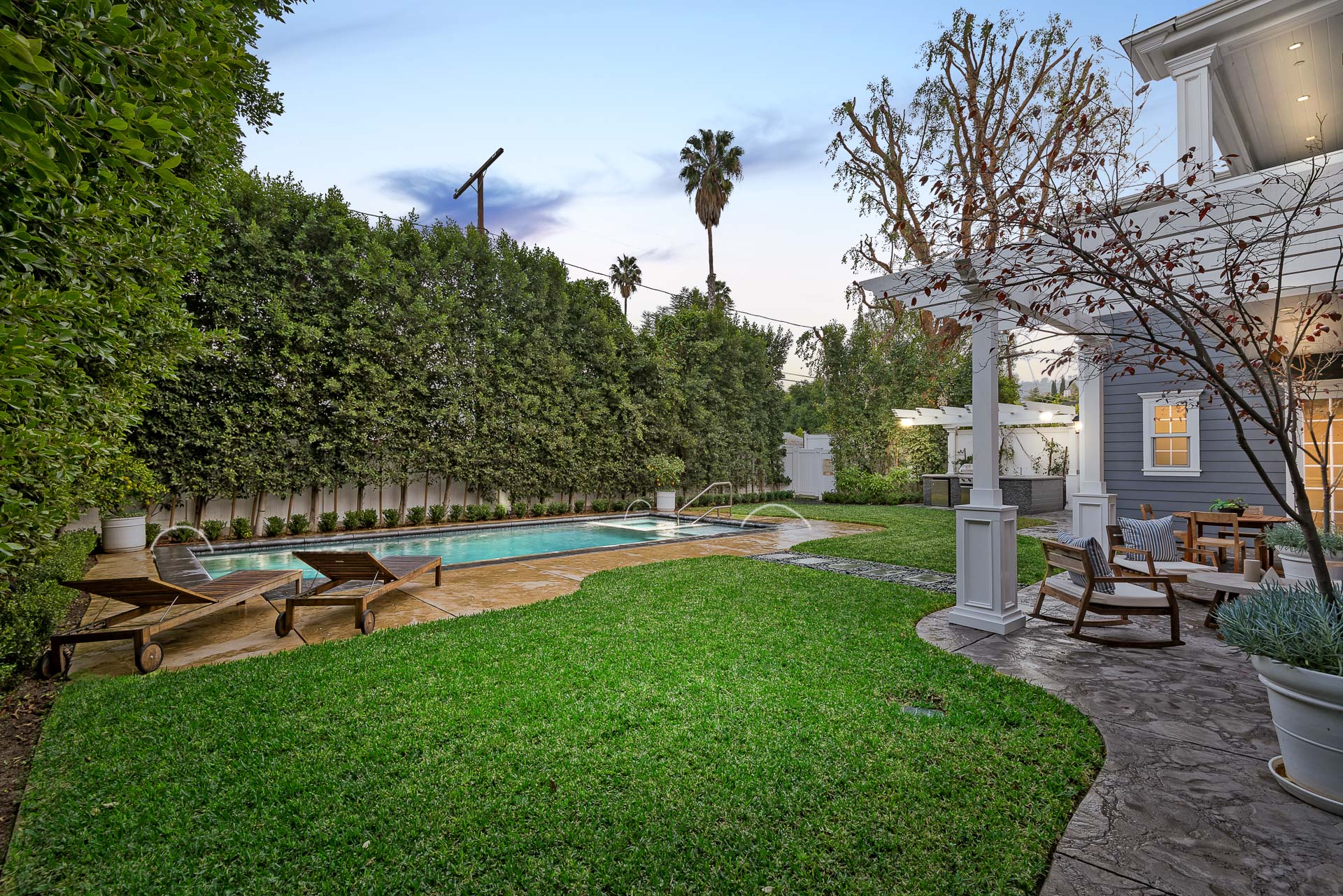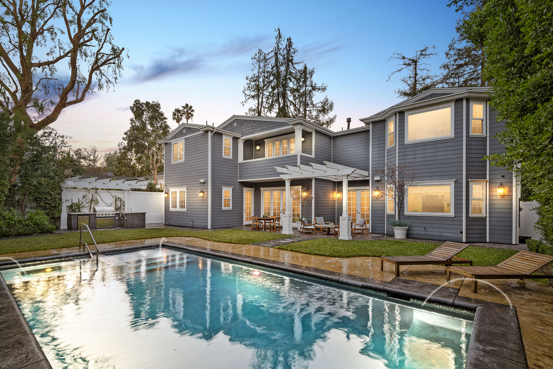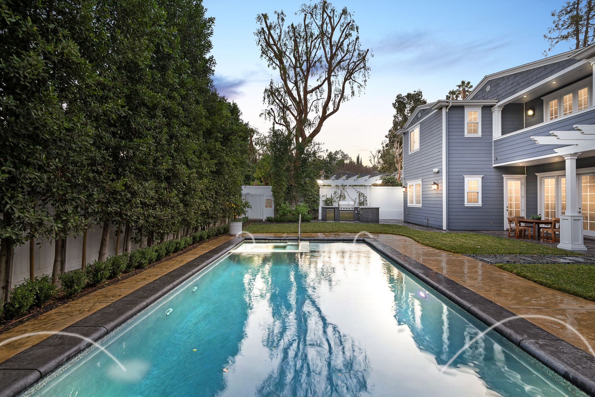 Nestled in a great Sherman Oaks neighborhood you will find a Newer Construction home with an East Coast Vibe, yet very Traditional in Style. This spectacular home holds 5 ensuite bedrooms plus office & 6.5 bathrooms. Well manicured grounds with a lush landscape with added beauty in being framed by towering Redwood trees. A grand feeling as you walk into an incredible foyer that separates Family Room & Dining Room, discover ultimate warmth, comfort & timeless simplicity. This homeincludes a temperature controlled Wine Room, a gourmet kitchen that offers a Chefs Pantry, oversized marble center island, high-end appliances, custom cabinetry. The scale of high coffered ceilings, open floor plan, picturesque windows, & opulent finishes inspire delight. The master suite resembles a 5-star hotel Presidential suite with a cozy fireplace, wine refrigerator, multiple closets, & private balcony. The expansive bathroom features designer marble floors & countertops, his & her vanities,& claw foot tub. The house is backed by a large grassy yard with a pool+spa, offers supreme privacy with tall hedges & high fencing. Designed and built with utmost care and sophisticated taste, this home was customized in every way possible. Other special features of this home are Control 4 security system, Smart Home prepped, & surround sound system. Minutes from Ventura Blvd, nearby many fine restaurants and easy Westside access, this is a tremendous opportunity to own the finest home in prime Sherman Oaks.