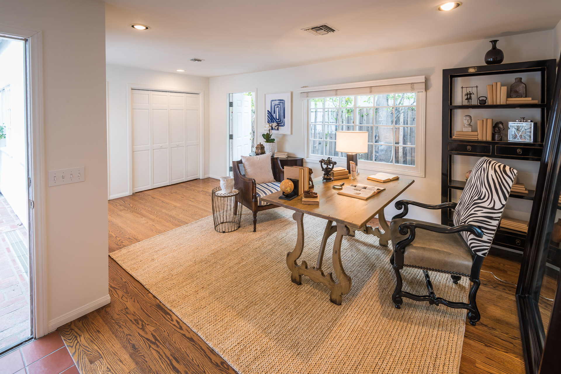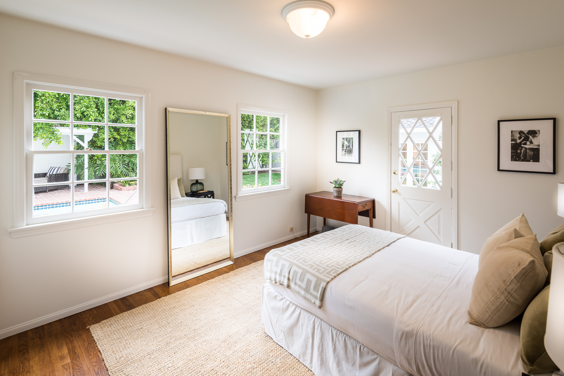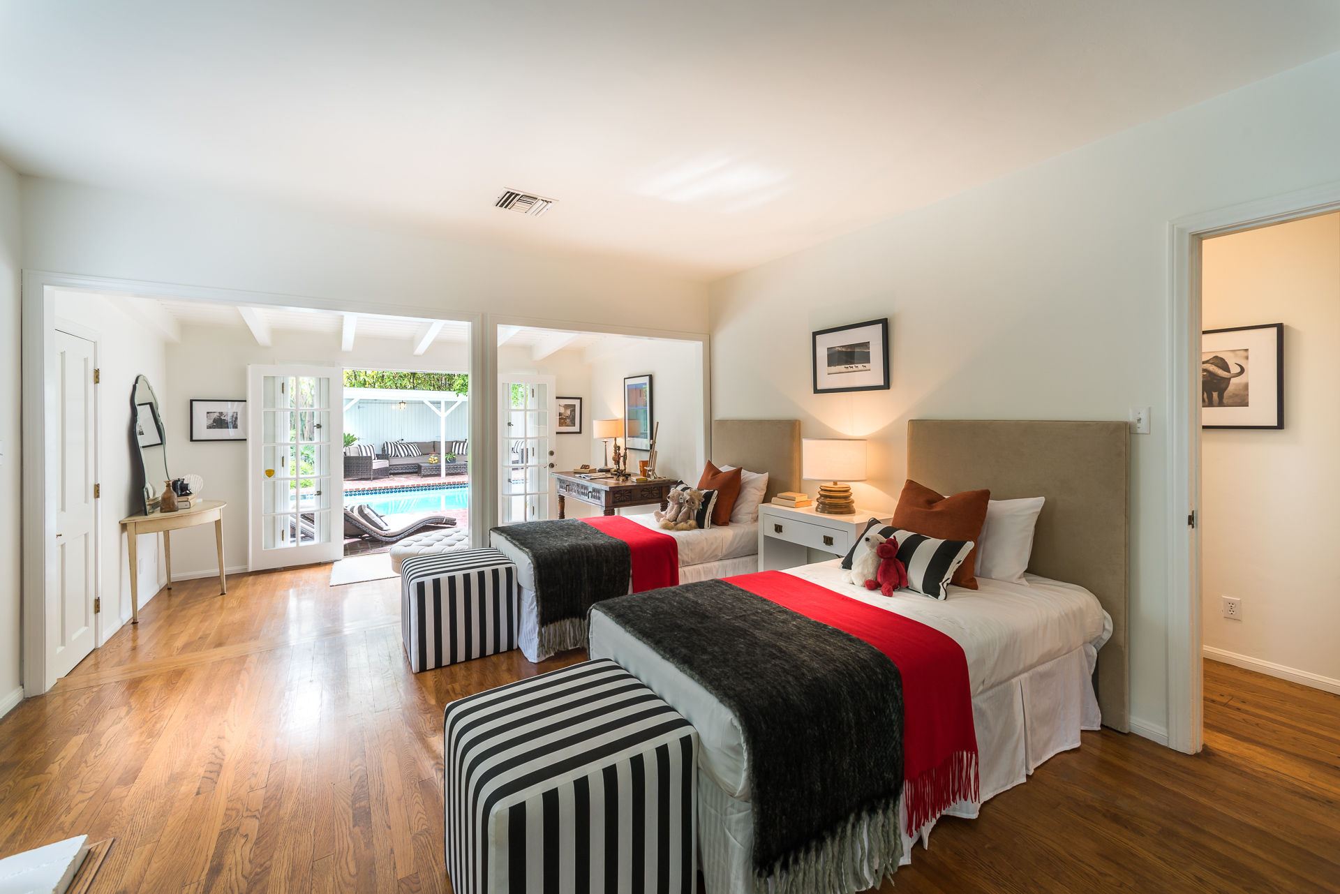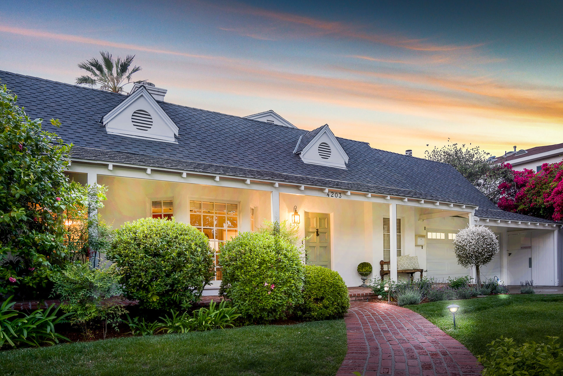 The spacious backyard has a large pool and beautiful gardens with mature trees for total privacy. Three separate brick patio areas are perfect for outdoor entertaining. Ideal for families, the estate sits on a quiet street/corner lot in the heart of Studio City, steps from Weddington Golf & Tennis and Ventura Blvd shops, and only minutes from 405 and 101.