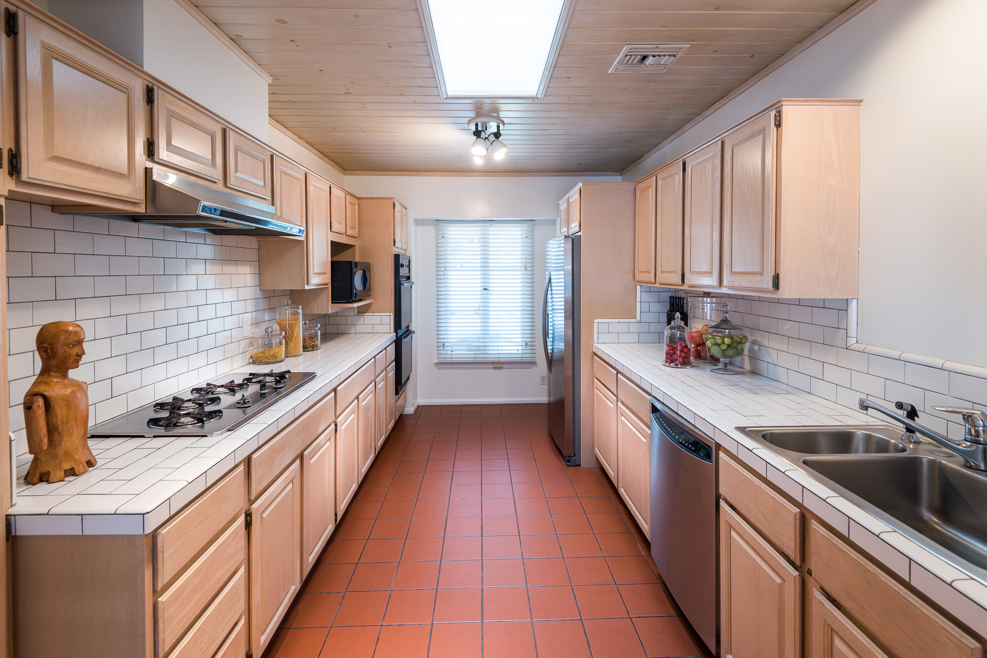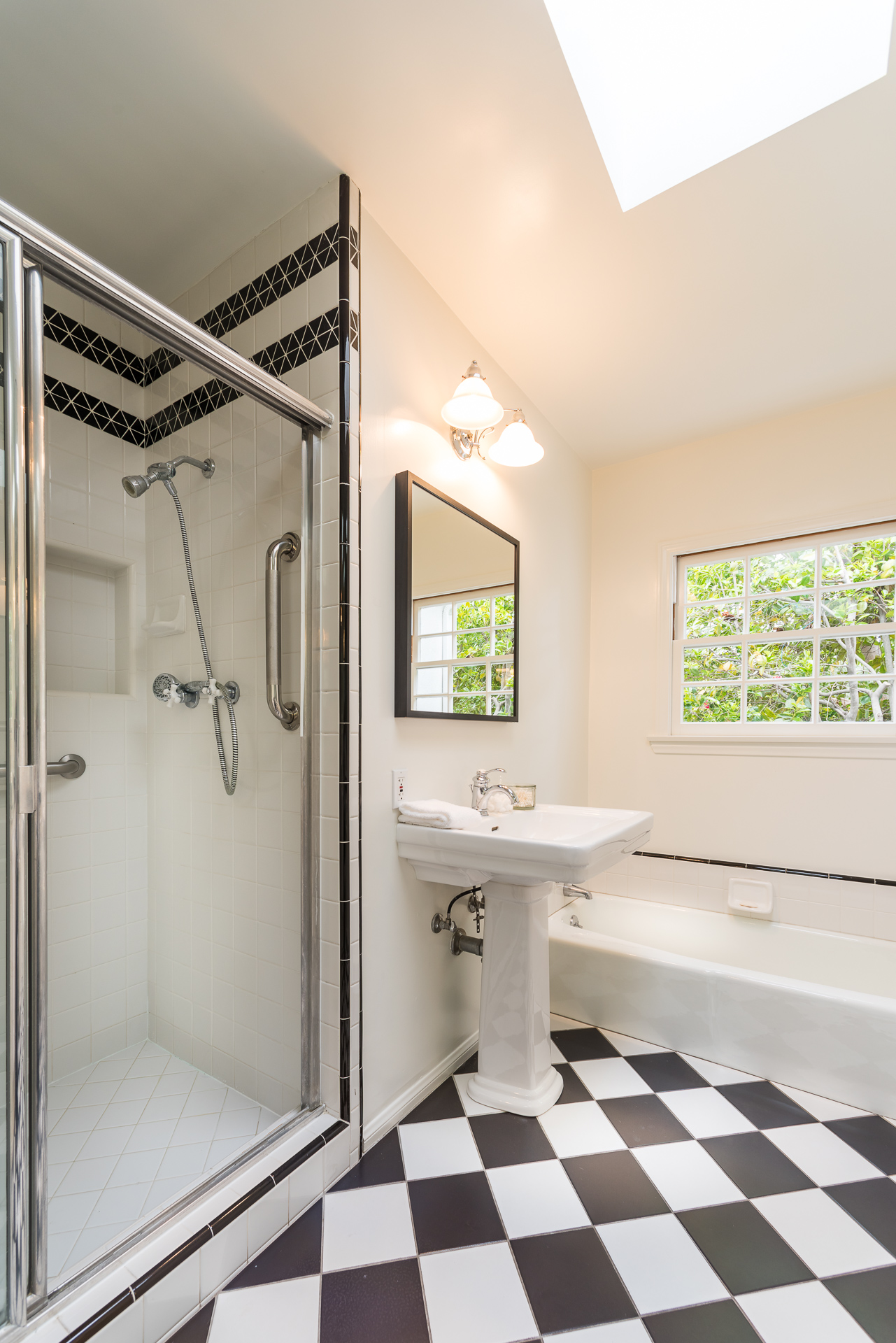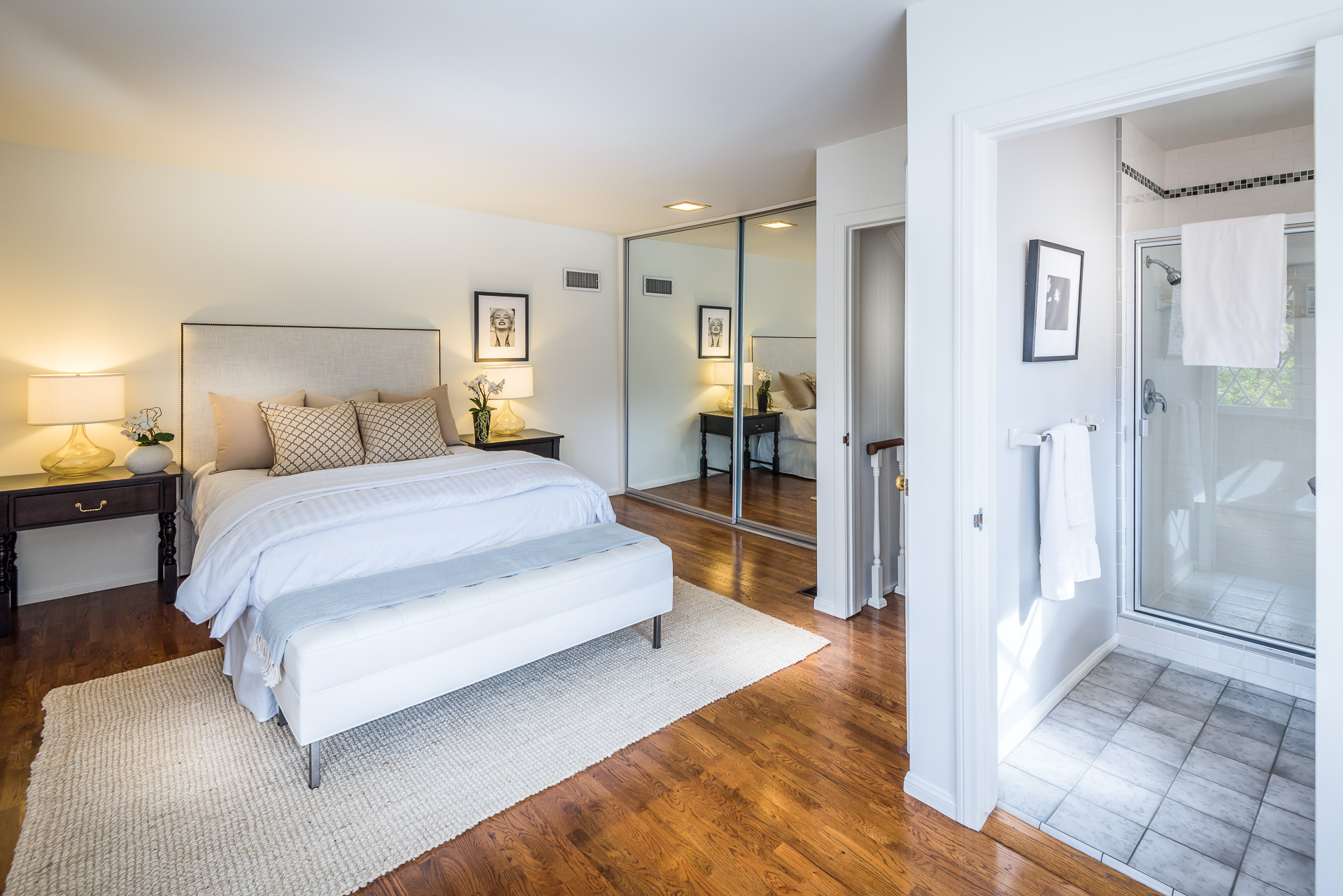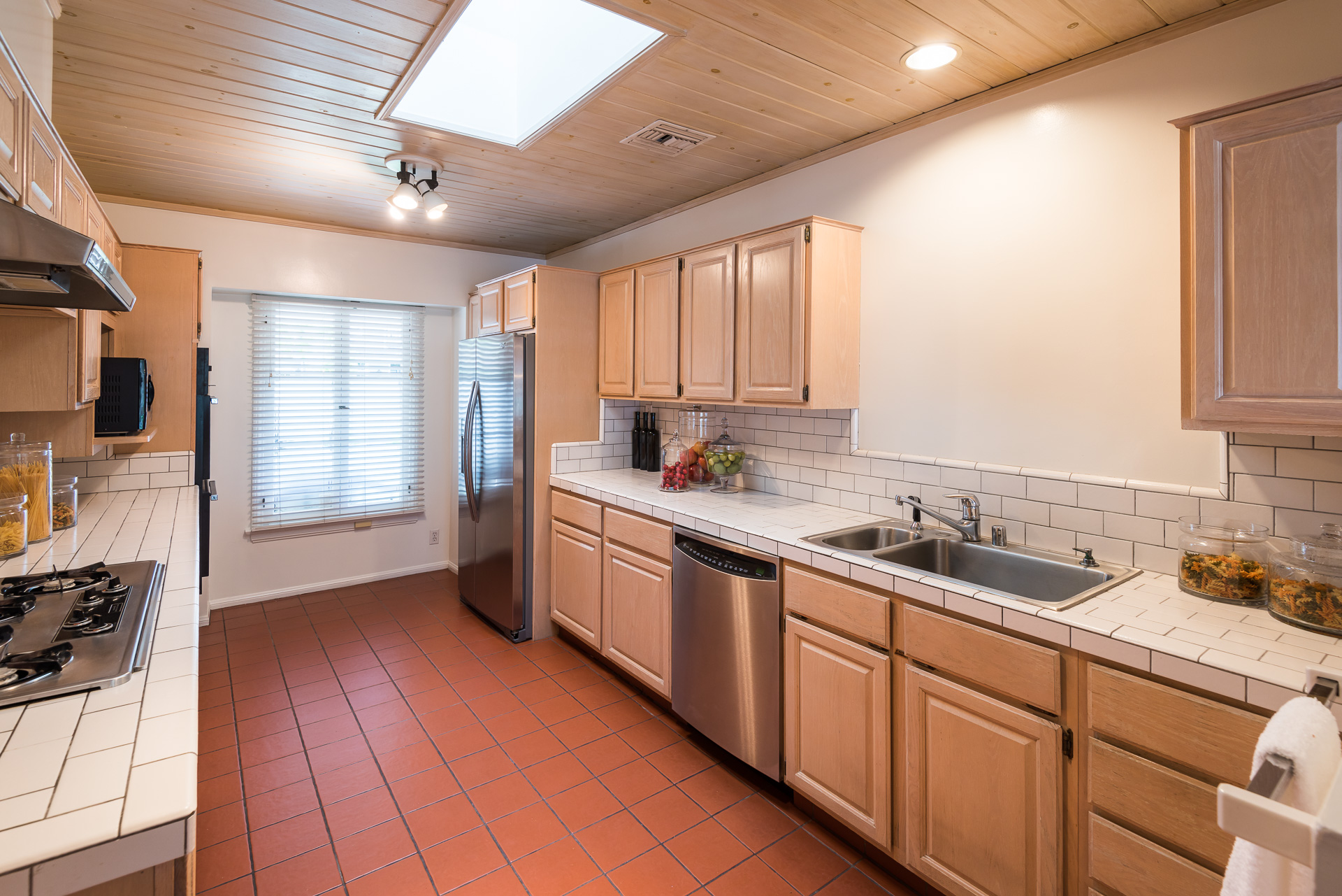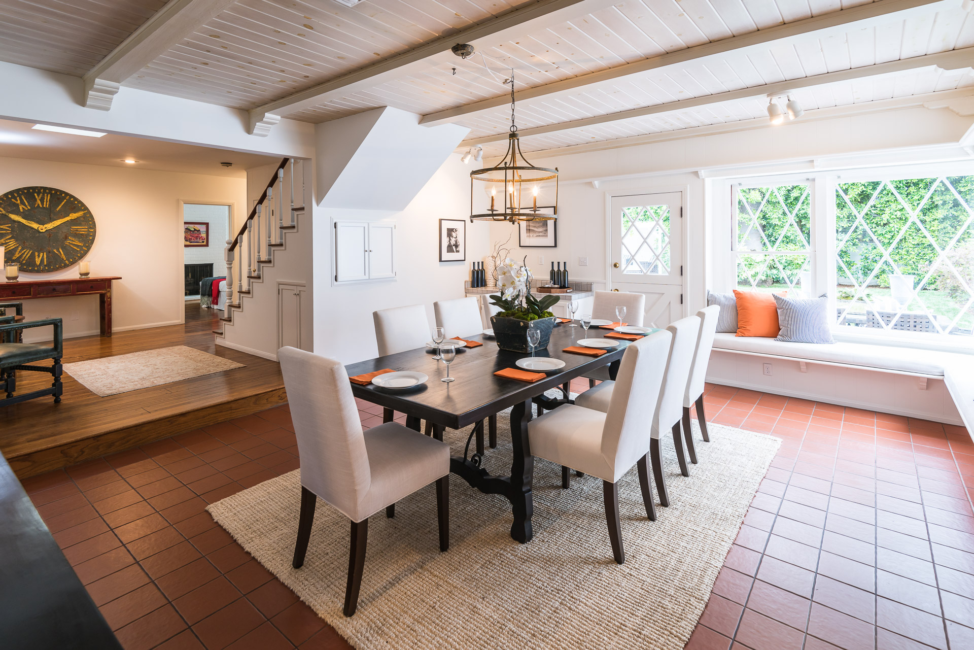 Nestled on a spacious 11,320 sqft parcel, this elegant 4 bedroom, 4 bath residence blends old-world charm with stunning private grounds. A stately entrance welcomes you into a large living room with high dramatic wooden vaulted ceilings and a huge fireplace, while French doors and ample windows beckon you to a private courtyard with a wall-mounted fountain. Two master bedroom suites are located on the ground floor, each with its own sitting area, large walk-in closet, and bathroom. From each master suite, French doors provide views and entry to the backyard gardens and pool. One suite with a fireplace also works well as a family room. The other features high wooden ceilings, a large picture window, built-in wet bar, and dedicated ac/heating. A separate office (or media room or playroom), adjacent to this bedroom, completes this wing of the house. The third bedroom also has a view of the backyard pool/garden and its own door. Tucked away on the 2nd floor is the fourth bedroom and full bath, again with a panoramic view of the lovely yard. Beautiful hardwood floors, window seats, large diamond pane windows, and five skylights add to the home’s beauty and natural light.