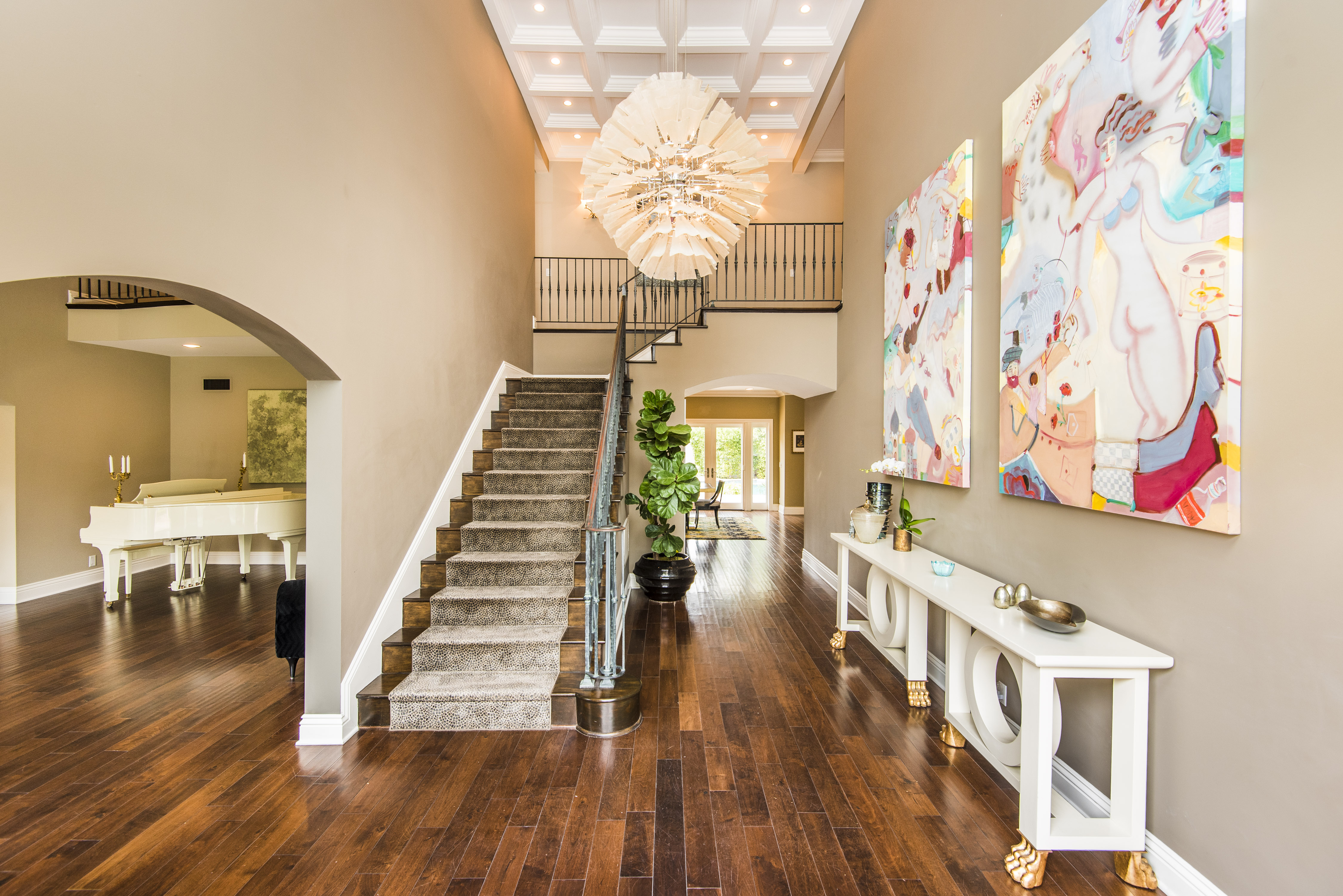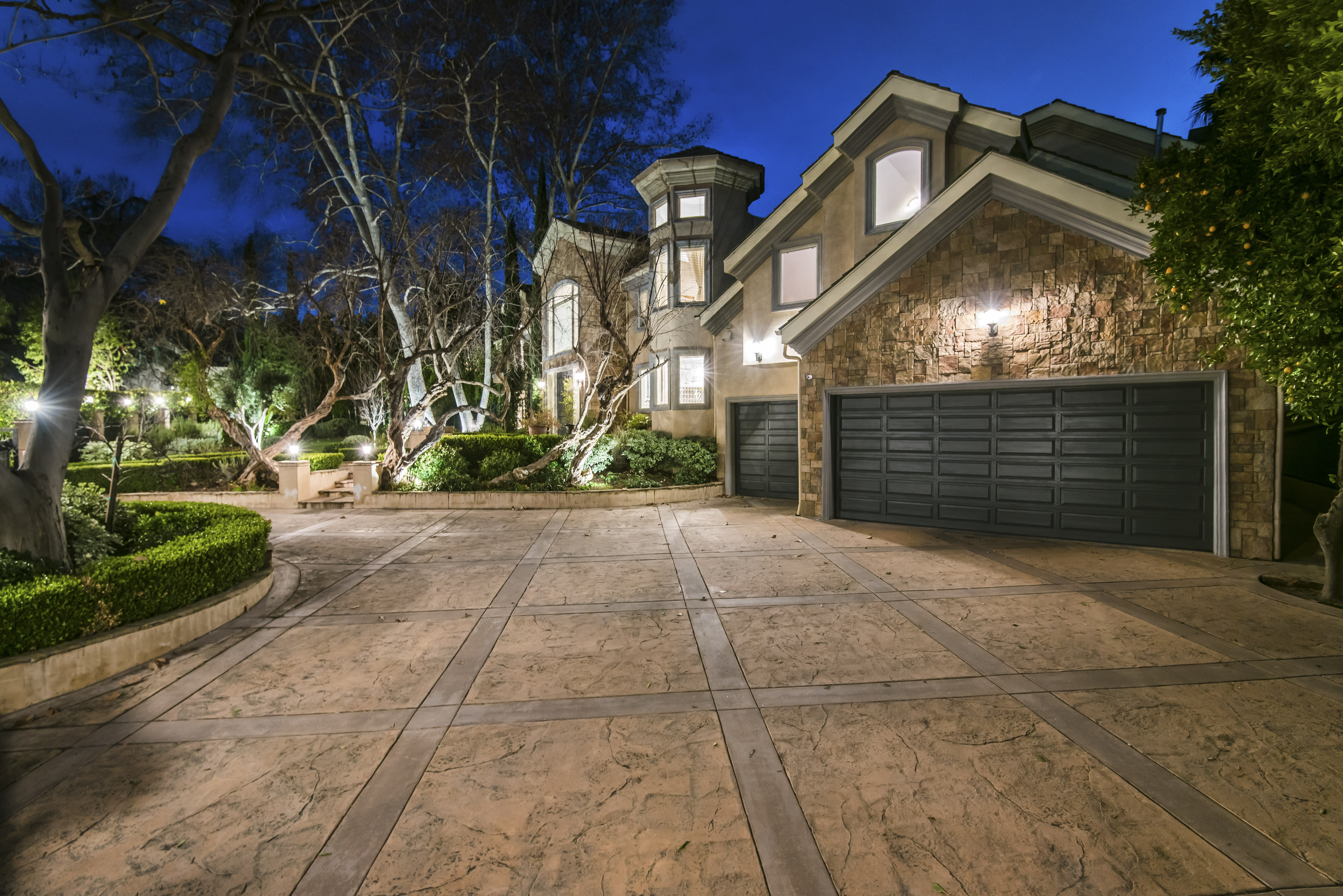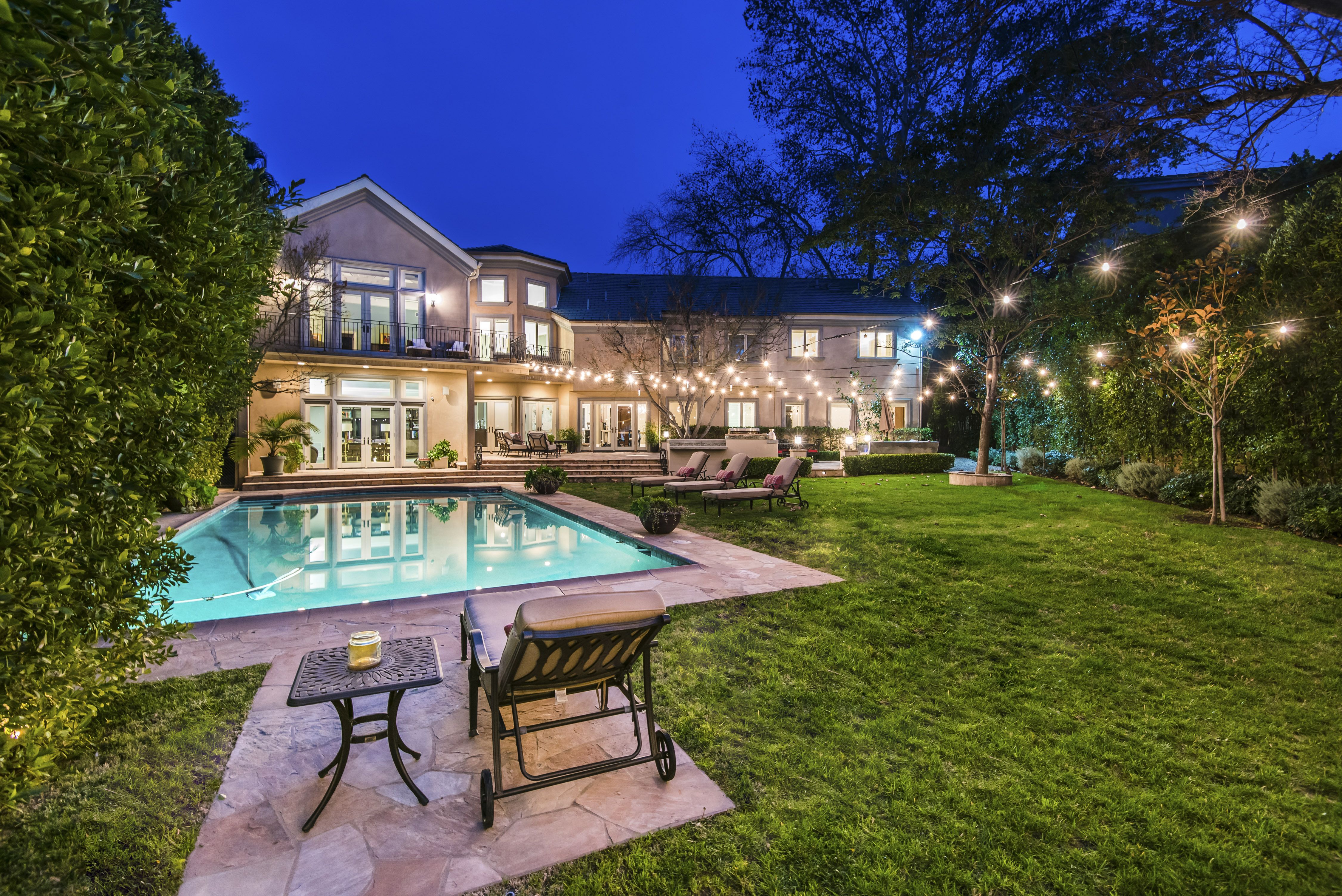 Set back behind private gates awaits this breathtaking retreat. The front yard is complete with circular driveway, lush landscaping, and beautiful Sycamore trees. Inside, the grand entry boasts soaring coffered ceilings and stunning custom chandelier. To your left is the great room which effortlessly connects the foyer to the formal living room, with the first of three fireplaces. The main floor hosts one of the six bedrooms with en-suite bathroom and walk-in closet. The Chef's kitchen features high-end appliances, breakfast nook, and large center island. The family room is accentuated by a grand fireplace and custom built-in entertainment center. A sleek wet bar connects the family room and formal dining room, with french doors to the backyard, creating the quintessential entertaining space. Upstairs, each of the five bedrooms has an en-suite bathroom, including the junior master suite which features a Romeo & Juliet balcony. The formal master suite is the definition of serenity, with lofty exposed beam ceiling, balcony overlooking the backyard, large walk-in closet, and luxurious master bathroom with steam shower, and jetted tub. Down in the basement, grab some popcorn and lounge in the 8-seat theater with 110" screen, or get your sweat on in the home gym. Prefer to spend time outside? This home's backyard is a dream! With a large grassy area, saltwater pool, fire pit, built in bbq, and pool house with full bathroom. All of this and more can be yours!