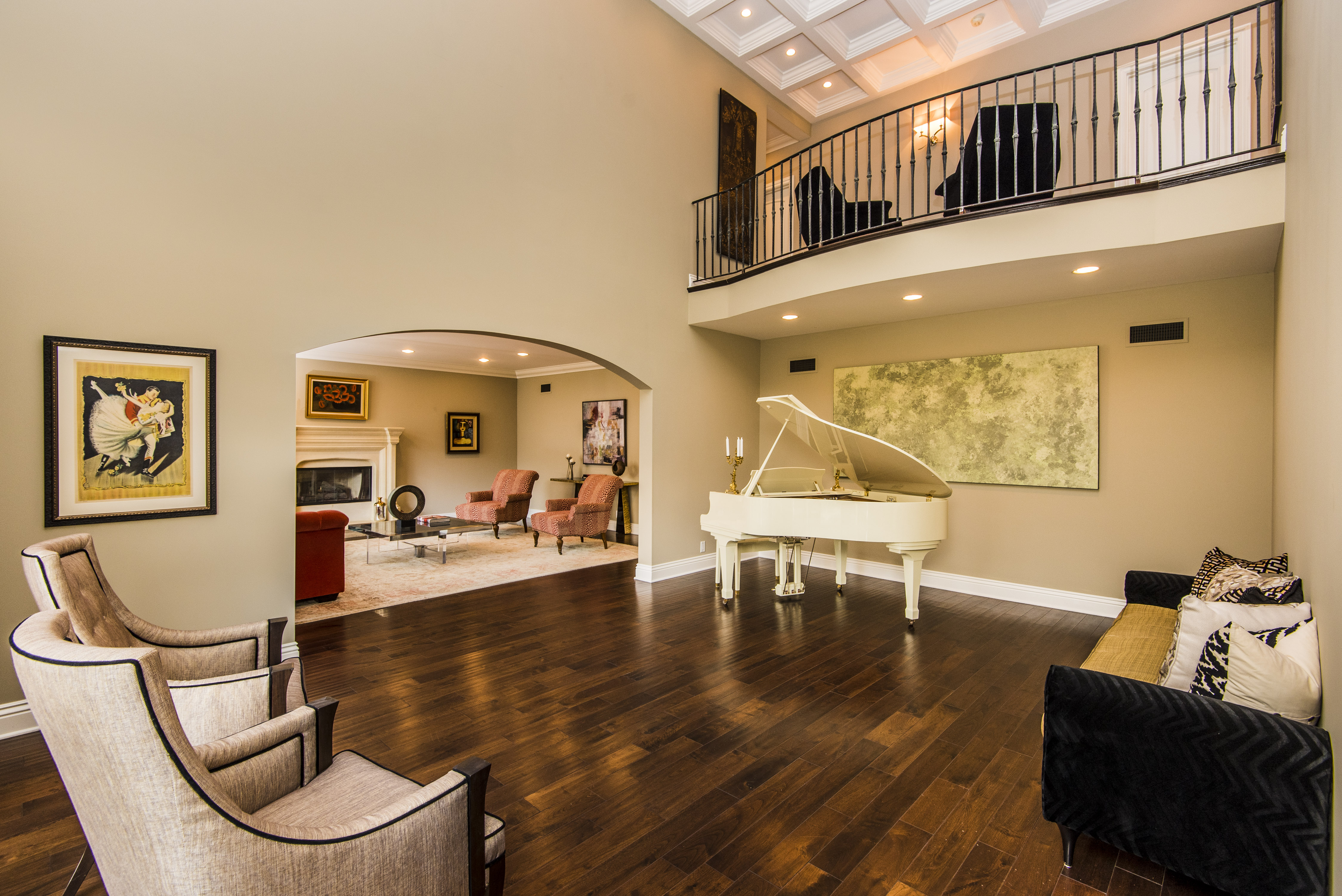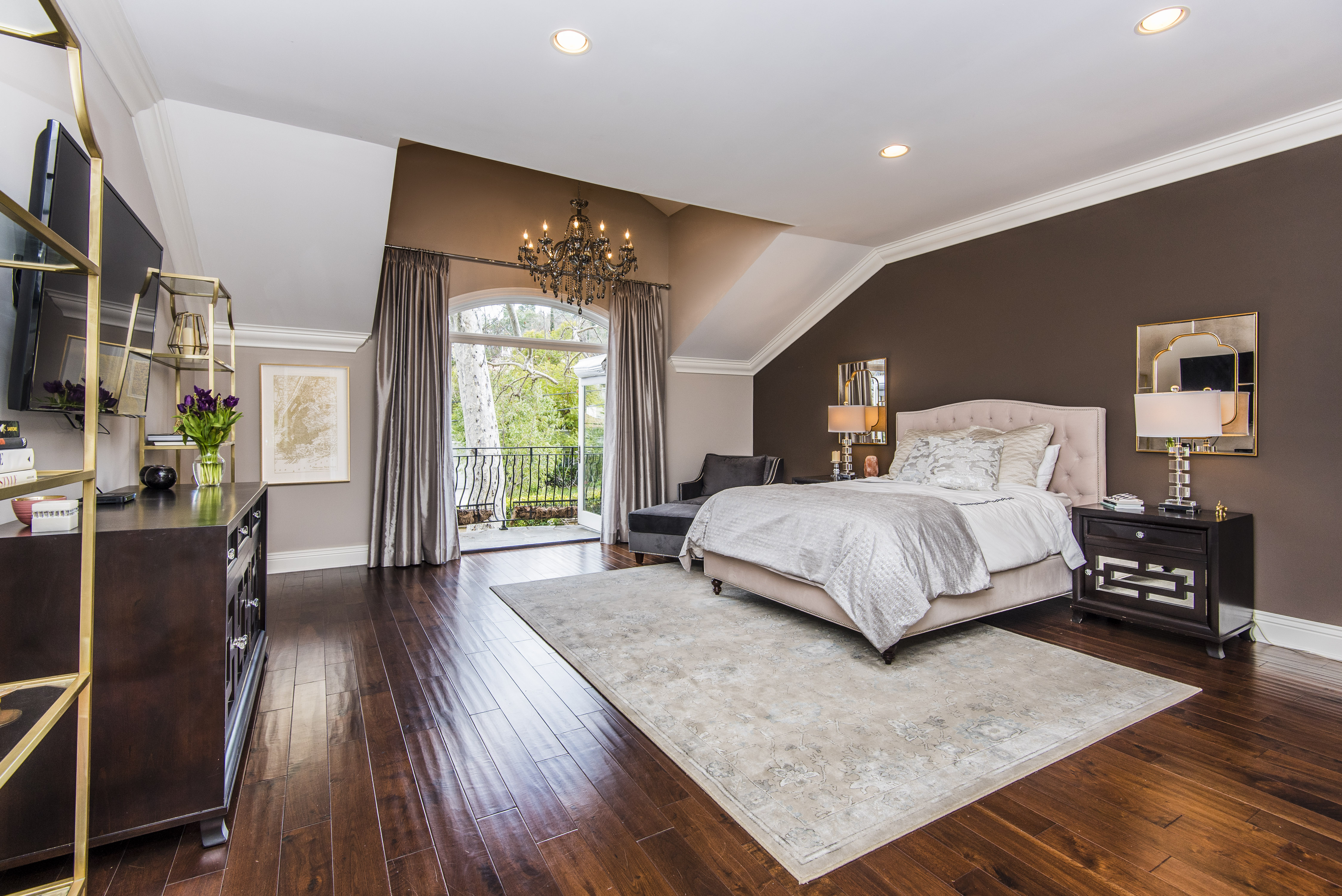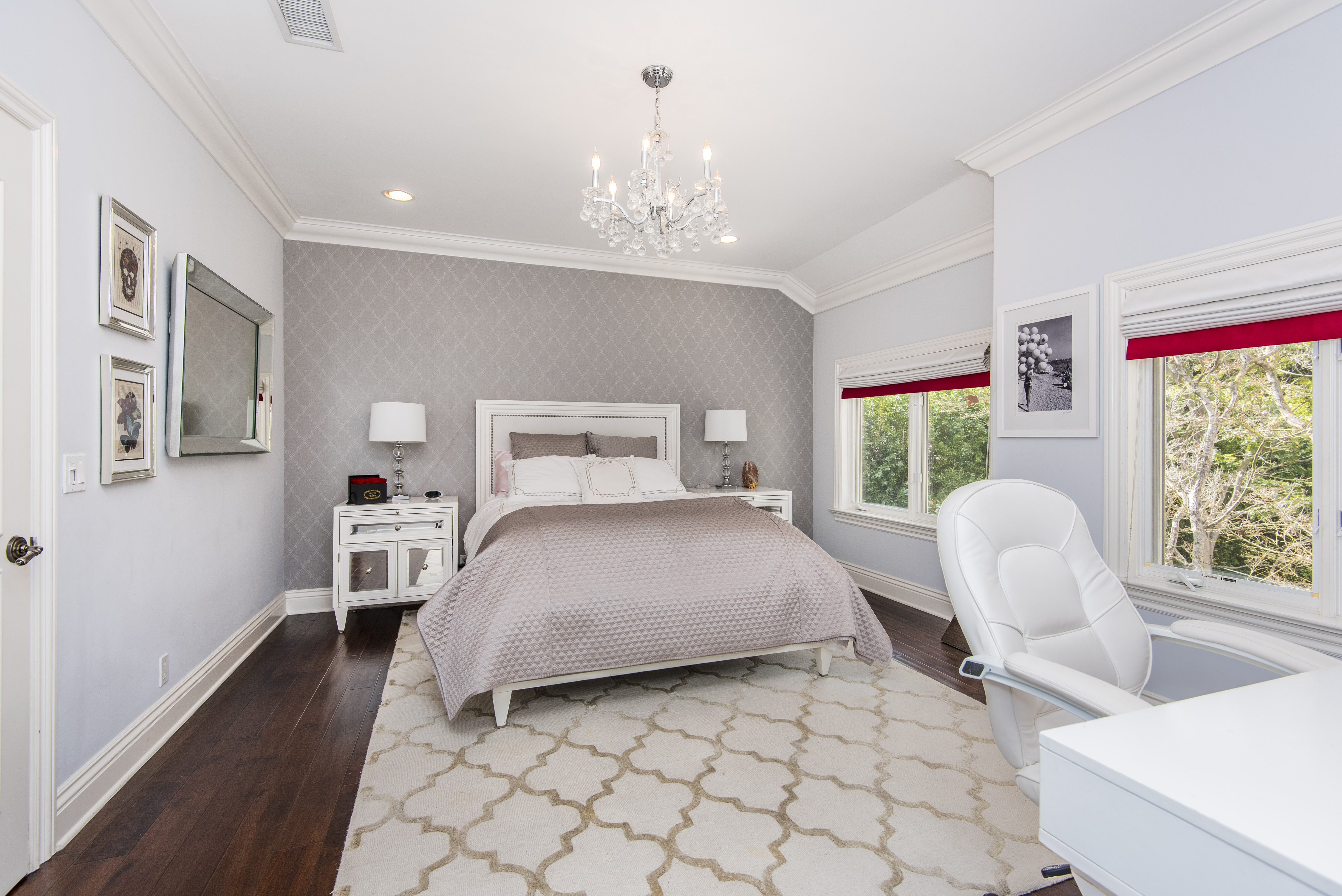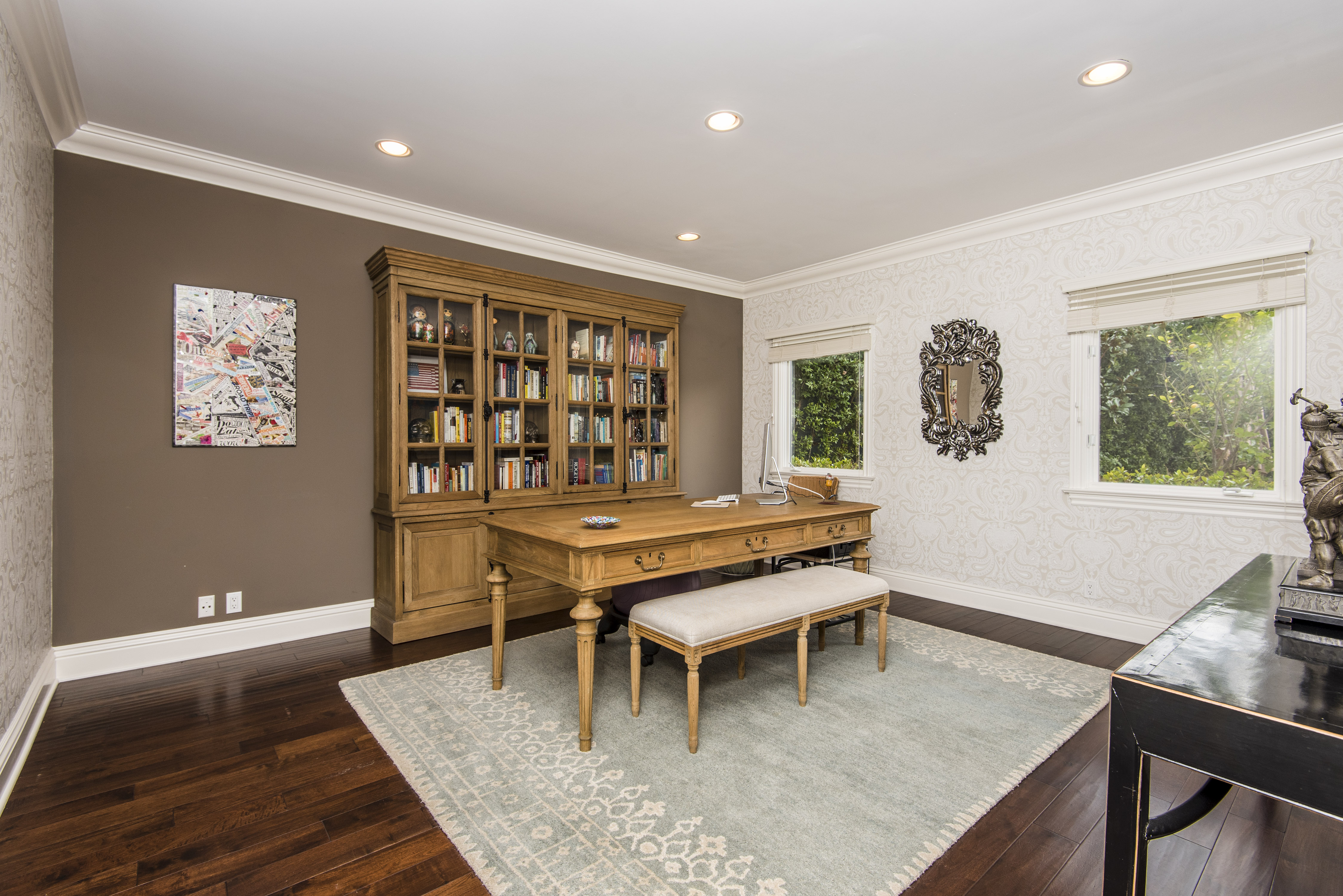 Set back behind private gates awaits this breathtaking retreat. The front yard is complete with circular driveway, lush landscaping, and beautiful Sycamore trees. Inside, the grand entry boasts soaring coffered ceilings and stunning custom chandelier. To your left is the great room which effortlessly connects the foyer to the formal living room, with the first of three fireplaces. The main floor hosts one of the six bedrooms with en-suite bathroom and walk-in closet. The Chef's kitchen features high-end appliances, breakfast nook, and large center island. The family room is accentuated by a grand fireplace and custom built-in entertainment center. A sleek wet bar connects the family room and formal dining room, with french doors to the backyard, creating the quintessential entertaining space. Upstairs, each of the five bedrooms has an en-suite bathroom, including the junior master suite which features a Romeo & Juliet balcony. The formal master suite is the definition of serenity, with lofty exposed beam ceiling, balcony overlooking the backyard, large walk-in closet, and luxurious master bathroom with steam shower, and jetted tub. Down in the basement, grab some popcorn and lounge in the 8-seat theater with 110" screen, or get your sweat on in the home gym. Prefer to spend time outside? This home's backyard is a dream! With a large grassy area, saltwater pool, fire pit, built in bbq, and pool house with full bathroom. All of this and more can be yours!