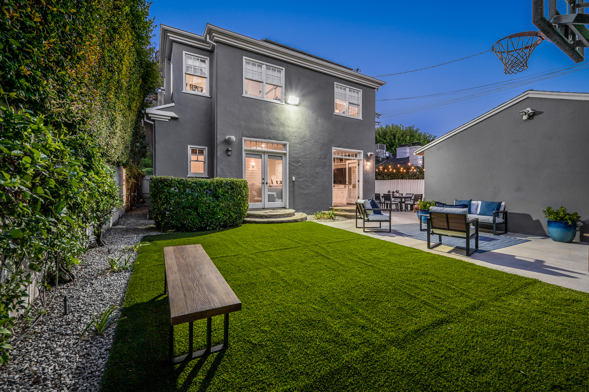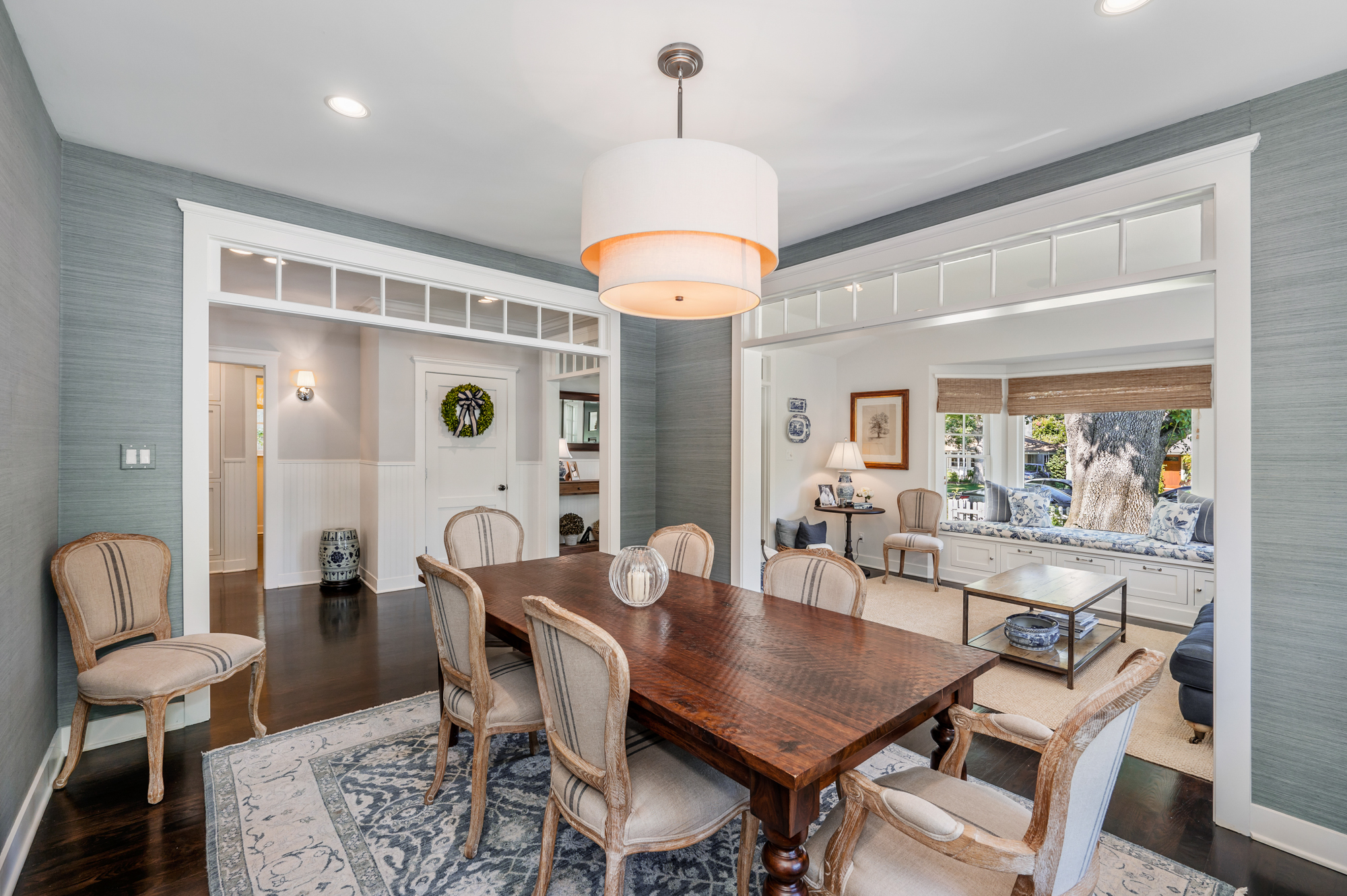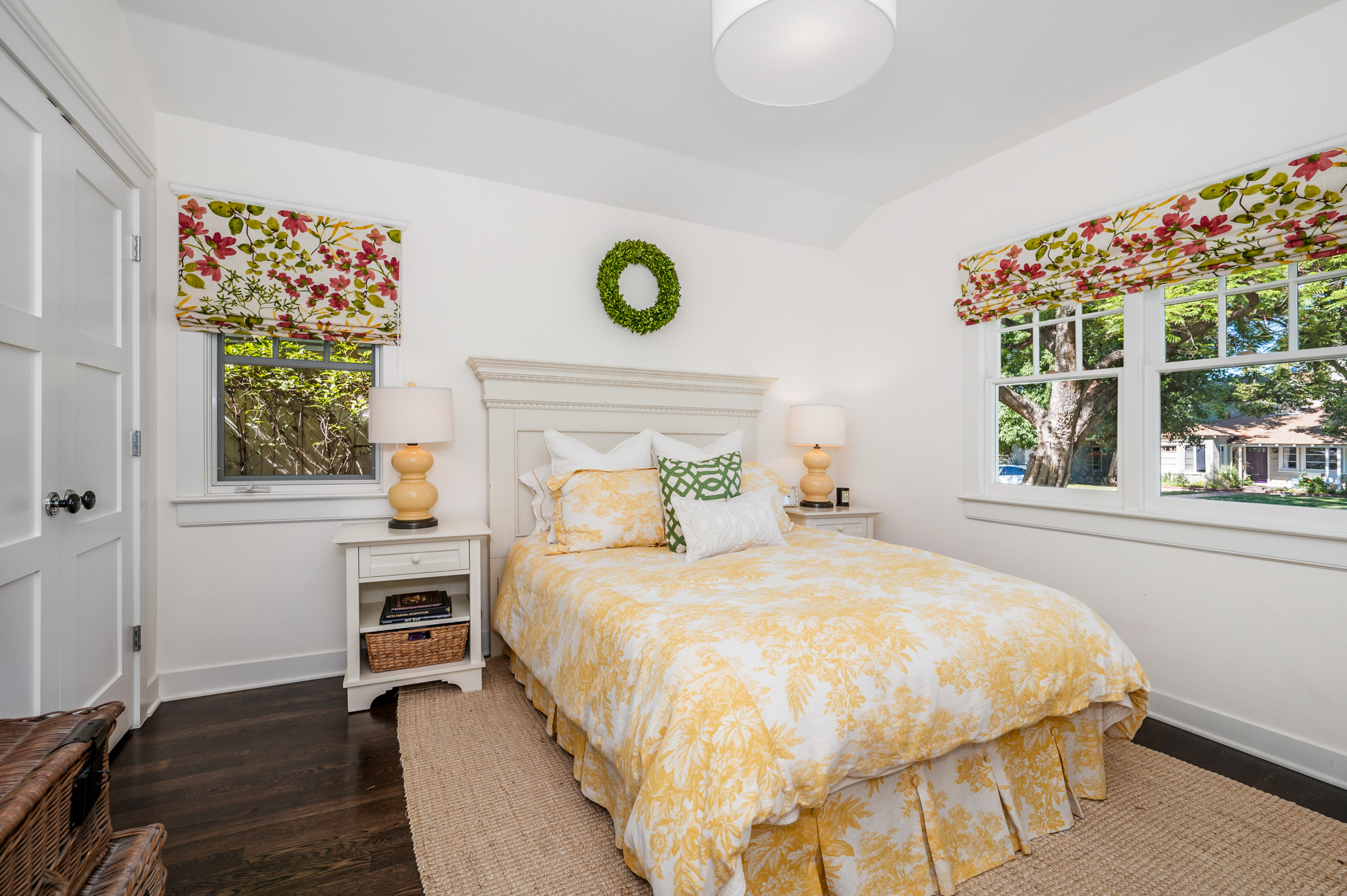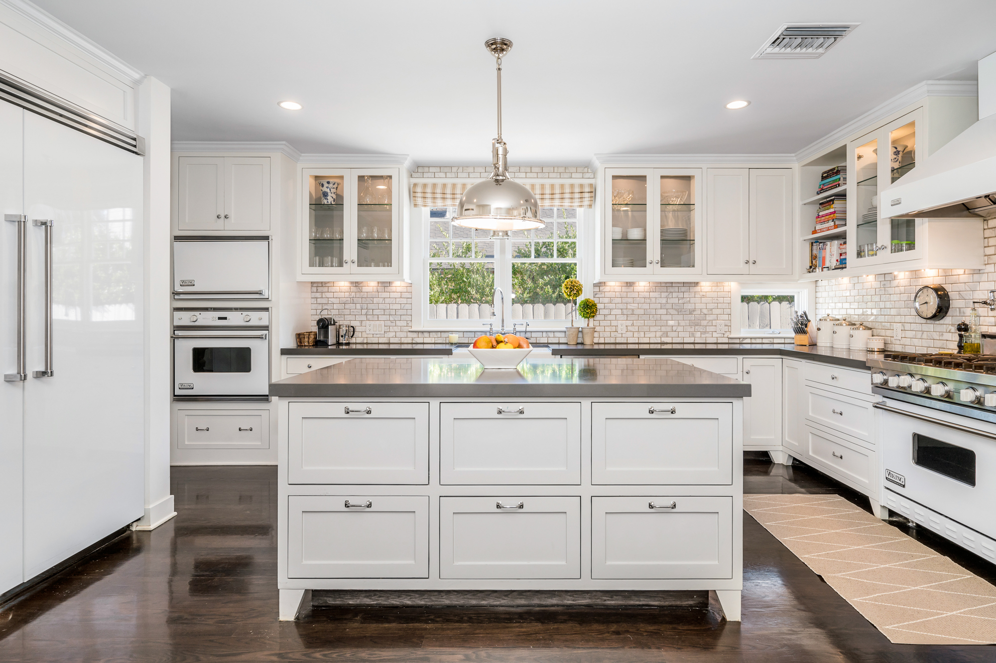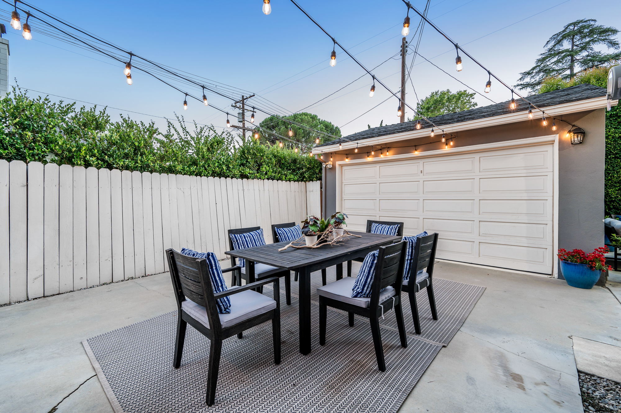 Set behind a charming picket fence on a tree lined street in the highly desirable Footbridge Square pocket of Studio City is this beautiful fully updated 5 bedroom traditional home in Carpenter School District. Down the walkway and past the spacious well manicured front lawn, enter into the light and bright formal entry with skylight. The living room is complete with a large bay window bench seat. Rich wood floors flow into the grand dining room with designer wall paper and built in cabinetry. The gourmet chef’s kitchen features Viking and Miele appliances, large center island, custom tile backsplash, and has a breakfast bar big enough for 5! Perfect for entertaining, the kitchen opens to the family room with floor to ceiling built-ins and double french doors to the backyard. The downstairs bedrooms are well sized and ideally situated as a guest room and playroom, home office, or more. Upstairs, the master retreat is the epitome of luxury with high ceilings, two walk in closets, and a bath with dual sink vanity and large shower with multiple shower heads and bench. The two additional bedrooms are well appointed and share a bath with dual sink vanity and large tub. The backyard offers the best of Southern California living, with ample space for dining, lounging, and playing. Additional features include custom drapery throughout, skylights, SOLAR PANELS, whole house filtration system, and so much more. This home is sure to provide years of happy memories to its new owners.