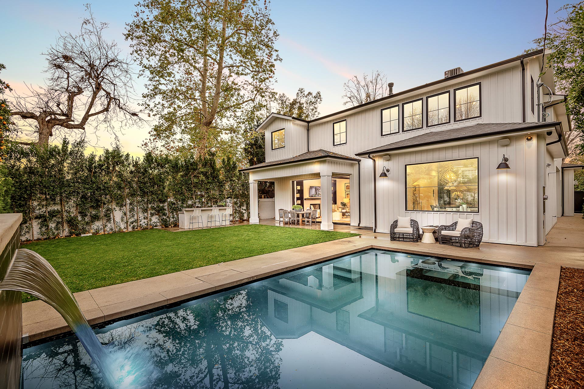 Located in the best neighborhood of Studio City lies this brand new construction masterpiece! This Modern Farmhouse is any entertainer’s dream, featuring over 6,300 SqFt of open living space and three stories of pure luxury. Walk through the grand entrance into the elegant formal family and dining rooms, complete with 1 of 3 custom fireplaces and gorgeous light fixtures throughout. A one of a kind Chef's kitchen with top of the line built-in appliances, large stone center island, custom cabinetry, a Butler’s pantry. 5 spacious bedrooms and 7 bathrooms each filled with mixed media prints, with black and brass finishes, this is the ultimate dream home. Oversized living room with pocket doors leading you to the backyard with patio, sparkling pool+spa, and built-in BBQ. Notable features include his & her closets in the master, full basement with full bathroom, media room and wine cellar, Control4 smart home system, and upstairs den/loft. Located just a few blocks from Ventura Blvd. in the Carpenter school district – this home is an absolute must-see.