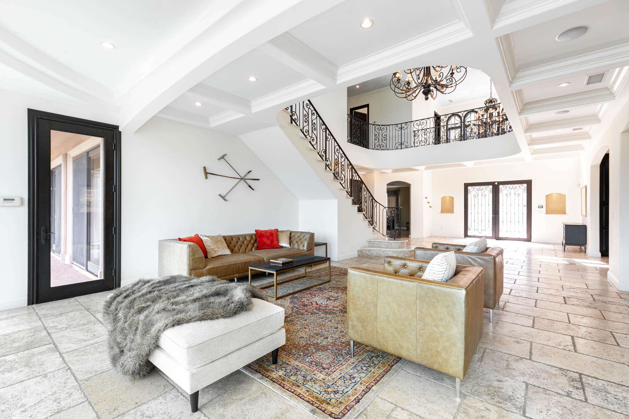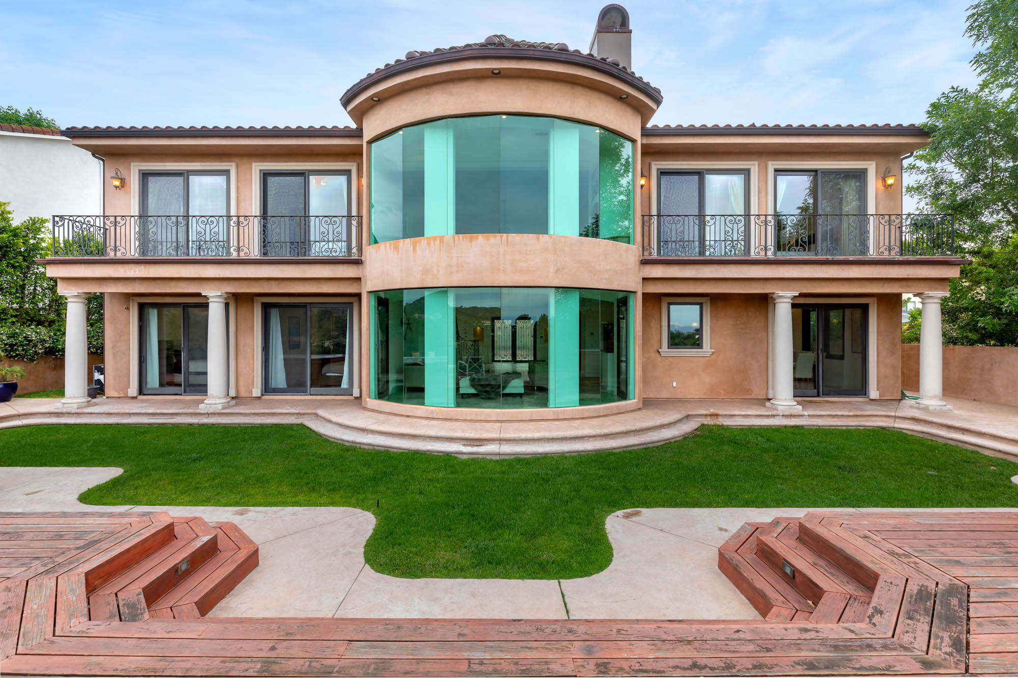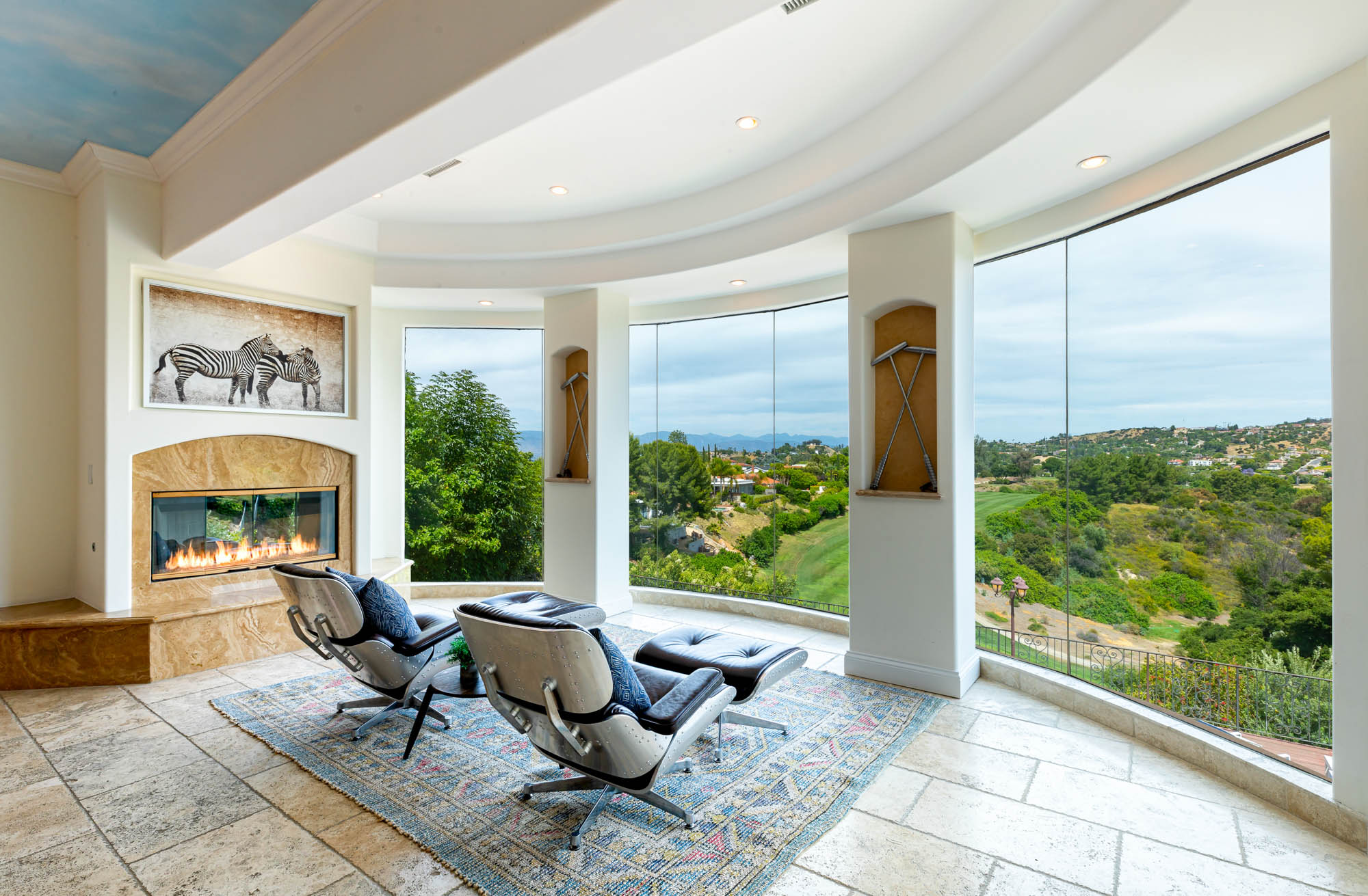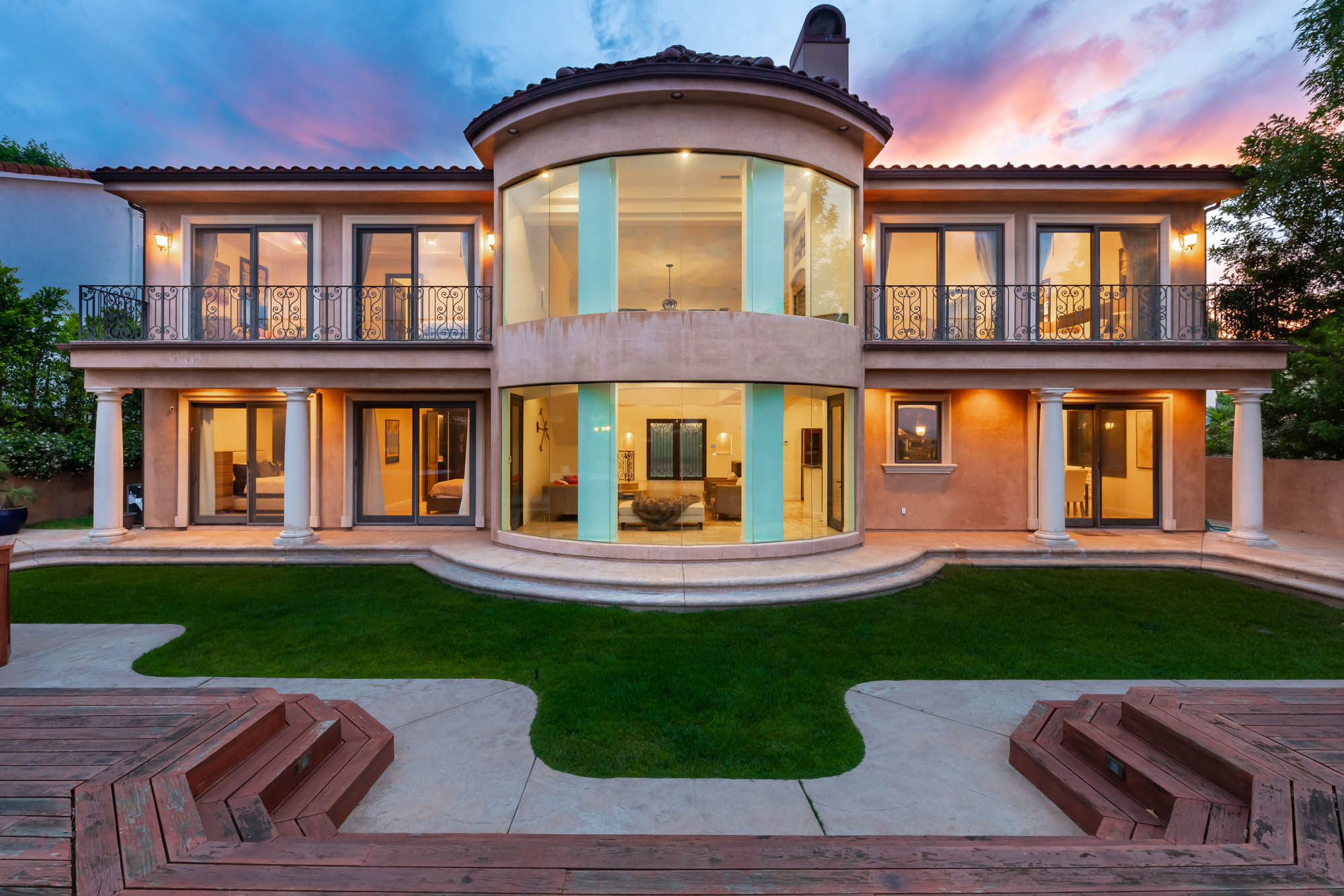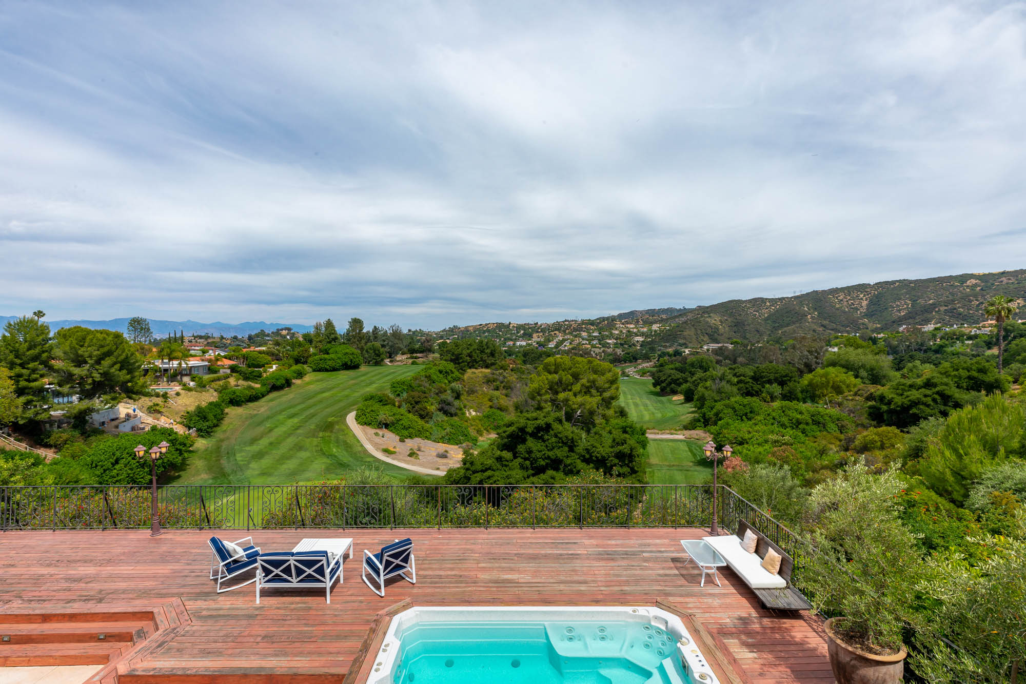 Tranquil & majestic gated estate situated South of the Blvd with panoramic valley views! Double doors lead to a spacious formal entry with high coffered ceilings, stone flooring, chandelier, custom wrought iron staircase, and the gorgeous interior straight ahead. The main level provides a perfect open flow from the kitchen, to the living room with floor to ceiling windows, and to the spacious dining room with a wet bar. The gourmet kitchen showcases rich custom cabinetry, professional-grade appliances & oversized chefs island. The family/media room will be the ultimate space for movie nights, with a cozy fireplace, wet bar, and attached bath. The main level also includes two spacious bedrooms. The second level landing serves as an additional family room that offers a fireplace and showcases the most breathtaking views. 3 generously-sized suites upstairs include a luxurious master retreat with a separate sitting room. The master also includes a private balcony, dual walk-in closets, and spa-like bath with double vanity, oversized glass shower & spa tub. Enjoy the best of outdoor entertaining in the private backyard which overlooks a fairway of the Braemar Country Club golf course, and features a BBQ kitchenette, grass space, spa, and an expansive wood deck ideal for lounging and al fresco dining. Additional features include attached 3-car garage, large upstairs laundry room, and so much more. This special property is truly one of a kind, so close to all the city has to offer, yet cloistered in your own private sanctuary.