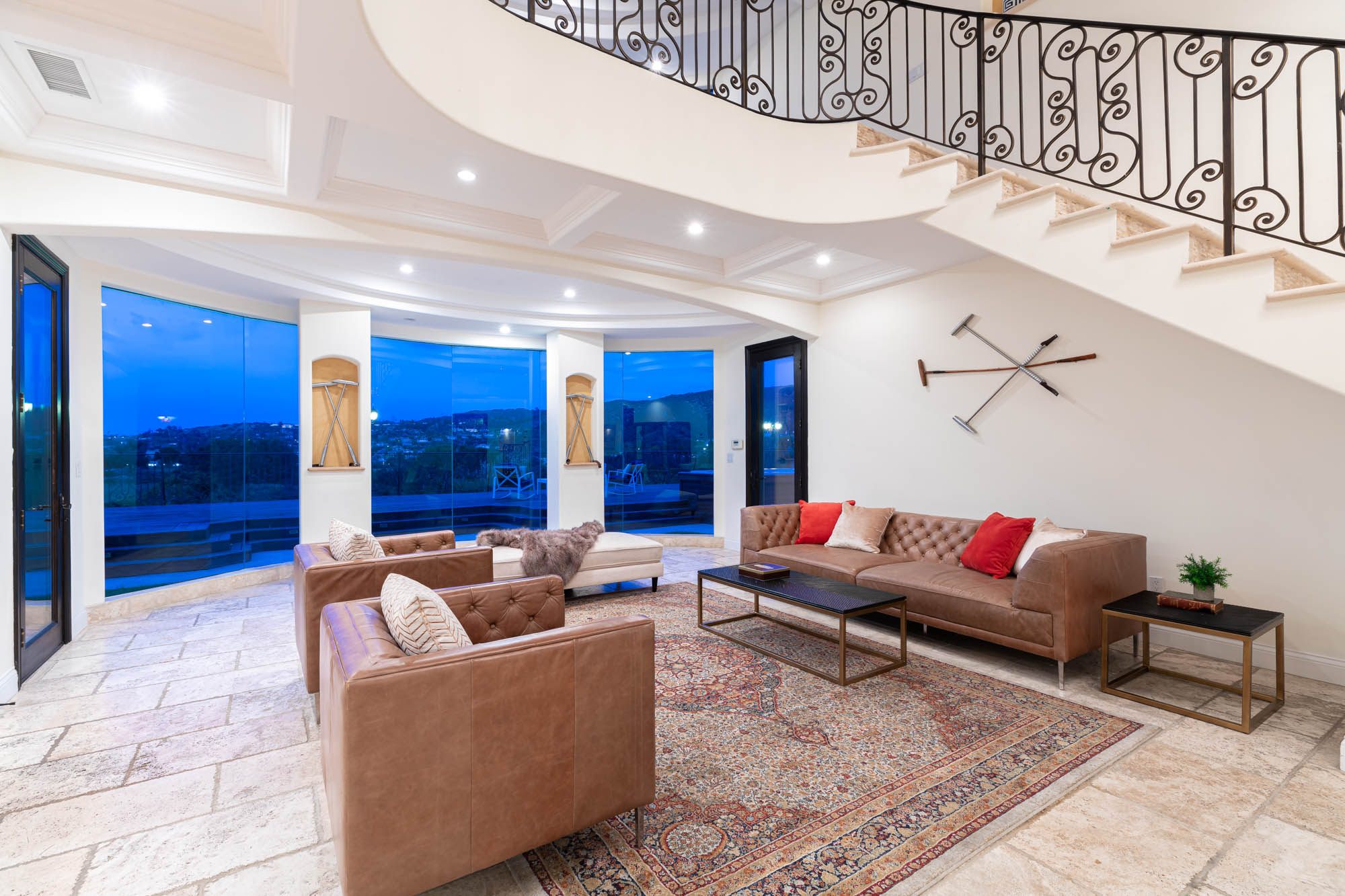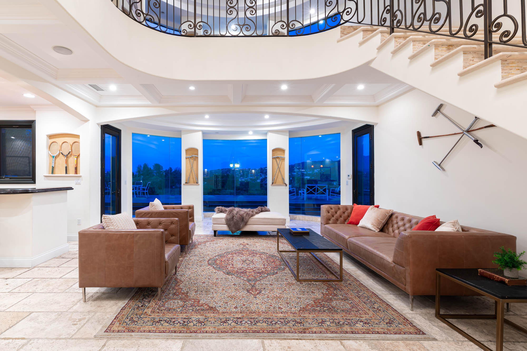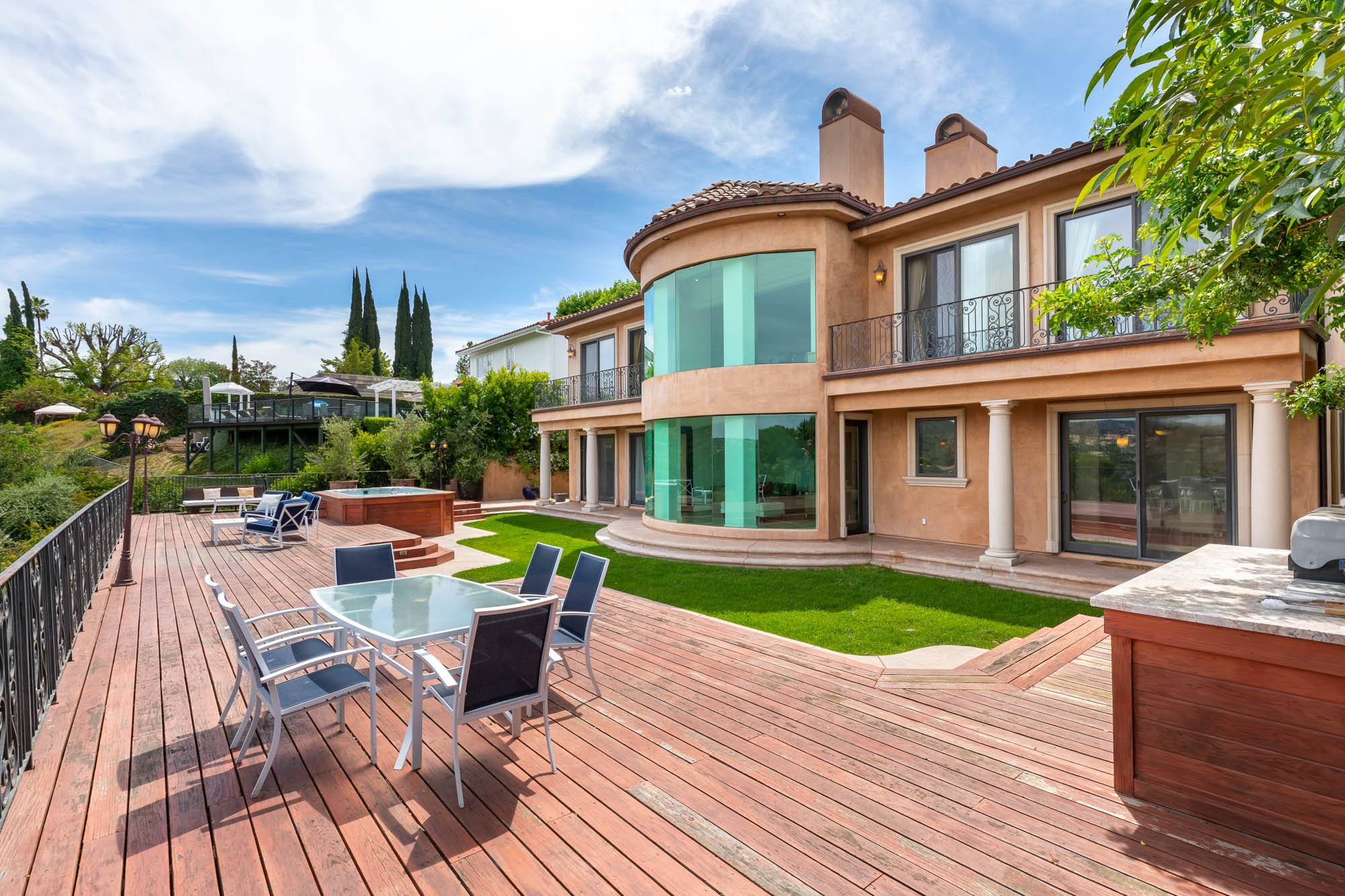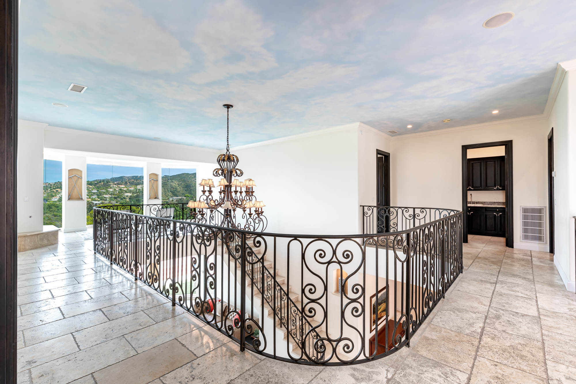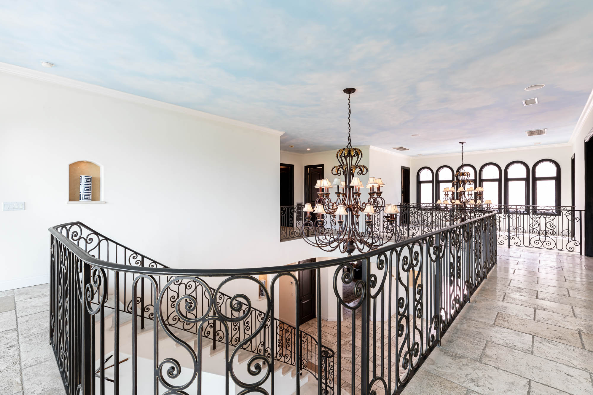 Tranquil & majestic gated estate situated South of the Blvd with panoramic valley views! Double doors lead to a spacious formal entry with high coffered ceilings, stone flooring, chandelier, custom wrought iron staircase, and the gorgeous interior straight ahead. The main level provides a perfect open flow from the kitchen, to the living room with floor to ceiling windows, and to the spacious dining room with a wet bar. The gourmet kitchen showcases rich custom cabinetry, professional-grade appliances & oversized chefs island. The family/media room will be the ultimate space for movie nights, with a cozy fireplace, wet bar, and attached bath. The main level also includes two spacious bedrooms. The second level landing serves as an additional family room that offers a fireplace and showcases the most breathtaking views. 3 generously-sized suites upstairs include a luxurious master retreat with a separate sitting room. The master also includes a private balcony, dual walk-in closets, and spa-like bath with double vanity, oversized glass shower & spa tub. Enjoy the best of outdoor entertaining in the private backyard which overlooks a fairway of the Braemar Country Club golf course, and features a BBQ kitchenette, grass space, spa, and an expansive wood deck ideal for lounging and al fresco dining. Additional features include attached 3-car garage, large upstairs laundry room, and so much more. This special property is truly one of a kind, so close to all the city has to offer, yet cloistered in your own private sanctuary.