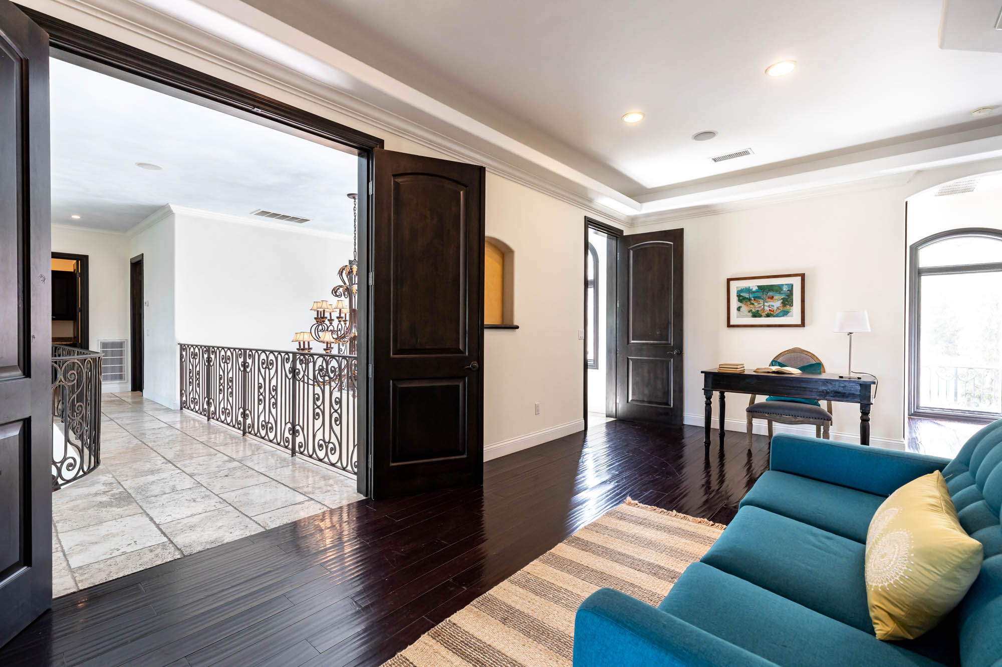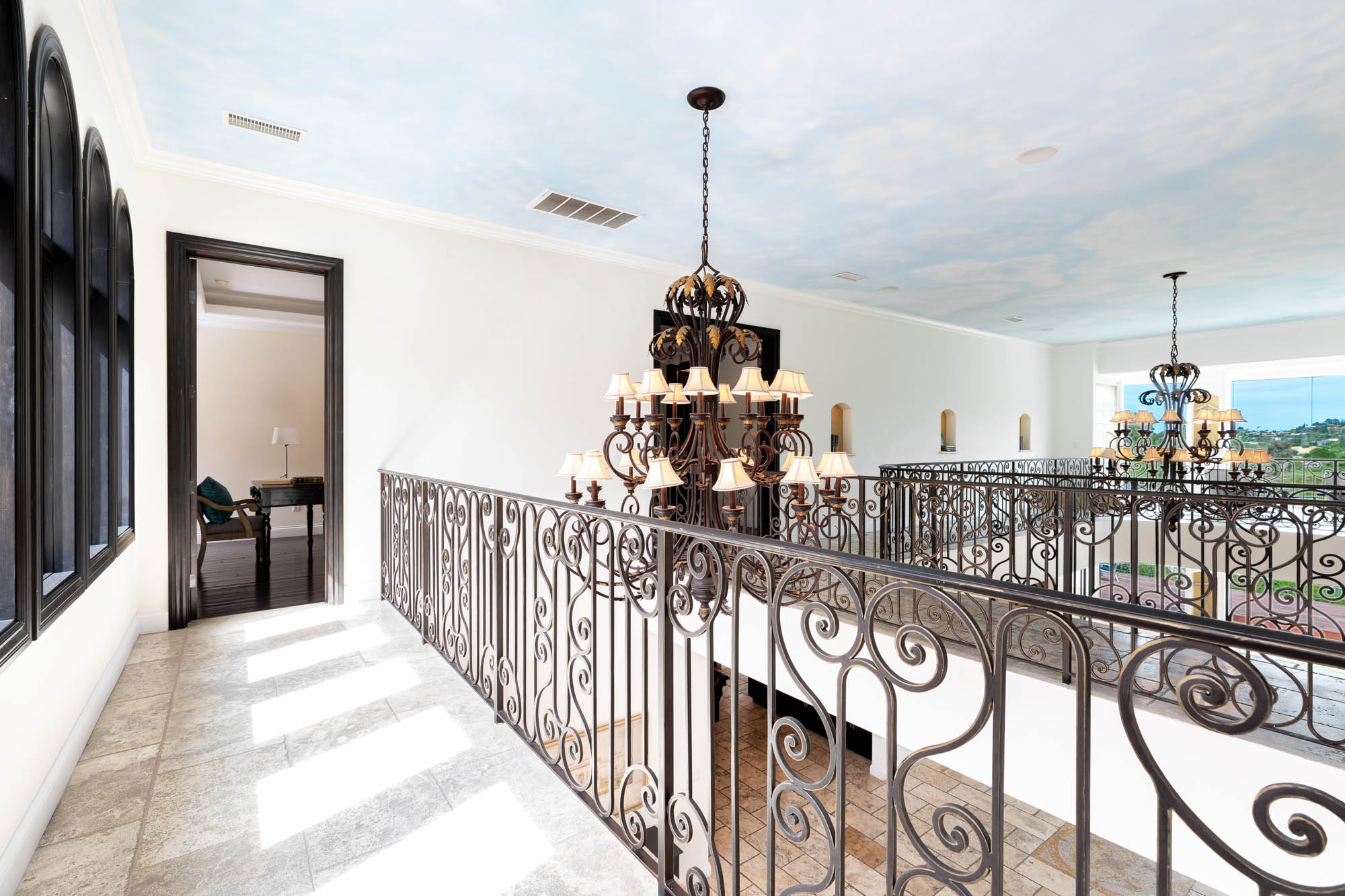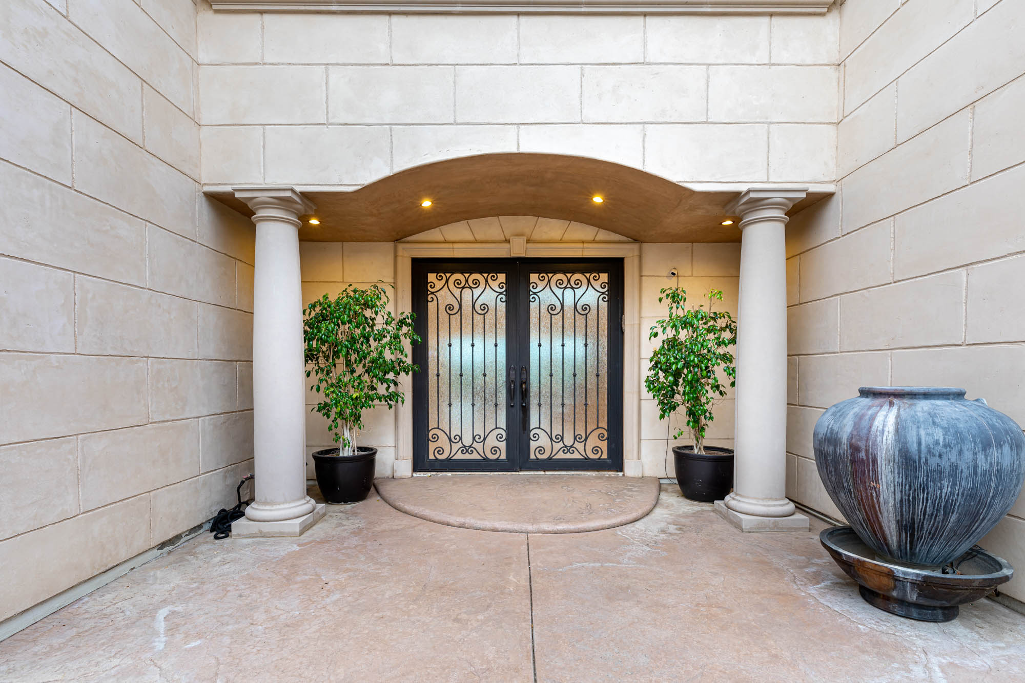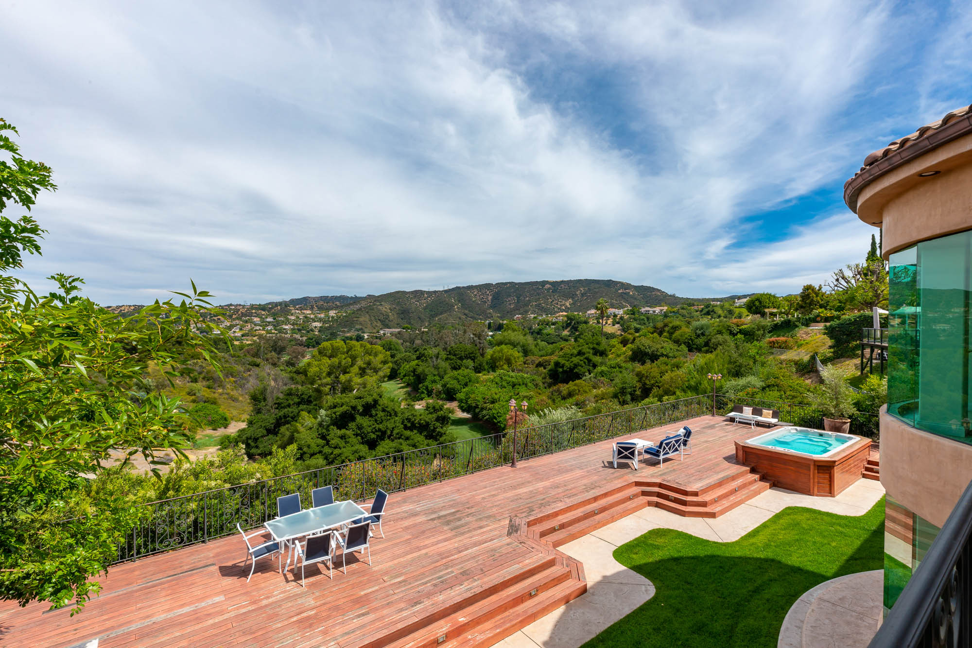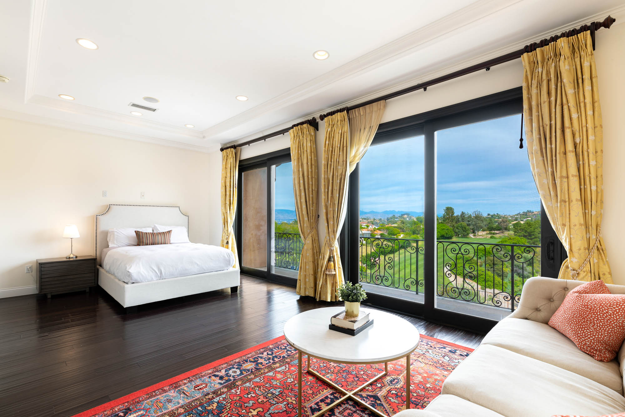 Tranquil & majestic gated estate situated South of the Blvd with panoramic valley views! Double doors lead to a spacious formal entry with high coffered ceilings, stone flooring, chandelier, custom wrought iron staircase, and the gorgeous interior straight ahead. The main level provides a perfect open flow from the kitchen, to the living room with floor to ceiling windows, and to the spacious dining room with a wet bar. The gourmet kitchen showcases rich custom cabinetry, professional-grade appliances & oversized chefs island. The family/media room will be the ultimate space for movie nights, with a cozy fireplace, wet bar, and attached bath. The main level also includes two spacious bedrooms. The second level landing serves as an additional family room that offers a fireplace and showcases the most breathtaking views. 3 generously-sized suites upstairs include a luxurious master retreat with a separate sitting room. The master also includes a private balcony, dual walk-in closets, and spa-like bath with double vanity, oversized glass shower & spa tub. Enjoy the best of outdoor entertaining in the private backyard which overlooks a fairway of the Braemar Country Club golf course, and features a BBQ kitchenette, grass space, spa, and an expansive wood deck ideal for lounging and al fresco dining. Additional features include attached 3-car garage, large upstairs laundry room, and so much more. This special property is truly one of a kind, so close to all the city has to offer, yet cloistered in your own private sanctuary.