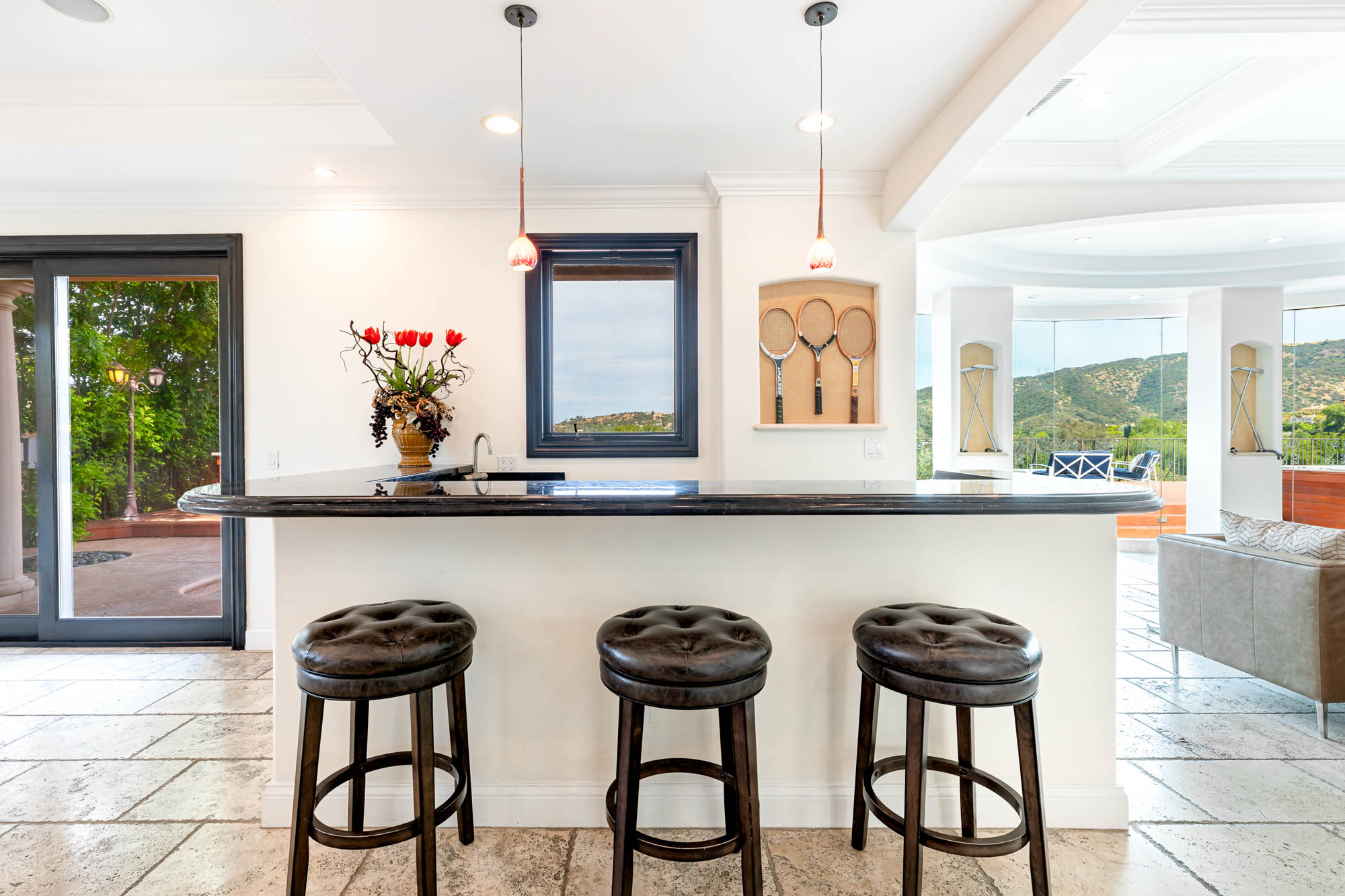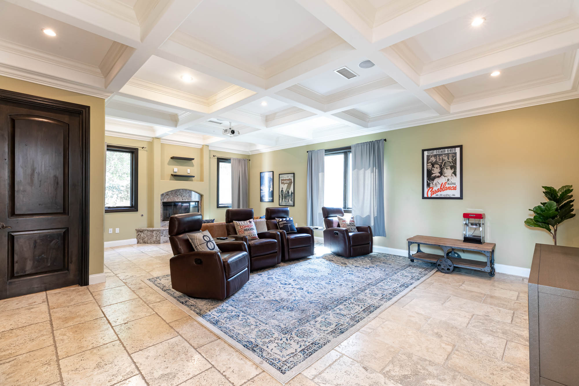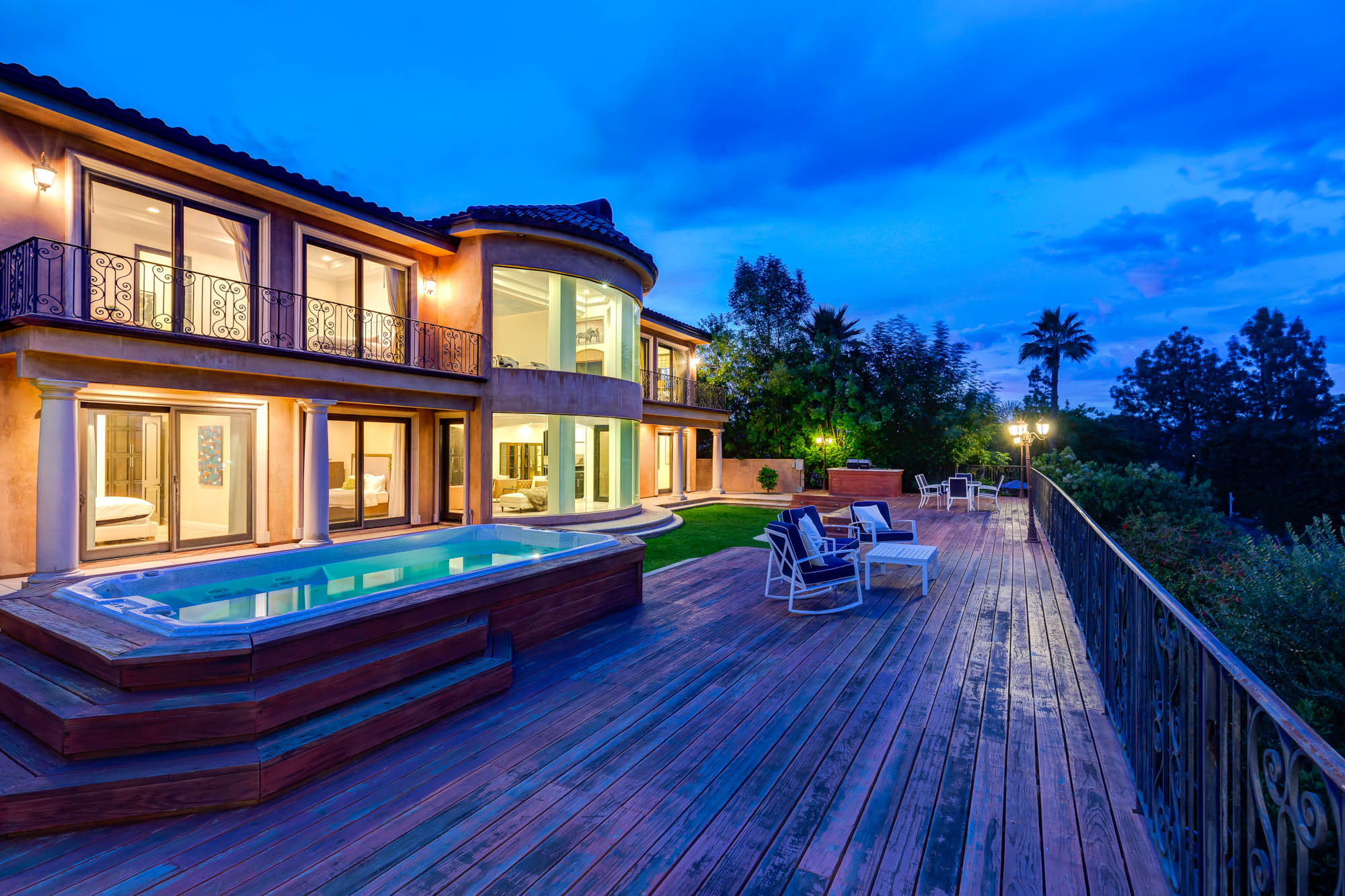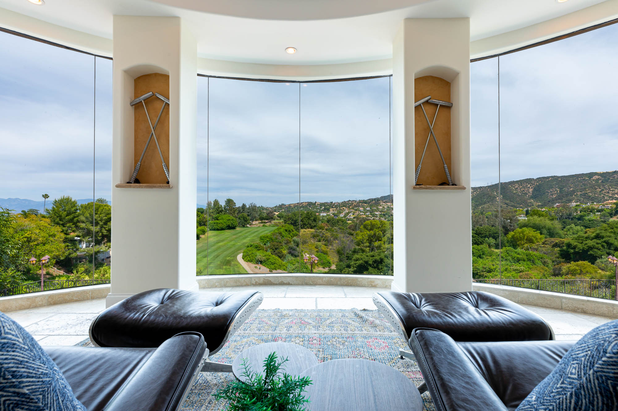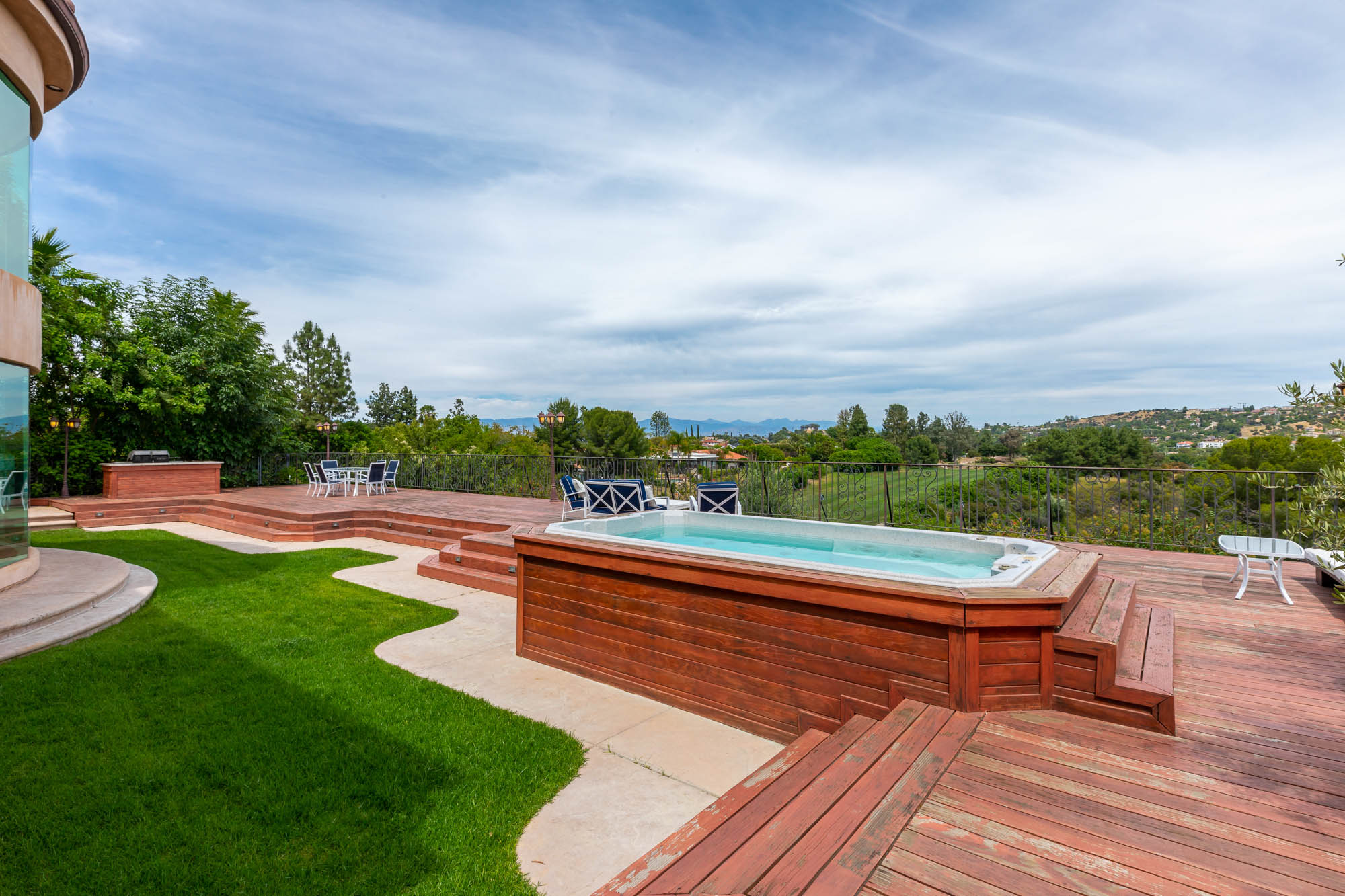 Tranquil & majestic gated estate situated South of the Blvd with panoramic valley views! Double doors lead to a spacious formal entry with high coffered ceilings, stone flooring, chandelier, custom wrought iron staircase, and the gorgeous interior straight ahead. The main level provides a perfect open flow from the kitchen, to the living room with floor to ceiling windows, and to the spacious dining room with a wet bar. The gourmet kitchen showcases rich custom cabinetry, professional-grade appliances & oversized chefs island. The family/media room will be the ultimate space for movie nights, with a cozy fireplace, wet bar, and attached bath. The main level also includes two spacious bedrooms. The second level landing serves as an additional family room that offers a fireplace and showcases the most breathtaking views. 3 generously-sized suites upstairs include a luxurious master retreat with a separate sitting room. The master also includes a private balcony, dual walk-in closets, and spa-like bath with double vanity, oversized glass shower & spa tub. Enjoy the best of outdoor entertaining in the private backyard which overlooks a fairway of the Braemar Country Club golf course, and features a BBQ kitchenette, grass space, spa, and an expansive wood deck ideal for lounging and al fresco dining. Additional features include attached 3-car garage, large upstairs laundry room, and so much more. This special property is truly one of a kind, so close to all the city has to offer, yet cloistered in your own private sanctuary.