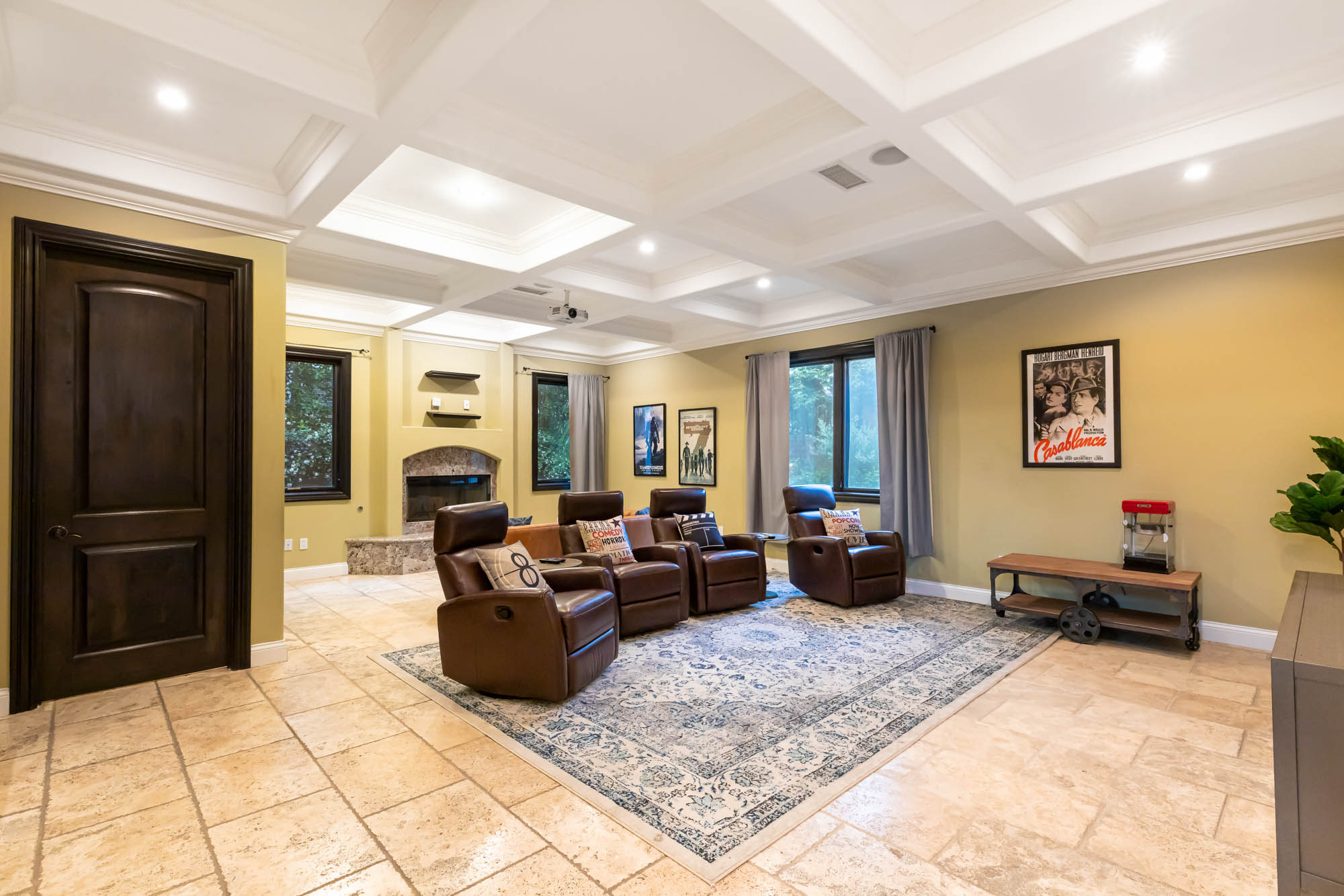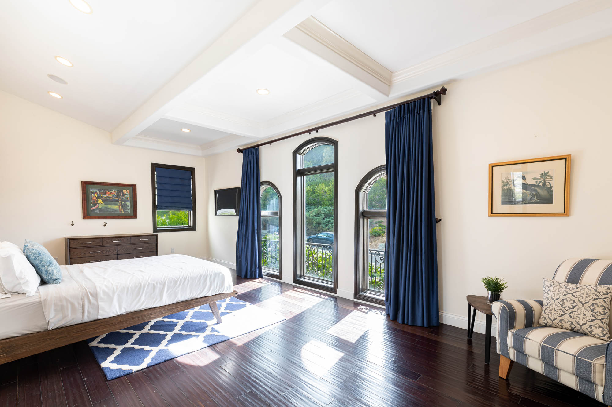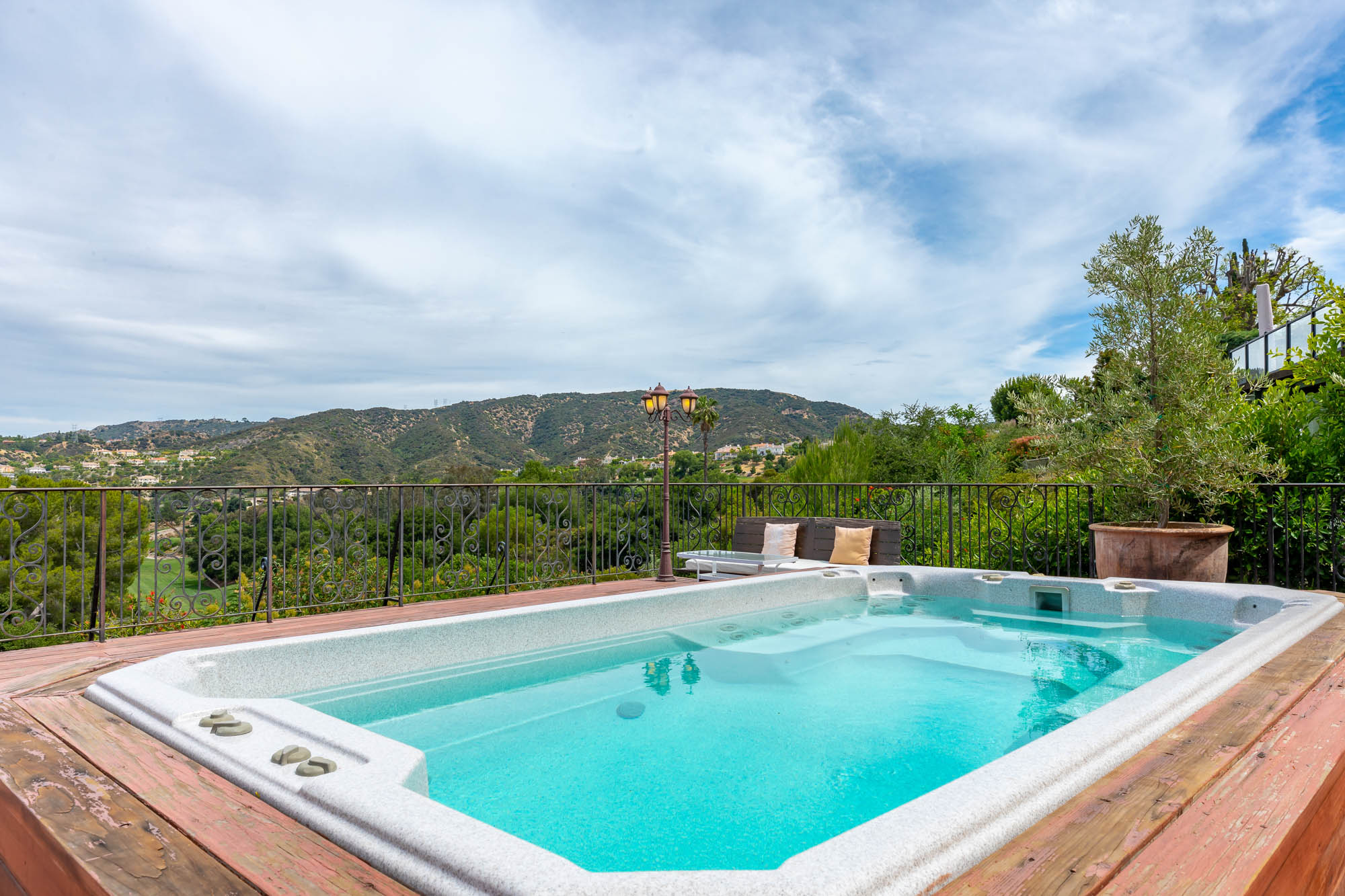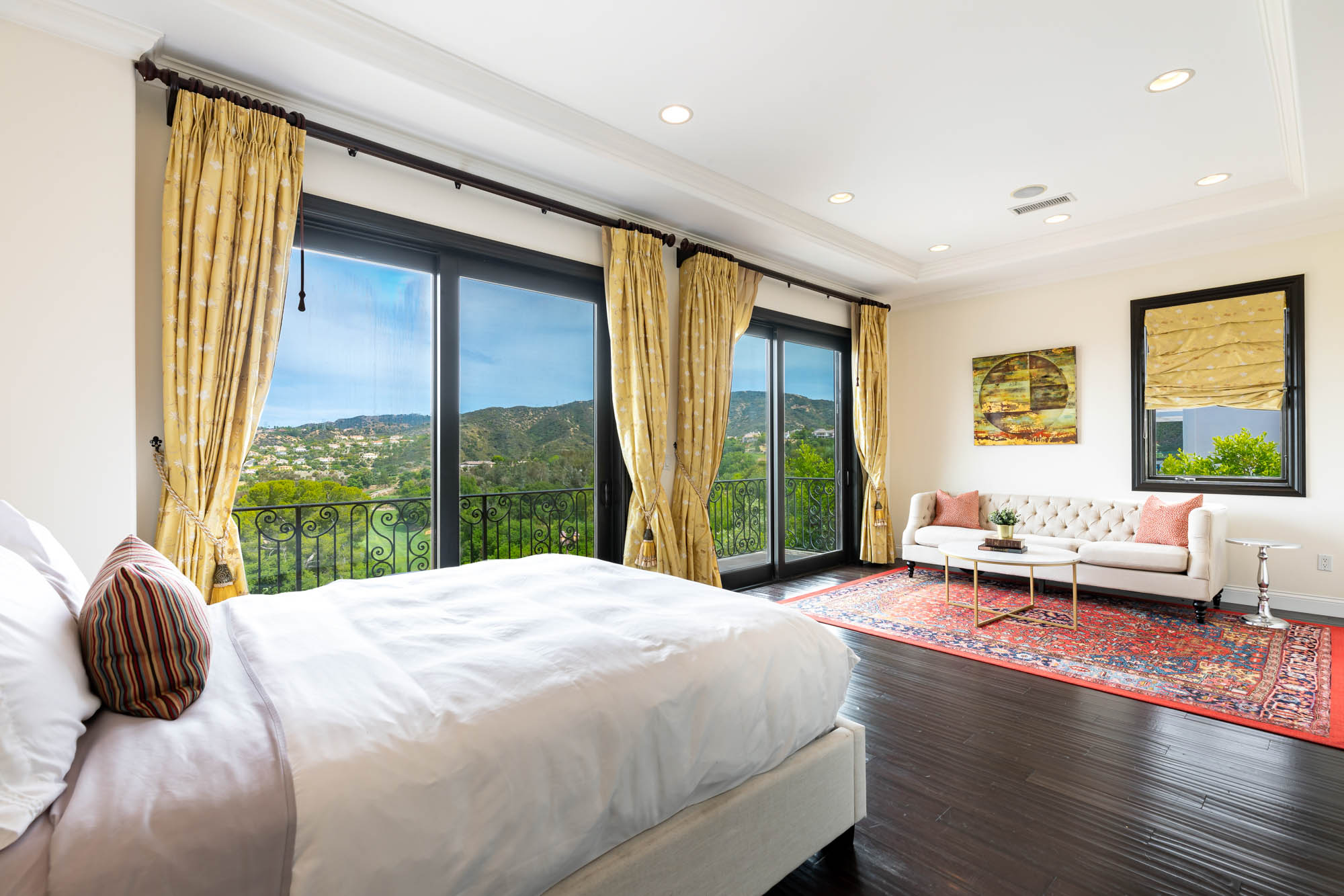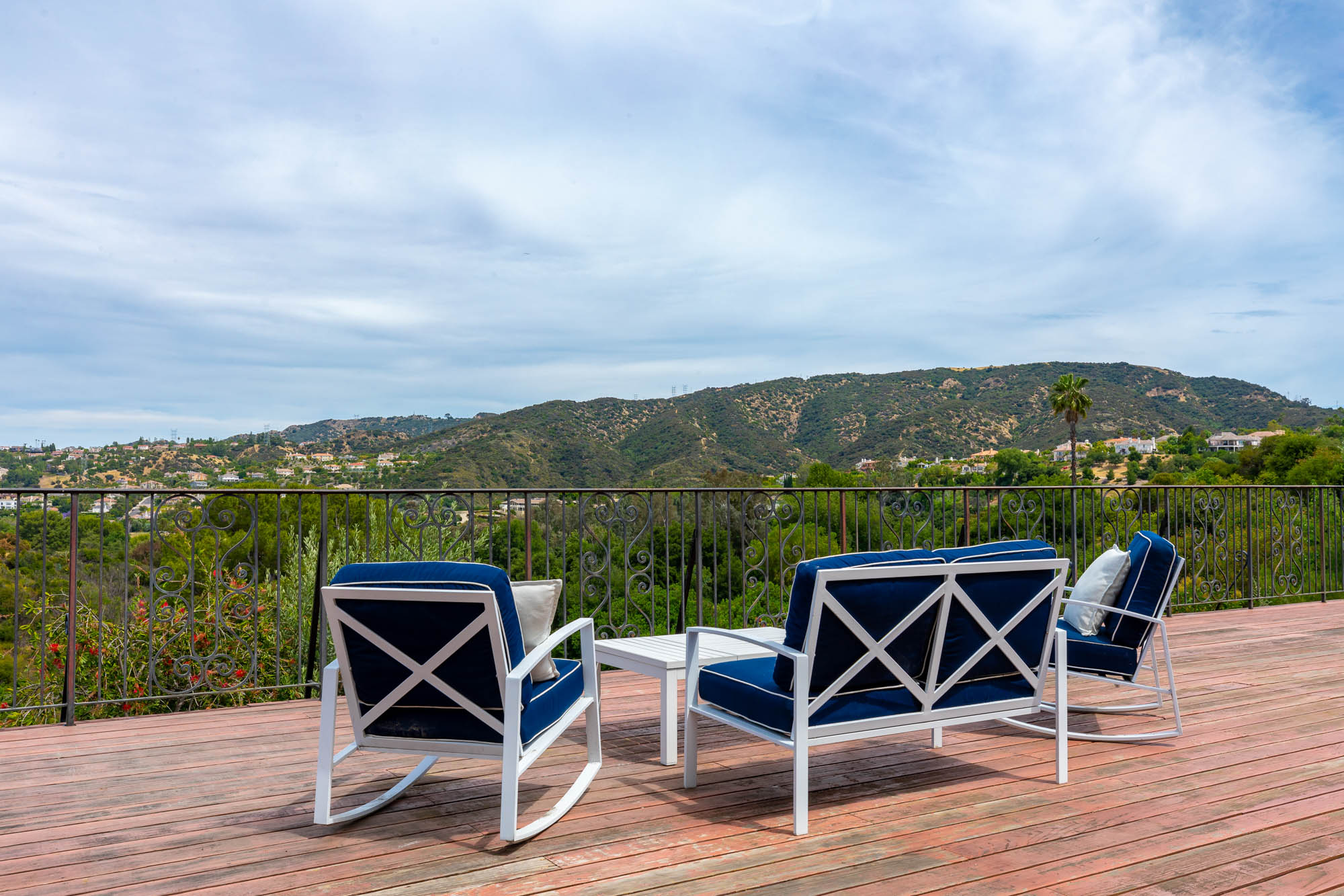 Tranquil & majestic gated estate situated South of the Blvd with panoramic valley views! Double doors lead to a spacious formal entry with high coffered ceilings, stone flooring, chandelier, custom wrought iron staircase, and the gorgeous interior straight ahead. The main level provides a perfect open flow from the kitchen, to the living room with floor to ceiling windows, and to the spacious dining room with a wet bar. The gourmet kitchen showcases rich custom cabinetry, professional-grade appliances & oversized chefs island. The family/media room will be the ultimate space for movie nights, with a cozy fireplace, wet bar, and attached bath. The main level also includes two spacious bedrooms. The second level landing serves as an additional family room that offers a fireplace and showcases the most breathtaking views. 3 generously-sized suites upstairs include a luxurious master retreat with a separate sitting room. The master also includes a private balcony, dual walk-in closets, and spa-like bath with double vanity, oversized glass shower & spa tub. Enjoy the best of outdoor entertaining in the private backyard which overlooks a fairway of the Braemar Country Club golf course, and features a BBQ kitchenette, grass space, spa, and an expansive wood deck ideal for lounging and al fresco dining. Additional features include attached 3-car garage, large upstairs laundry room, and so much more. This special property is truly one of a kind, so close to all the city has to offer, yet cloistered in your own private sanctuary.
