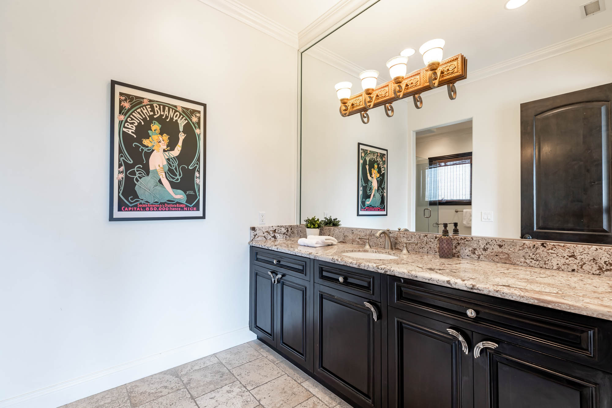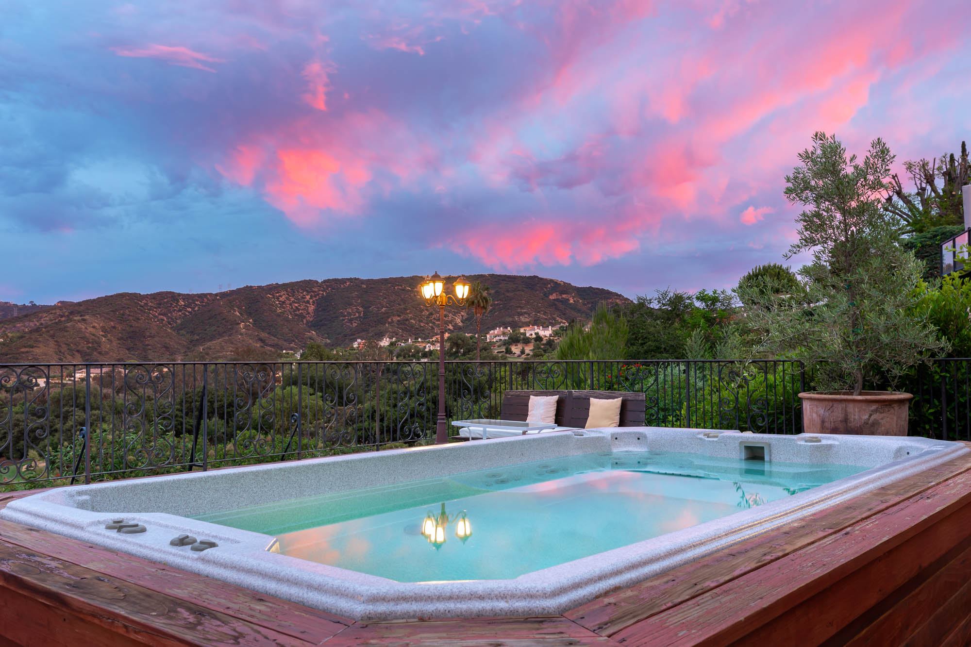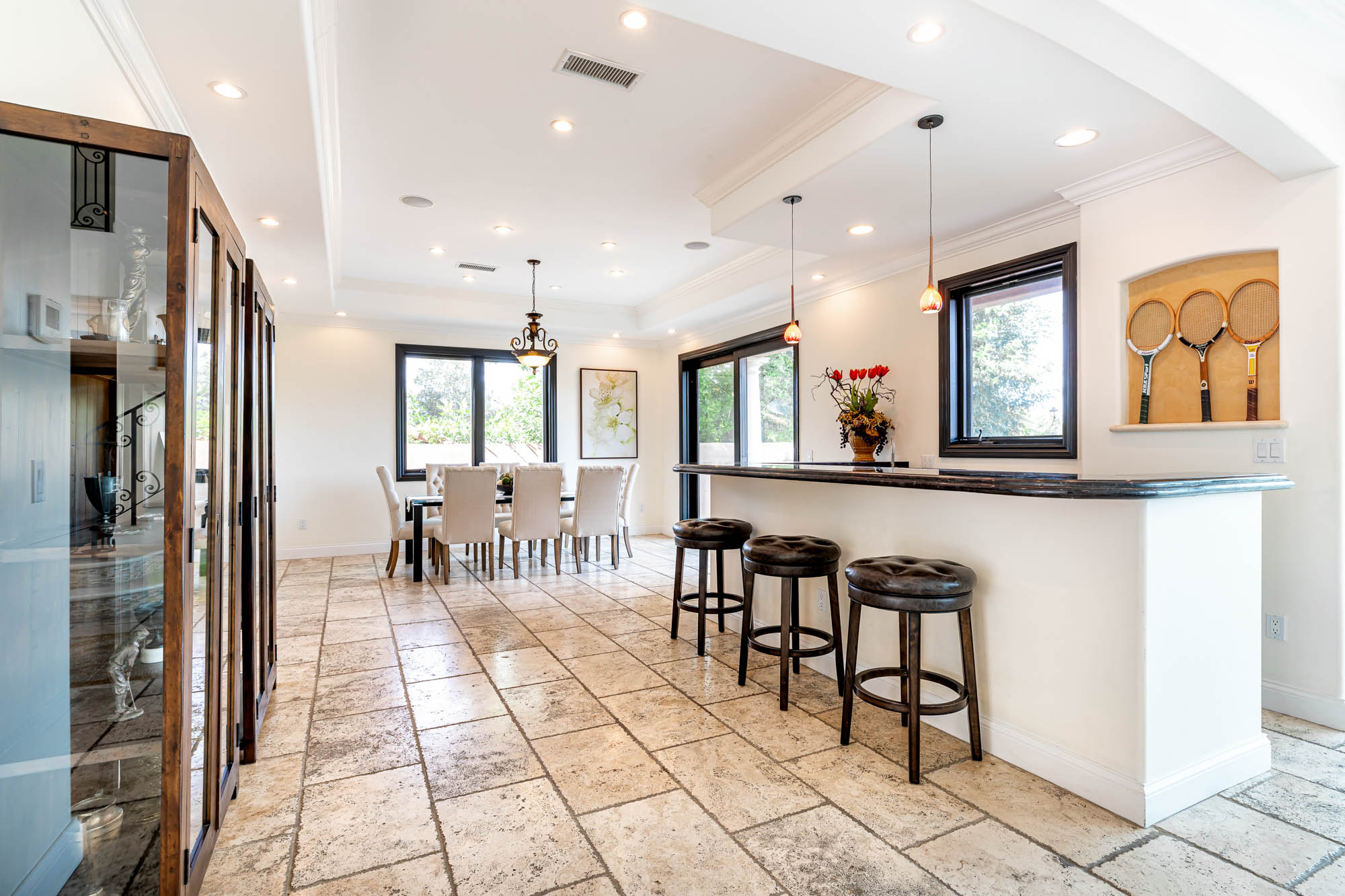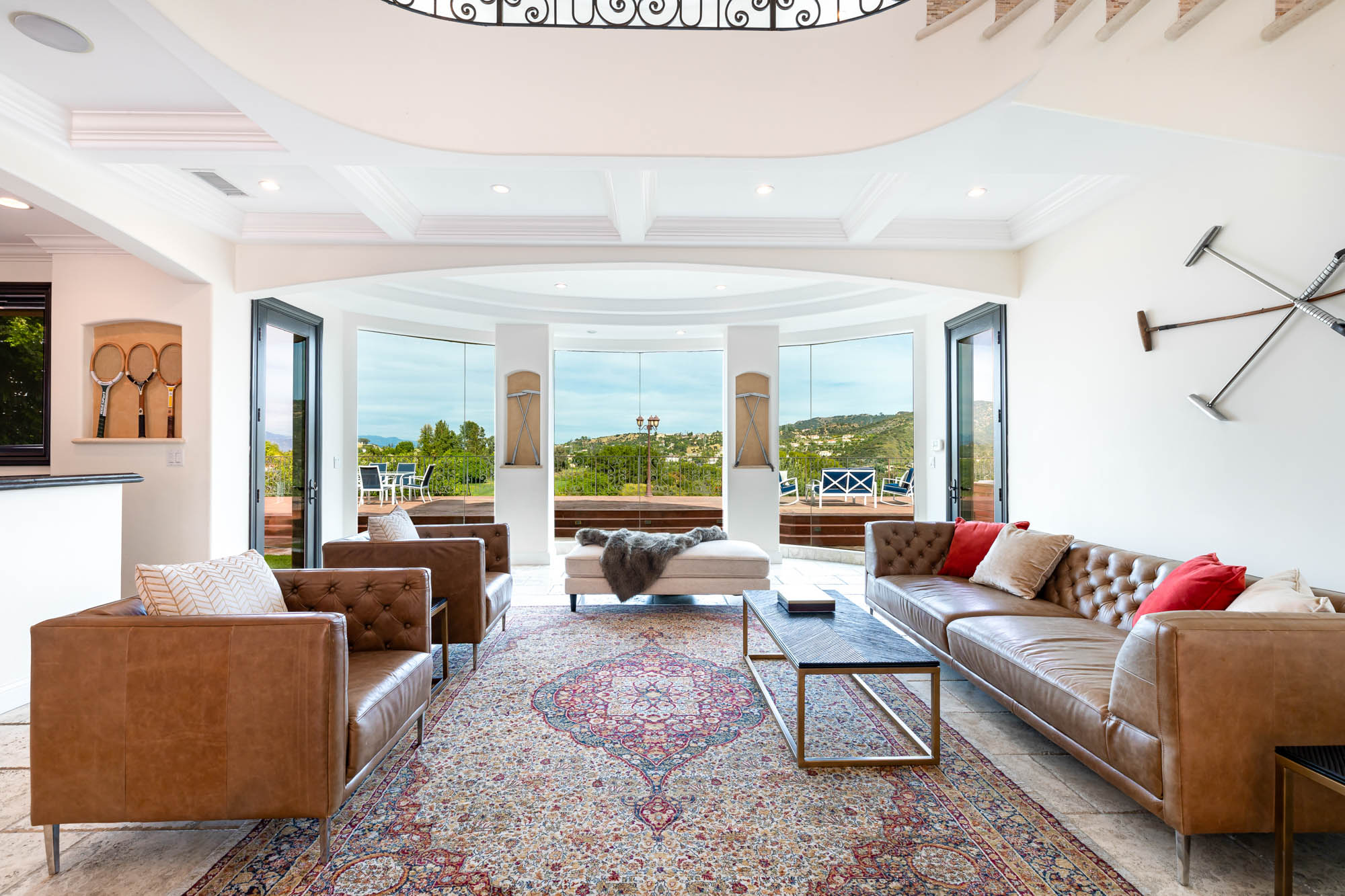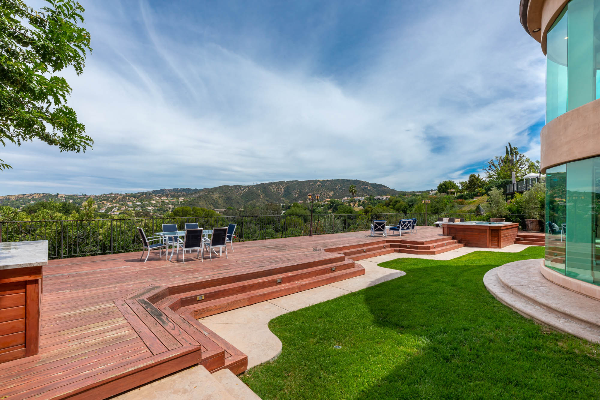 Tranquil & majestic gated estate situated South of the Blvd with panoramic valley views! Double doors lead to a spacious formal entry with high coffered ceilings, stone flooring, chandelier, custom wrought iron staircase, and the gorgeous interior straight ahead. The main level provides a perfect open flow from the kitchen, to the living room with floor to ceiling windows, and to the spacious dining room with a wet bar. The gourmet kitchen showcases rich custom cabinetry, professional-grade appliances & oversized chefs island. The family/media room will be the ultimate space for movie nights, with a cozy fireplace, wet bar, and attached bath. The main level also includes two spacious bedrooms. The second level landing serves as an additional family room that offers a fireplace and showcases the most breathtaking views. 3 generously-sized suites upstairs include a luxurious master retreat with a separate sitting room. The master also includes a private balcony, dual walk-in closets, and spa-like bath with double vanity, oversized glass shower & spa tub. Enjoy the best of outdoor entertaining in the private backyard which overlooks a fairway of the Braemar Country Club golf course, and features a BBQ kitchenette, grass space, spa, and an expansive wood deck ideal for lounging and al fresco dining. Additional features include attached 3-car garage, large upstairs laundry room, and so much more. This special property is truly one of a kind, so close to all the city has to offer, yet cloistered in your own private sanctuary.