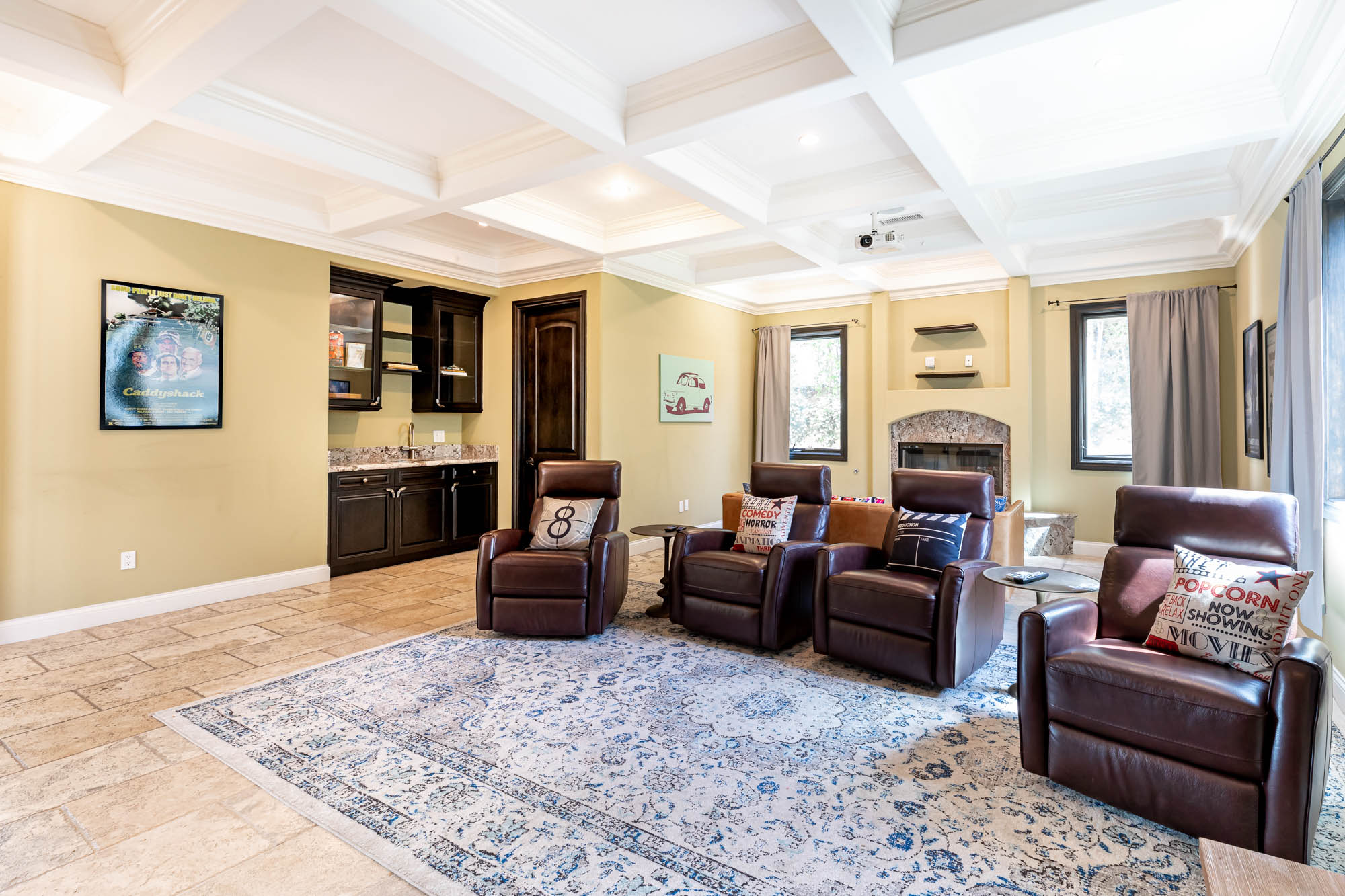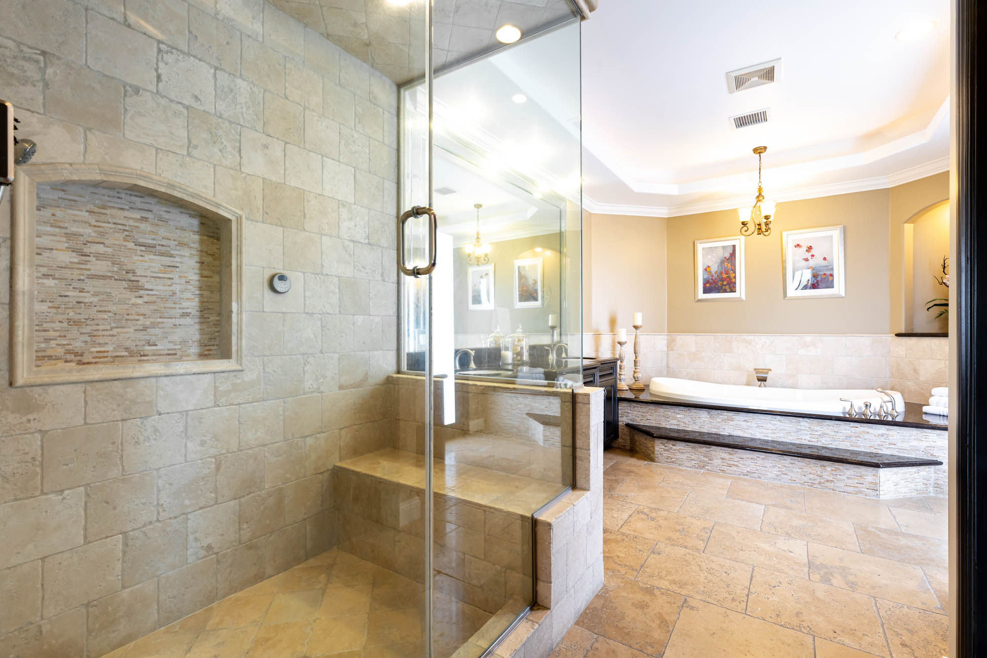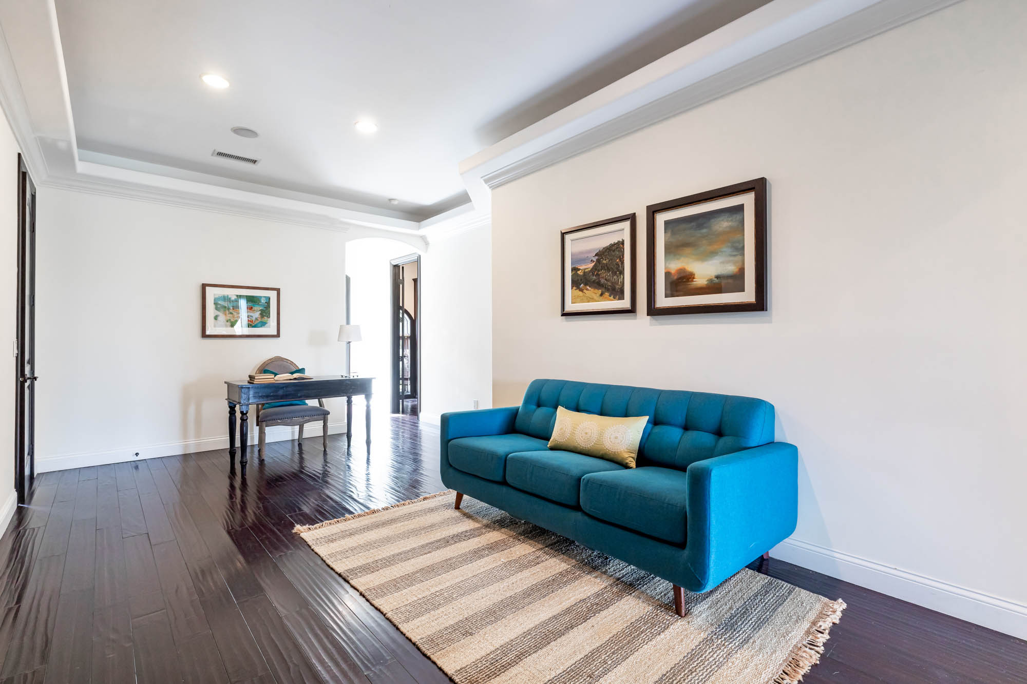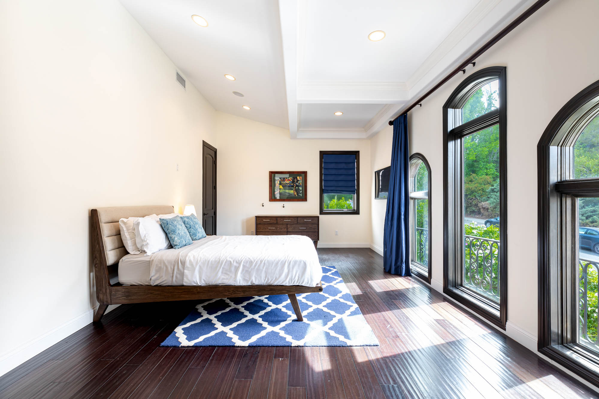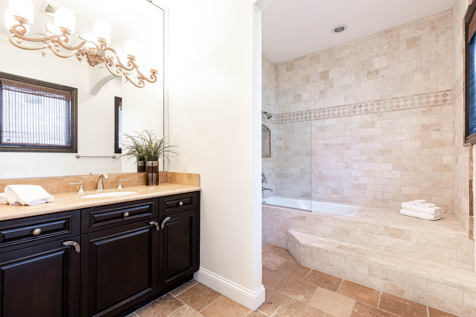 Tranquil & majestic gated estate situated South of the Blvd with panoramic valley views! Double doors lead to a spacious formal entry with high coffered ceilings, stone flooring, chandelier, custom wrought iron staircase, and the gorgeous interior straight ahead. The main level provides a perfect open flow from the kitchen, to the living room with floor to ceiling windows, and to the spacious dining room with a wet bar. The gourmet kitchen showcases rich custom cabinetry, professional-grade appliances & oversized chefs island. The family/media room will be the ultimate space for movie nights, with a cozy fireplace, wet bar, and attached bath. The main level also includes two spacious bedrooms. The second level landing serves as an additional family room that offers a fireplace and showcases the most breathtaking views. 3 generously-sized suites upstairs include a luxurious master retreat with a separate sitting room. The master also includes a private balcony, dual walk-in closets, and spa-like bath with double vanity, oversized glass shower & spa tub. Enjoy the best of outdoor entertaining in the private backyard which overlooks a fairway of the Braemar Country Club golf course, and features a BBQ kitchenette, grass space, spa, and an expansive wood deck ideal for lounging and al fresco dining. Additional features include attached 3-car garage, large upstairs laundry room, and so much more. This special property is truly one of a kind, so close to all the city has to offer, yet cloistered in your own private sanctuary.