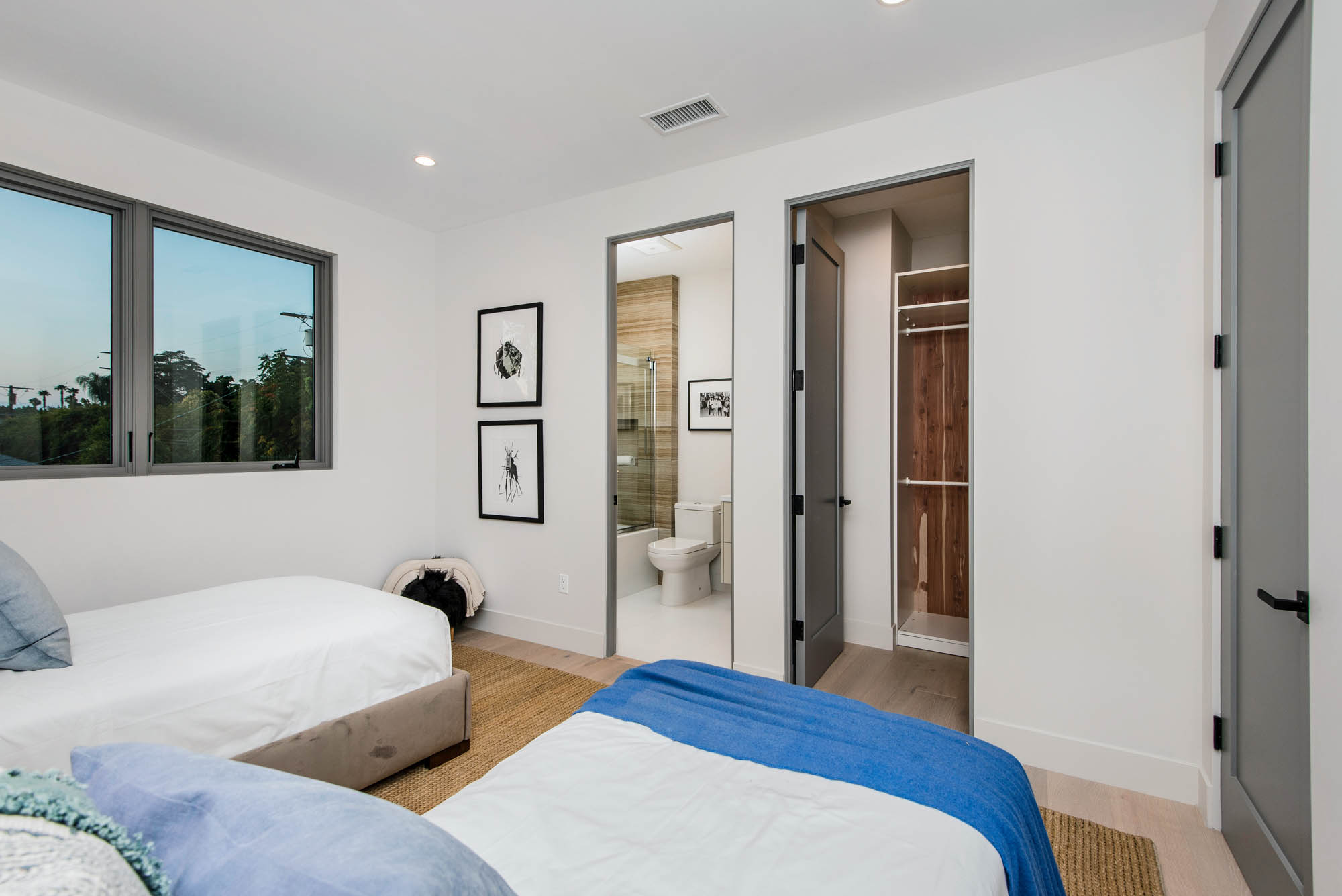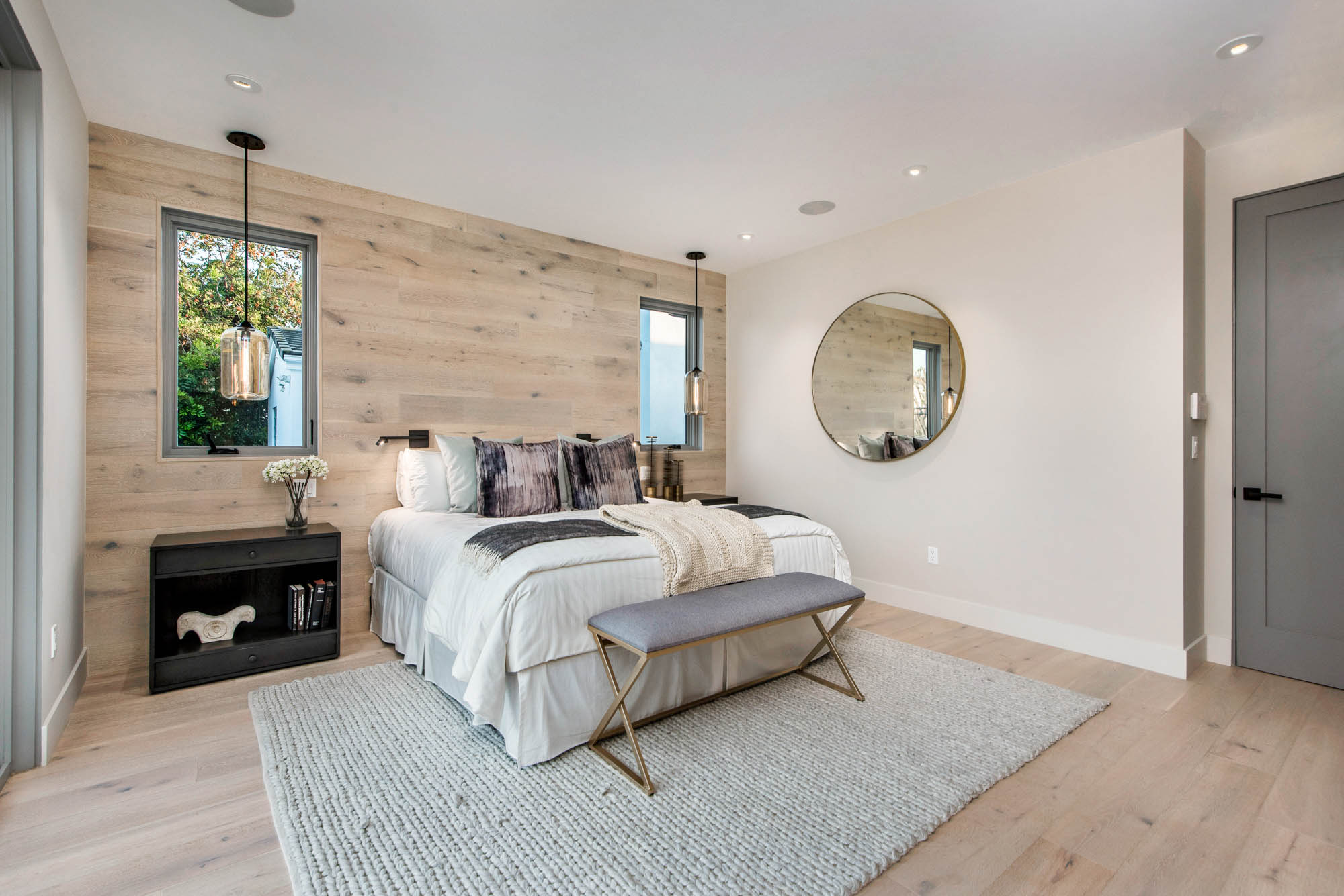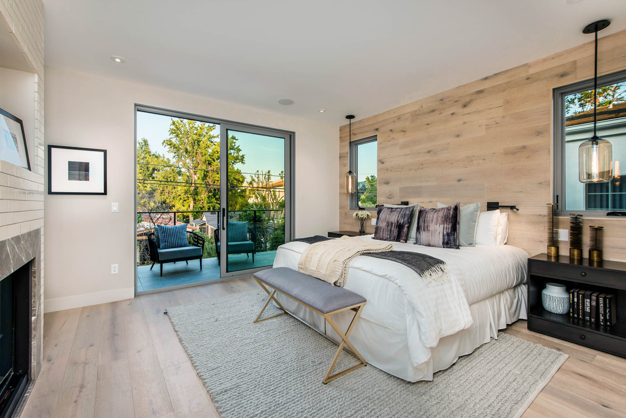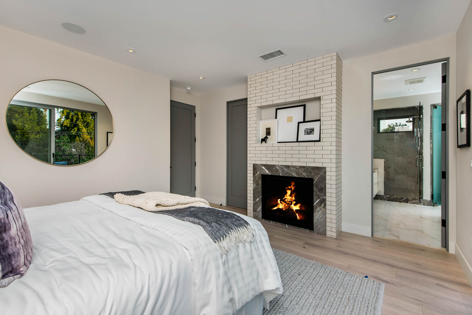 Re-built stunner in prime Sherman Oaks location! Modern, bright, and contemporary style home offers exquisite design. At first sight, European White Oak flooring, 10 foot ceilings, & large windows introduce you to the home & play as a canvas for all of the luxury fixtures & amenities. This open layout home of over 3,000 sq ft boasts 5 bedrooms & 5 full bathrooms. Family room w/ fireplace seamlessly blend into the dining space w/ a custom LED light fixture, along with recessed lighting, & natural lighting throughout. Custom wood-work & paneling in living room lead to a large custom built dream kitchen. Modern cabinetry, Quartz countertops, large island, steam oven, high-end Bertazzoni appliances, dual wine fridge, walk in pantry, & sliding glass doors lead to a lushly landscaped backyard w/ built in firepit, outdoor BBQ, Fridge, Sink, & bar seating. Upstairs Master Suite awaits w/ remaining bedrooms, laundry room, & loft space. Master bedroom has hardwood wall paneling, fireplace, walk in closet w/ vanity, & a master bathroom of your dreams. Steam shower, dual vanity, soaking tub, privacy bathroom door, & heated towel rack. Other amenities include Sonos speakers throughout, security cameras & system. Pool concepts available for whomever wishes to add on to this home. Location offers close proximity to Ventura Blvd, only 7.4 Miles to Beverly Hills and the Westside, and relatively close to downtown la, and world renowned Los Angeles beaches.
