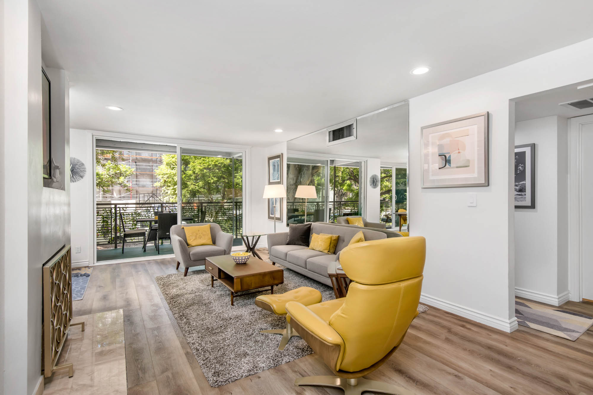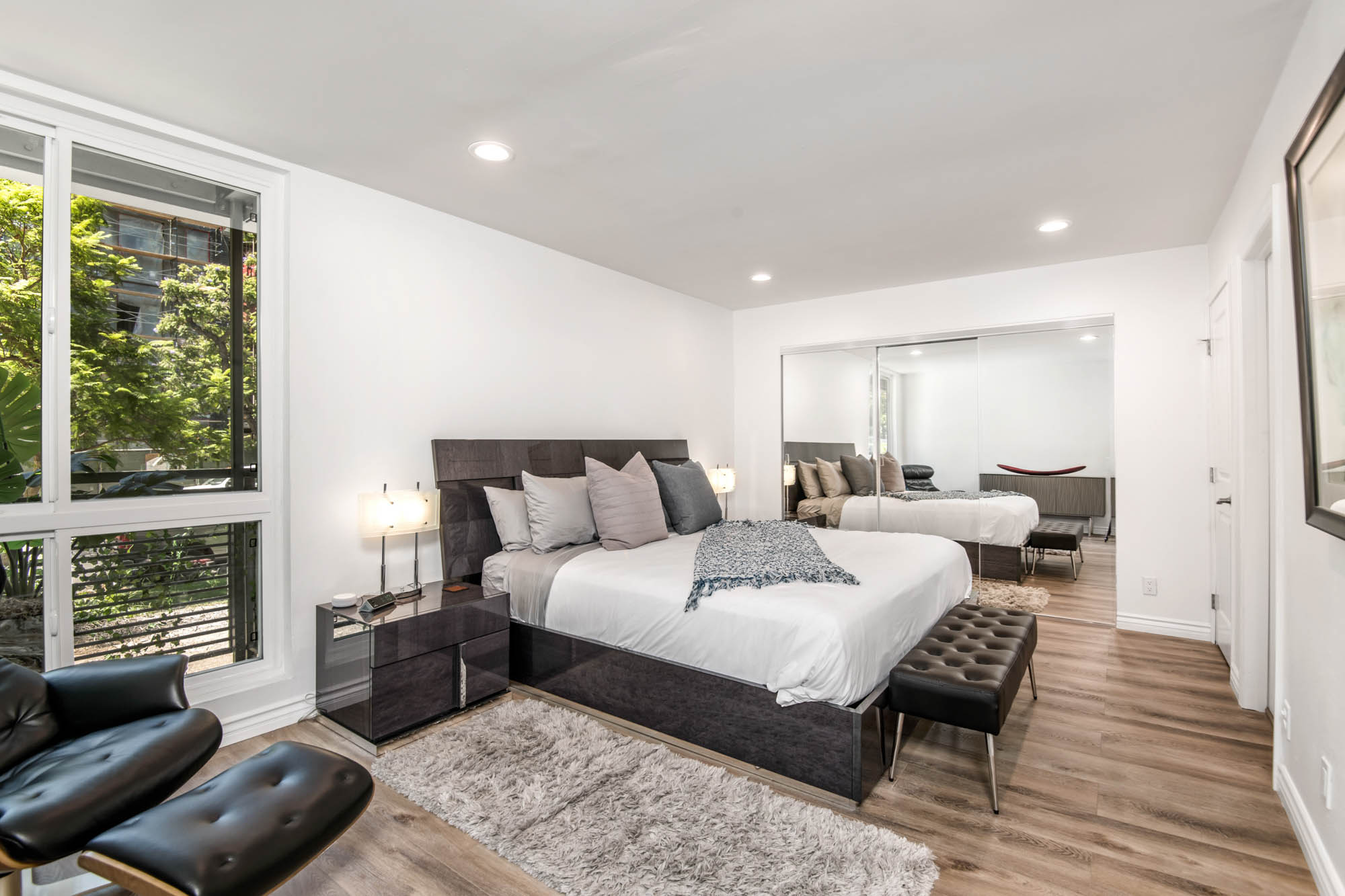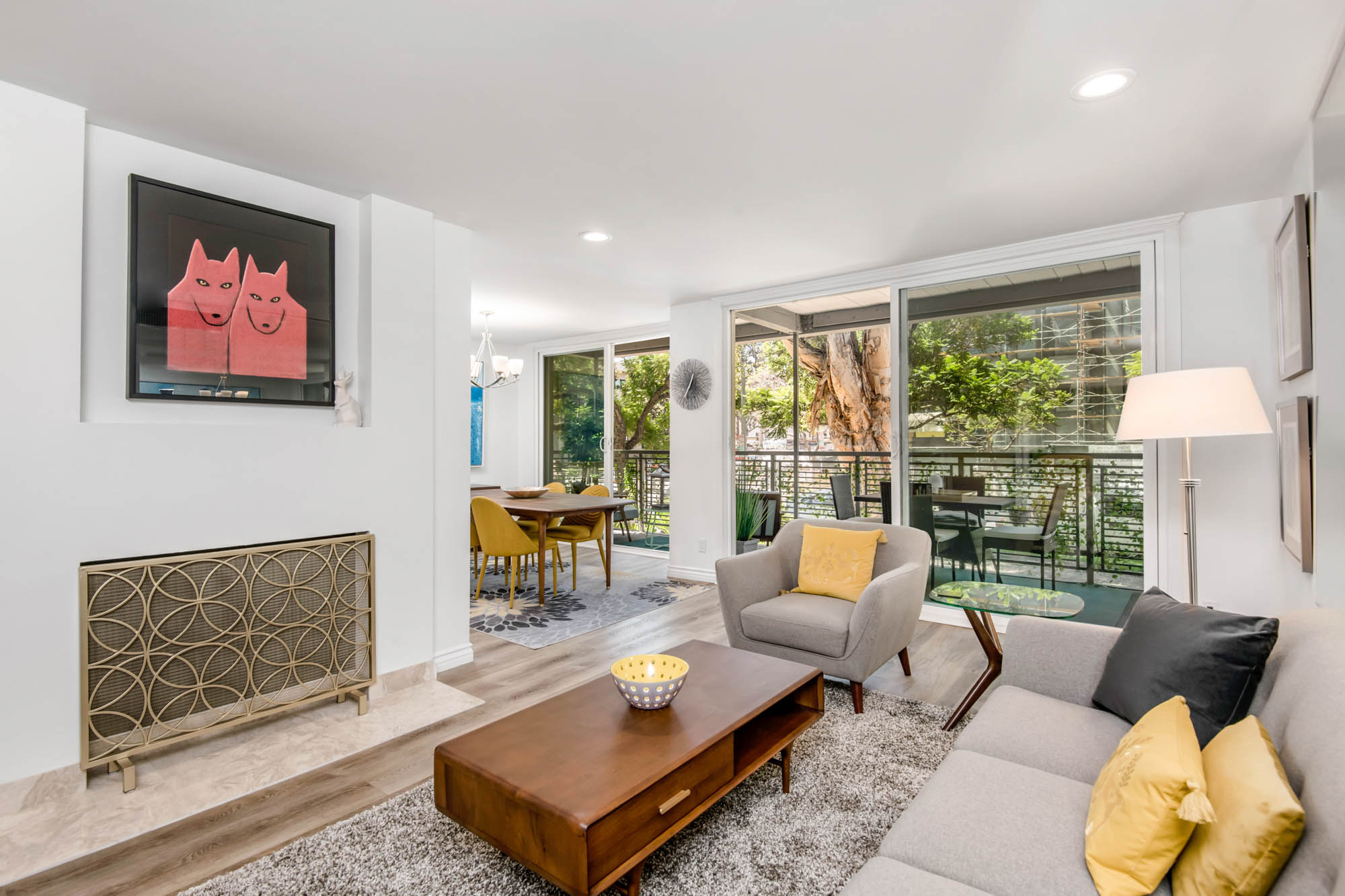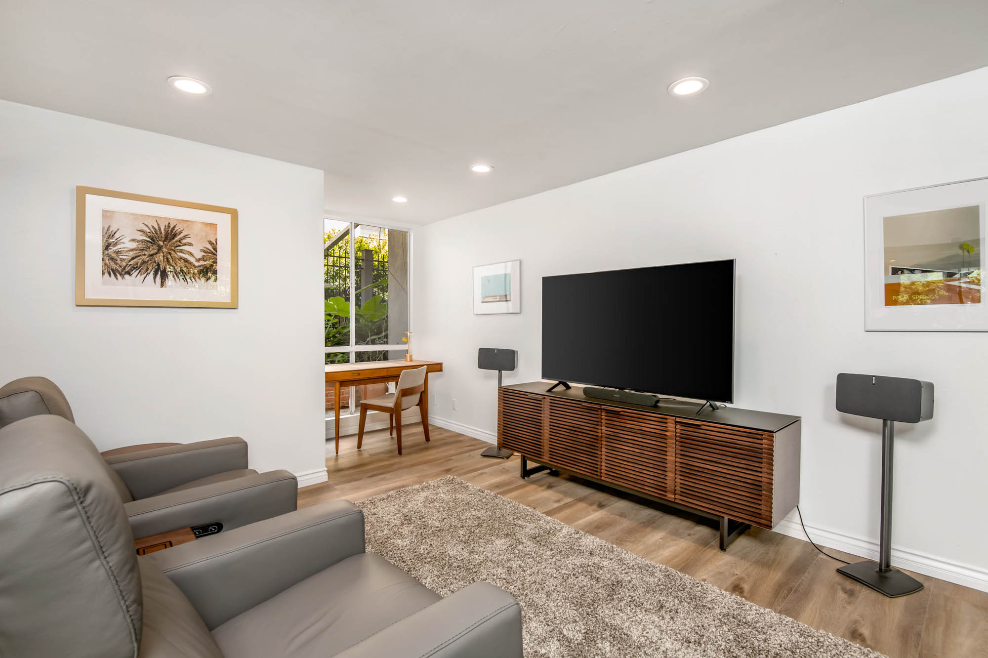 Incredible opportunity in the heart of Beverly Hills’ prized 90210 ZIP Code! This very recently fully renovated 3-bed, 2-bath condo has had more upgrades that we can list, including all “Smart” devices of Alexa lighting, Nest thermostat, Schlage lock, Hunter Douglas electric blinds, and brand-new Samsung appliances (including a spectacular “Bespoke'' model fridge!) – all operated from anywhere in the world, or by a simple voice or touch command in the condo. Other brand-new appliances include washer and dryer, microwave, and high-end electric stove with induction cooktop. Dishwasher, under cabinet lighting, garbage disposer, fresh Shaker cabinetry, touch-sensitive faucet, granite countertops and backsplash, and pantry with pull-out shelves complete the galley kitchen package. Other improvements include new MBR closet organizer and cabinets in laundry room and in-suite storage room/pantry to maximize what is already an abundance of storage space in this bright and airy unit, made possible by its corner main-floor location and 30-foot balcony overlooking Jacaranda tree-lined Palm Drive (with a magnificent Eucalyptus that is a piece of art in itself!). Genuine wood-burning fireplace, recessed LED lighting; modern bathrooms with European vanities and LED lighted mirrors. Third bedroom is spacious and stunning, with a modern sliding door and mirrored wall just waiting to be your den, office, media room or bedroom. Living room and dining rooms each have sliding door access to the front balcony. Includes premium spacious two-car side-by-side secure underground parking spaces. The intimate 15-unit building itself was just this year renovated with new cladding, balconies and landscaping – and all those improvements have been covered in already-paid special assessments! Walk to the most fashionable shopping, world-renowned restaurants, best health facilities, educational, entertainment and cultural events. Furnishings are negotiable. This home is a treasure: make it yours tomorrow!