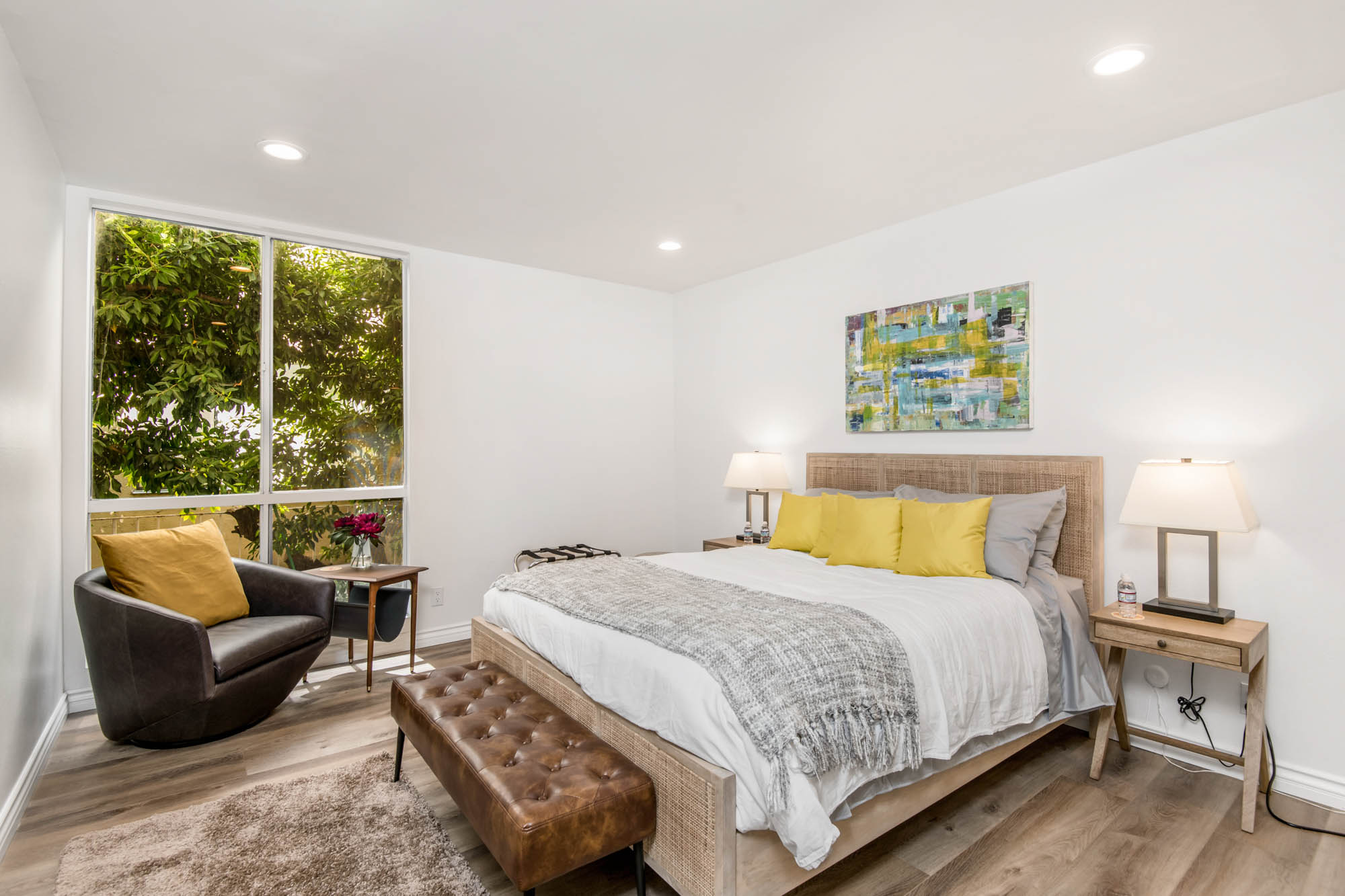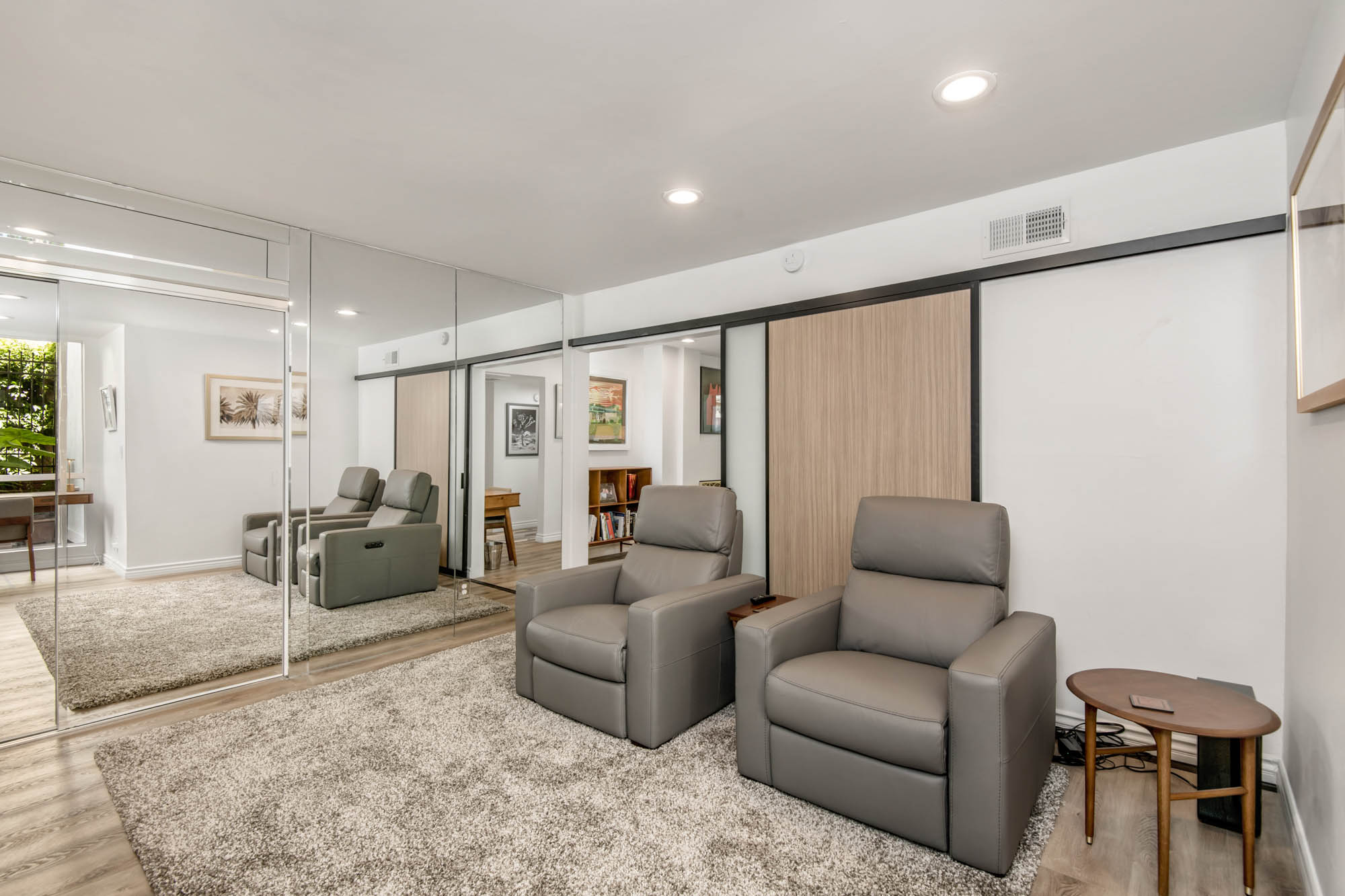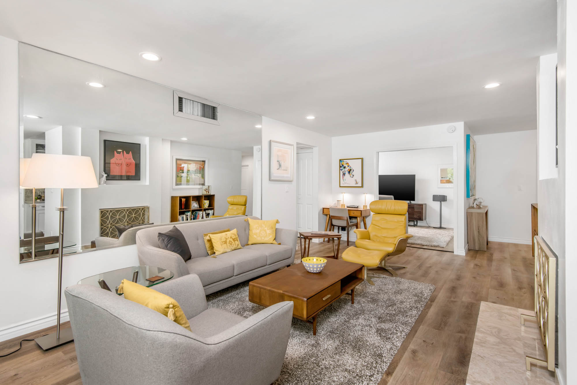 Incredible opportunity in the heart of Beverly Hills’ prized 90210 ZIP Code! This very recently fully renovated 3-bed, 2-bath condo has had more upgrades that we can list, including all “Smart” devices of Alexa lighting, Nest thermostat, Schlage lock, Hunter Douglas electric blinds, and brand-new Samsung appliances (including a spectacular “Bespoke'' model fridge!) – all operated from anywhere in the world, or by a simple voice or touch command in the condo. Other brand-new appliances include washer and dryer, microwave, and high-end electric stove with induction cooktop. Dishwasher, under cabinet lighting, garbage disposer, fresh Shaker cabinetry, touch-sensitive faucet, granite countertops and backsplash, and pantry with pull-out shelves complete the galley kitchen package. Other improvements include new MBR closet organizer and cabinets in laundry room and in-suite storage room/pantry to maximize what is already an abundance of storage space in this bright and airy unit, made possible by its corner main-floor location and 30-foot balcony overlooking Jacaranda tree-lined Palm Drive (with a magnificent Eucalyptus that is a piece of art in itself!). Genuine wood-burning fireplace, recessed LED lighting; modern bathrooms with European vanities and LED lighted mirrors. Third bedroom is spacious and stunning, with a modern sliding door and mirrored wall just waiting to be your den, office, media room or bedroom. Living room and dining rooms each have sliding door access to the front balcony. Includes premium spacious two-car side-by-side secure underground parking spaces. The intimate 15-unit building itself was just this year renovated with new cladding, balconies and landscaping – and all those improvements have been covered in already-paid special assessments! Walk to the most fashionable shopping, world-renowned restaurants, best health facilities, educational, entertainment and cultural events. Furnishings are negotiable. This home is a treasure: make it yours tomorrow!