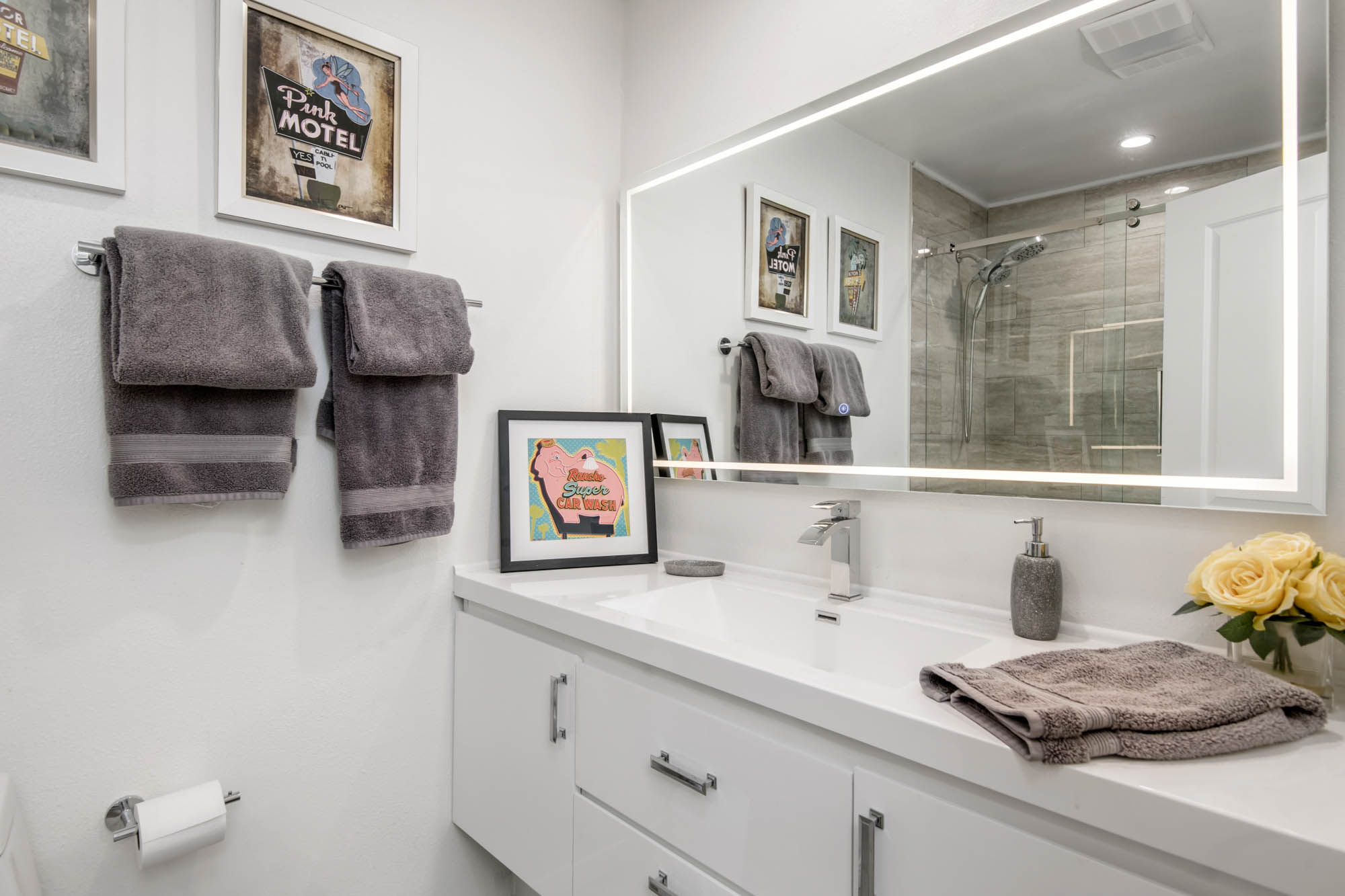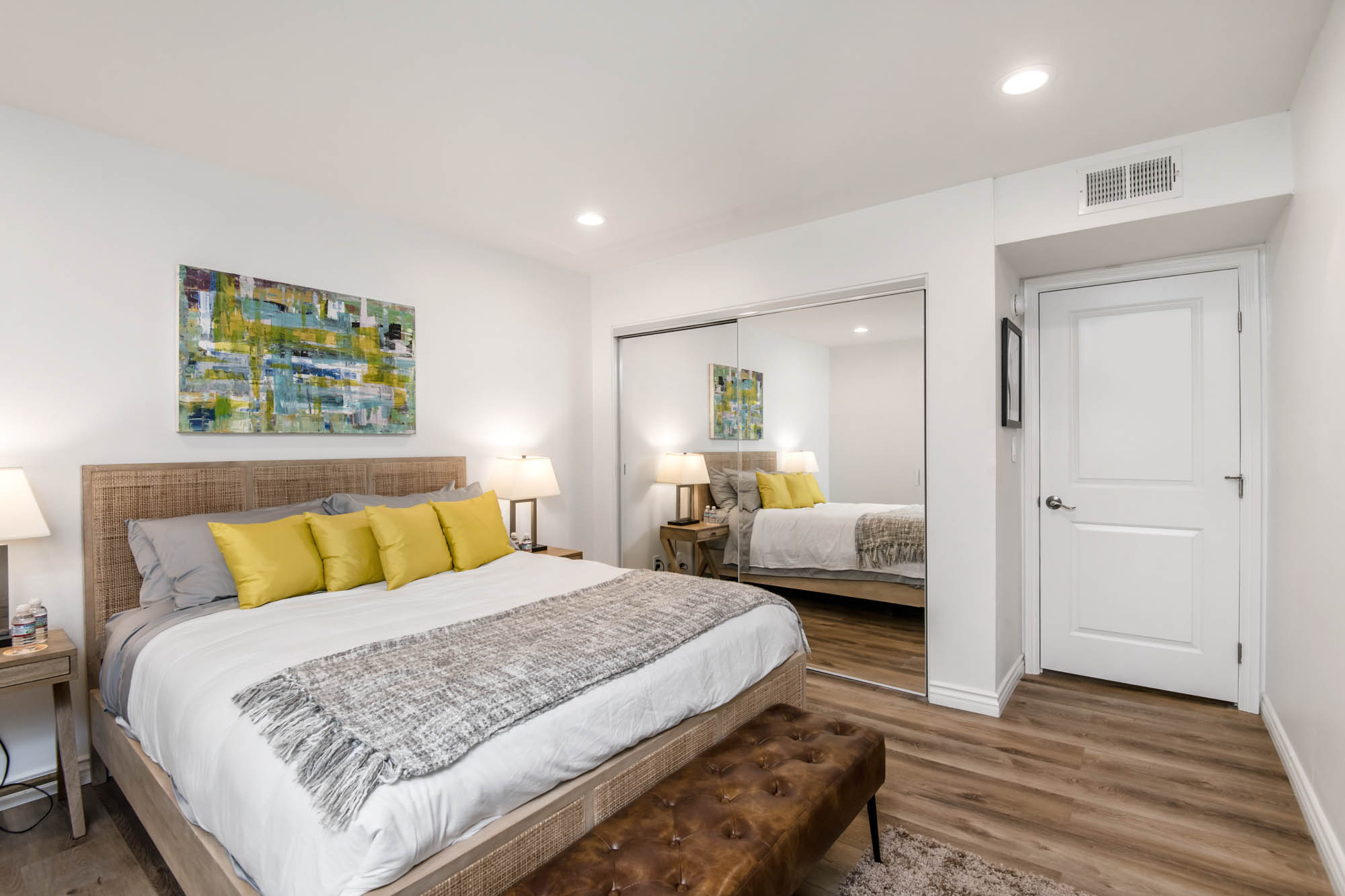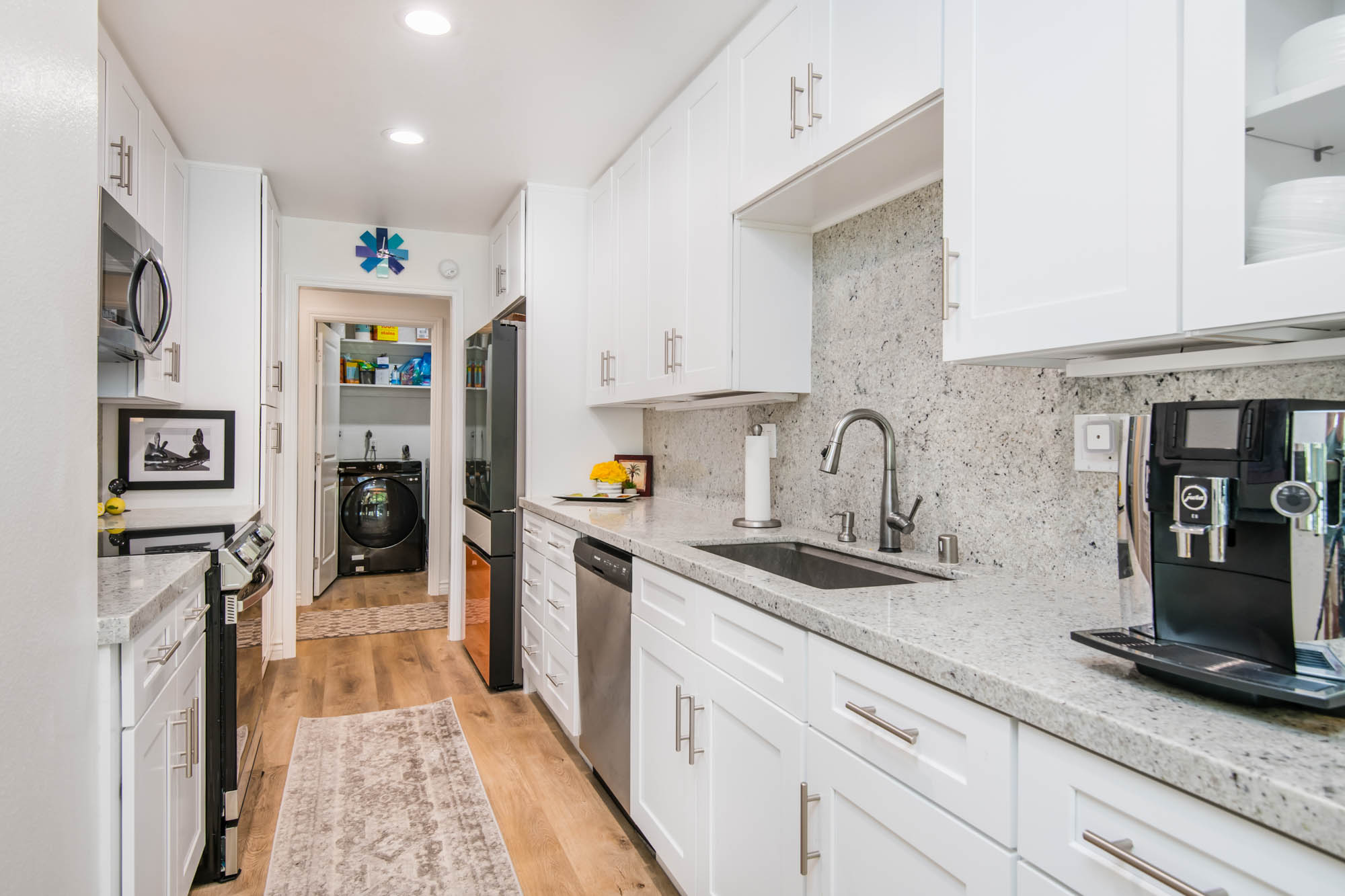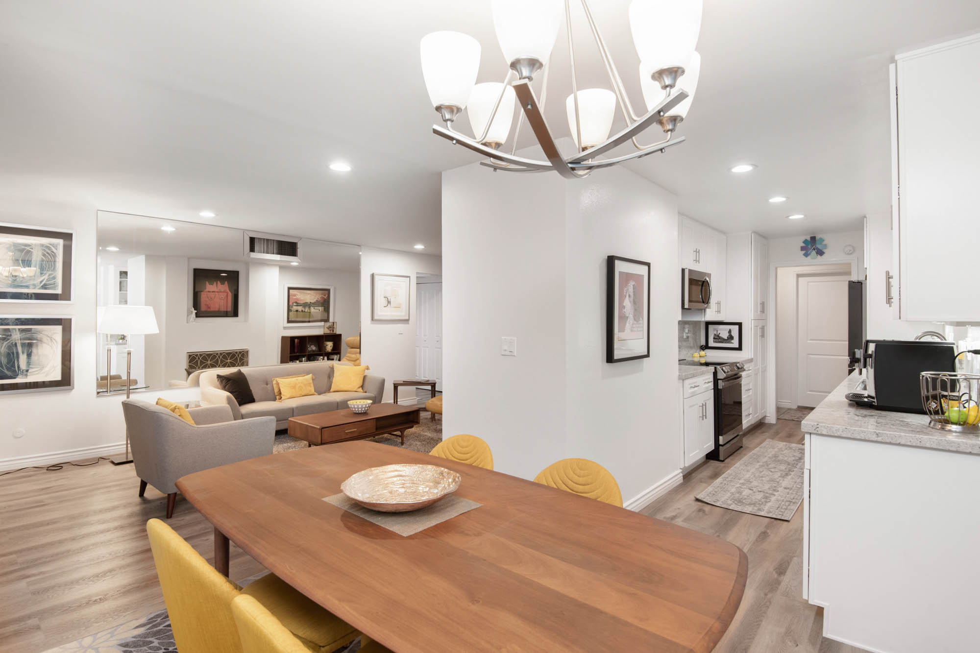Incredible opportunity in the heart of Beverly Hills’ prized 90210 ZIP Code! This very recently fully renovated 3-bed, 2-bath condo has had more upgrades that we can list, including all “Smart” devices of Alexa lighting, Nest thermostat, Schlage lock, Hunter Douglas electric blinds, and brand-new Samsung appliances (including a spectacular “Bespoke'' model fridge!) – all operated from anywhere in the world, or by a simple voice or touch command in the condo. Other brand-new appliances include washer and dryer, microwave, and high-end electric stove with induction cooktop. Dishwasher, under cabinet lighting, garbage disposer, fresh Shaker cabinetry, touch-sensitive faucet, granite countertops and backsplash, and pantry with pull-out shelves complete the galley kitchen package. Other improvements include new MBR closet organizer and cabinets in laundry room and in-suite storage room/pantry to maximize what is already an abundance of storage space in this bright and airy unit, made possible by its corner main-floor location and 30-foot balcony overlooking Jacaranda tree-lined Palm Drive (with a magnificent Eucalyptus that is a piece of art in itself!). Genuine wood-burning fireplace, recessed LED lighting; modern bathrooms with European vanities and LED lighted mirrors. Third bedroom is spacious and stunning, with a modern sliding door and mirrored wall just waiting to be your den, office, media room or bedroom. Living room and dining rooms each have sliding door access to the front balcony. Includes premium spacious two-car side-by-side secure underground parking spaces. The intimate 15-unit building itself was just this year renovated with new cladding, balconies and landscaping – and all those improvements have been covered in already-paid special assessments! Walk to the most fashionable shopping, world-renowned restaurants, best health facilities, educational, entertainment and cultural events. Furnishings are negotiable. This home is a treasure: make it yours tomorrow!