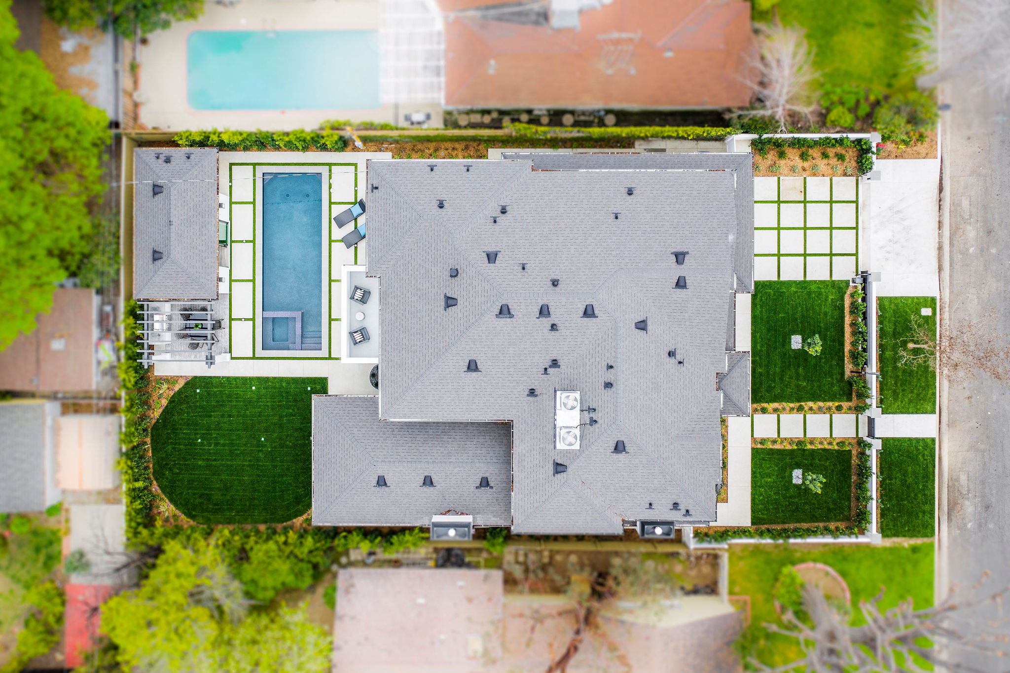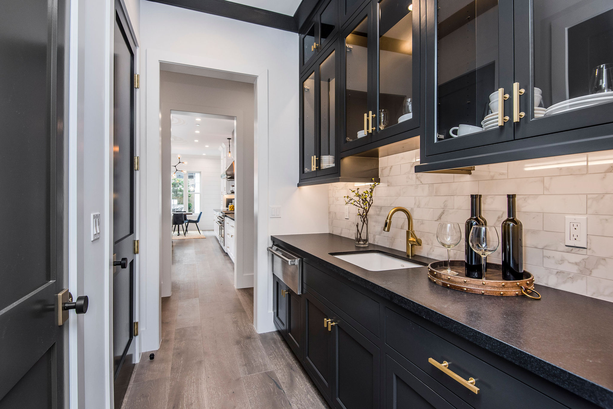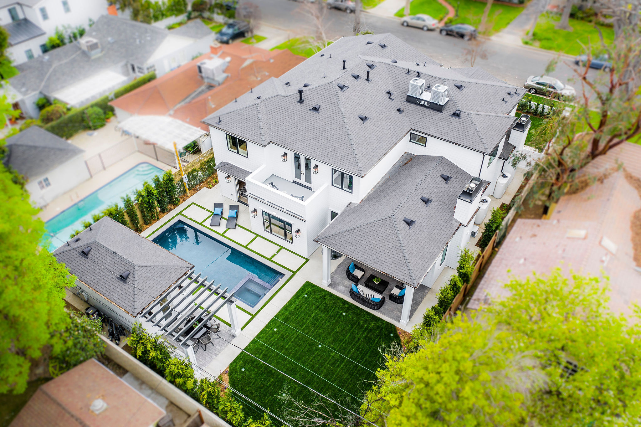 Impressive brand new construction in the heart of Studio City. This home brings striking design and modern living into fruition with gorgeous architecture and attention to detail. Walking through this 5,400 sq ft home you will find exquisite design and elegance. Wide Halls, beamed ceilings, custom lighting, designer fixtures, and amazing natural light from every room. Beautiful glass-encased wine room with back-lit features separates the formal living room and dining into a beautiful vaulted, ceiling entertainers living room with custom cabinetry and a chef’s kitchen with stunning design and unique features. Convenient office and bedroom downstairs offer compatibility to different lifestyles and needs. Grand Staircase leads you to 4 spacious bedrooms and a master suite that brings design a new meaning. Massive his and hers closets, balcony, and a master bathroom with his and her vanities, tub, and large shower. Accent walls, massive windows, beautiful flooring, and blissful design of every bathroom, bedroom, and hallway make this home truly one of a kind. Backyard pulls out all the stops with a gorgeous pool and spa, accompanied by a perfect pool/guest house with a bathroom and space that’s willing to serve however you wish. This house is the meaning of a picture perfect home.
