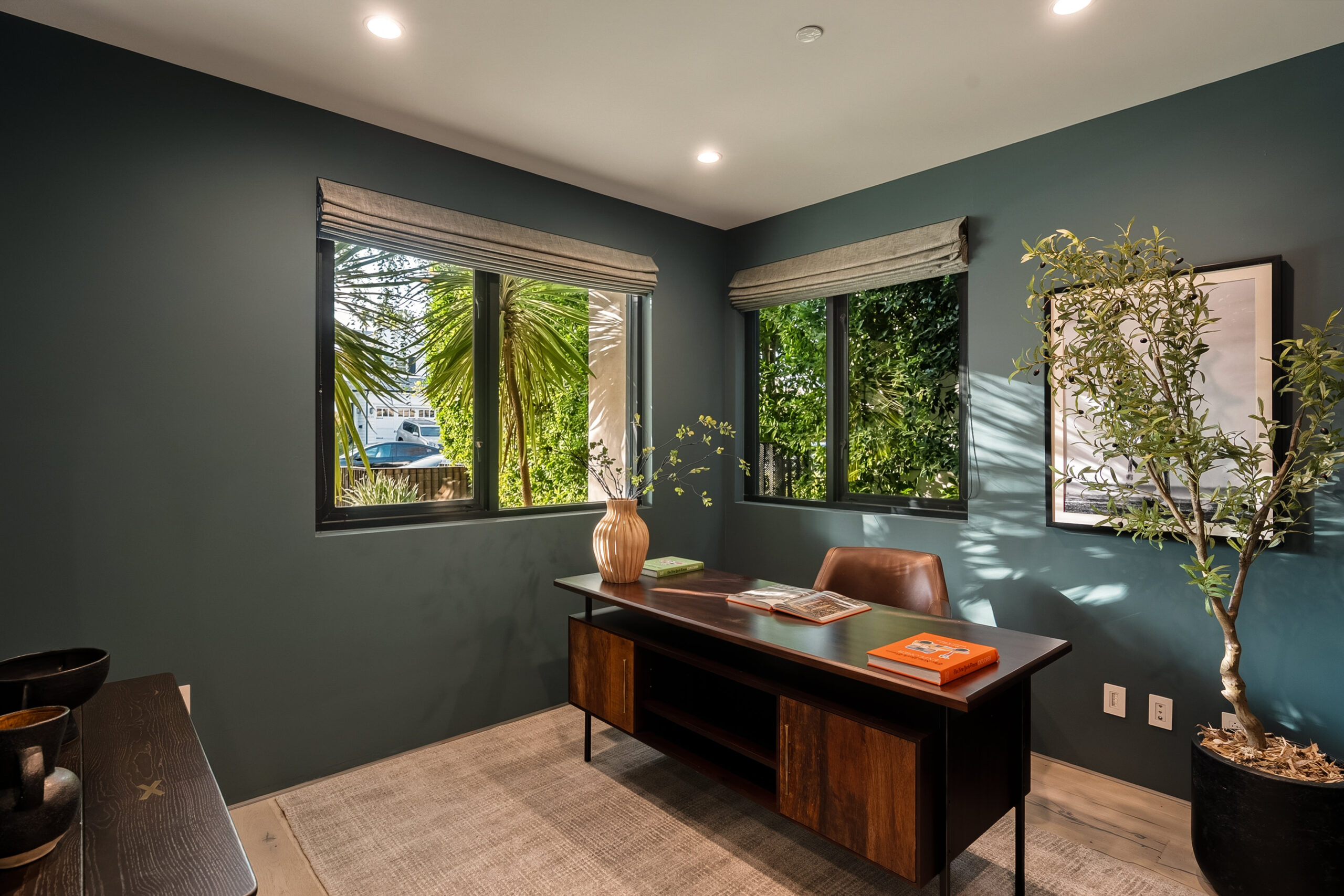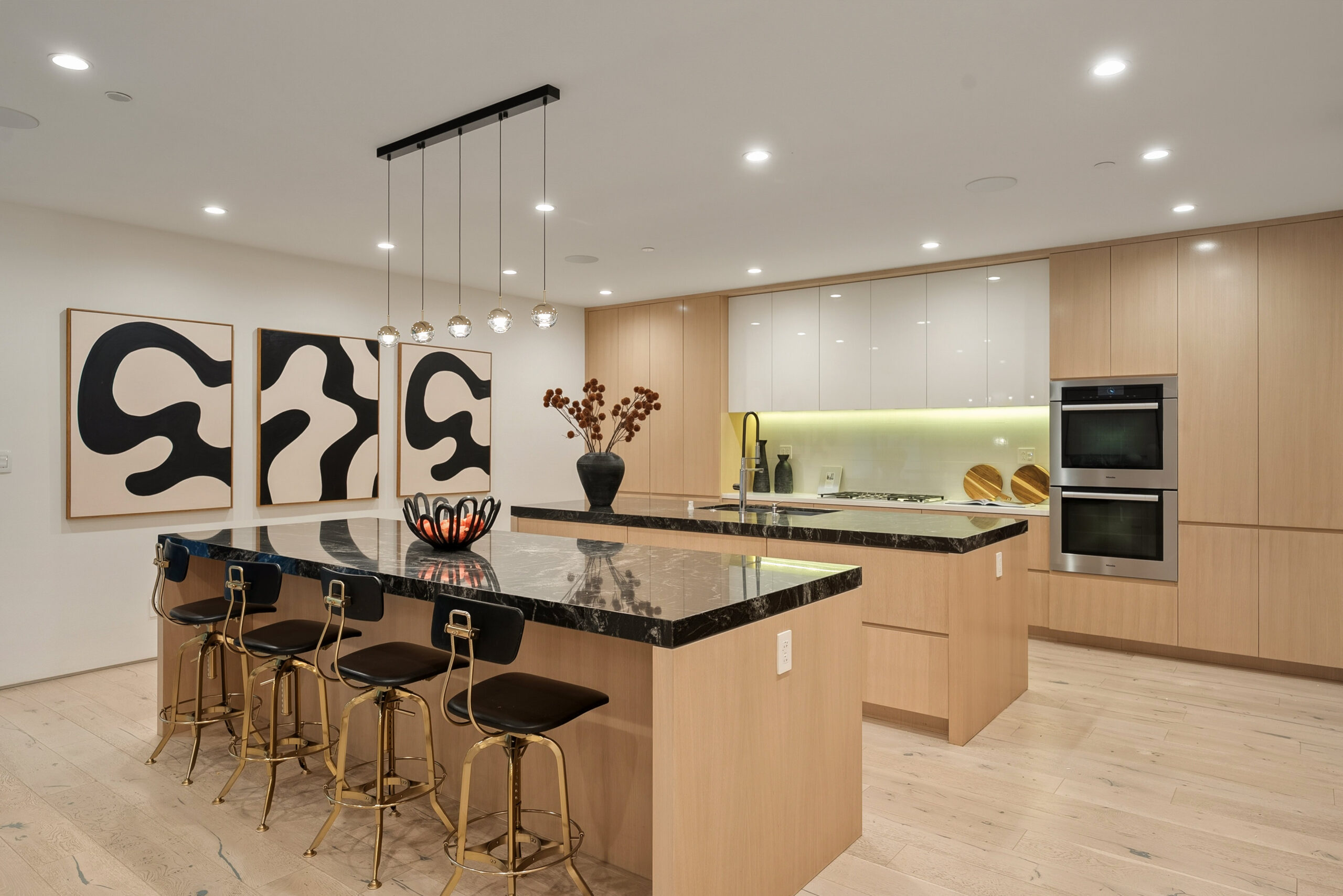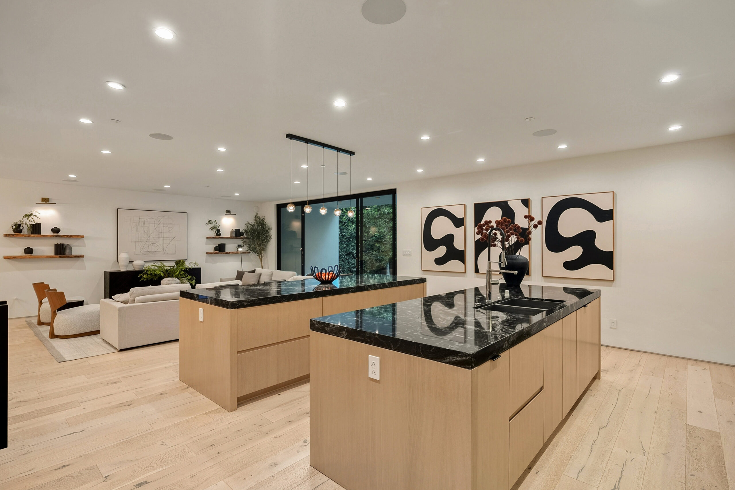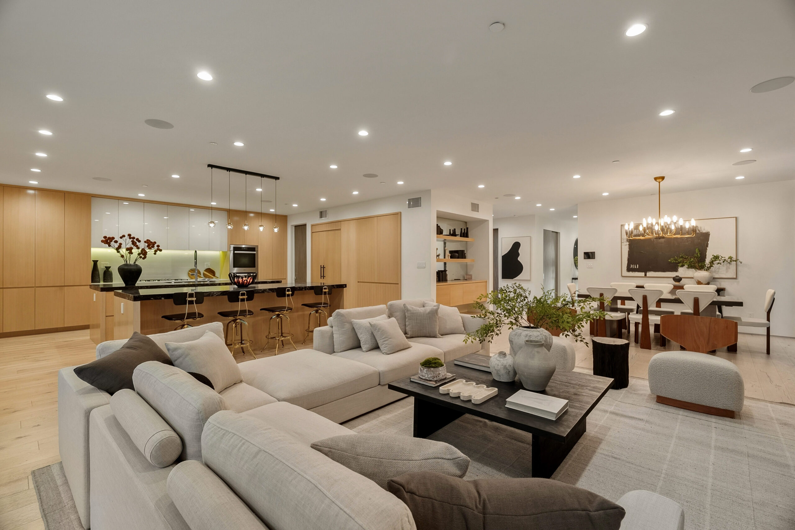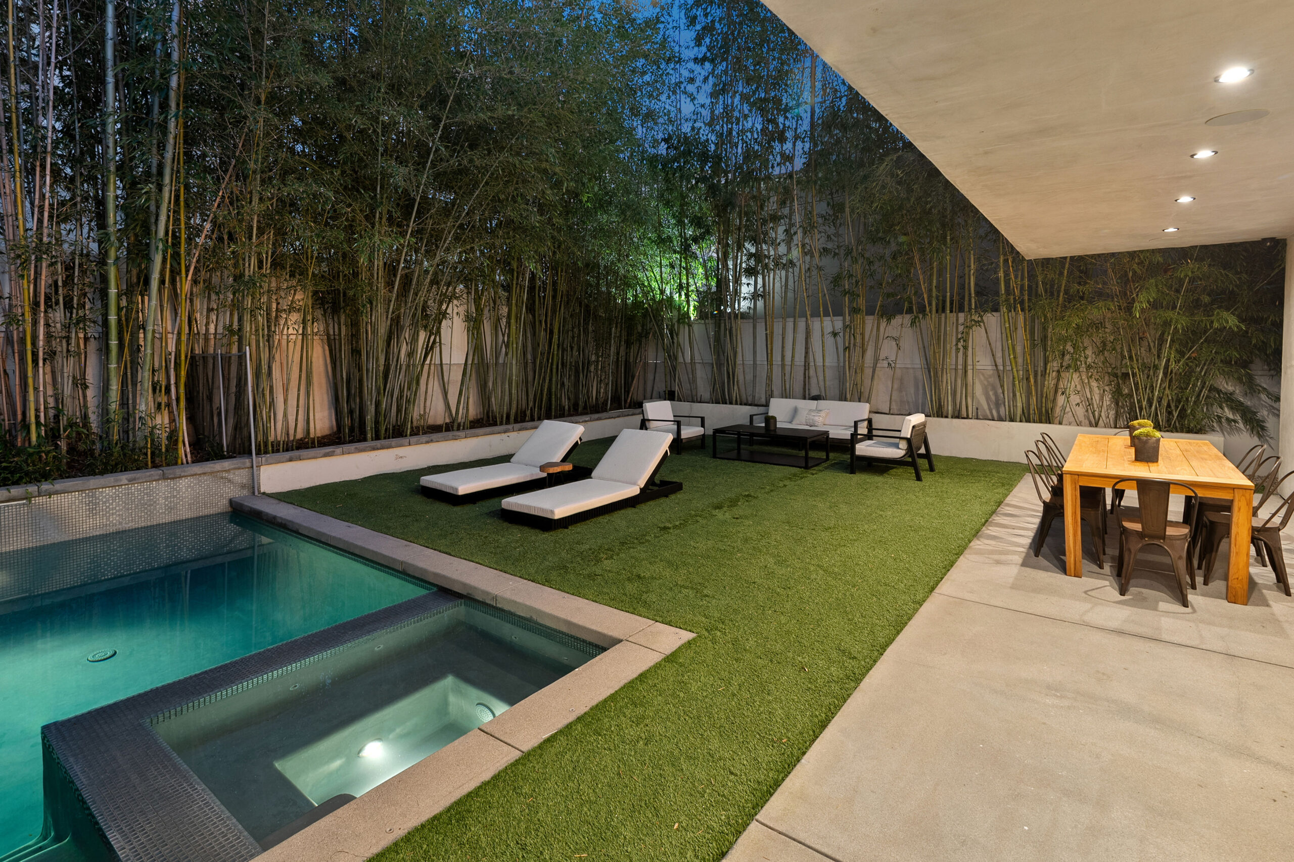 Situated on a gated lot in the desirable Footbridge Square neighborhood of Studio City, this modern architectural gem blends cutting-edge design with impeccable craftsmanship and high-end finishes throughout. Designed for modern living, this open-concept floor plan is highlighted by a gourmet chef’s kitchen equipped with top-of-the-line appliances, dual islands and a large walk-in pantry. The living and formal dining room boast floor-to-ceiling sliding glass doors that flood the space with natural light and open to create a seamless indoor-outdoor flow. Surrounded by mature privacy hedges, the entertainer's backyard offers a sparkling pool/spa with a safety gate, covered patio and low maintenance artificial turf yard. Upstairs, you’ll find three generously sized ensuite bedrooms, each with its own walk-in closet, alongside a spacious loft area. A true sanctuary, the primary suite features a large walk-in closet with custom built-ins and a sumptuous bathroom, complete with a soaking tub, walk-in rainfall shower and double vanity. Additional highlights include two main-level bedrooms (one of which has an ensuite bathroom), a dedicated laundry room, high ceilings throughout, a two-car garage and state-of-the-art Control4 smart home system that controls the built-in speakers, security cameras, thermostat, lighting and more. Live in the heart of Studio City, within the top-rated Carpenter School District and just moments away from trendy restaurants, boutique shops, the Studio City Farmers Market and so much more.