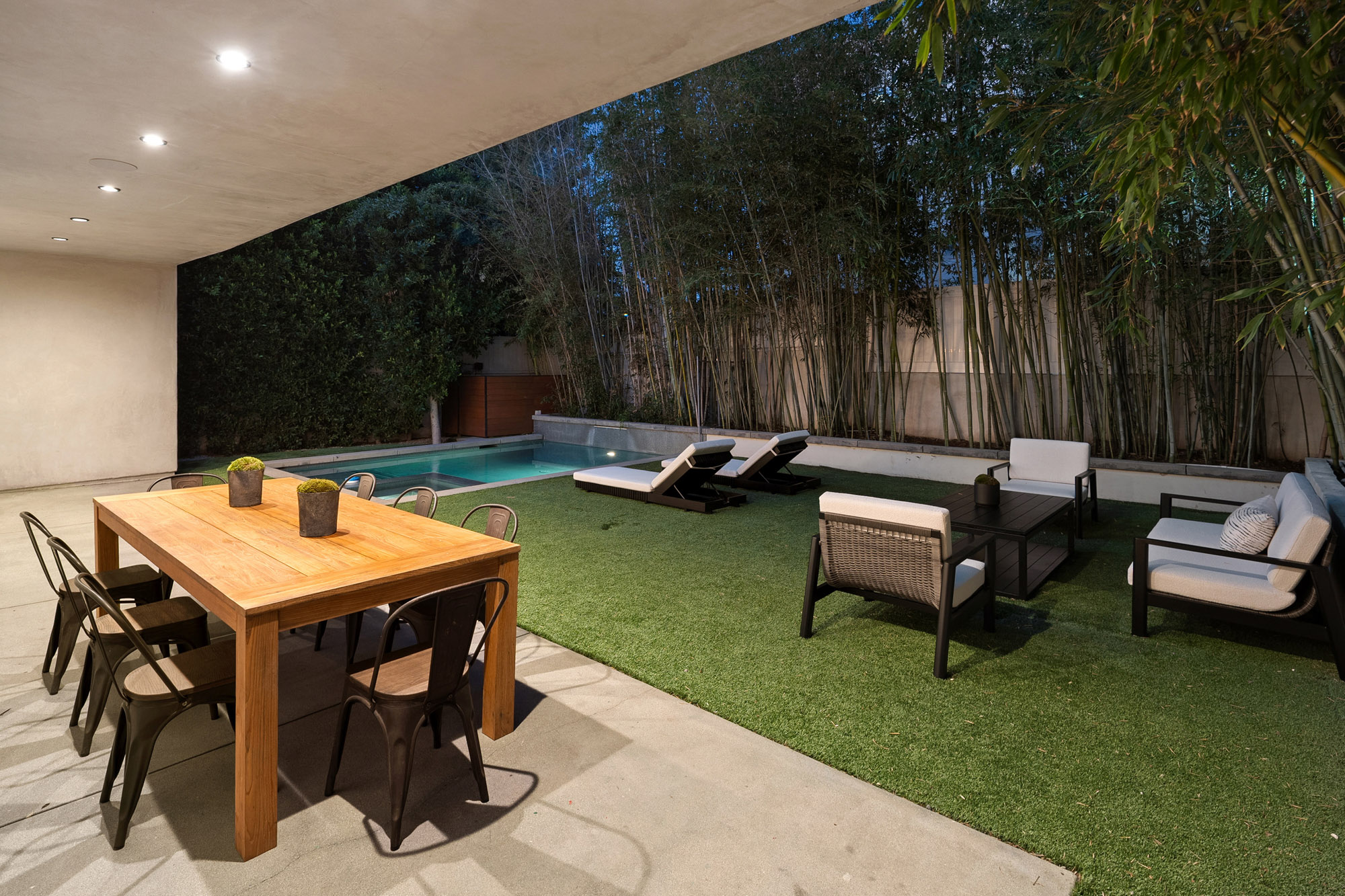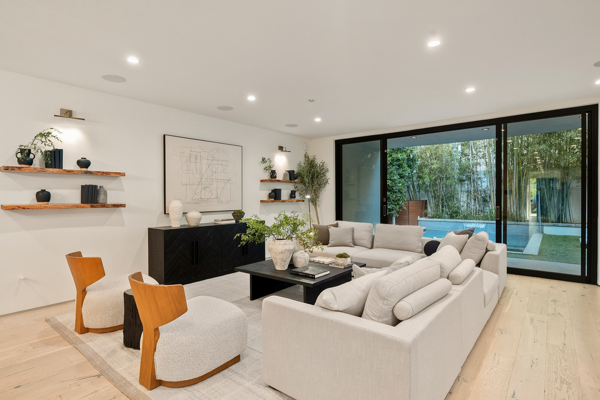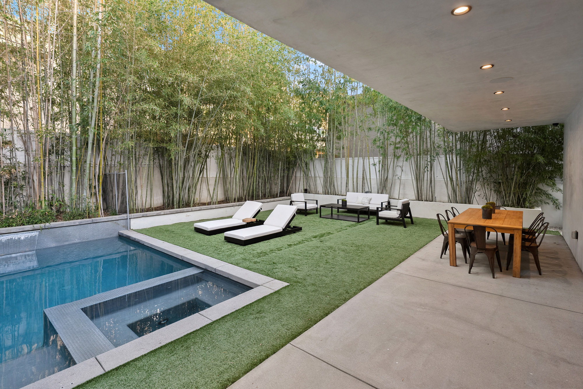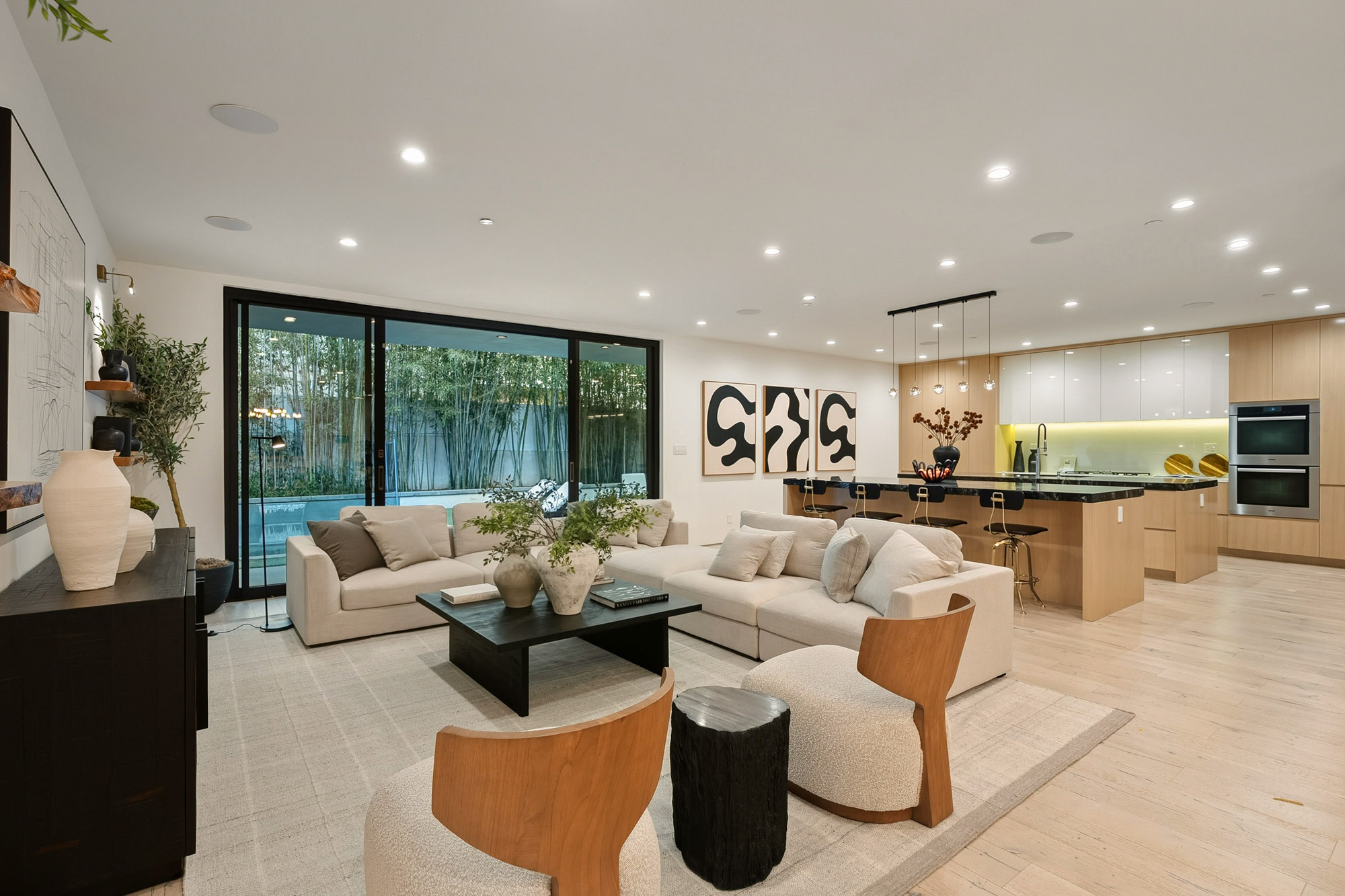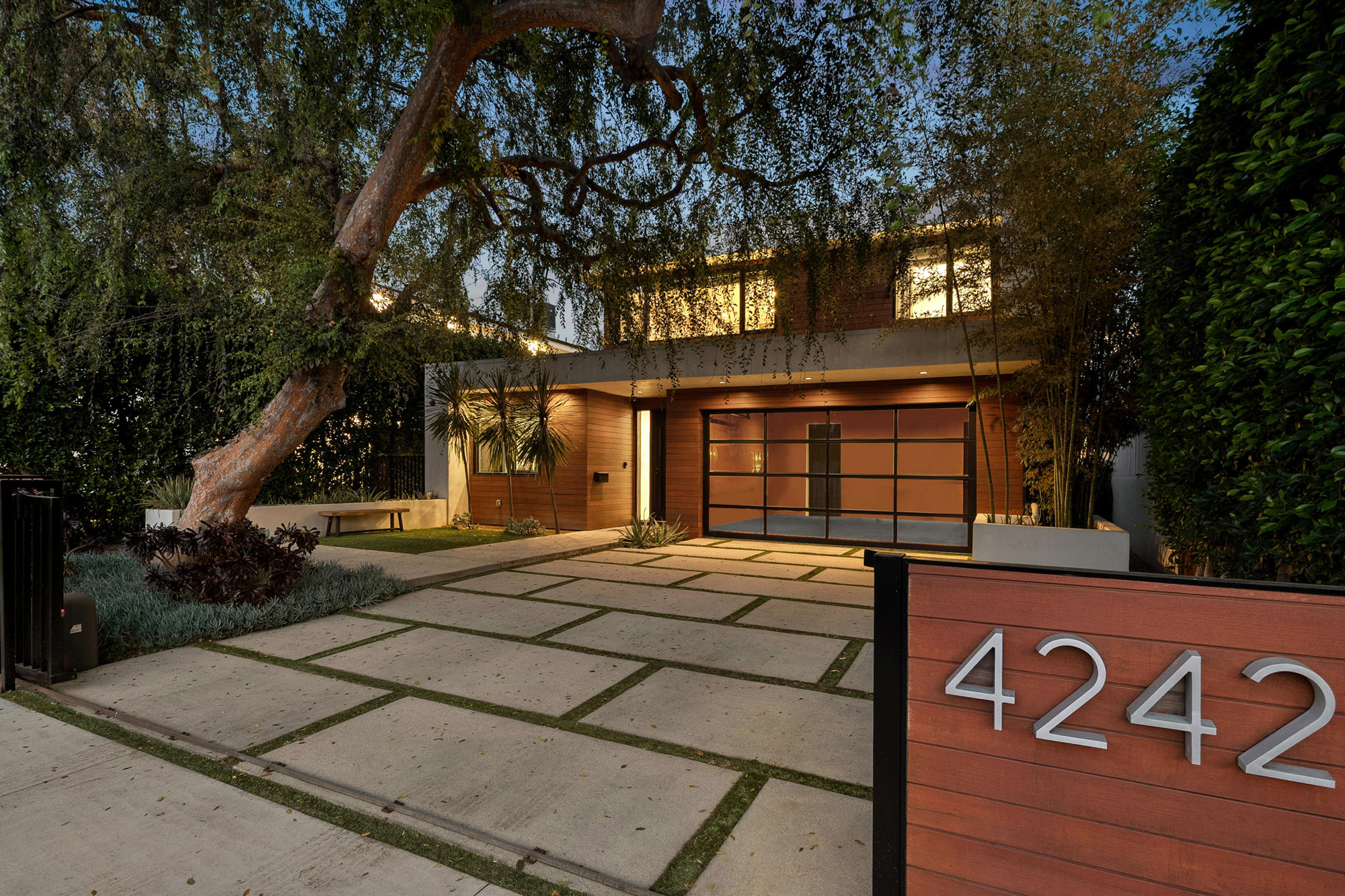 Situated on a gated lot in the desirable Footbridge Square neighborhood of Studio City, this modern architectural gem blends cutting-edge design with impeccable craftsmanship and high-end finishes throughout. Designed for modern living, this open-concept floor plan is highlighted by a gourmet chef’s kitchen equipped with top-of-the-line appliances, dual islands and a large walk-in pantry. The living and formal dining room boast floor-to-ceiling sliding glass doors that flood the space with natural light and open to create a seamless indoor-outdoor flow. Surrounded by mature privacy hedges, the entertainer's backyard offers a sparkling pool/spa with a safety gate, covered patio and low maintenance artificial turf yard. Upstairs, you’ll find three generously sized ensuite bedrooms, each with its own walk-in closet, alongside a spacious loft area. A true sanctuary, the primary suite features a large walk-in closet with custom built-ins and a sumptuous bathroom, complete with a soaking tub, walk-in rainfall shower and double vanity. Additional highlights include two main-level bedrooms (one of which has an ensuite bathroom), a dedicated laundry room, high ceilings throughout, a two-car garage and state-of-the-art Control4 smart home system that controls the built-in speakers, security cameras, thermostat, lighting and more. Live in the heart of Studio City, within the top-rated Carpenter School District and just moments away from trendy restaurants, boutique shops, the Studio City Farmers Market and so much more.