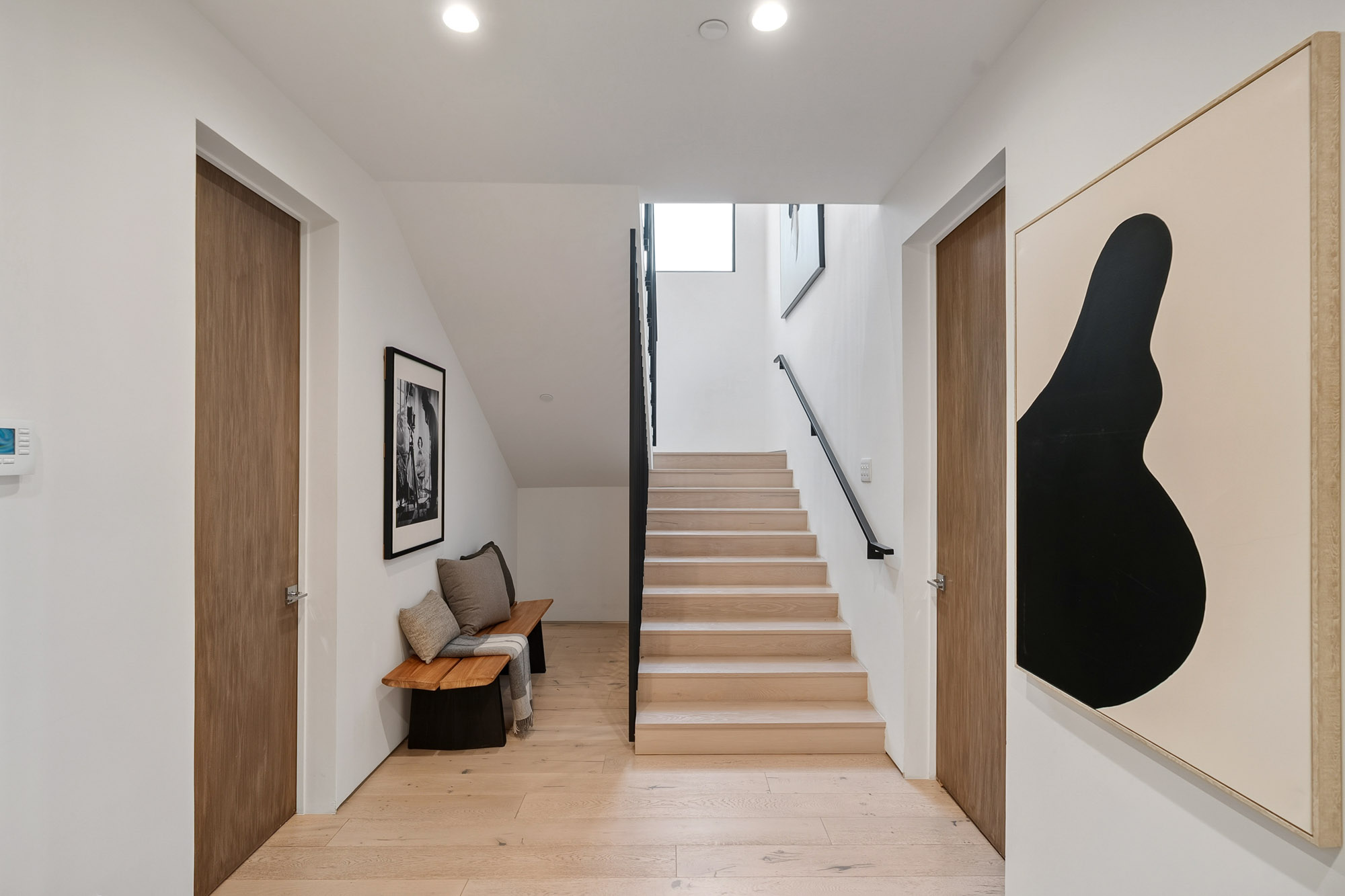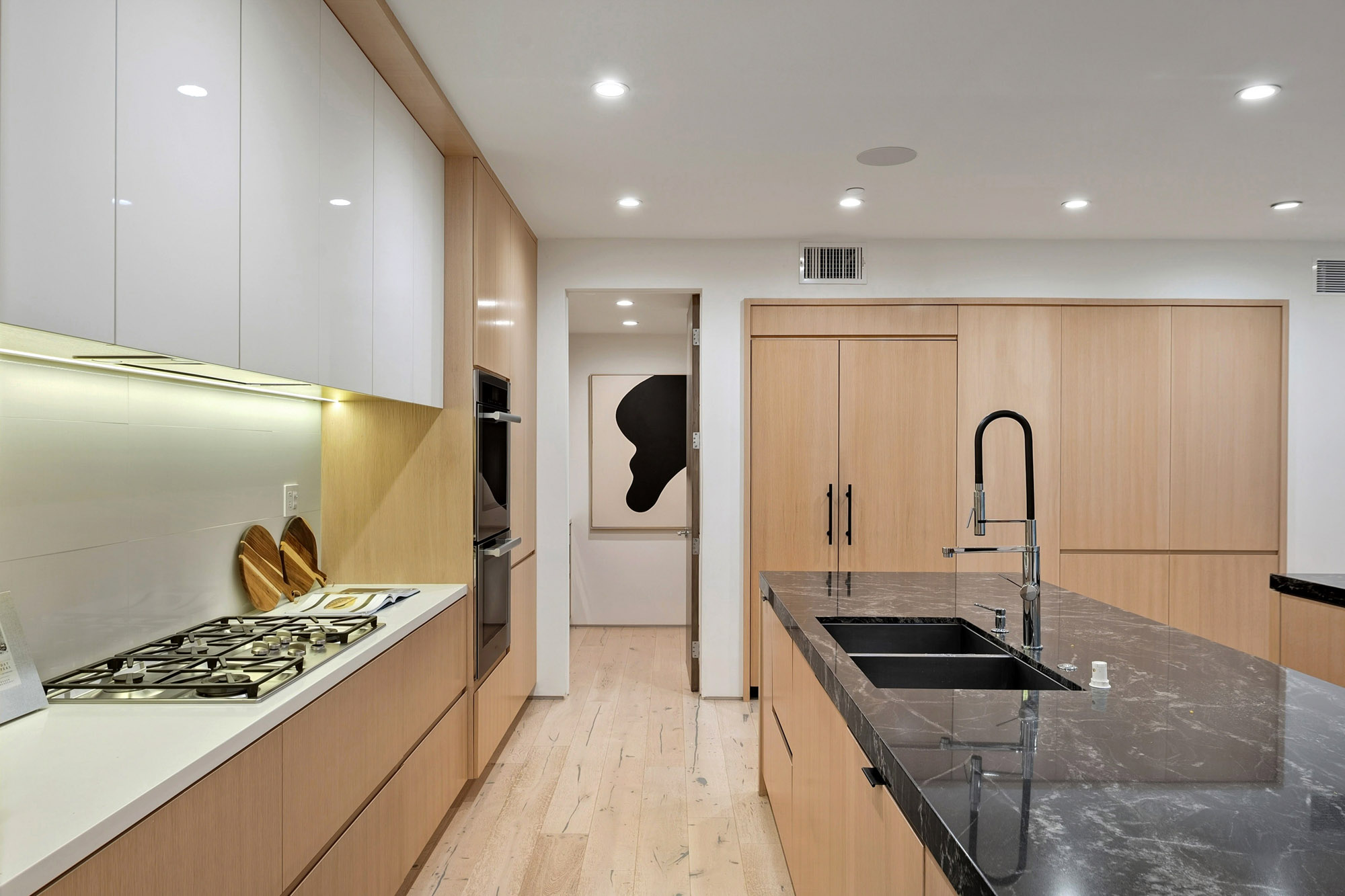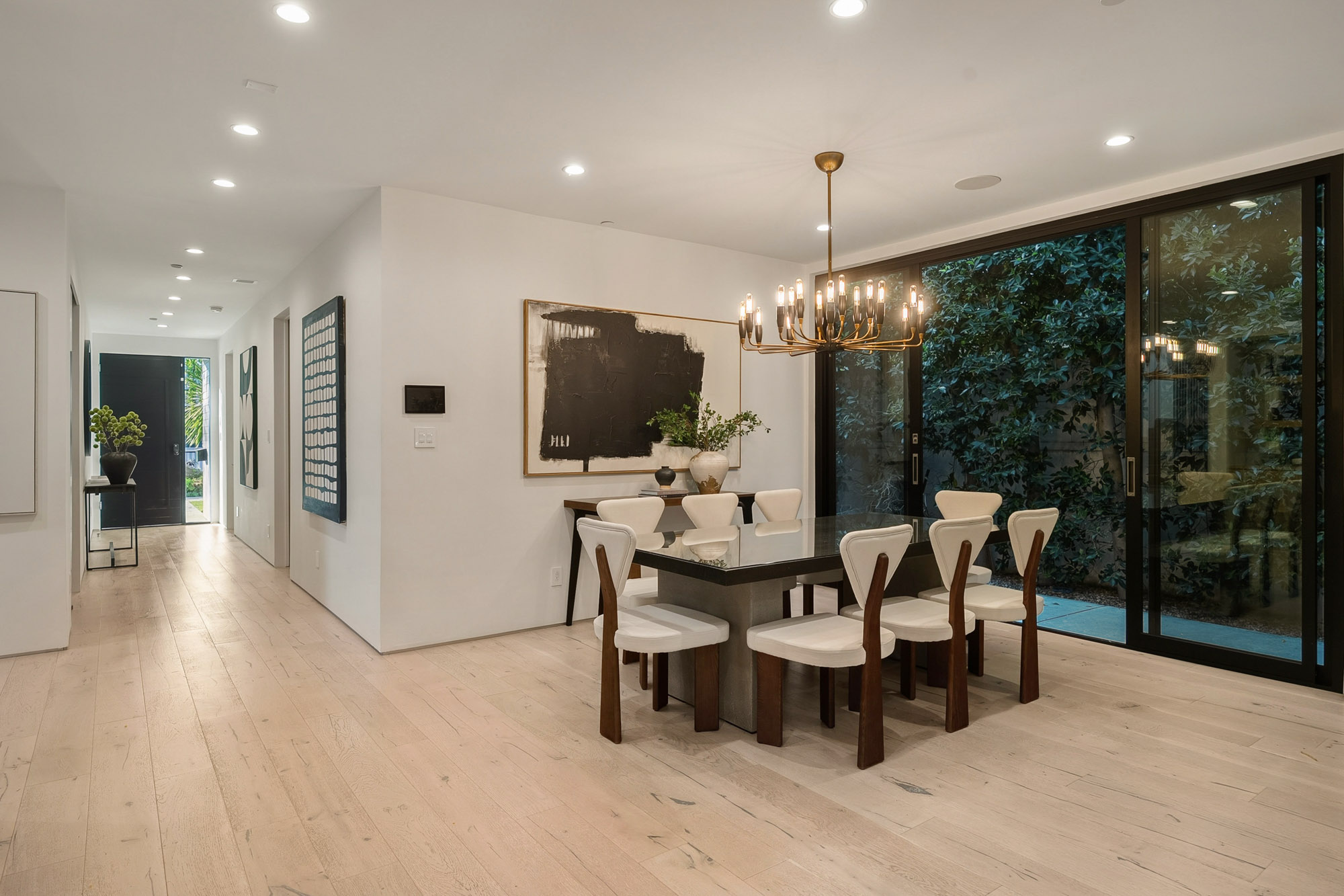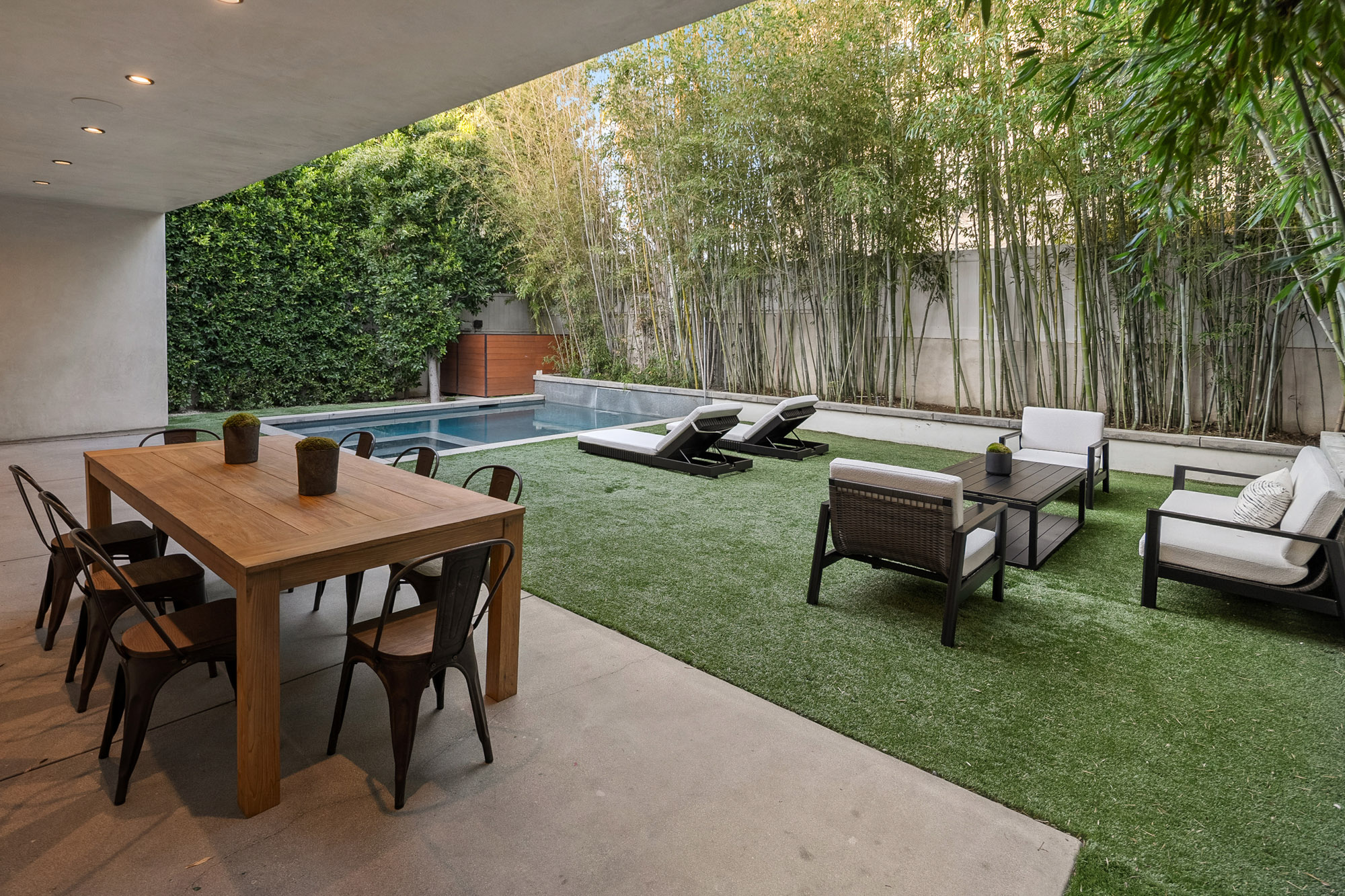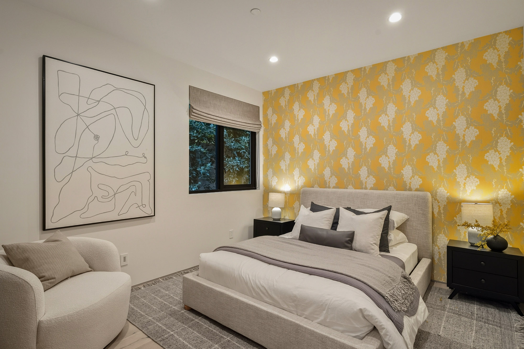 Situated on a gated lot in the desirable Footbridge Square neighborhood of Studio City, this modern architectural gem blends cutting-edge design with impeccable craftsmanship and high-end finishes throughout. Designed for modern living, this open-concept floor plan is highlighted by a gourmet chef’s kitchen equipped with top-of-the-line appliances, dual islands and a large walk-in pantry. The living and formal dining room boast floor-to-ceiling sliding glass doors that flood the space with natural light and open to create a seamless indoor-outdoor flow. Surrounded by mature privacy hedges, the entertainer's backyard offers a sparkling pool/spa with a safety gate, covered patio and low maintenance artificial turf yard. Upstairs, you’ll find three generously sized ensuite bedrooms, each with its own walk-in closet, alongside a spacious loft area. A true sanctuary, the primary suite features a large walk-in closet with custom built-ins and a sumptuous bathroom, complete with a soaking tub, walk-in rainfall shower and double vanity. Additional highlights include two main-level bedrooms (one of which has an ensuite bathroom), a dedicated laundry room, high ceilings throughout, a two-car garage and state-of-the-art Control4 smart home system that controls the built-in speakers, security cameras, thermostat, lighting and more. Live in the heart of Studio City, within the top-rated Carpenter School District and just moments away from trendy restaurants, boutique shops, the Studio City Farmers Market and so much more.