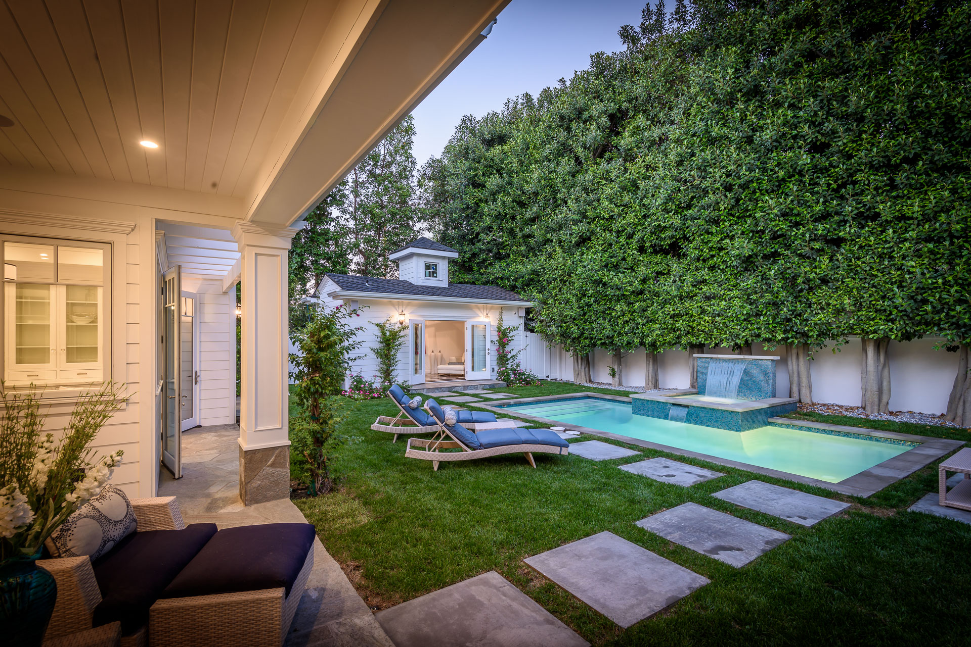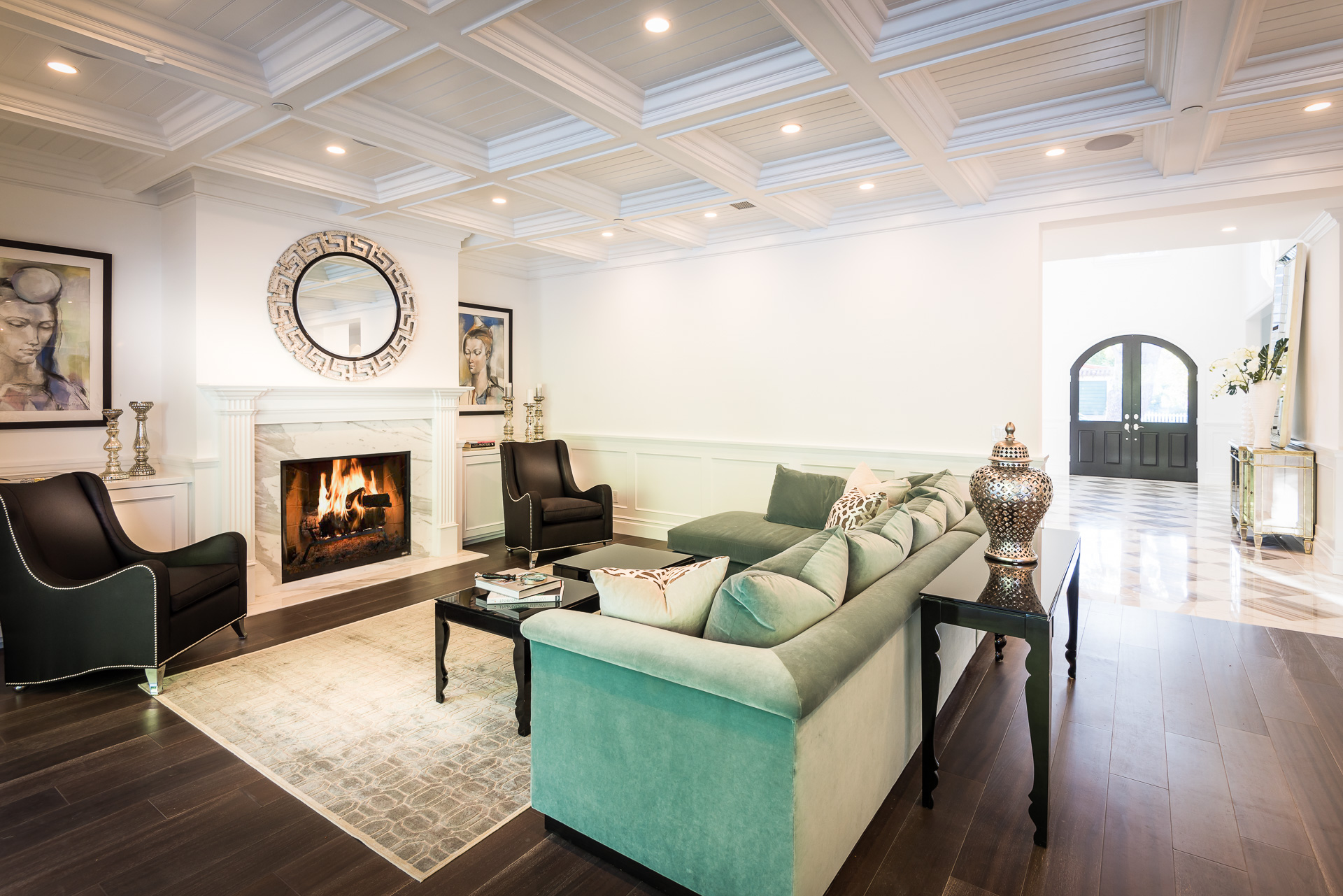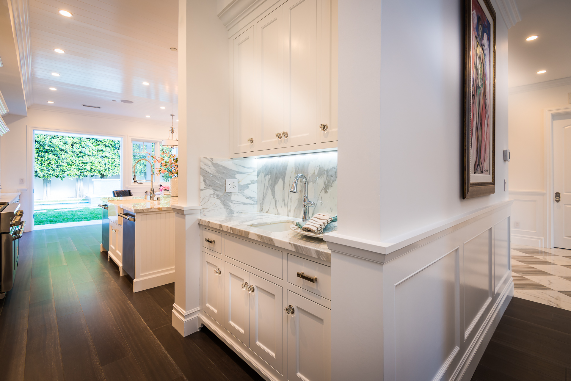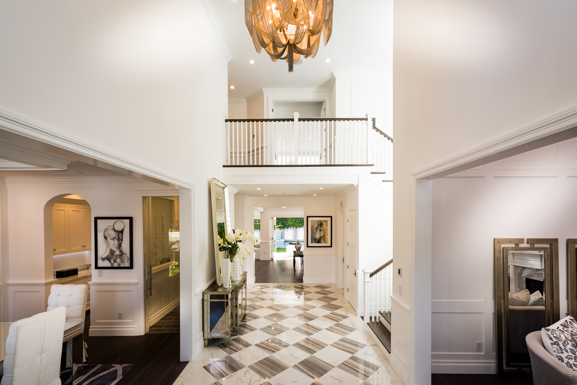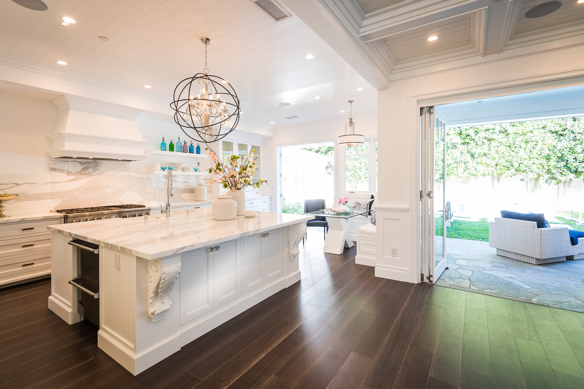 With Weddington Golf Course just down the street this exquisite new construction sits in one of most desirable neighborhood of Studio City. Luxurious features, abundance of a natural light, high end finishes. Beautiful arched double doors lead guests in a stunning foyer with soaring ceilings and Calcutta marble flooring. A formal living room showcases a Calcutta Gold marble around the fireplace, vaulted ceilings, and French doors looking out over the front yard. An elegant formal dining room boasts luxurious hardwood floors and paneled walls, with glamorous wine closet behind a glass door perfectly displaying your future finest vintage collection. A butler’s pantry offers direct access to an incredible gourmet chef’s kitchen with Calcutta Gold marble countertops, Thermador appliances, walk-in pantry, built-in breakfast nook, an oversized center island with dual Viking refrigerator drawers and two dishwashers accented beautifully by a custom chandelier. A fine open space flow into the spacious family room with coffered ceilings, fireplace, and a wall of doors that can be fully opened to provide seamless indoor/outdoor entertaining. An adjacent powder room is that of a luxury hotel, with seating area, marble vanity, back-lit sink, and privacy wall. Grand screening room features sophisticated technology and plush finishes, including an 80” television, surround sound, AV closet, and upholstered paneled walls. Private downstairs office provides a secluded space for concentration and focus includes attached bath and french doors to the backyard. Gorgeous master suite upstairs boasts soaring beamed ceilings, a private balcony, seating area, 2 walk-in closets, and a dual sided fireplace to the spa-like master bath with massive dual vanity, soaking tub, and Calcutta Gold marble shower. Spacious guest rooms feature custom closets and stunning bathrooms. Truly incredible backyard offers great entertainer’s area with covered outdoor living space, sparkling pool & spa with glass mosaic tile, water features, and built-in BBQ with refrigerator leading into capacious guest house features beamed ceilings, Calcutta marble flooring, and beautiful bath. Additional conveniences include an attached two-car garage, enormous upstairs laundry room, dual zone temperature, smart system and whole-house entertainment system.