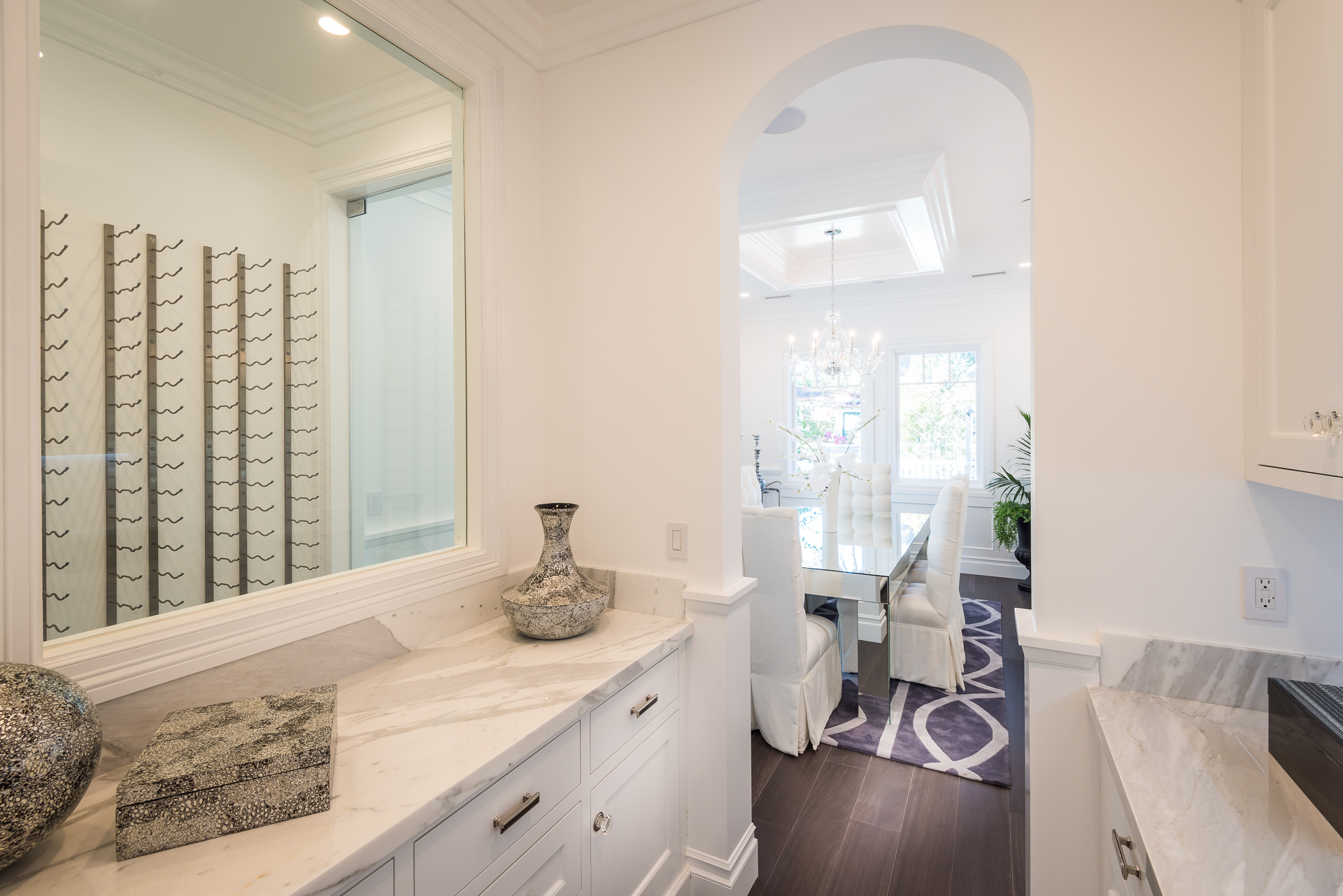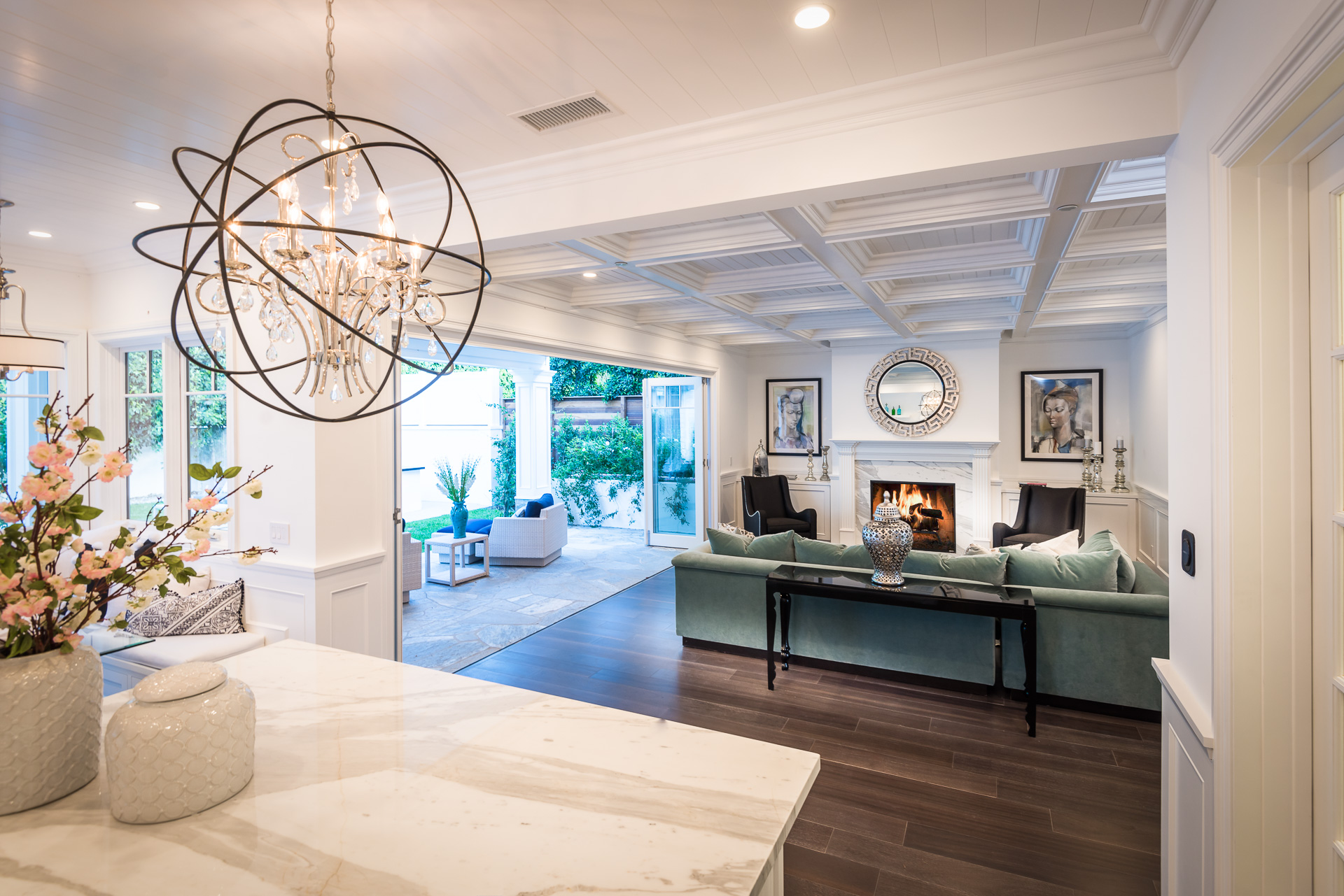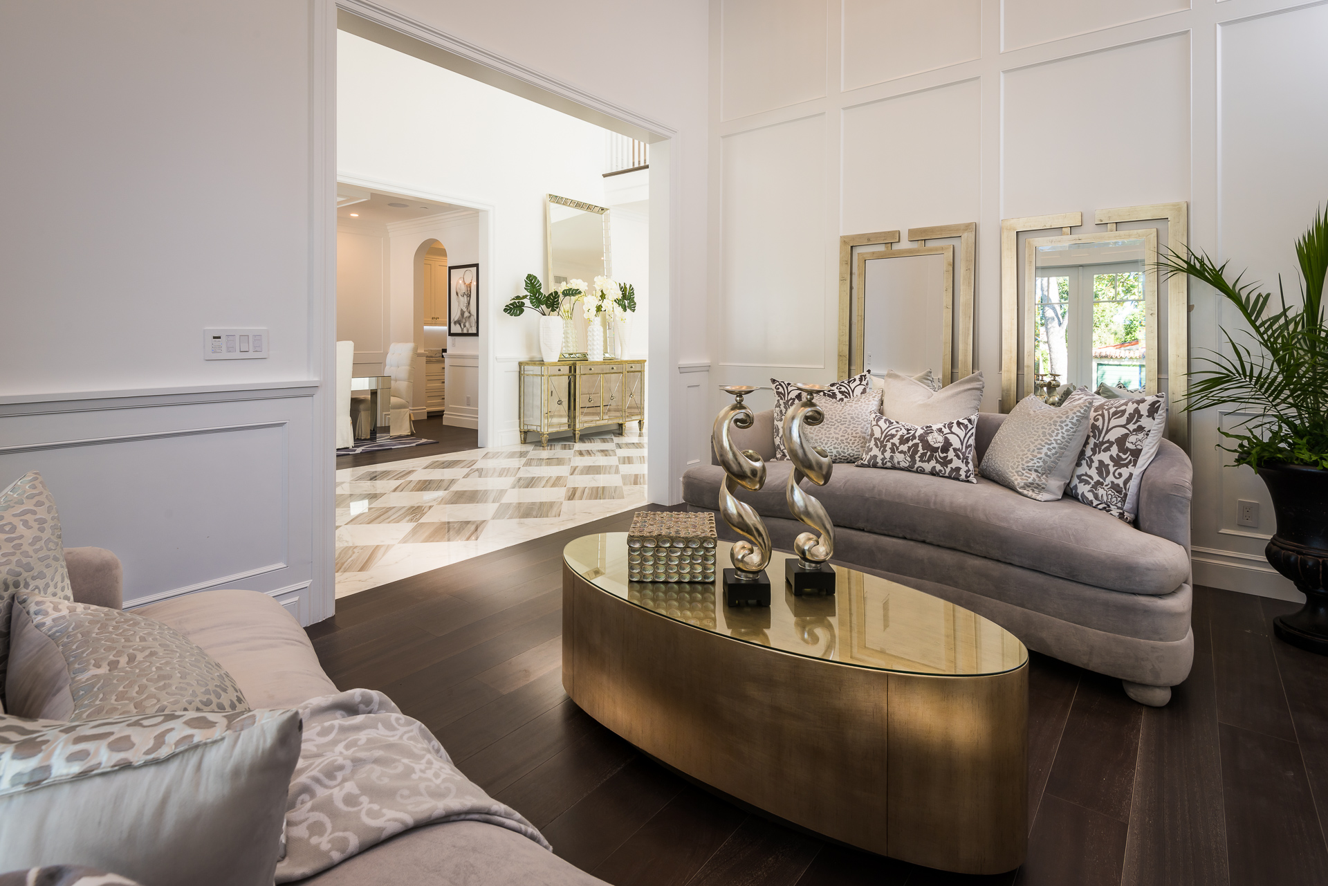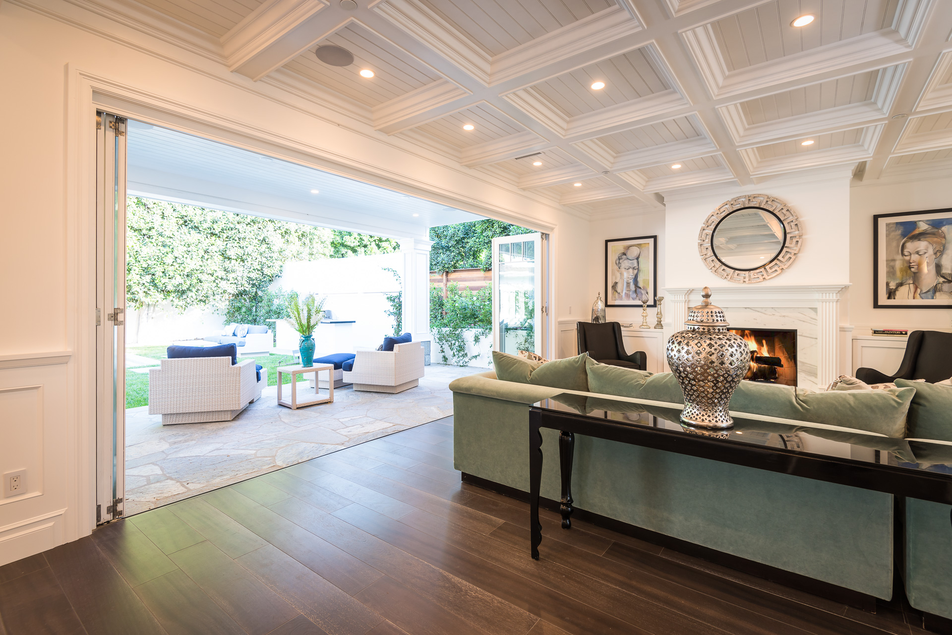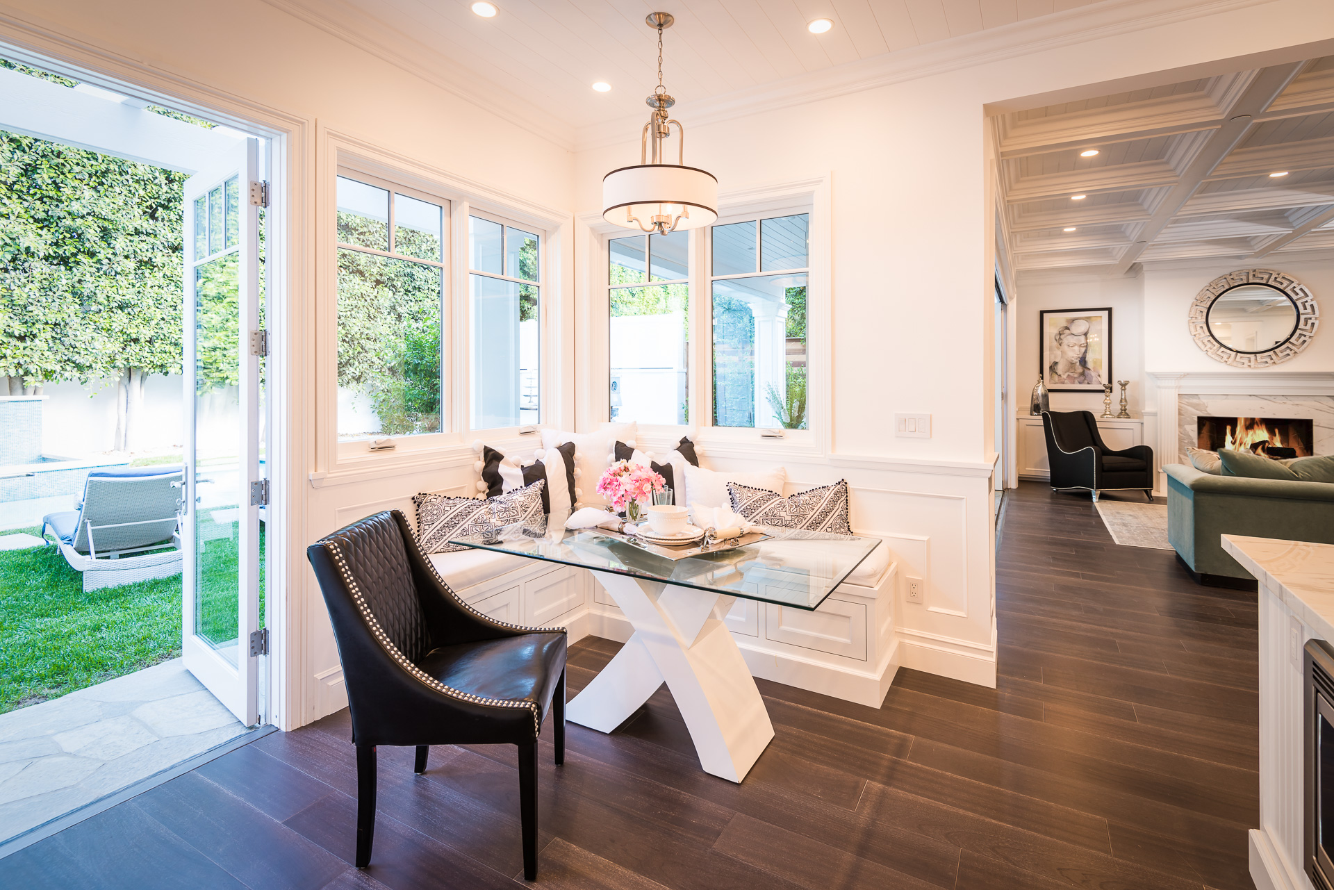 With Weddington Golf Course just down the street this exquisite new construction sits in one of most desirable neighborhood of Studio City. Luxurious features, abundance of a natural light, high end finishes. Beautiful arched double doors lead guests in a stunning foyer with soaring ceilings and Calcutta marble flooring. A formal living room showcases a Calcutta Gold marble around the fireplace, vaulted ceilings, and French doors looking out over the front yard. An elegant formal dining room boasts luxurious hardwood floors and paneled walls, with glamorous wine closet behind a glass door perfectly displaying your future finest vintage collection. A butler’s pantry offers direct access to an incredible gourmet chef’s kitchen with Calcutta Gold marble countertops, Thermador appliances, walk-in pantry, built-in breakfast nook, an oversized center island with dual Viking refrigerator drawers and two dishwashers accented beautifully by a custom chandelier. A fine open space flow into the spacious family room with coffered ceilings, fireplace, and a wall of doors that can be fully opened to provide seamless indoor/outdoor entertaining. An adjacent powder room is that of a luxury hotel, with seating area, marble vanity, back-lit sink, and privacy wall. Grand screening room features sophisticated technology and plush finishes, including an 80” television, surround sound, AV closet, and upholstered paneled walls. Private downstairs office provides a secluded space for concentration and focus includes attached bath and french doors to the backyard. Gorgeous master suite upstairs boasts soaring beamed ceilings, a private balcony, seating area, 2 walk-in closets, and a dual sided fireplace to the spa-like master bath with massive dual vanity, soaking tub, and Calcutta Gold marble shower. Spacious guest rooms feature custom closets and stunning bathrooms. Truly incredible backyard offers great entertainer’s area with covered outdoor living space, sparkling pool & spa with glass mosaic tile, water features, and built-in BBQ with refrigerator leading into capacious guest house features beamed ceilings, Calcutta marble flooring, and beautiful bath. Additional conveniences include an attached two-car garage, enormous upstairs laundry room, dual zone temperature, smart system and whole-house entertainment system.