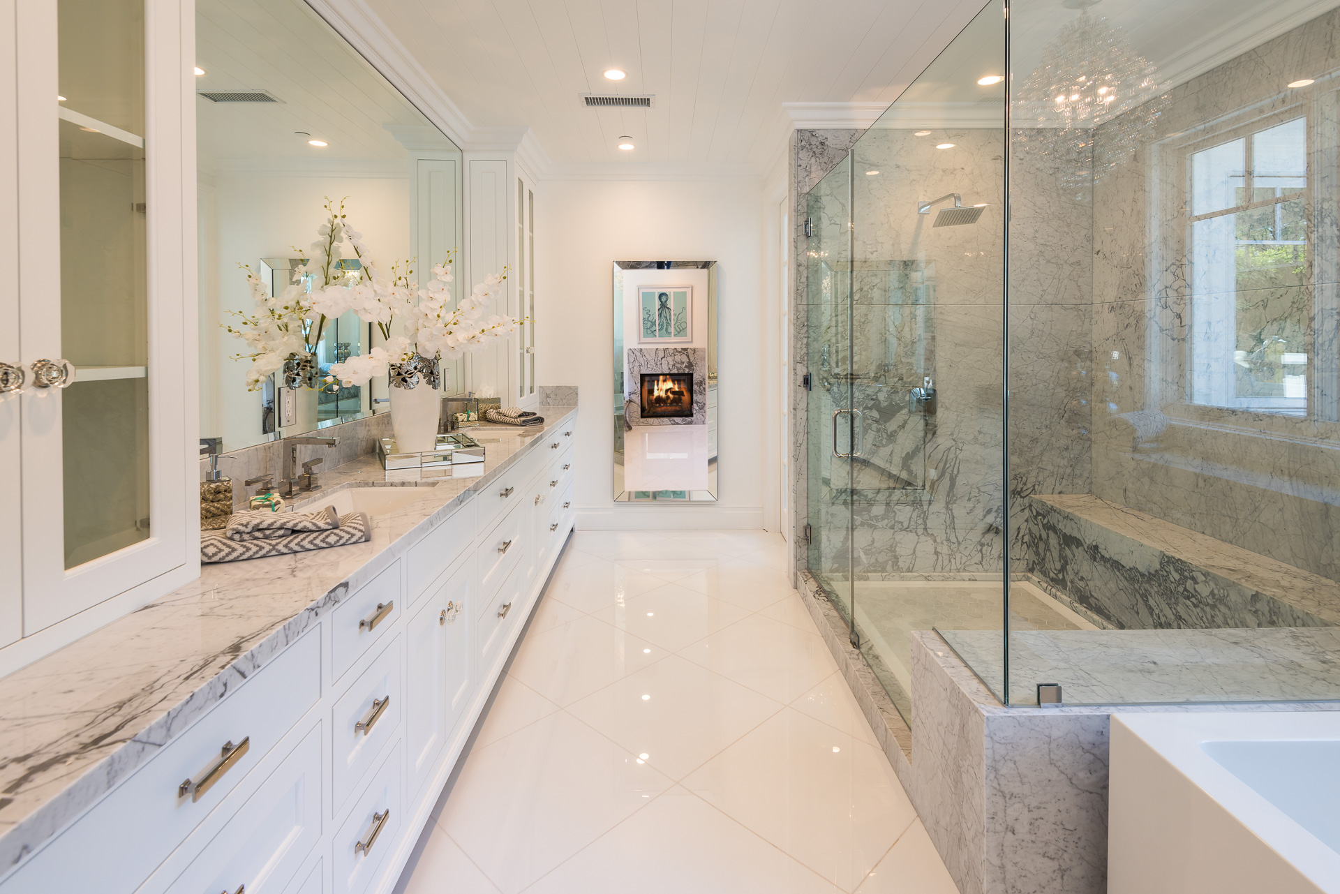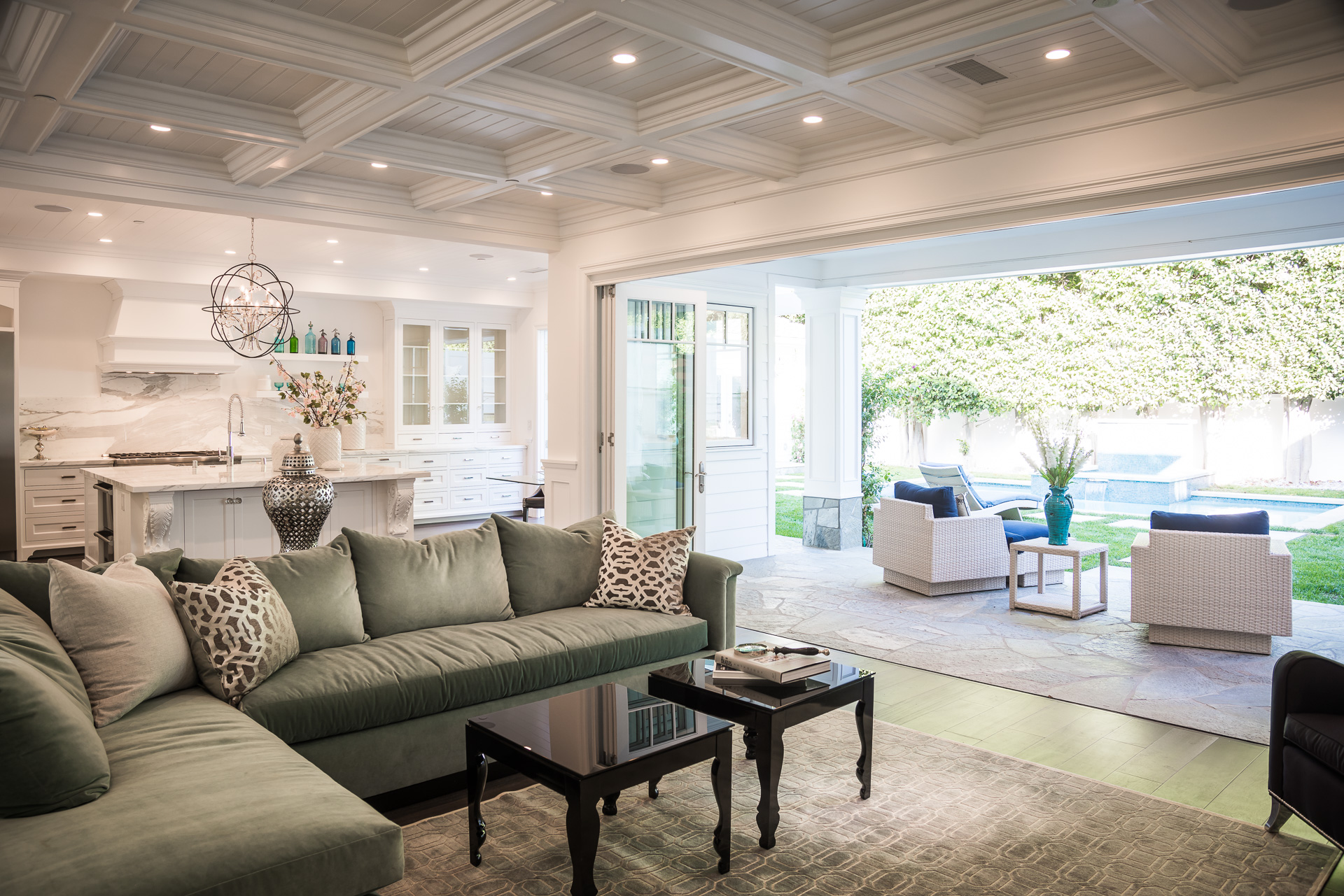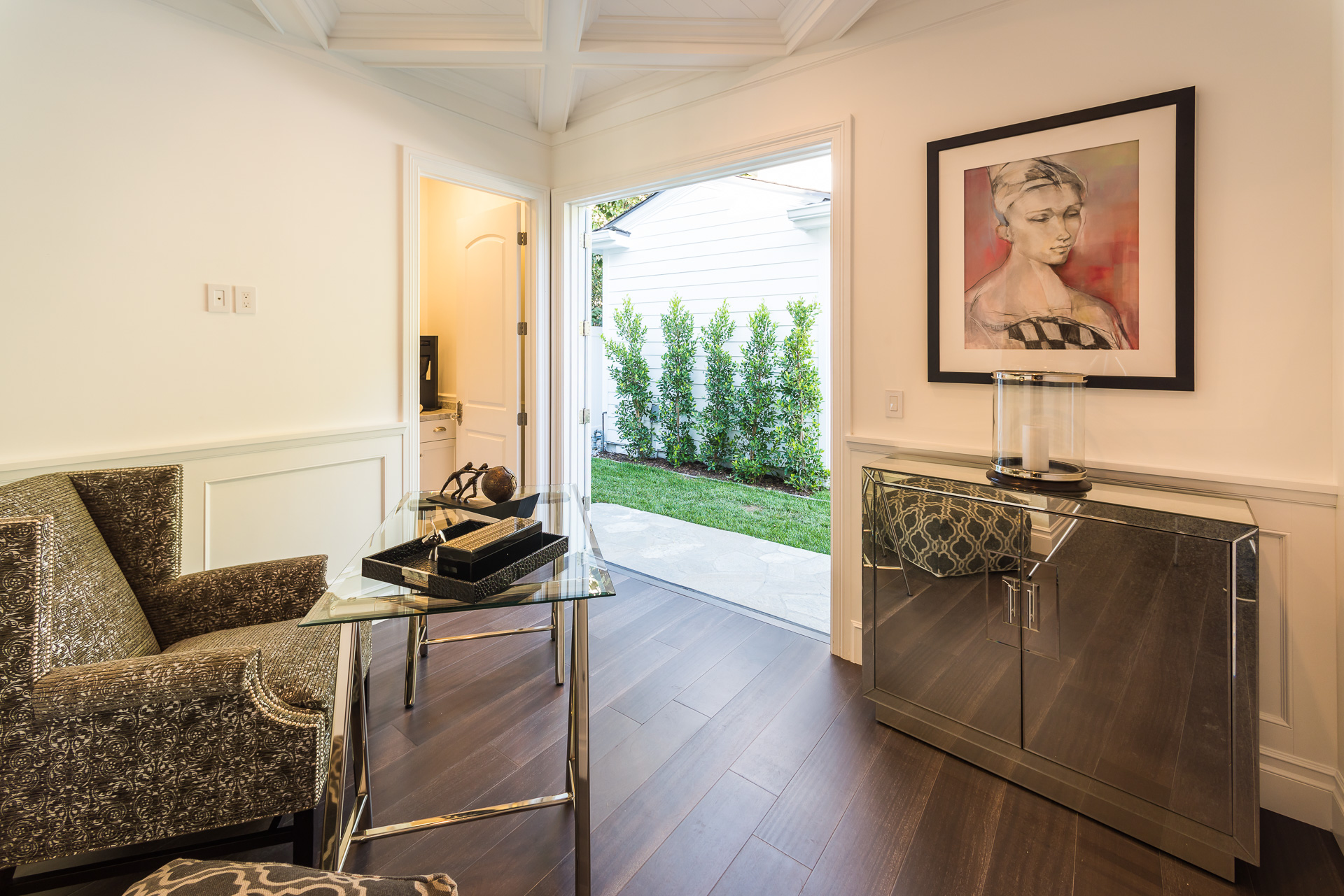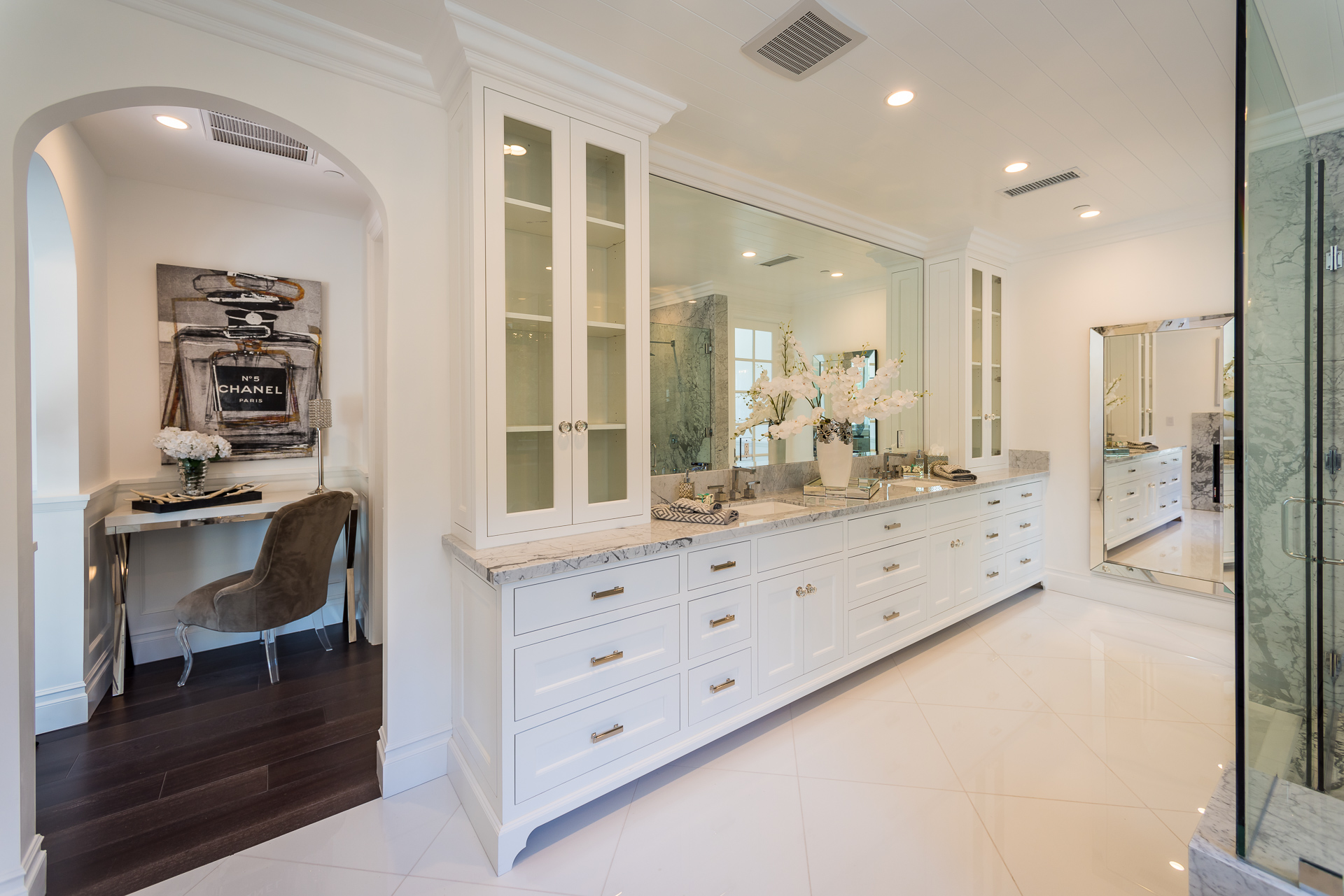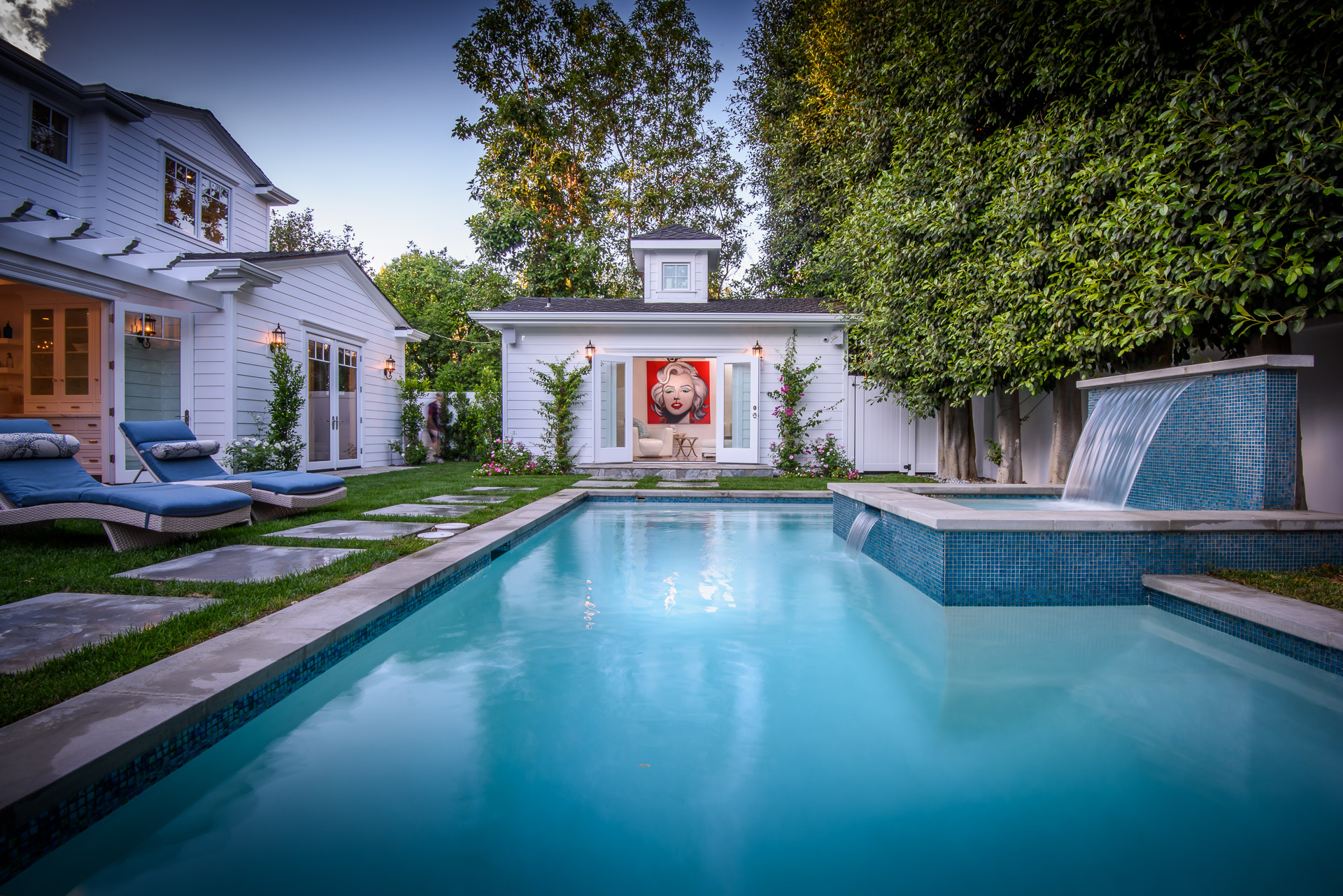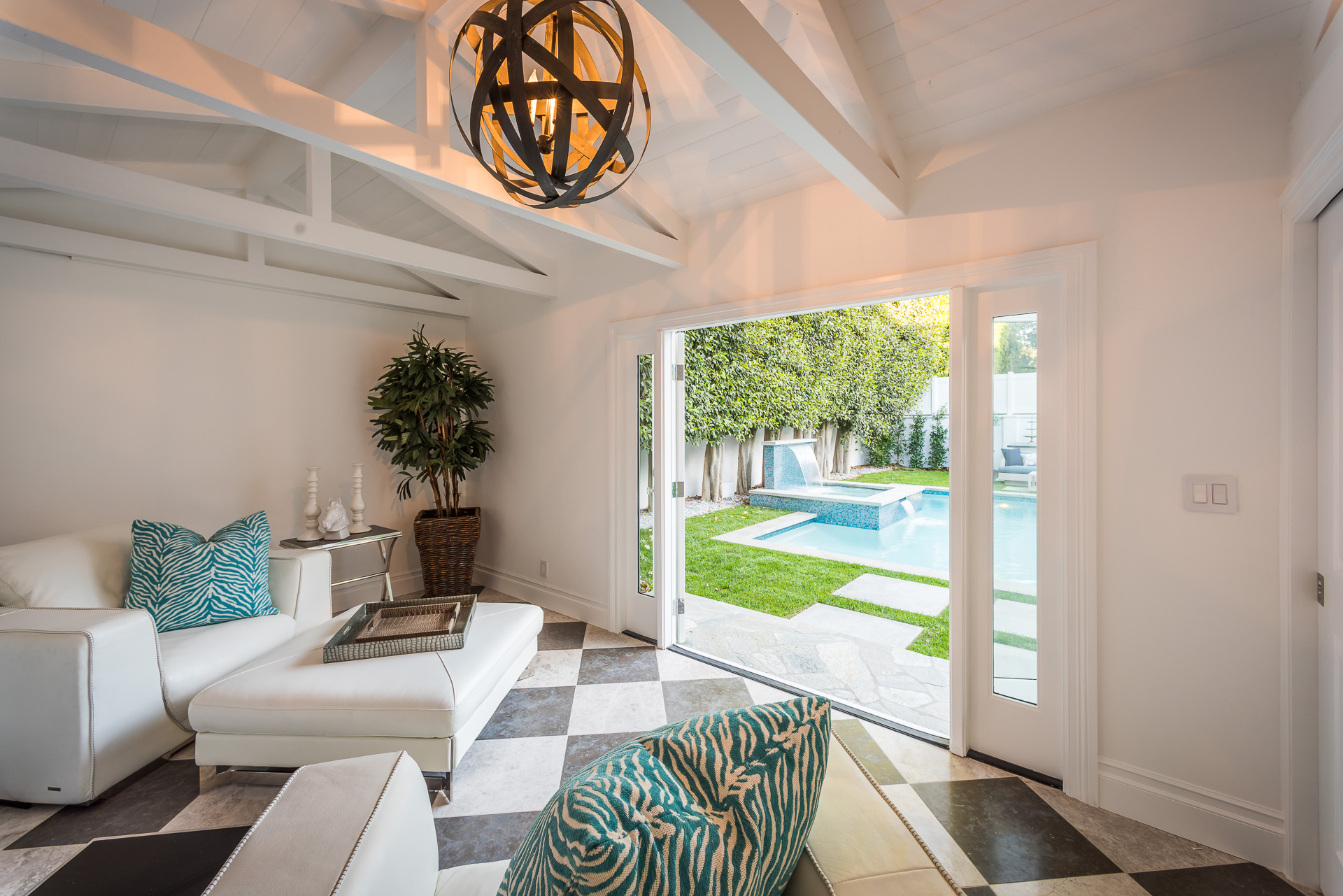 With Weddington Golf Course just down the street this exquisite new construction sits in one of most desirable neighborhood of Studio City. Luxurious features, abundance of a natural light, high end finishes. Beautiful arched double doors lead guests in a stunning foyer with soaring ceilings and Calcutta marble flooring. A formal living room showcases a Calcutta Gold marble around the fireplace, vaulted ceilings, and French doors looking out over the front yard. An elegant formal dining room boasts luxurious hardwood floors and paneled walls, with glamorous wine closet behind a glass door perfectly displaying your future finest vintage collection. A butler’s pantry offers direct access to an incredible gourmet chef’s kitchen with Calcutta Gold marble countertops, Thermador appliances, walk-in pantry, built-in breakfast nook, an oversized center island with dual Viking refrigerator drawers and two dishwashers accented beautifully by a custom chandelier. A fine open space flow into the spacious family room with coffered ceilings, fireplace, and a wall of doors that can be fully opened to provide seamless indoor/outdoor entertaining. An adjacent powder room is that of a luxury hotel, with seating area, marble vanity, back-lit sink, and privacy wall. Grand screening room features sophisticated technology and plush finishes, including an 80” television, surround sound, AV closet, and upholstered paneled walls. Private downstairs office provides a secluded space for concentration and focus includes attached bath and french doors to the backyard. Gorgeous master suite upstairs boasts soaring beamed ceilings, a private balcony, seating area, 2 walk-in closets, and a dual sided fireplace to the spa-like master bath with massive dual vanity, soaking tub, and Calcutta Gold marble shower. Spacious guest rooms feature custom closets and stunning bathrooms. Truly incredible backyard offers great entertainer’s area with covered outdoor living space, sparkling pool & spa with glass mosaic tile, water features, and built-in BBQ with refrigerator leading into capacious guest house features beamed ceilings, Calcutta marble flooring, and beautiful bath. Additional conveniences include an attached two-car garage, enormous upstairs laundry room, dual zone temperature, smart system and whole-house entertainment system.