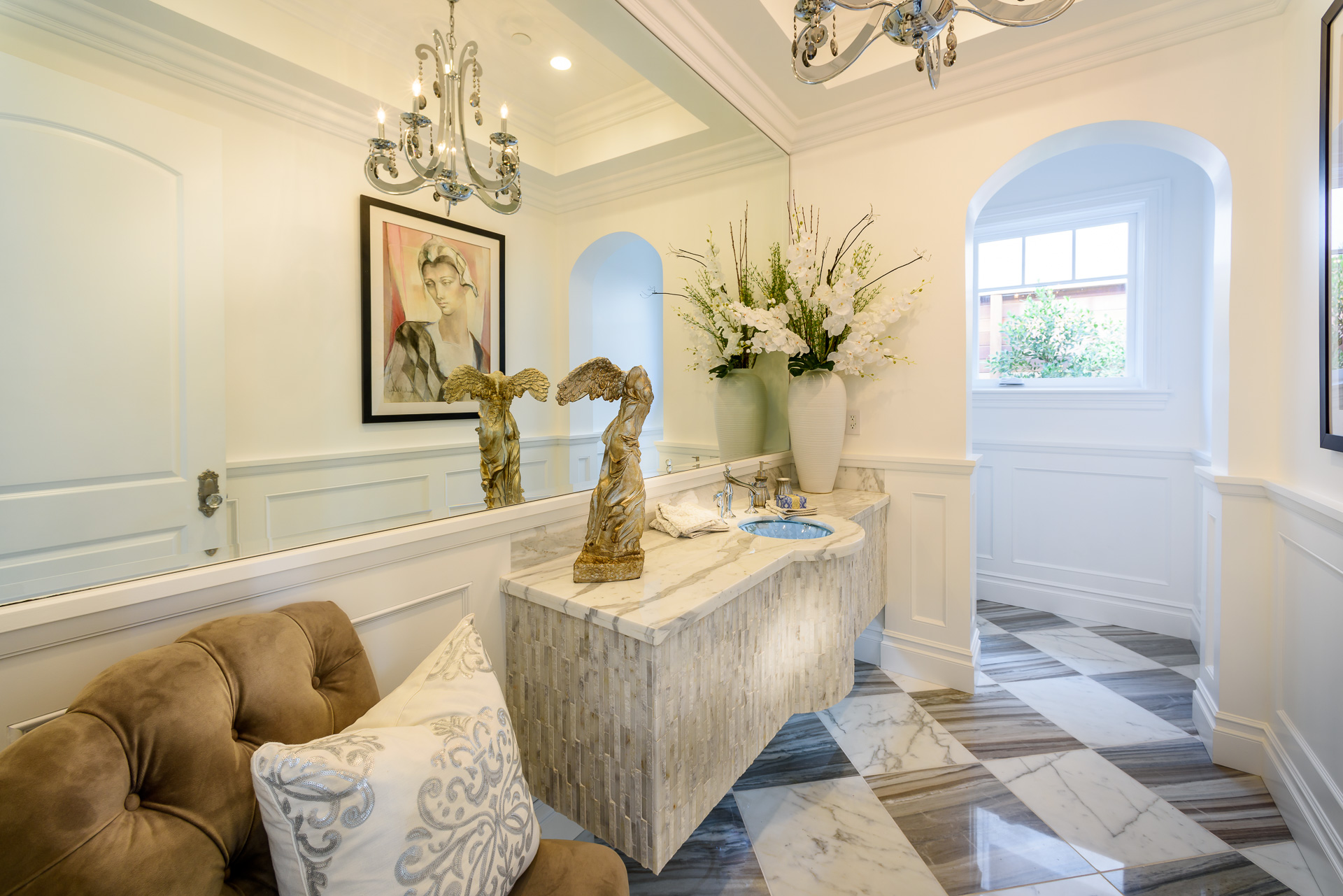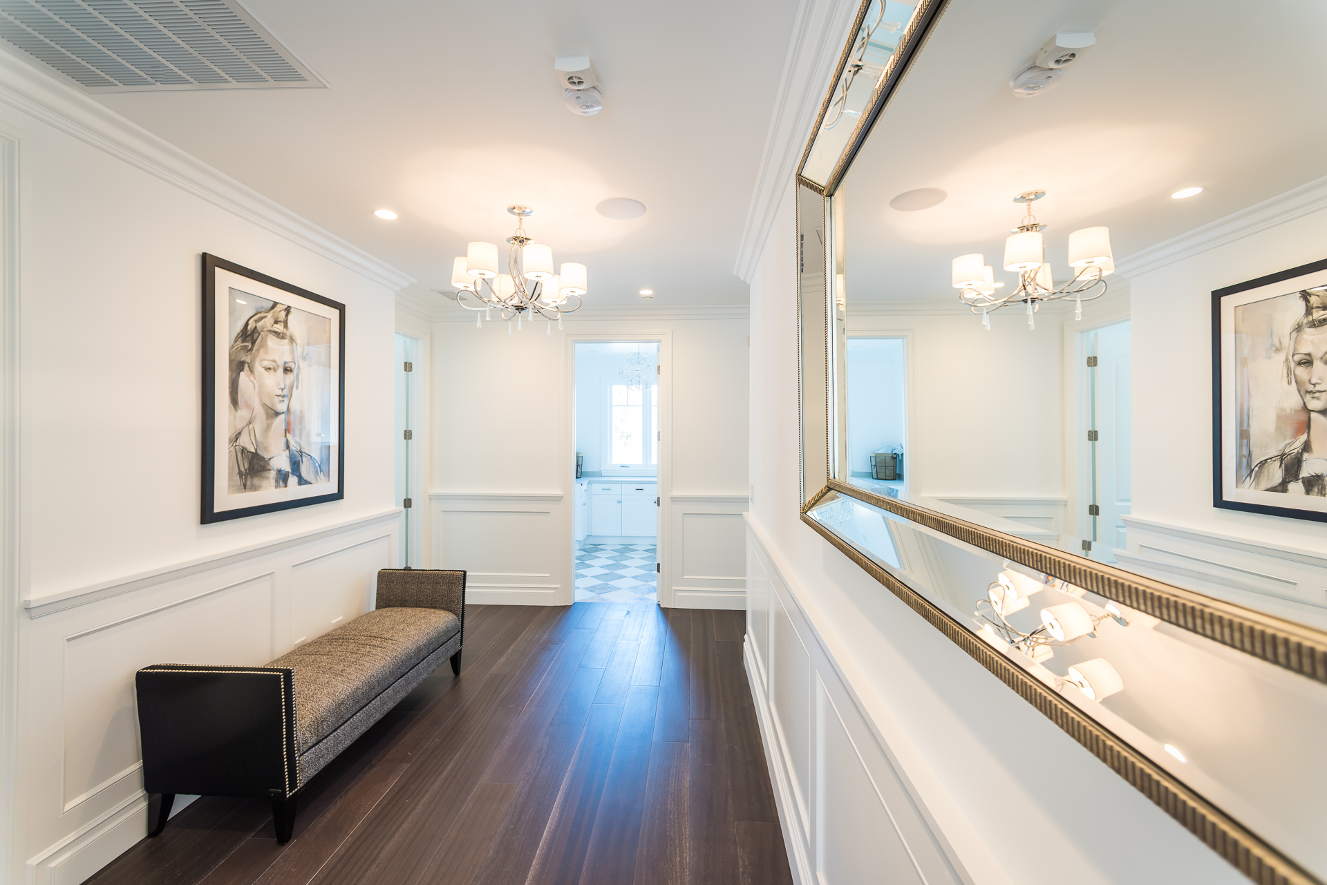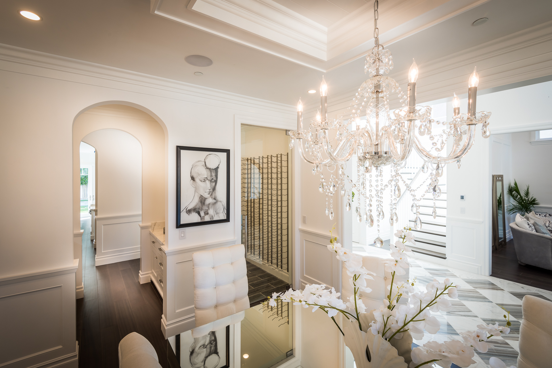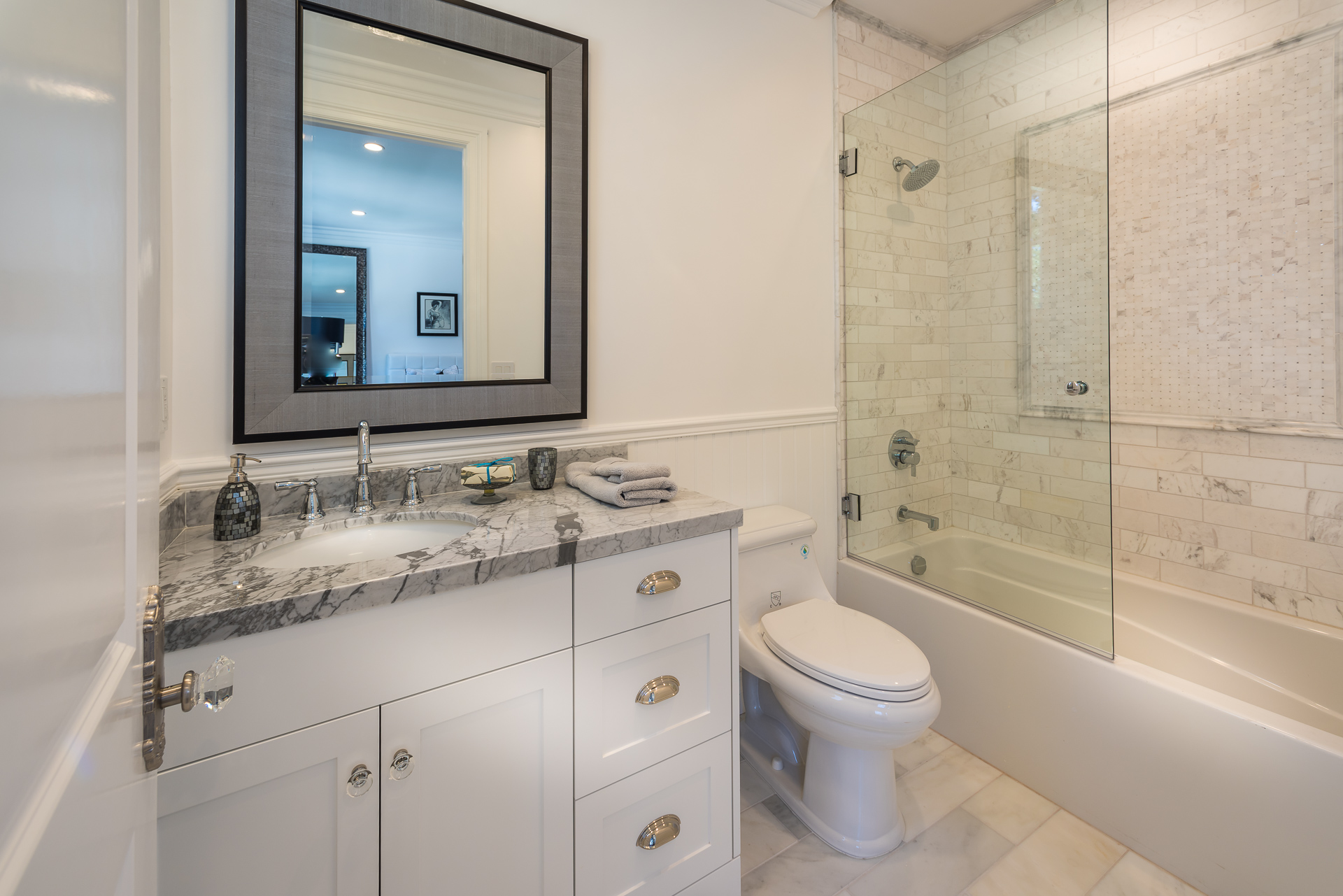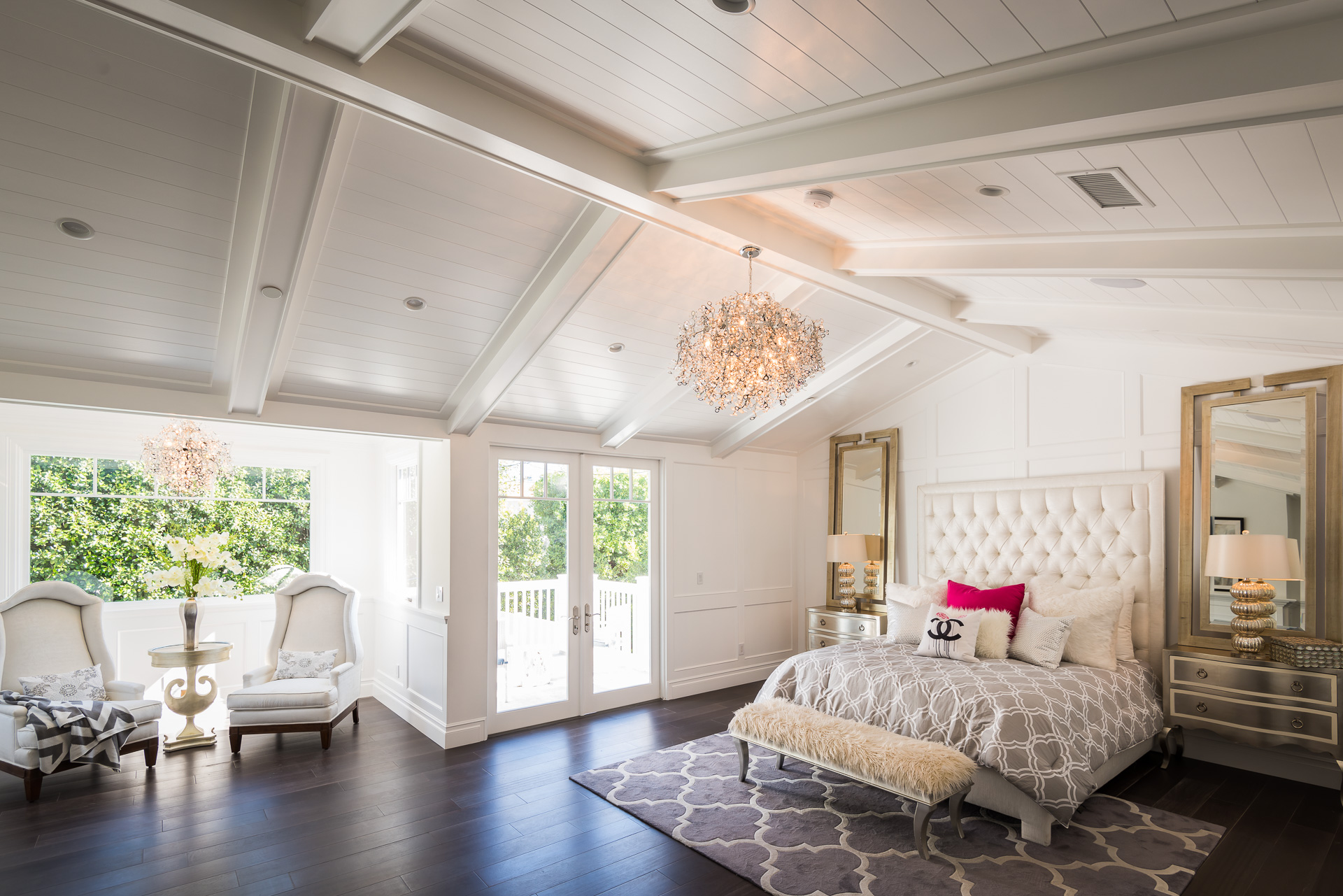 With Weddington Golf Course just down the street this exquisite new construction sits in one of most desirable neighborhood of Studio City. Luxurious features, abundance of a natural light, high end finishes. Beautiful arched double doors lead guests in a stunning foyer with soaring ceilings and Calcutta marble flooring. A formal living room showcases a Calcutta Gold marble around the fireplace, vaulted ceilings, and French doors looking out over the front yard. An elegant formal dining room boasts luxurious hardwood floors and paneled walls, with glamorous wine closet behind a glass door perfectly displaying your future finest vintage collection. A butler’s pantry offers direct access to an incredible gourmet chef’s kitchen with Calcutta Gold marble countertops, Thermador appliances, walk-in pantry, built-in breakfast nook, an oversized center island with dual Viking refrigerator drawers and two dishwashers accented beautifully by a custom chandelier. A fine open space flow into the spacious family room with coffered ceilings, fireplace, and a wall of doors that can be fully opened to provide seamless indoor/outdoor entertaining. An adjacent powder room is that of a luxury hotel, with seating area, marble vanity, back-lit sink, and privacy wall. Grand screening room features sophisticated technology and plush finishes, including an 80” television, surround sound, AV closet, and upholstered paneled walls. Private downstairs office provides a secluded space for concentration and focus includes attached bath and french doors to the backyard. Gorgeous master suite upstairs boasts soaring beamed ceilings, a private balcony, seating area, 2 walk-in closets, and a dual sided fireplace to the spa-like master bath with massive dual vanity, soaking tub, and Calcutta Gold marble shower. Spacious guest rooms feature custom closets and stunning bathrooms. Truly incredible backyard offers great entertainer’s area with covered outdoor living space, sparkling pool & spa with glass mosaic tile, water features, and built-in BBQ with refrigerator leading into capacious guest house features beamed ceilings, Calcutta marble flooring, and beautiful bath. Additional conveniences include an attached two-car garage, enormous upstairs laundry room, dual zone temperature, smart system and whole-house entertainment system.