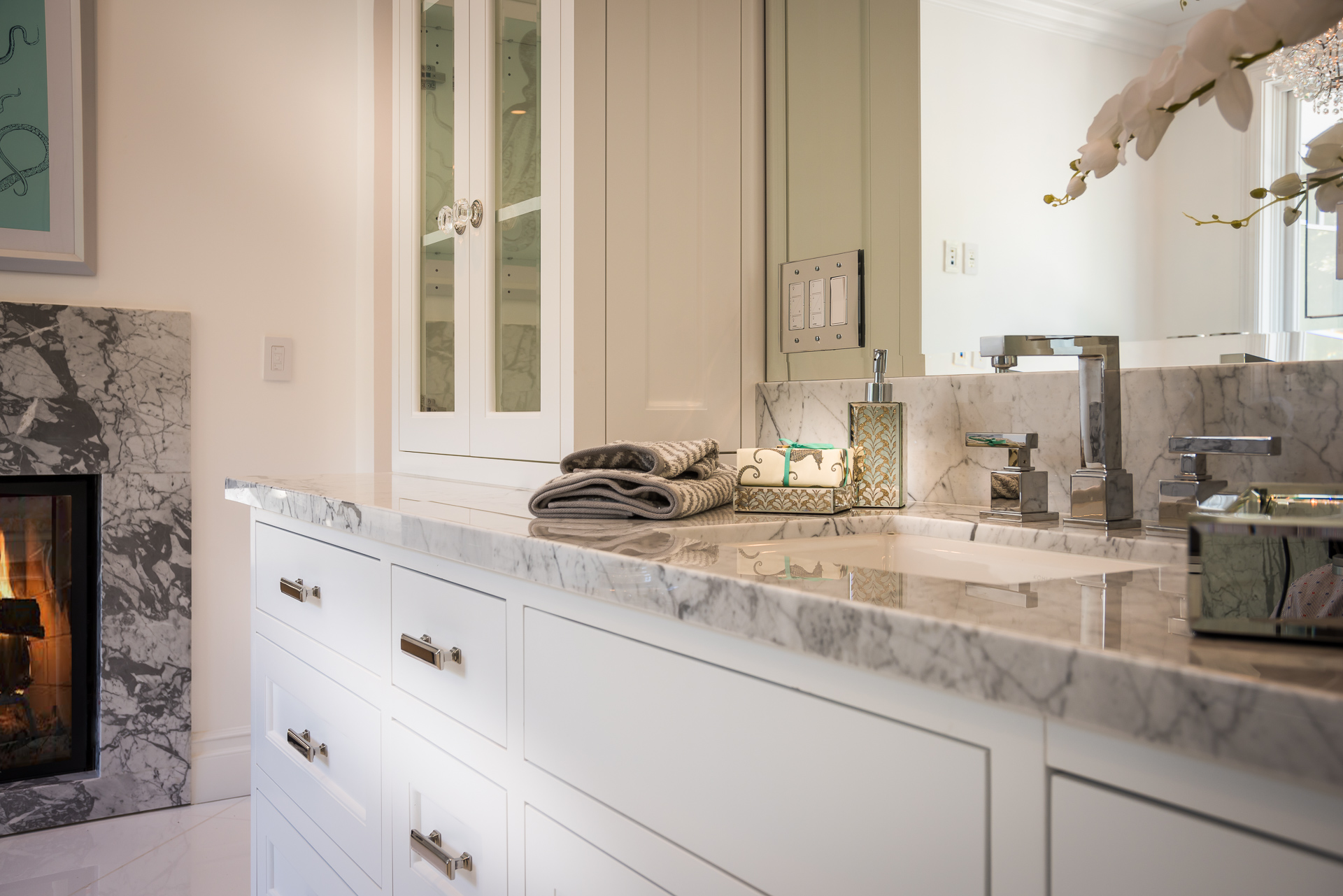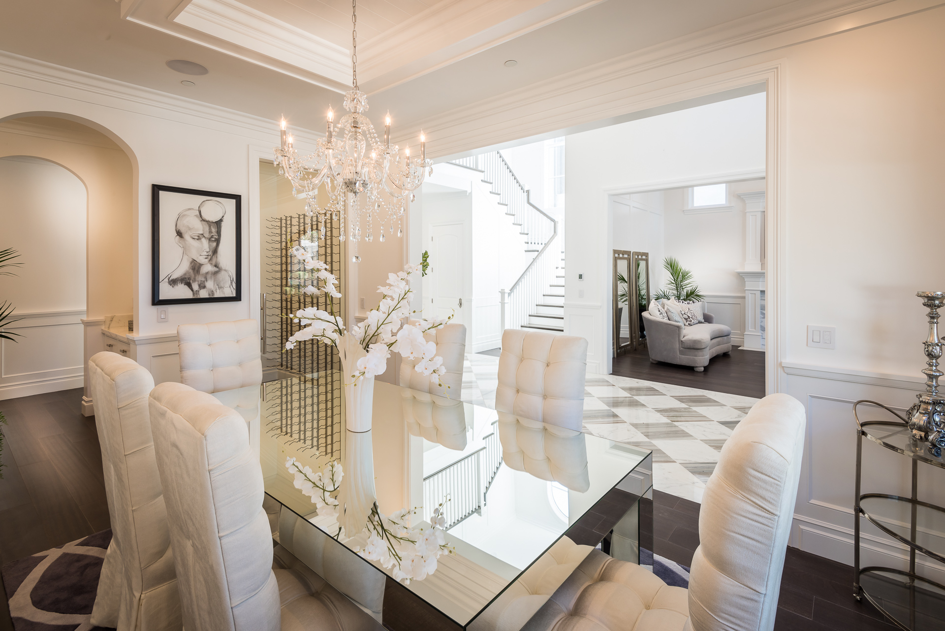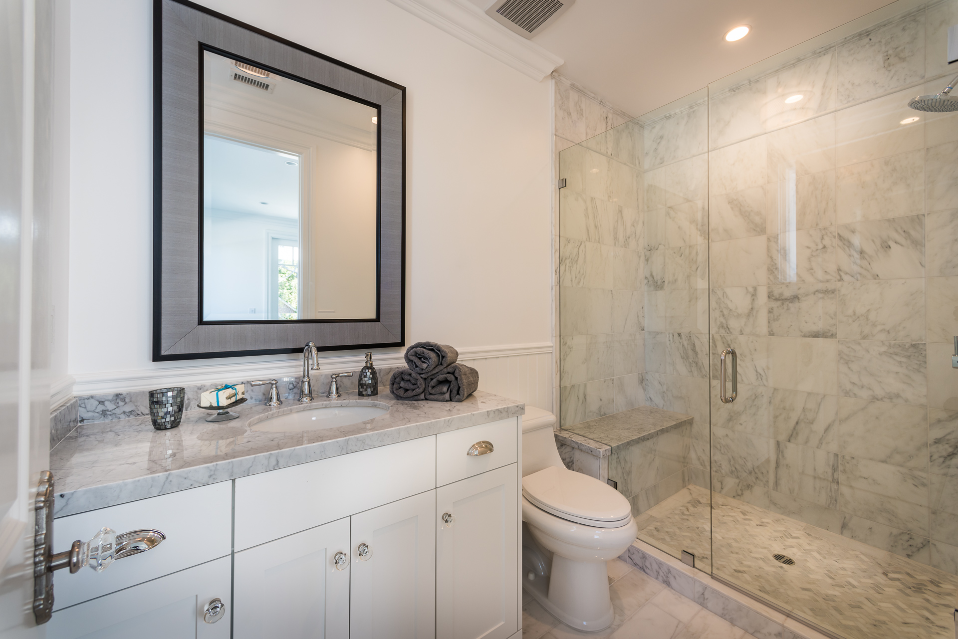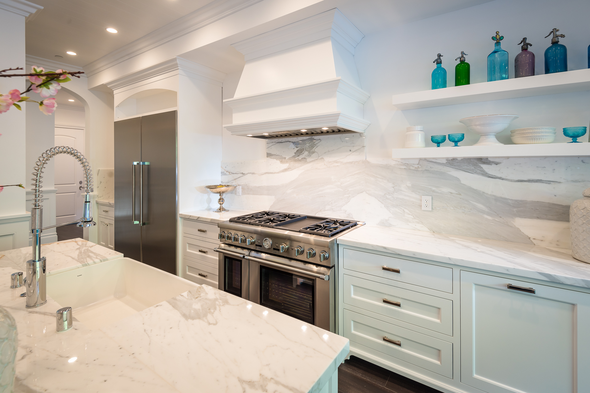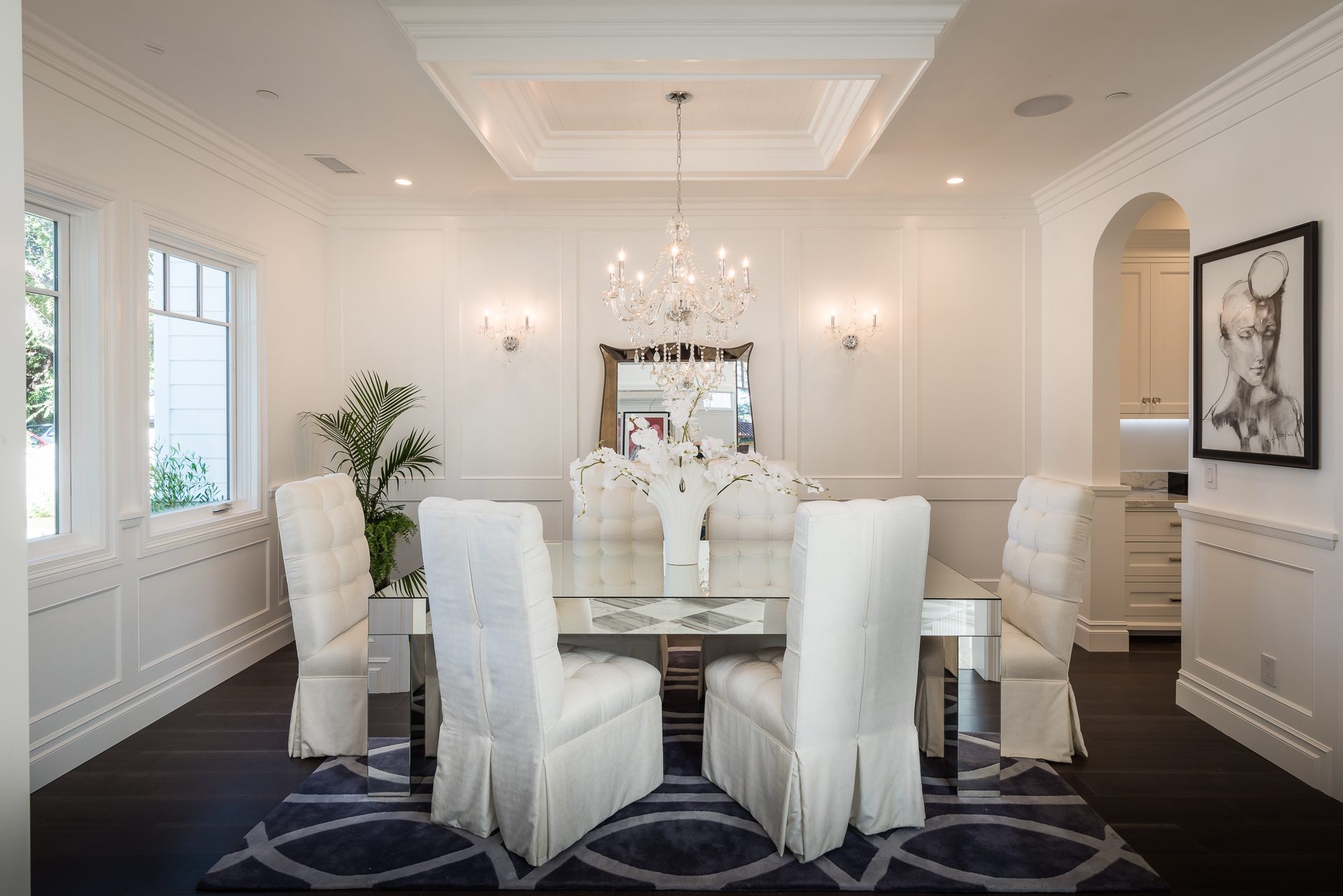 With Weddington Golf Course just down the street this exquisite new construction sits in one of most desirable neighborhood of Studio City. Luxurious features, abundance of a natural light, high end finishes. Beautiful arched double doors lead guests in a stunning foyer with soaring ceilings and Calcutta marble flooring. A formal living room showcases a Calcutta Gold marble around the fireplace, vaulted ceilings, and French doors looking out over the front yard. An elegant formal dining room boasts luxurious hardwood floors and paneled walls, with glamorous wine closet behind a glass door perfectly displaying your future finest vintage collection. A butler’s pantry offers direct access to an incredible gourmet chef’s kitchen with Calcutta Gold marble countertops, Thermador appliances, walk-in pantry, built-in breakfast nook, an oversized center island with dual Viking refrigerator drawers and two dishwashers accented beautifully by a custom chandelier. A fine open space flow into the spacious family room with coffered ceilings, fireplace, and a wall of doors that can be fully opened to provide seamless indoor/outdoor entertaining. An adjacent powder room is that of a luxury hotel, with seating area, marble vanity, back-lit sink, and privacy wall. Grand screening room features sophisticated technology and plush finishes, including an 80” television, surround sound, AV closet, and upholstered paneled walls. Private downstairs office provides a secluded space for concentration and focus includes attached bath and french doors to the backyard. Gorgeous master suite upstairs boasts soaring beamed ceilings, a private balcony, seating area, 2 walk-in closets, and a dual sided fireplace to the spa-like master bath with massive dual vanity, soaking tub, and Calcutta Gold marble shower. Spacious guest rooms feature custom closets and stunning bathrooms. Truly incredible backyard offers great entertainer’s area with covered outdoor living space, sparkling pool & spa with glass mosaic tile, water features, and built-in BBQ with refrigerator leading into capacious guest house features beamed ceilings, Calcutta marble flooring, and beautiful bath. Additional conveniences include an attached two-car garage, enormous upstairs laundry room, dual zone temperature, smart system and whole-house entertainment system.