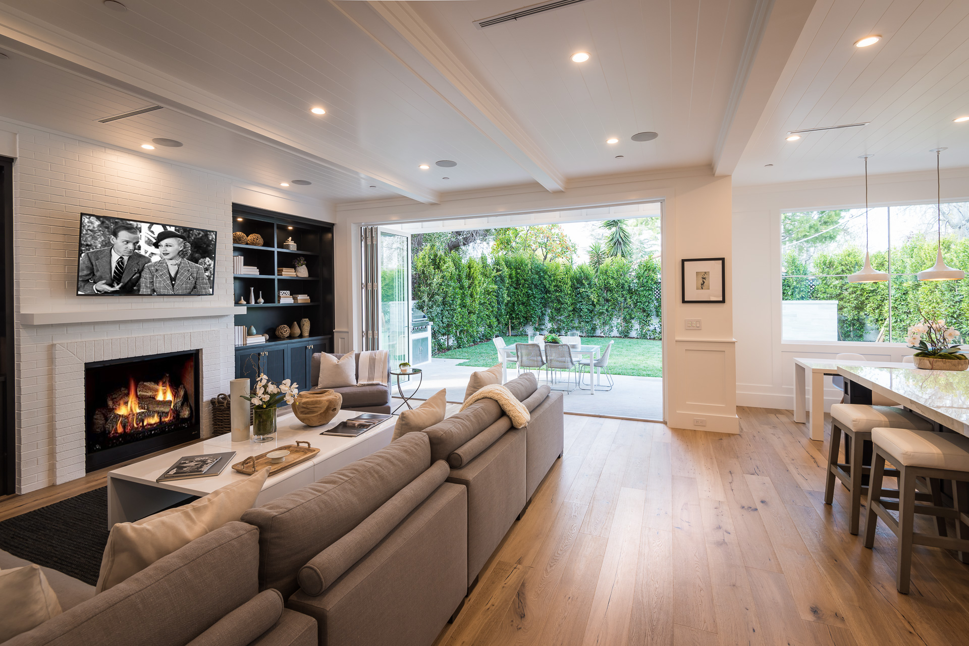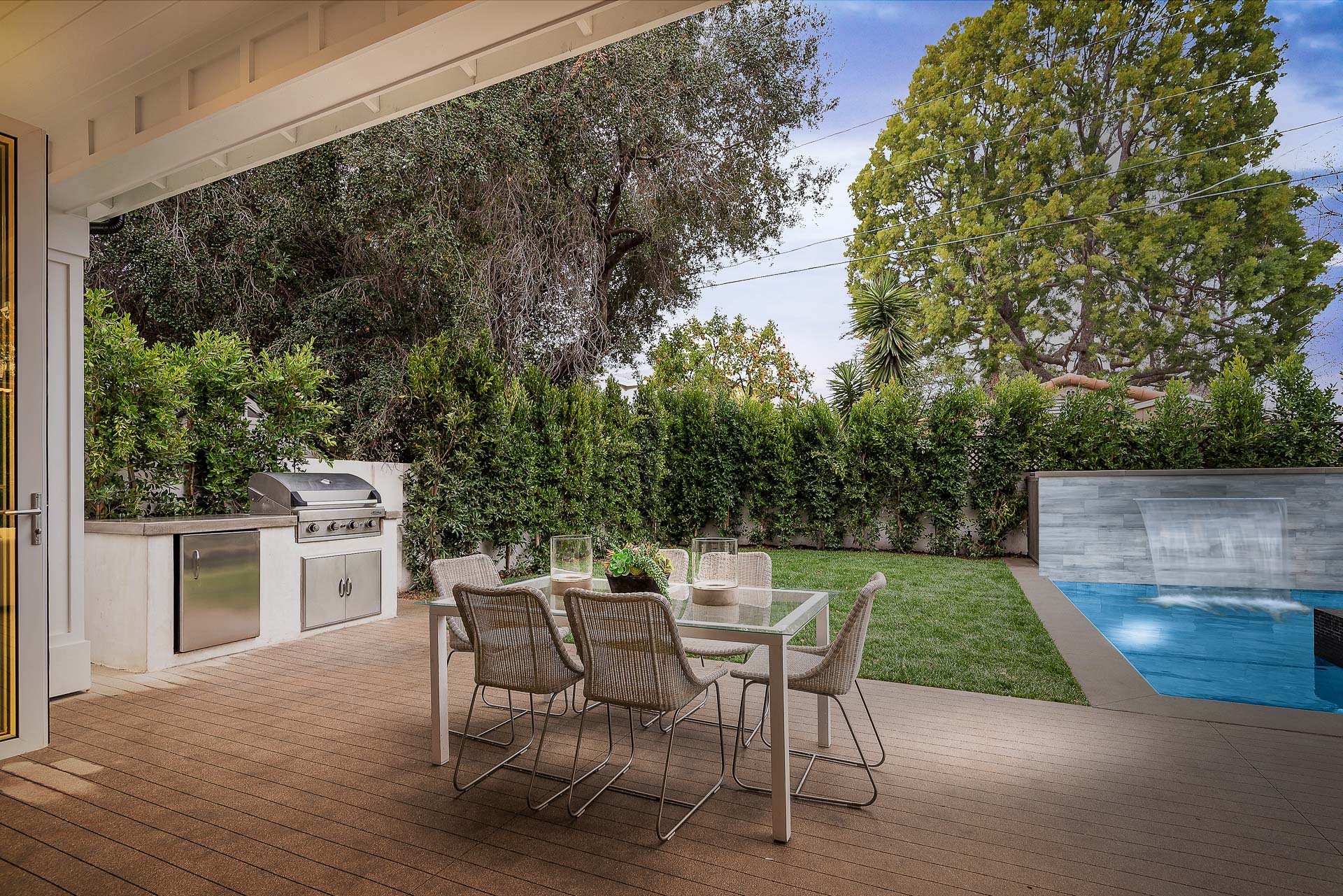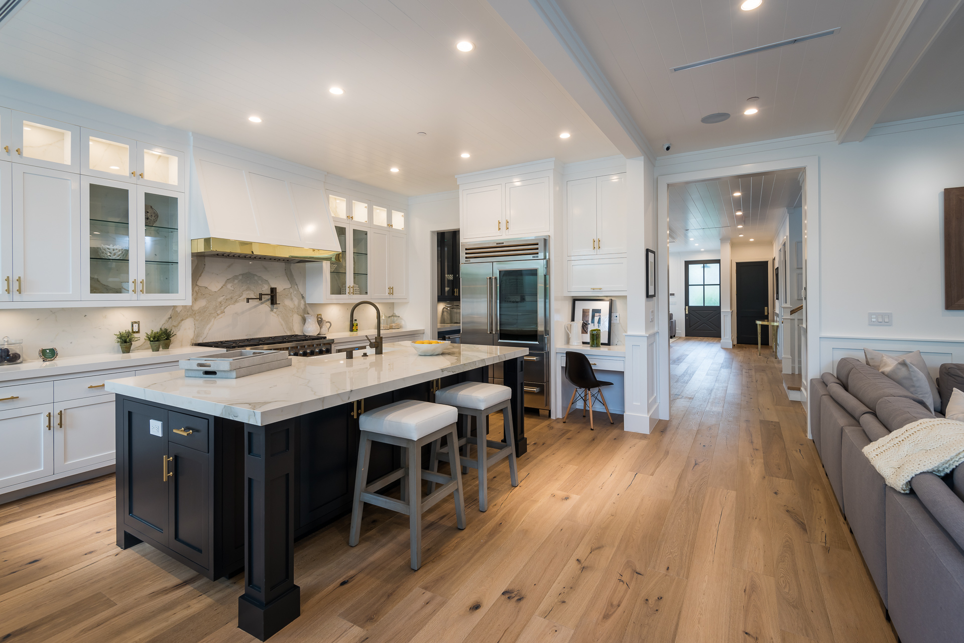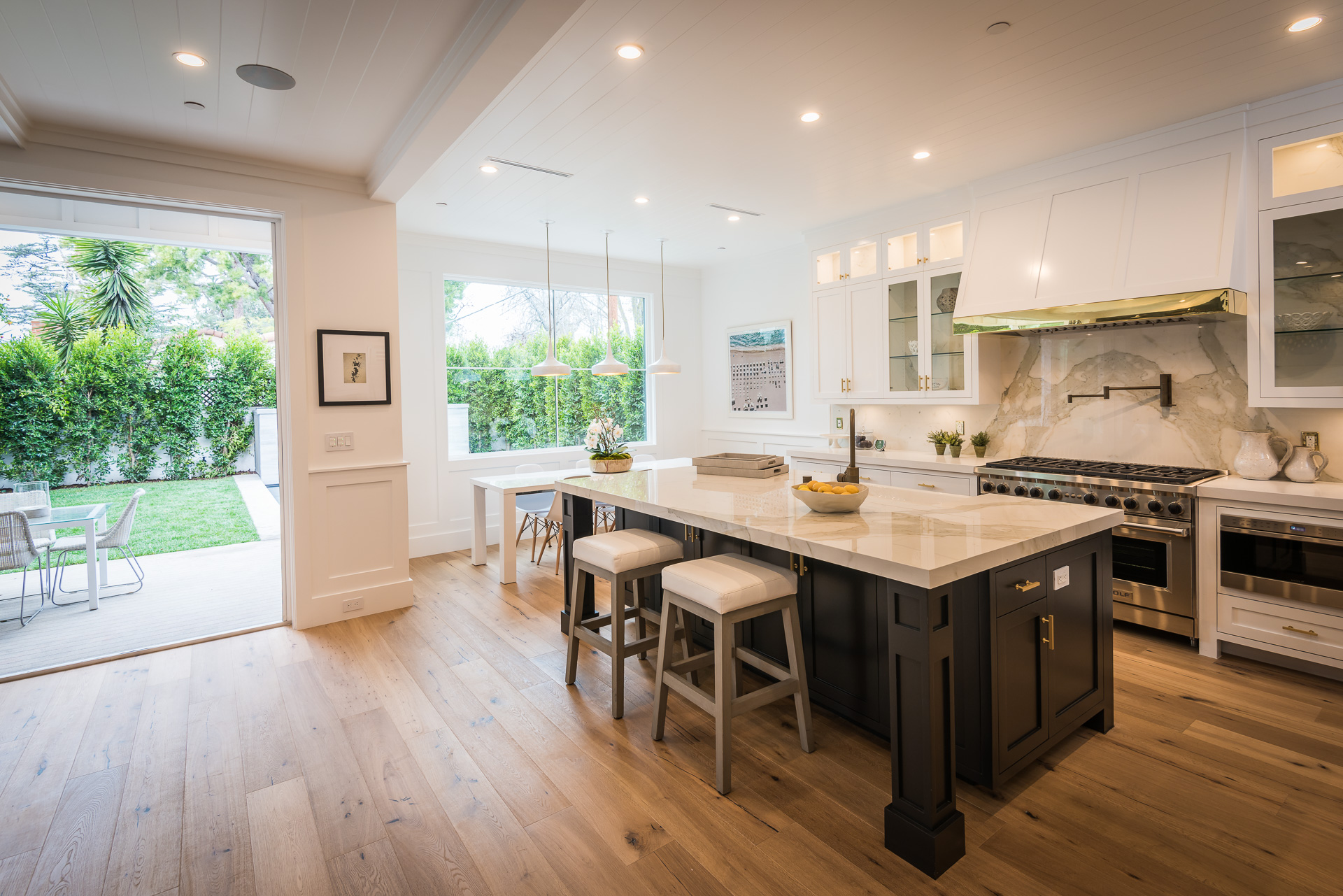 Situated in the coveted Colfax Meadows neighborhood, and around the corner from the famous Tujunga Village, this striking custom designed home perfectly balances modern sophistication and timeless style that features Smarthome technology, and is located in the award winning Carpenter school district. The home displays clean lines and idyllic beauty with an open layout, fine oak flooring, high end finishes, tongue and groove ceilings, and plenty of natural light throughout. The sun filled living room features a custom tiled fireplace, and greets the dining room that includes a white brick wall detail, molding, and wainscoting. Culinary inspiration is abound in the gourmet kitchen featuring a butler’s pantry, Wolf 8 burner stove, over-sized kitchen island, Carrara marble island counter and back-splash, quartz counters, open faced glass SubZero fridge and freezer, and a cozy breakfast nook. Folding glass doors open the family area to the deck with a BBQ, and a pool, perfect for outdoor dining and entertaining. The master suite upstairs includes an inglenook with fireplace, walk in closet, master bath with Italian marble, freestanding tub, and brass fixtures. Four additional bedrooms are en suite, feature full baths, hardwood floors, wainscoting, large closets, and recessed lighting. There is a lot of new construction out there, don't miss this opportunity to see something fresh and different!
