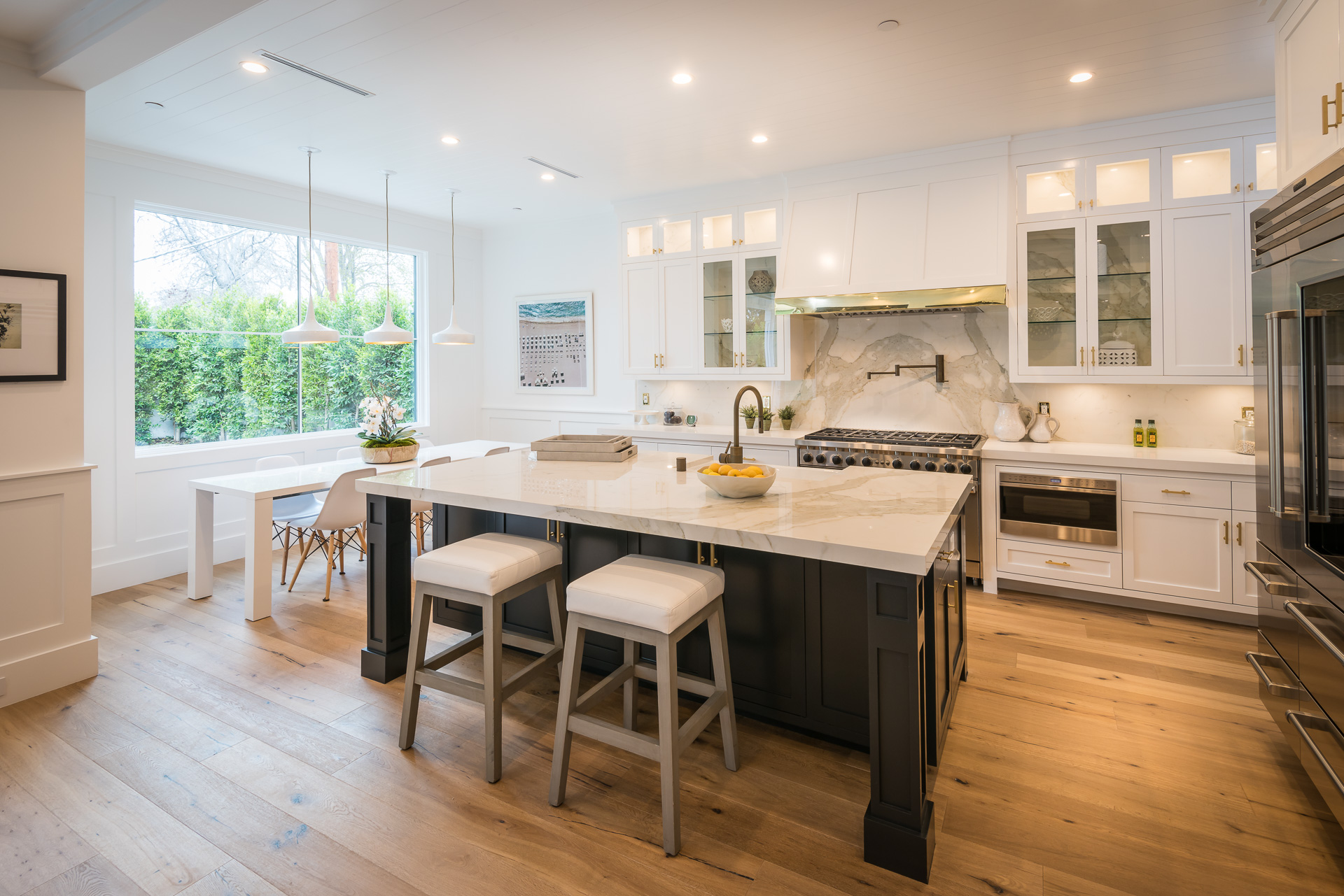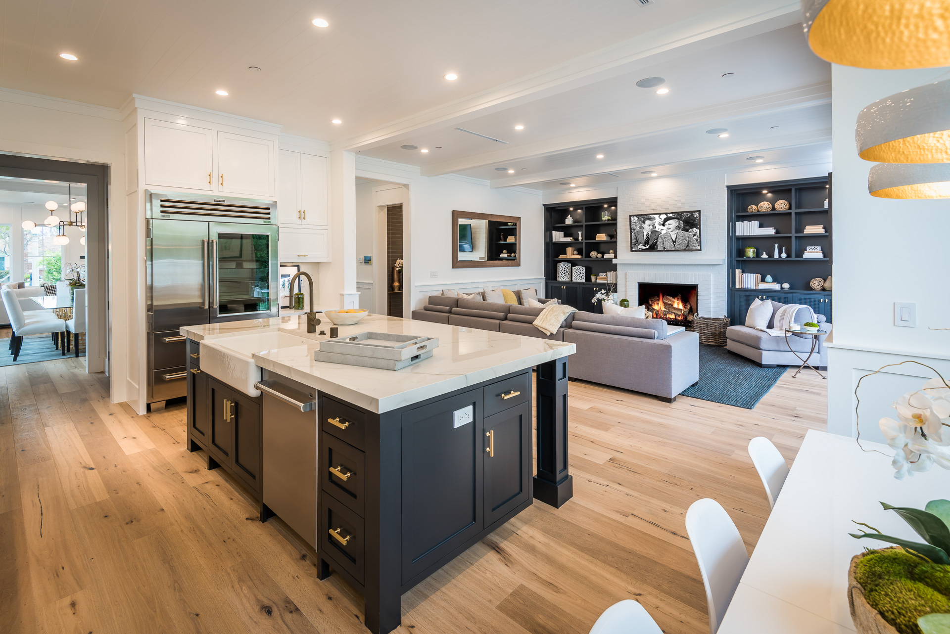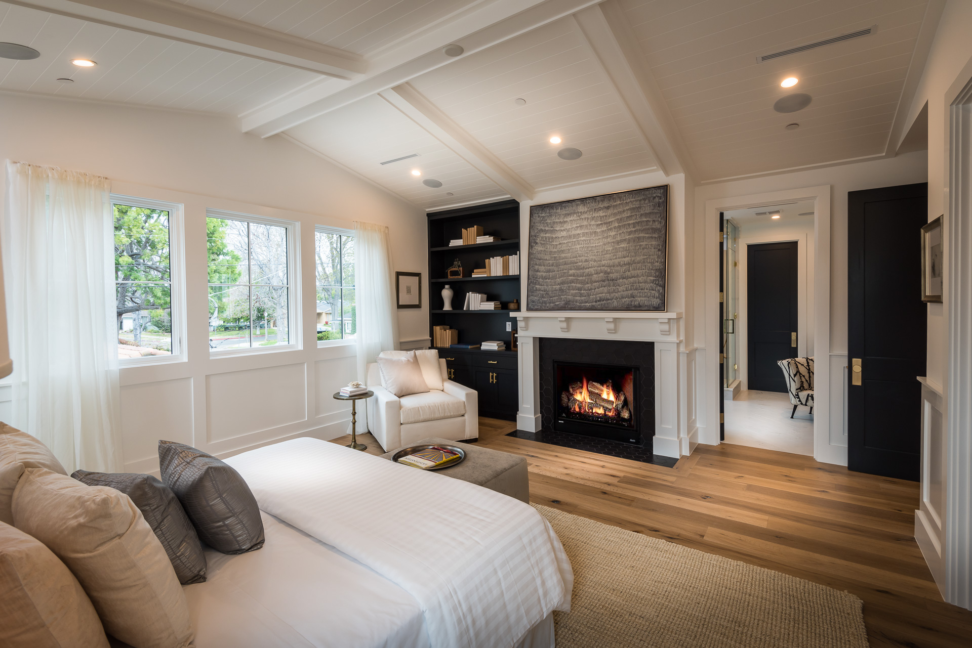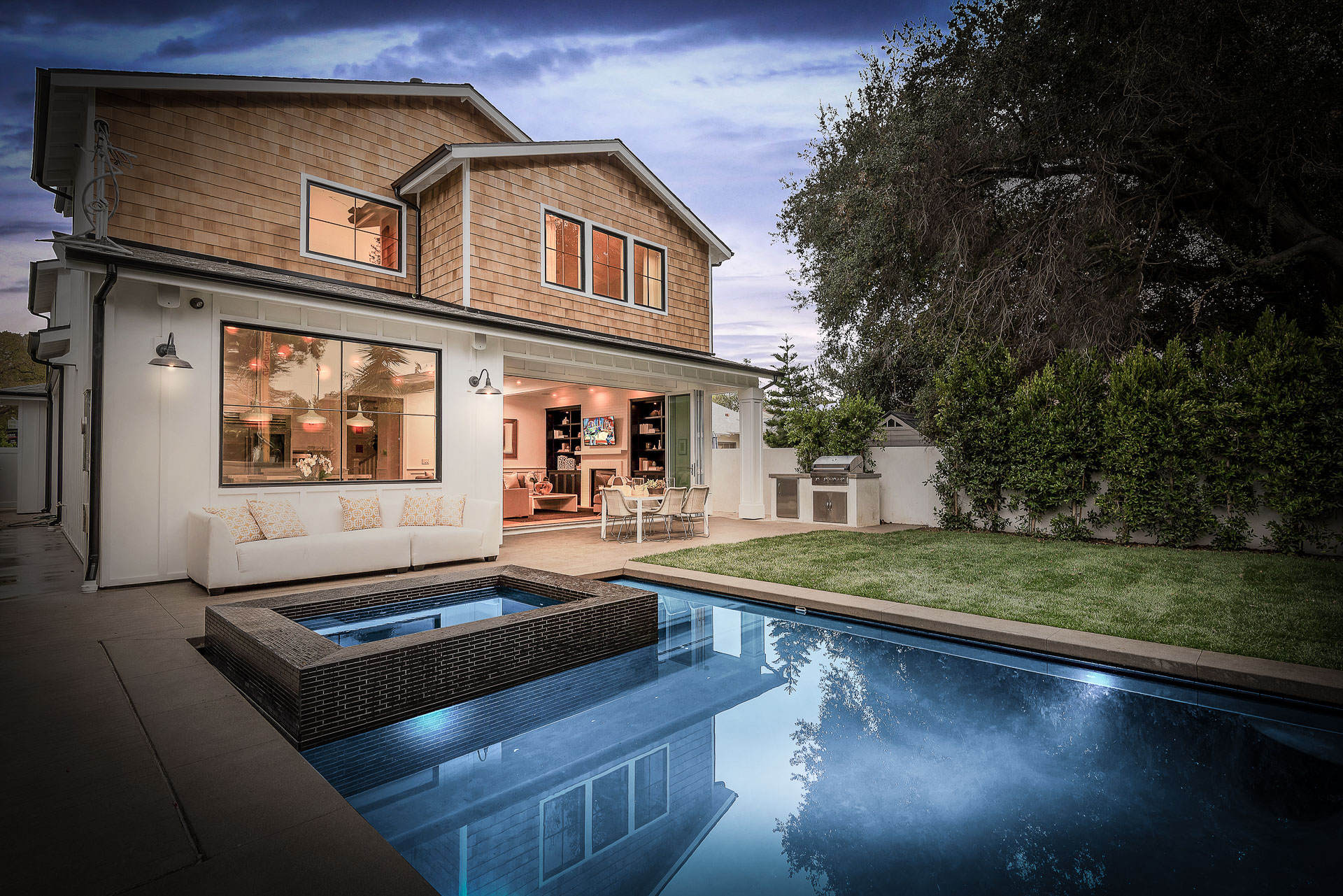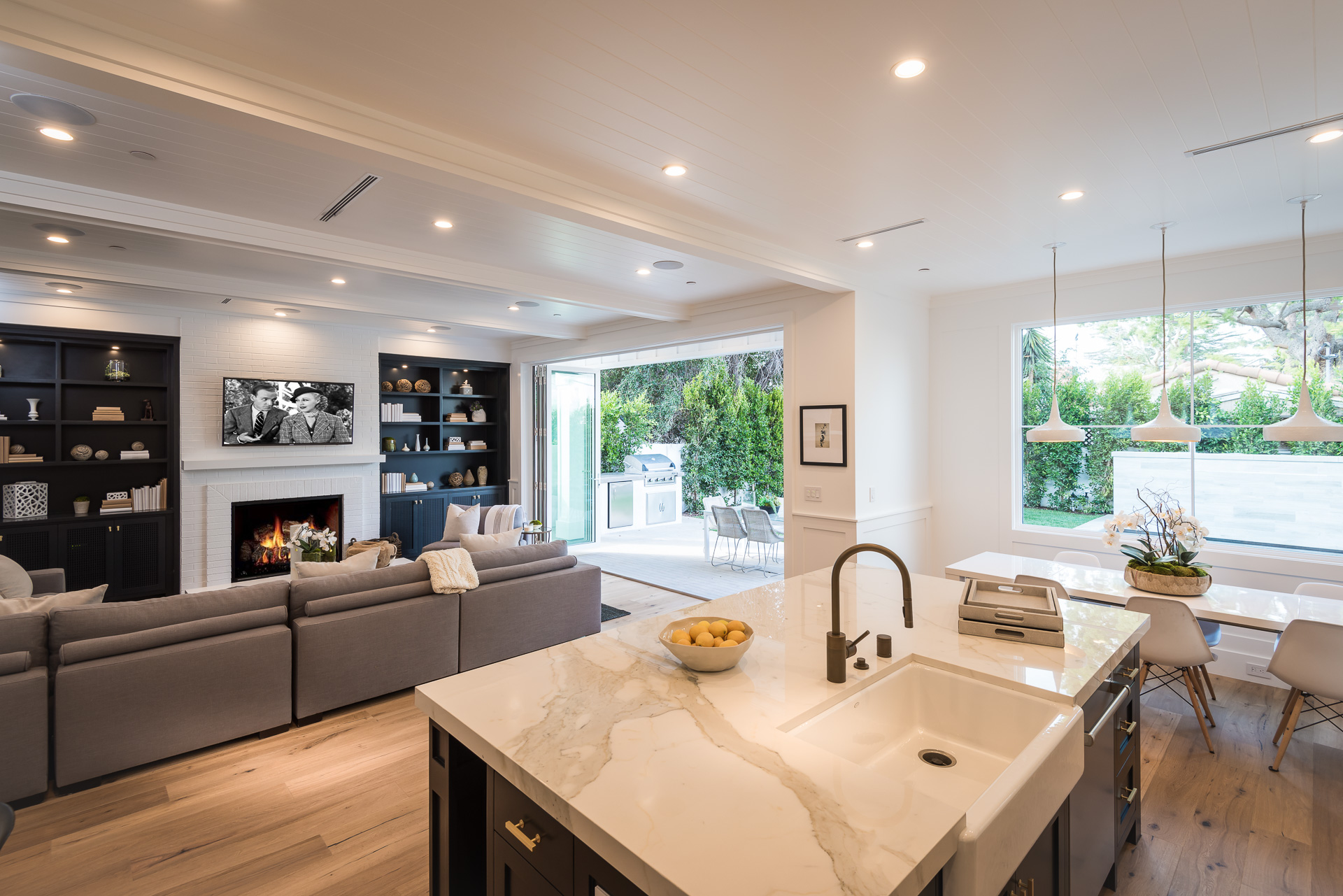 Situated in the coveted Colfax Meadows neighborhood, and around the corner from the famous Tujunga Village, this striking custom designed home perfectly balances modern sophistication and timeless style that features Smarthome technology, and is located in the award winning Carpenter school district. The home displays clean lines and idyllic beauty with an open layout, fine oak flooring, high end finishes, tongue and groove ceilings, and plenty of natural light throughout. The sun filled living room features a custom tiled fireplace, and greets the dining room that includes a white brick wall detail, molding, and wainscoting. Culinary inspiration is abound in the gourmet kitchen featuring a butler’s pantry, Wolf 8 burner stove, over-sized kitchen island, Carrara marble island counter and back-splash, quartz counters, open faced glass SubZero fridge and freezer, and a cozy breakfast nook. Folding glass doors open the family area to the deck with a BBQ, and a pool, perfect for outdoor dining and entertaining. The master suite upstairs includes an inglenook with fireplace, walk in closet, master bath with Italian marble, freestanding tub, and brass fixtures. Four additional bedrooms are en suite, feature full baths, hardwood floors, wainscoting, large closets, and recessed lighting. There is a lot of new construction out there, don't miss this opportunity to see something fresh and different!