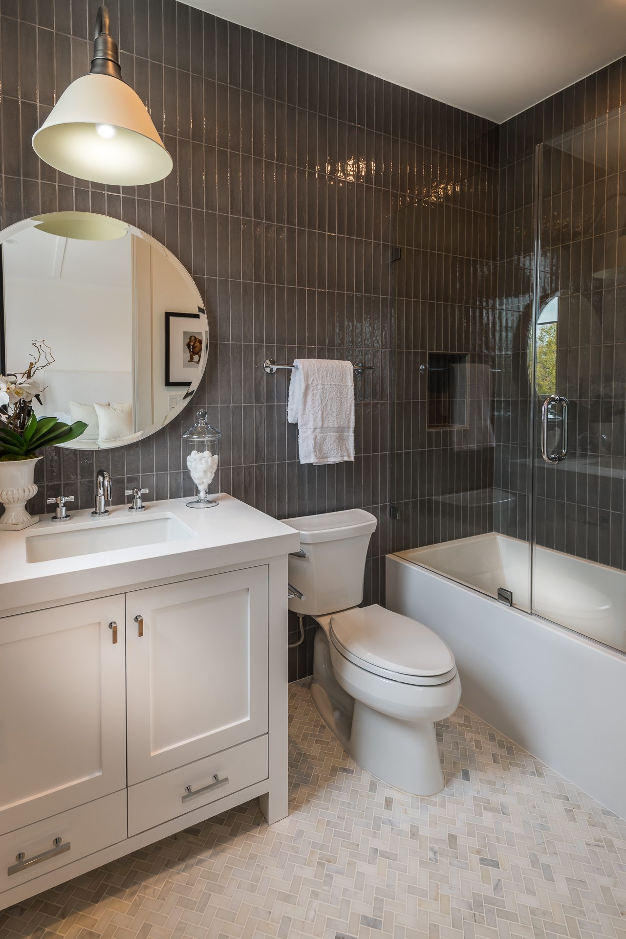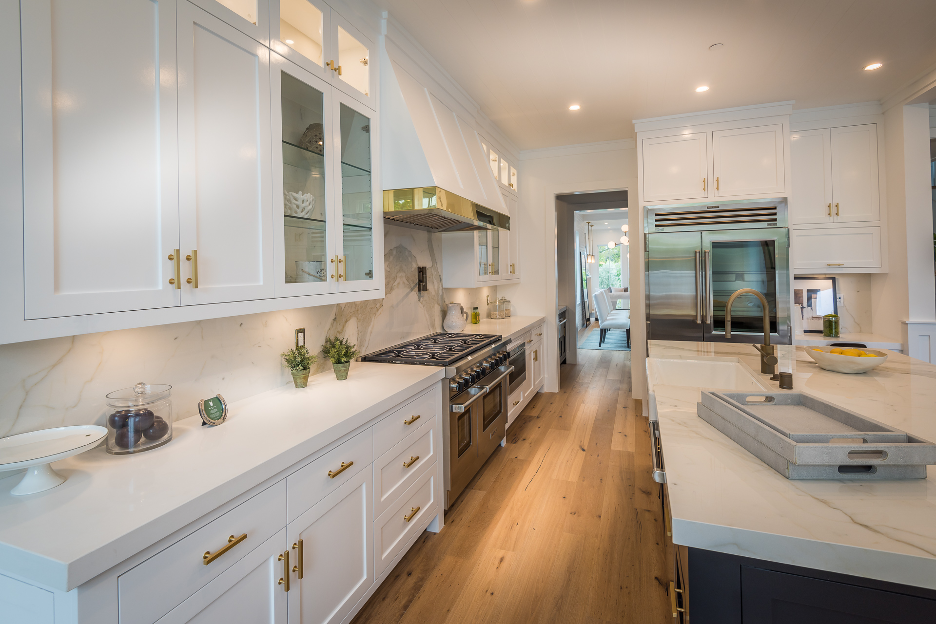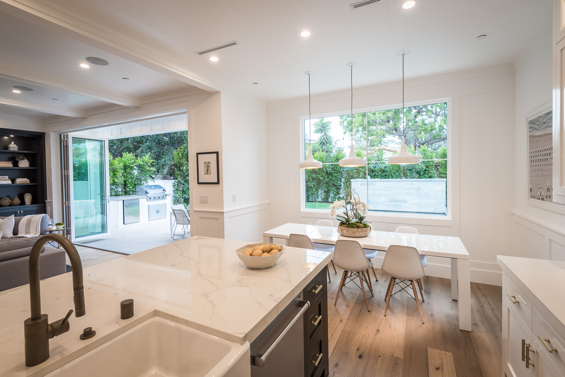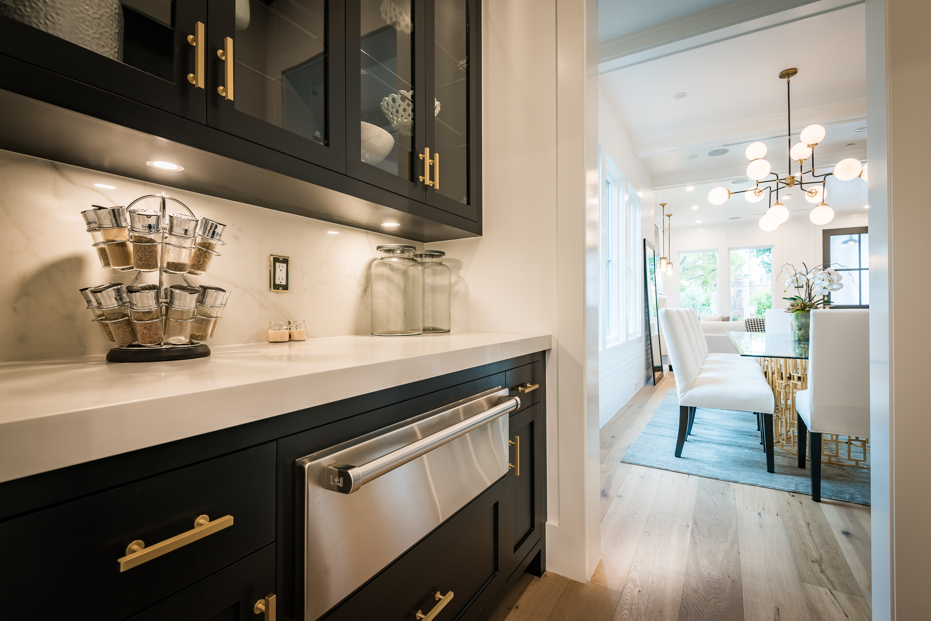 Situated in the coveted Colfax Meadows neighborhood, and around the corner from the famous Tujunga Village, this striking custom designed home perfectly balances modern sophistication and timeless style that features Smarthome technology, and is located in the award winning Carpenter school district. The home displays clean lines and idyllic beauty with an open layout, fine oak flooring, high end finishes, tongue and groove ceilings, and plenty of natural light throughout. The sun filled living room features a custom tiled fireplace, and greets the dining room that includes a white brick wall detail, molding, and wainscoting. Culinary inspiration is abound in the gourmet kitchen featuring a butler’s pantry, Wolf 8 burner stove, over-sized kitchen island, Carrara marble island counter and back-splash, quartz counters, open faced glass SubZero fridge and freezer, and a cozy breakfast nook. Folding glass doors open the family area to the deck with a BBQ, and a pool, perfect for outdoor dining and entertaining. The master suite upstairs includes an inglenook with fireplace, walk in closet, master bath with Italian marble, freestanding tub, and brass fixtures. Four additional bedrooms are en suite, feature full baths, hardwood floors, wainscoting, large closets, and recessed lighting. There is a lot of new construction out there, don't miss this opportunity to see something fresh and different!