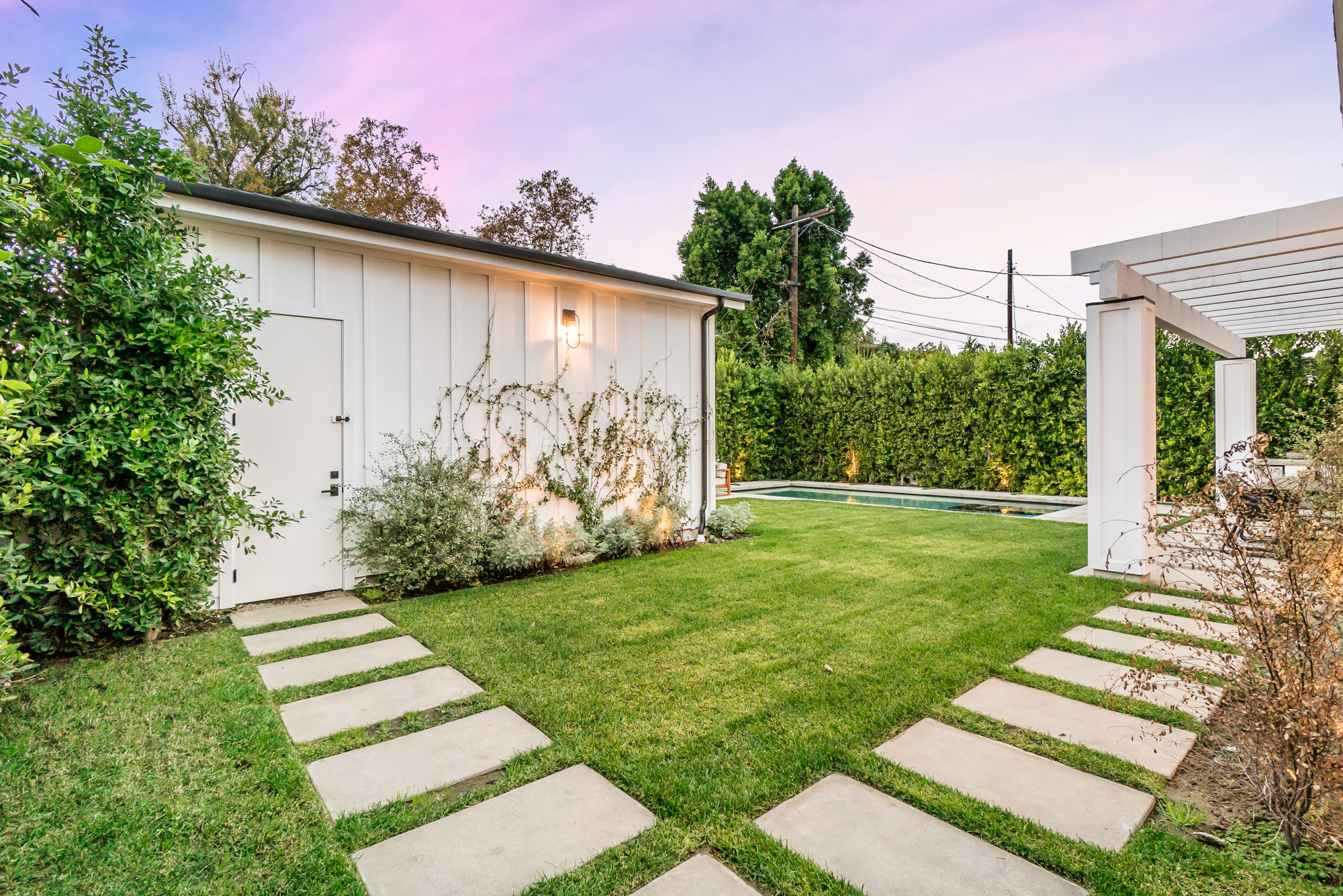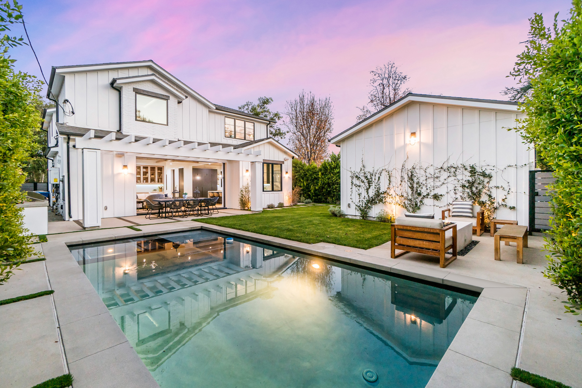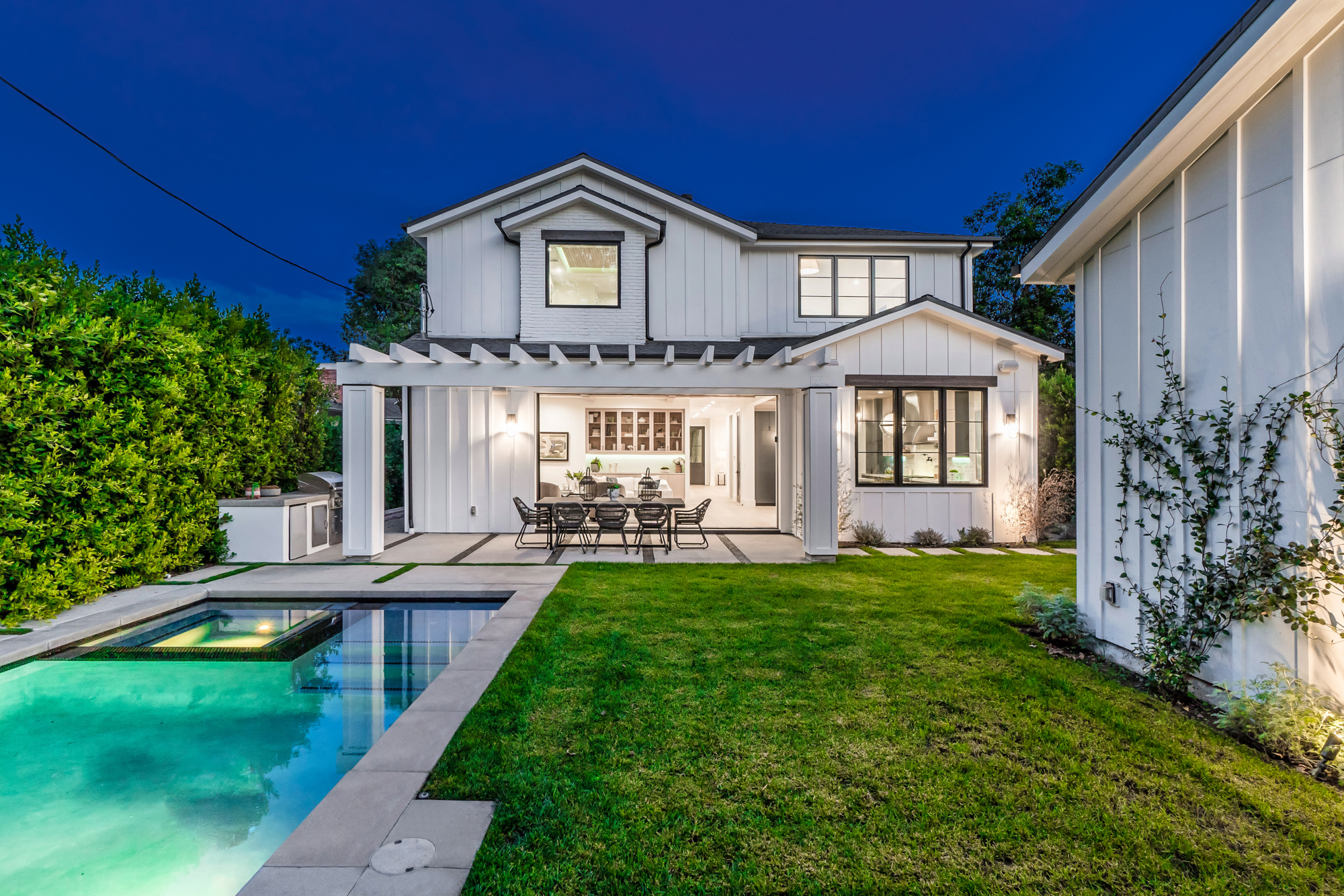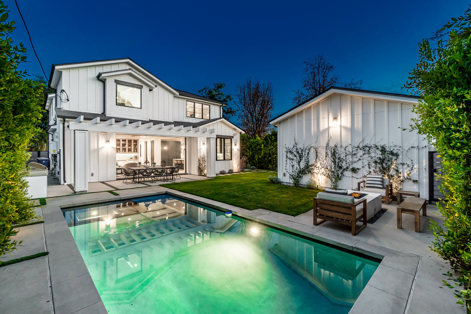 Breathtaking brand new construction stunner perfectly positioned on a beautiful corner lot in the heart of Toluca Lake. This home is exquisite in every sense of the word. Fastidiously crafted by renowned Shelter Homes, this 7 bedroom, 9 bathroom residence with over 5,300 sqft was built to be your forever destination. Fall in love the moment you enter this spacious open concept home with soaring ceilings and a beautiful blend of warm and cool tones. Striking main level adorns a cozy living room with fireplace, dining room with large glass doors leading outside, expansive family room, glamorous chef’s kitchen, butlers pantry, breakfast nook, and two thoughtfully designed ensuite bedrooms. Continue the entertaining outdoors via massive glass sliding pocket doors, seamlessly leading out to the tranquil backyard. A custom built in bbq, gleaming pool & spa, warm fire pit, al fresco dining space, and abundance of grass and lounge space, are all privately surrounded by lush greenery. Upstairs, you are welcomed with oversized ensuite bedrooms tailored for ultimate privacy. The master retreat showcases a quintessential blend of sophistication and comfort featuring a luxurious fireplace, boasting walk in closet, bathroom with dual sinks, soaking tub, privacy door, and larger than most walk in shower. Top notch amenities include a massive game room, home theater, wine cellar, smart home system, and laundry room. Superbly located just moments from Riverside Drive - the hottest hub in Toluca Lake, with tasteful shops & dining. This trophy estate can’t be beat!