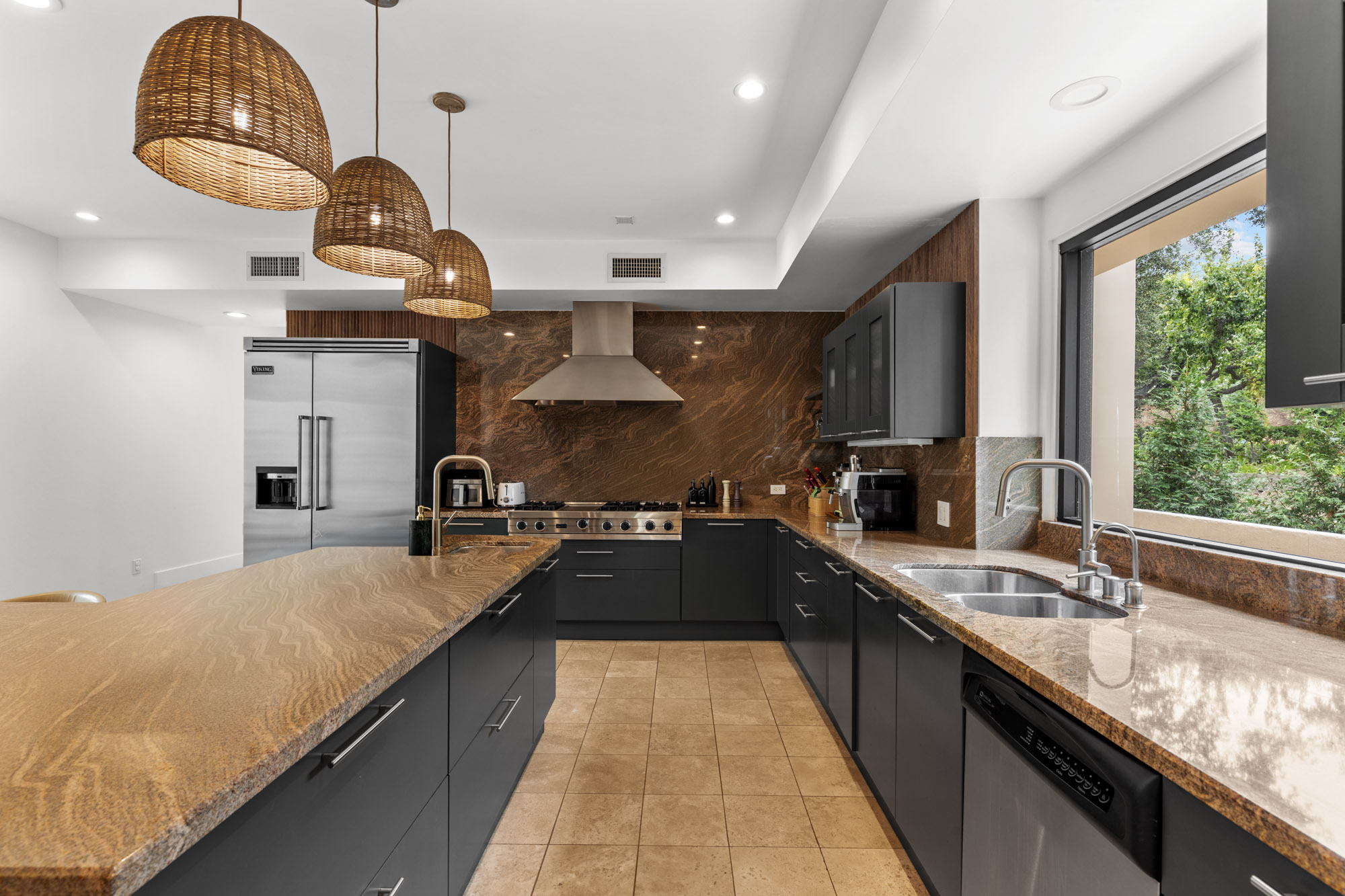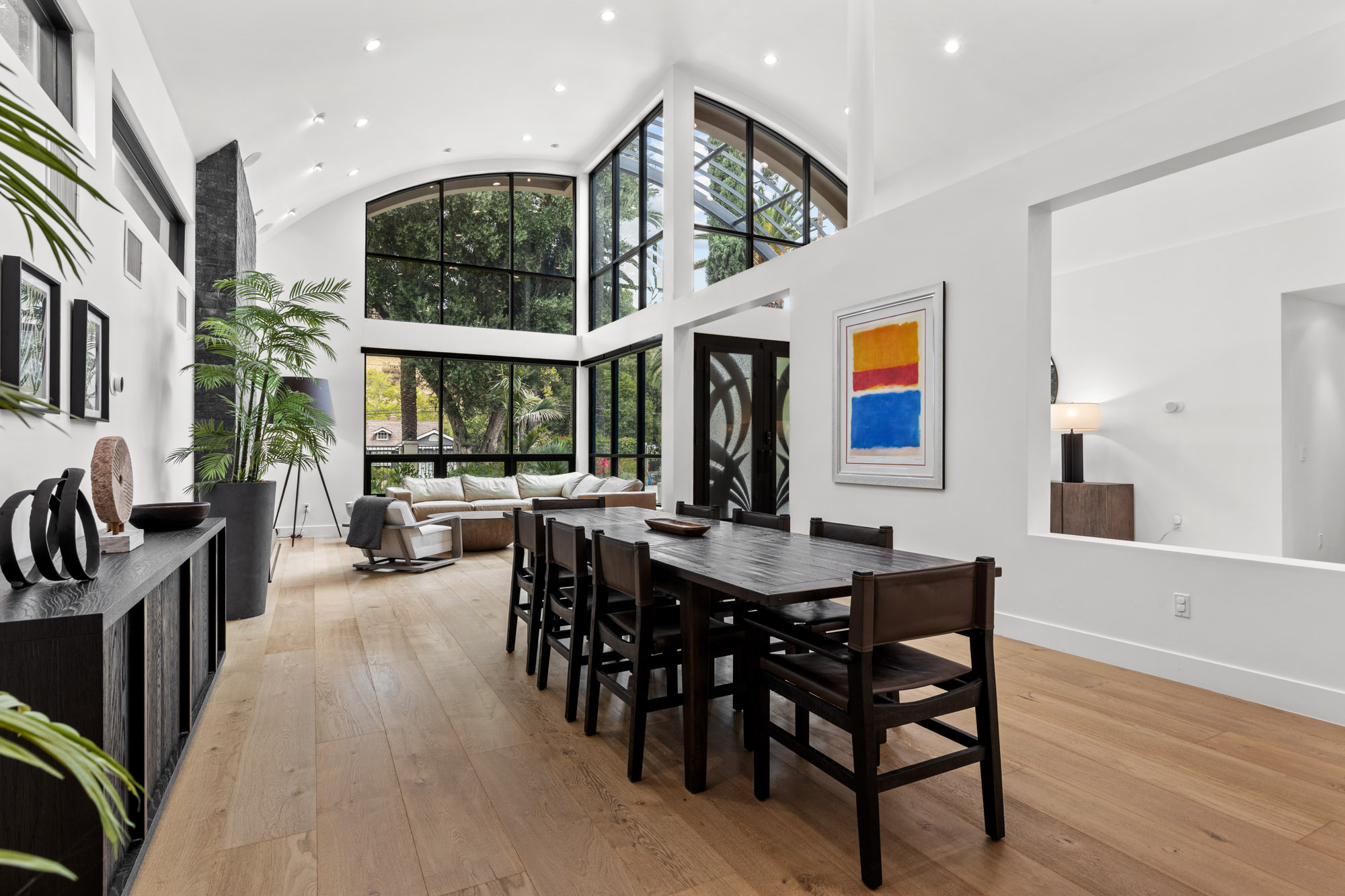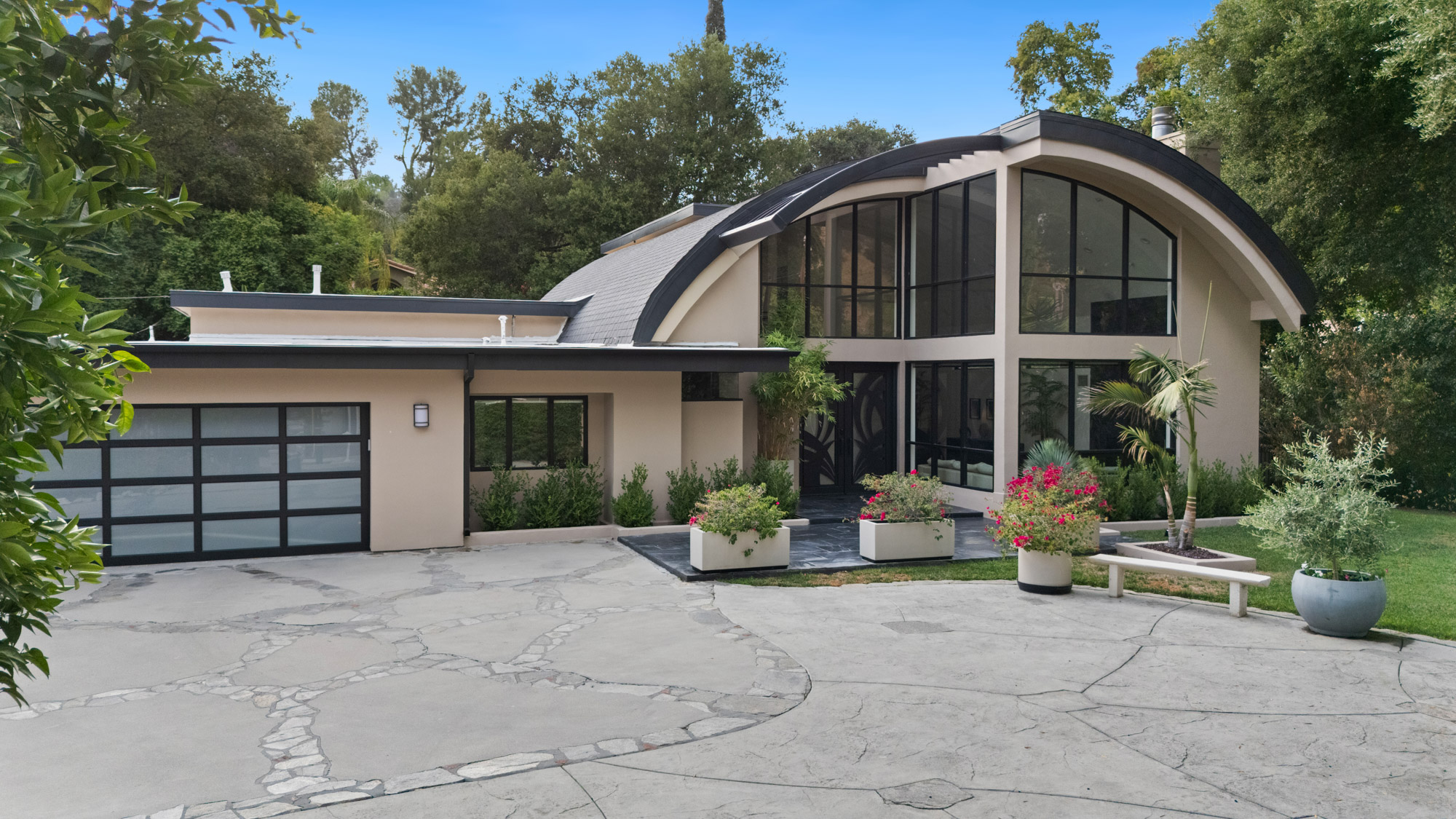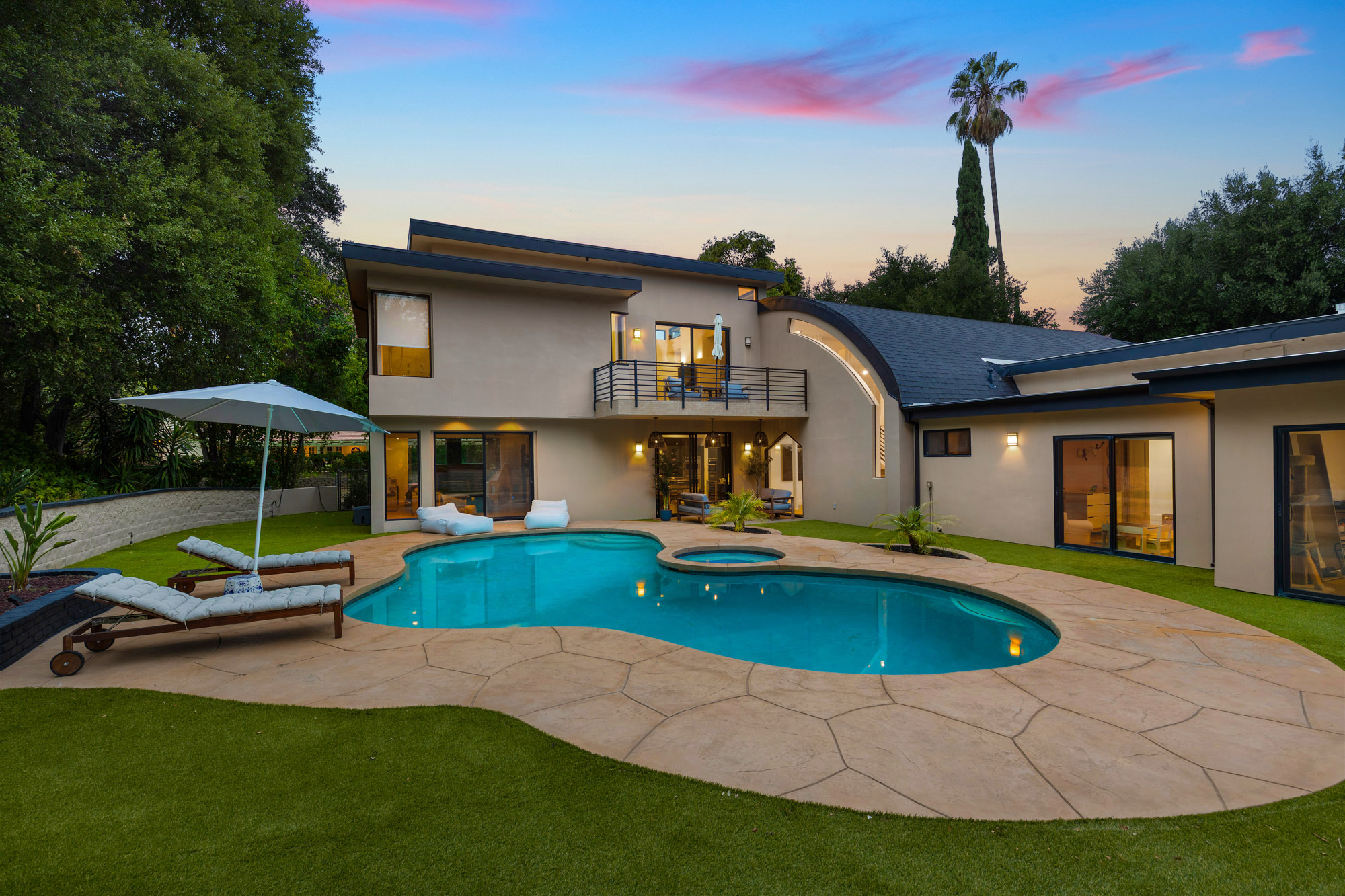 Nestled in the hills of Tarzana on a sprawling 18,000+ sf gated lot, this custom-built residence showcases striking architectural elements.